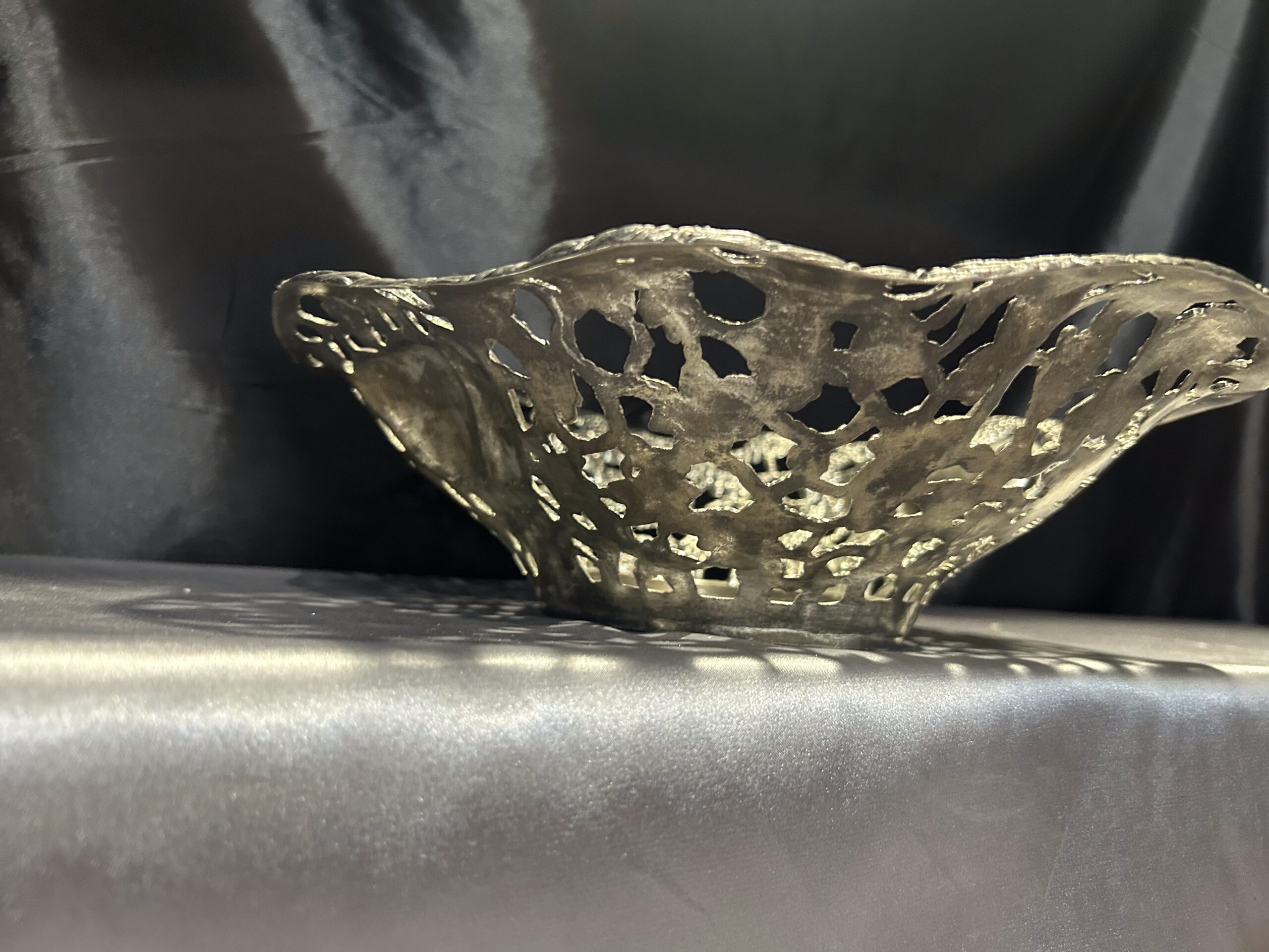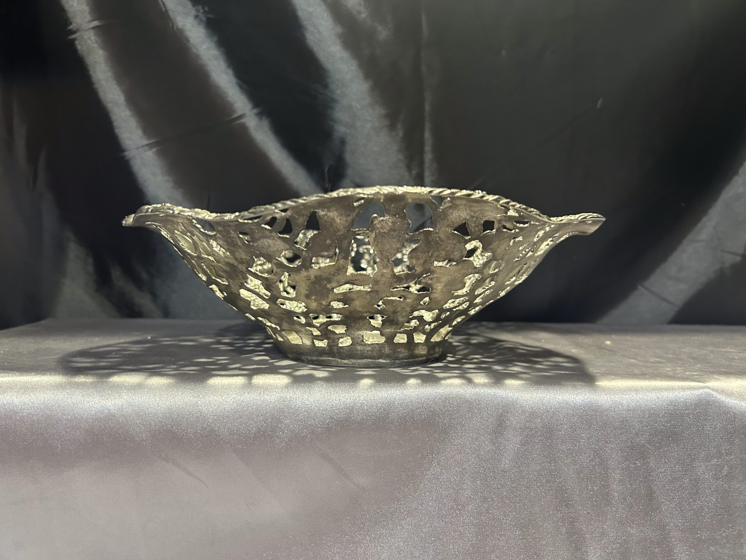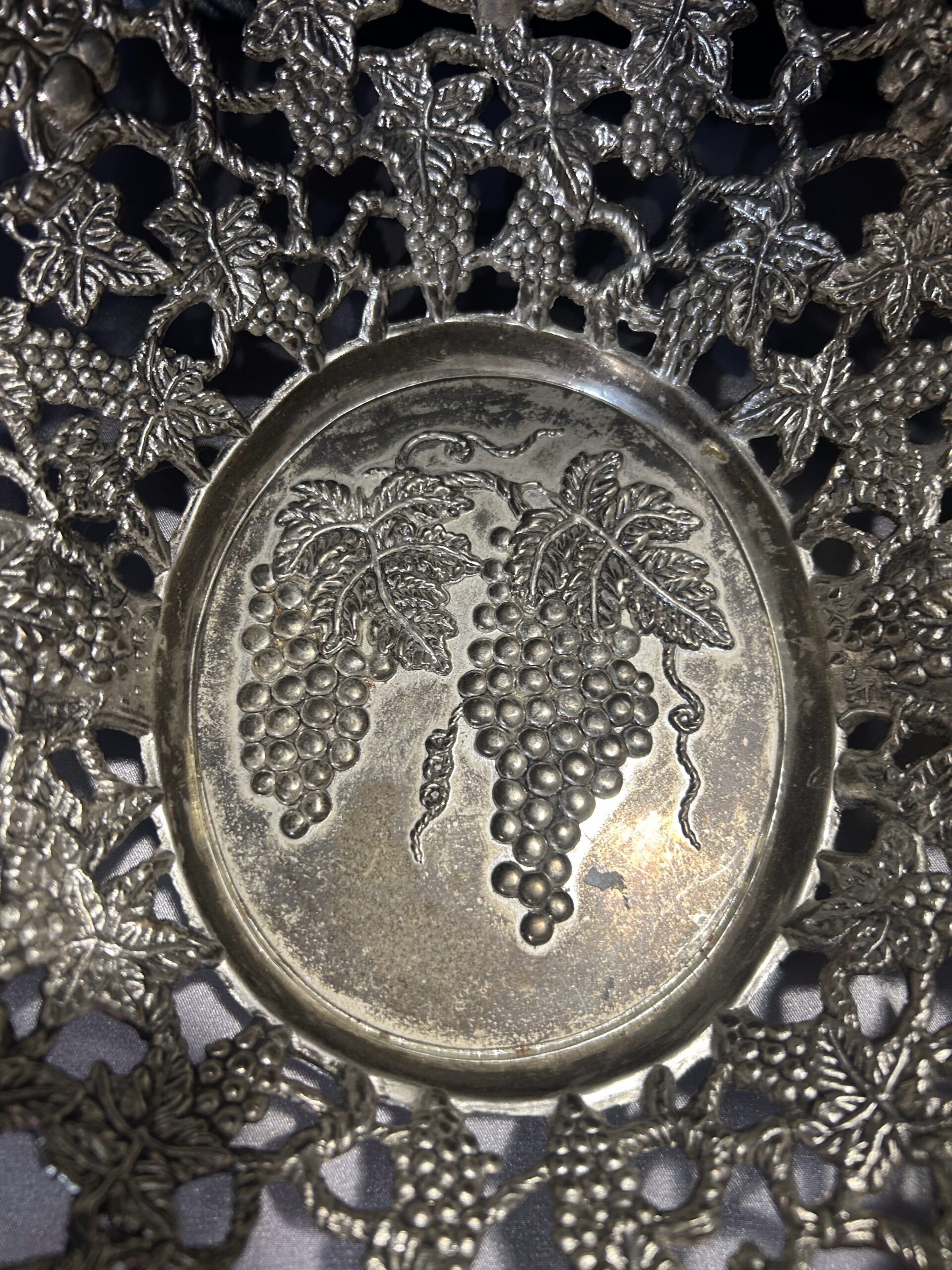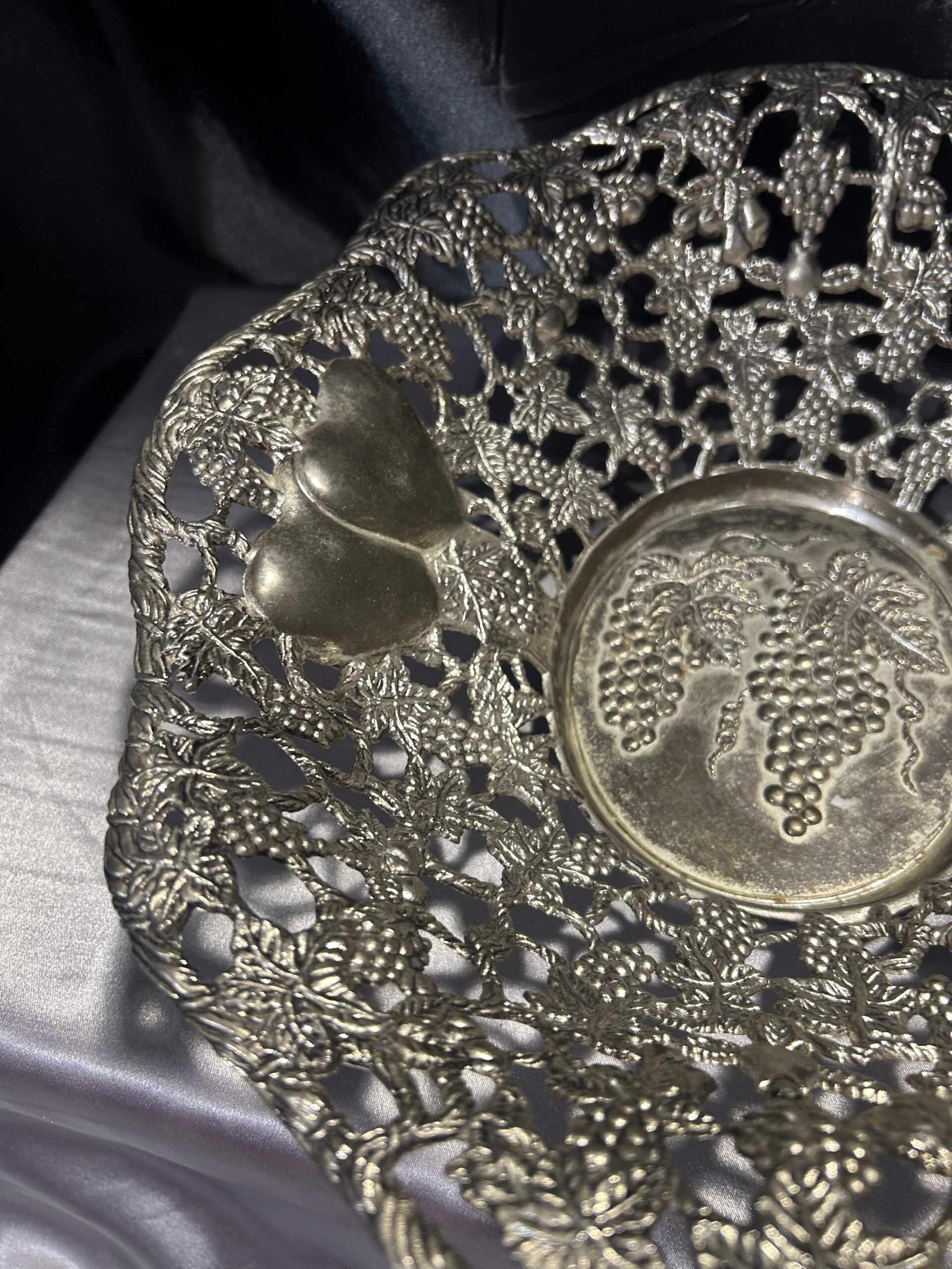 Piękna Misa Ażurowa – Zdobiona Motywem Serc, Winogron i Wiśni, Mosiądz Pobiał