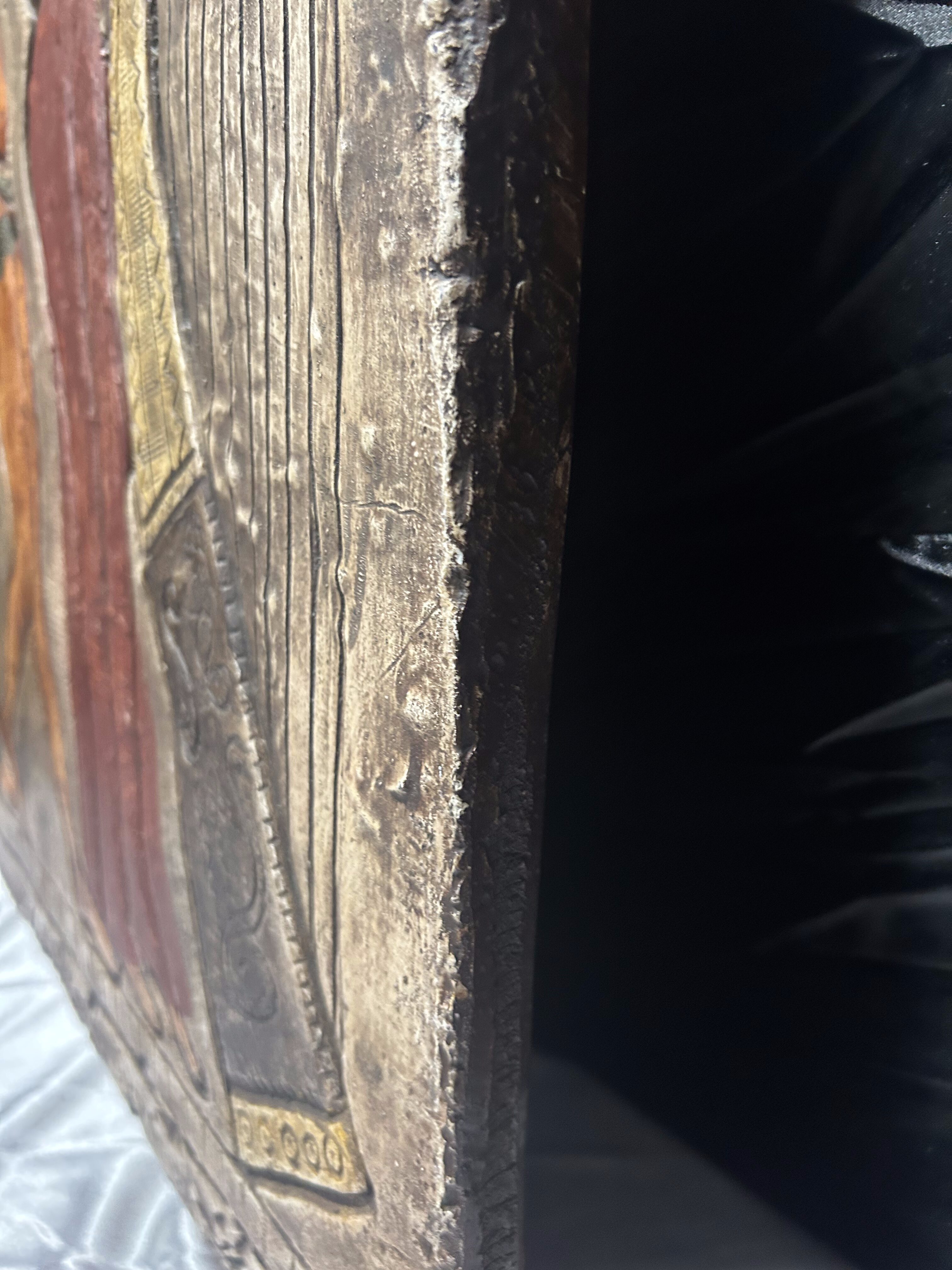 Płaskorzeźba wykonana została z masywnego materiału o wadze 10 kg, co nadaje jej niezwykłej trwałości i monumentalnego charakteru. Kolorowe zdobienia oraz staranne odwzorowanie postaci przyciągają uwagę i wprowadzają do wnętrza klimat starożytnej estetyki.
