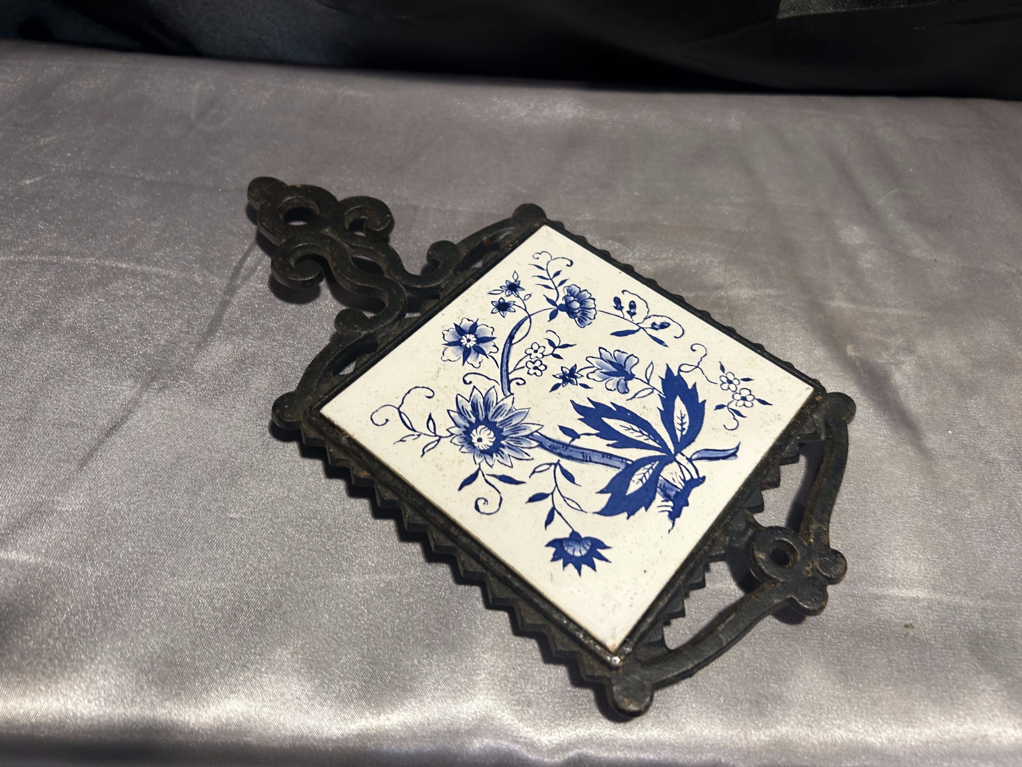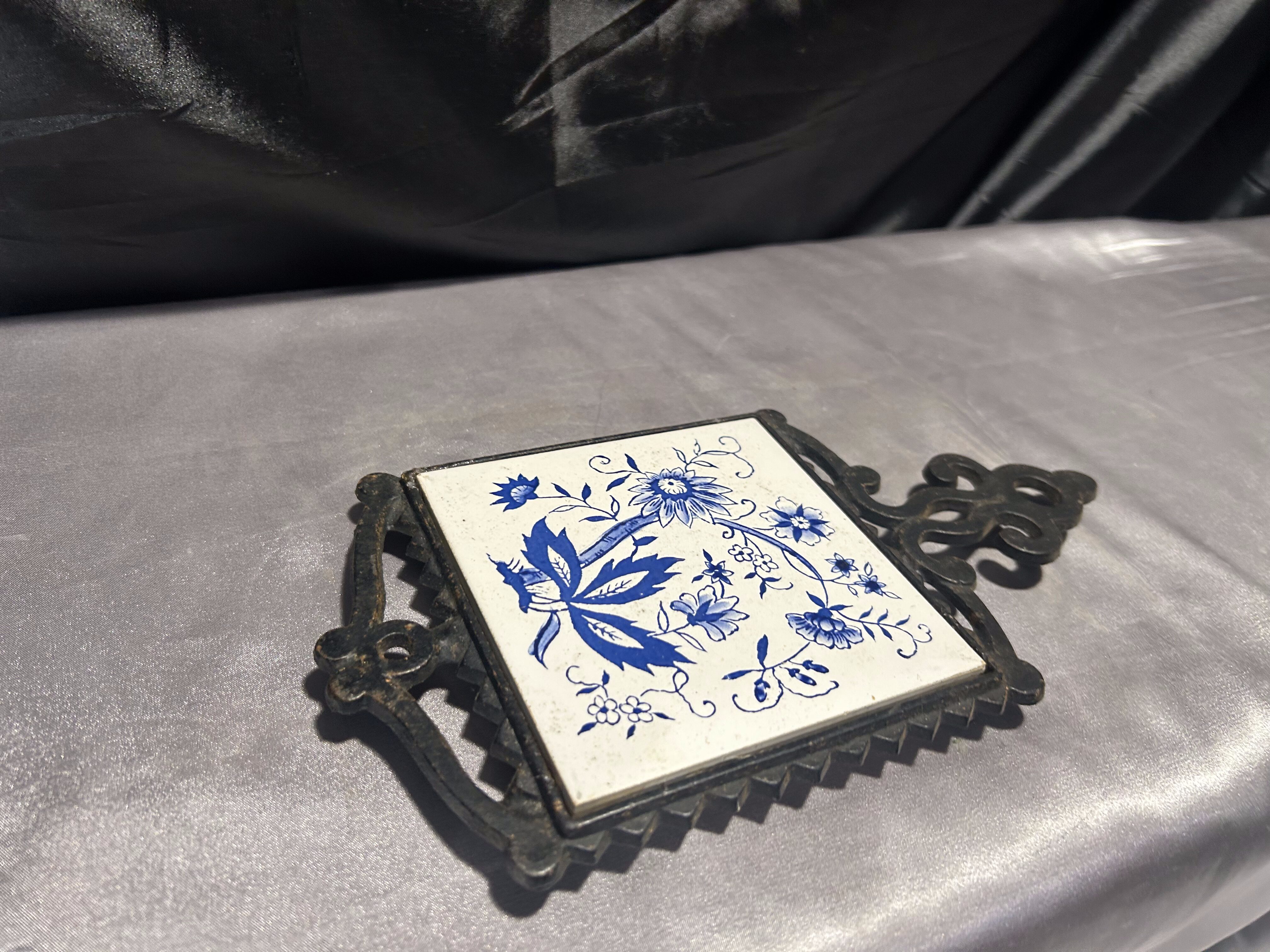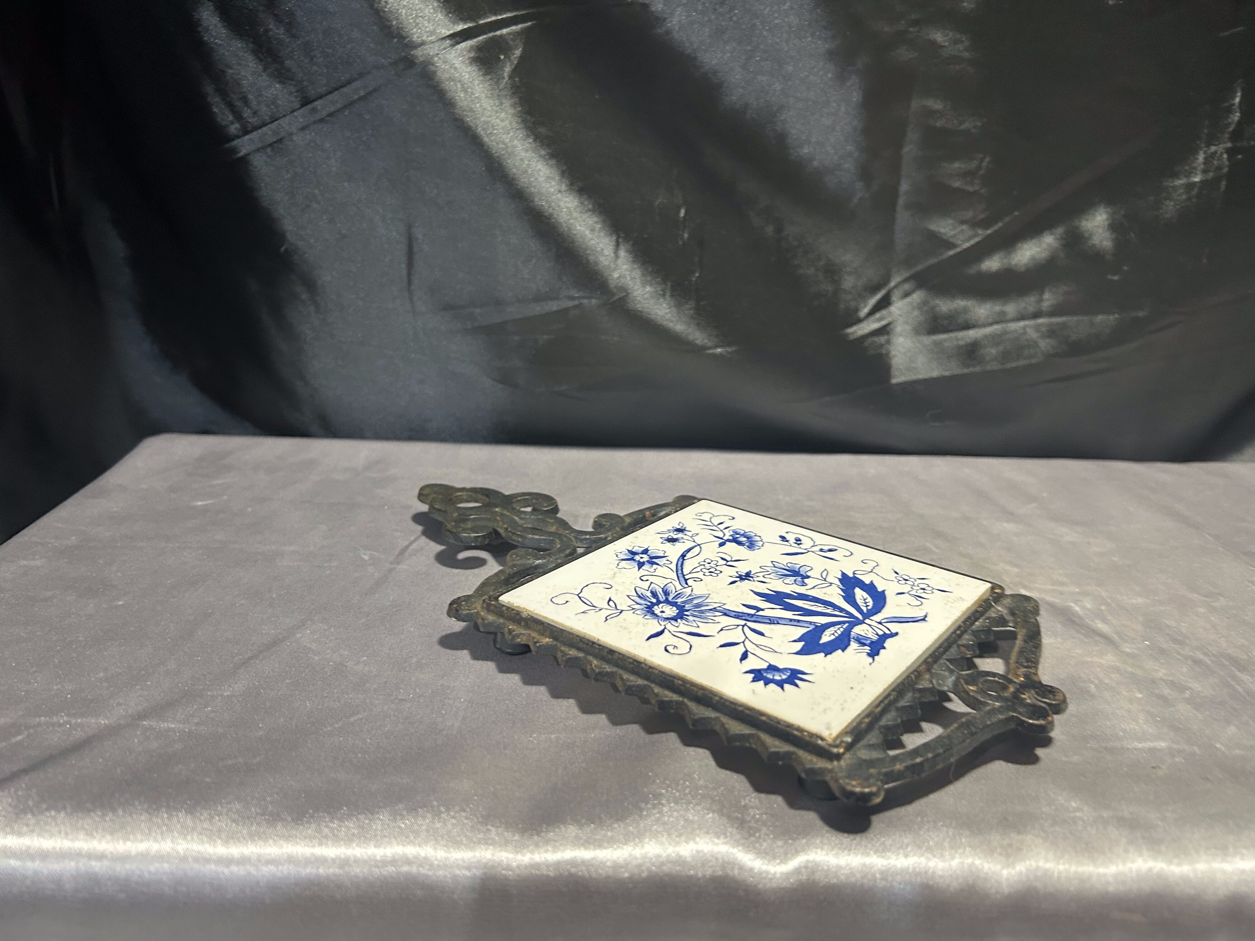 Podstawka pod gorący garnek – metal z ceramiką – malowana kobaltowym wzorem – Japonia