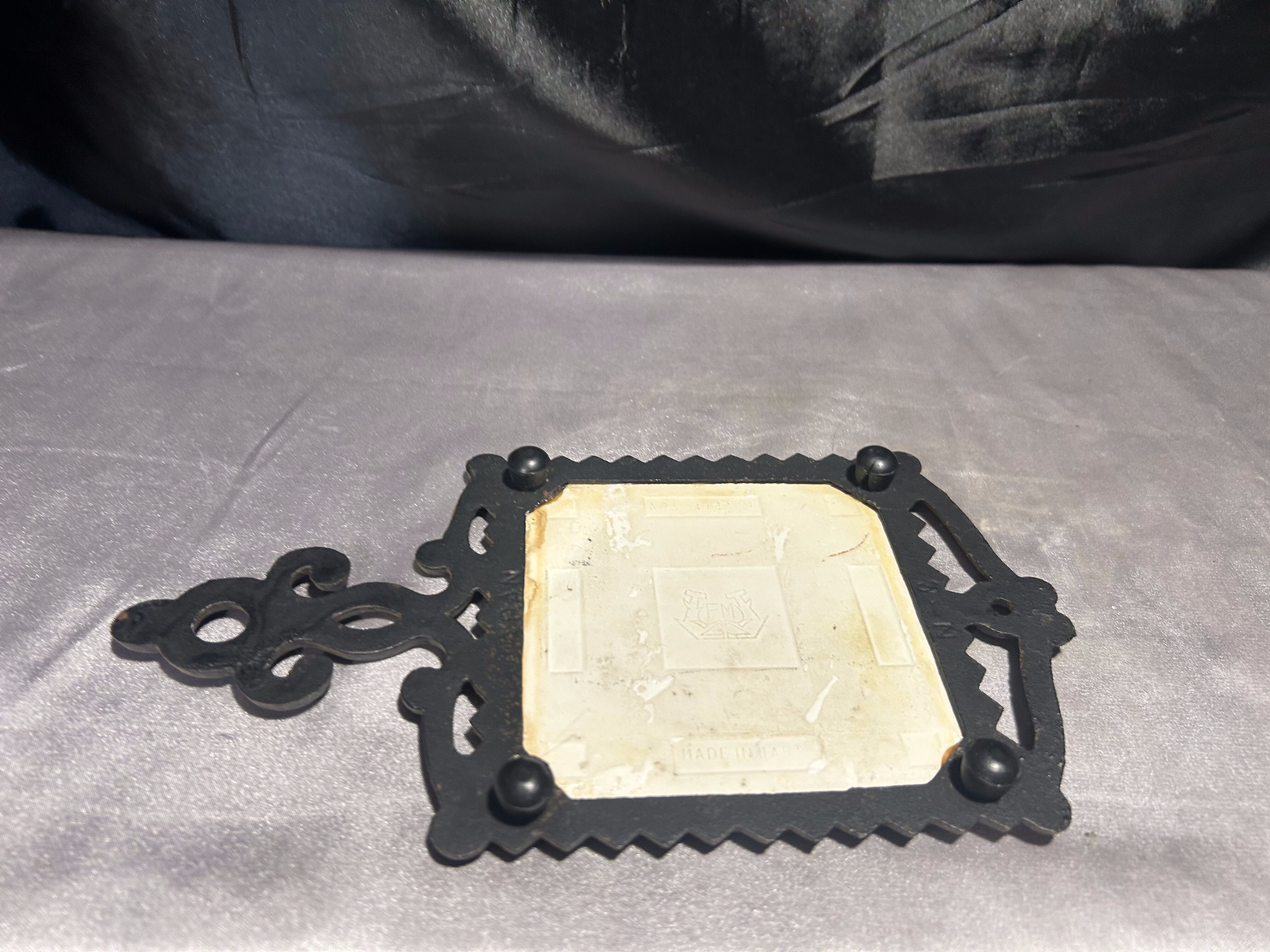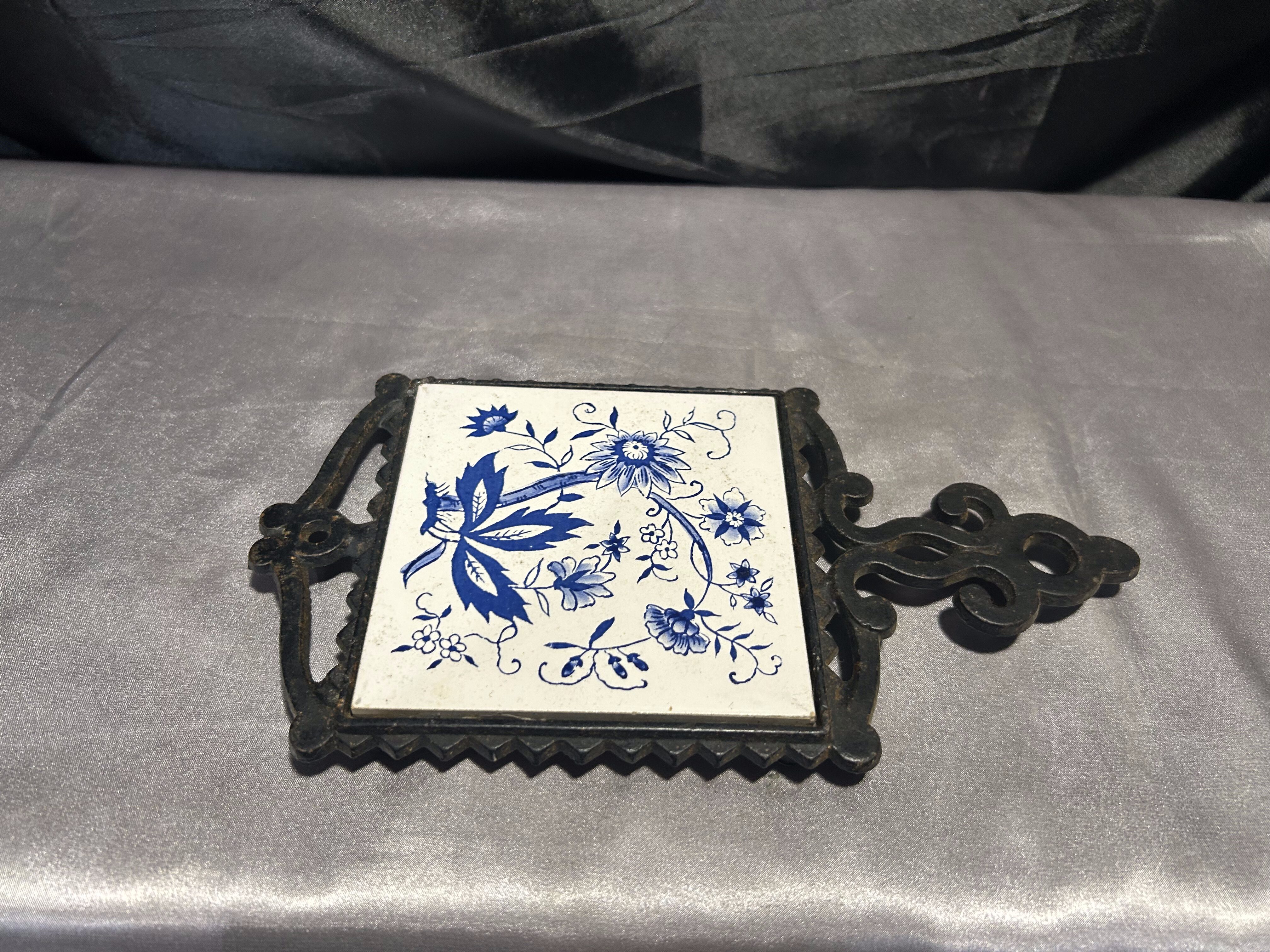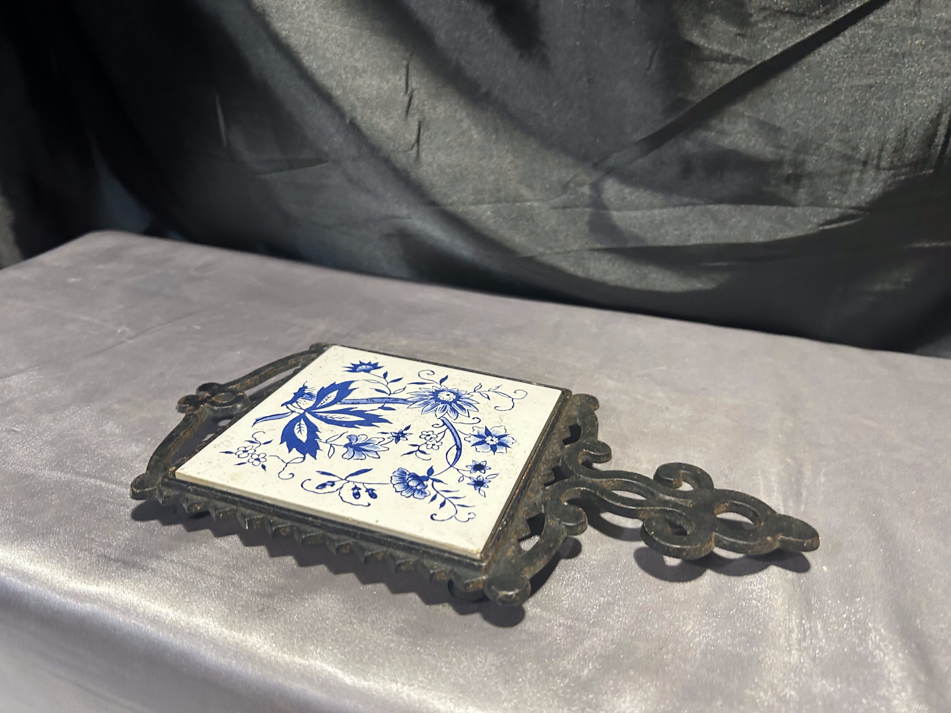 Podstawka pod gorący garnek – metal z ceramiką – malowana kobaltowym wzorem – Japonia