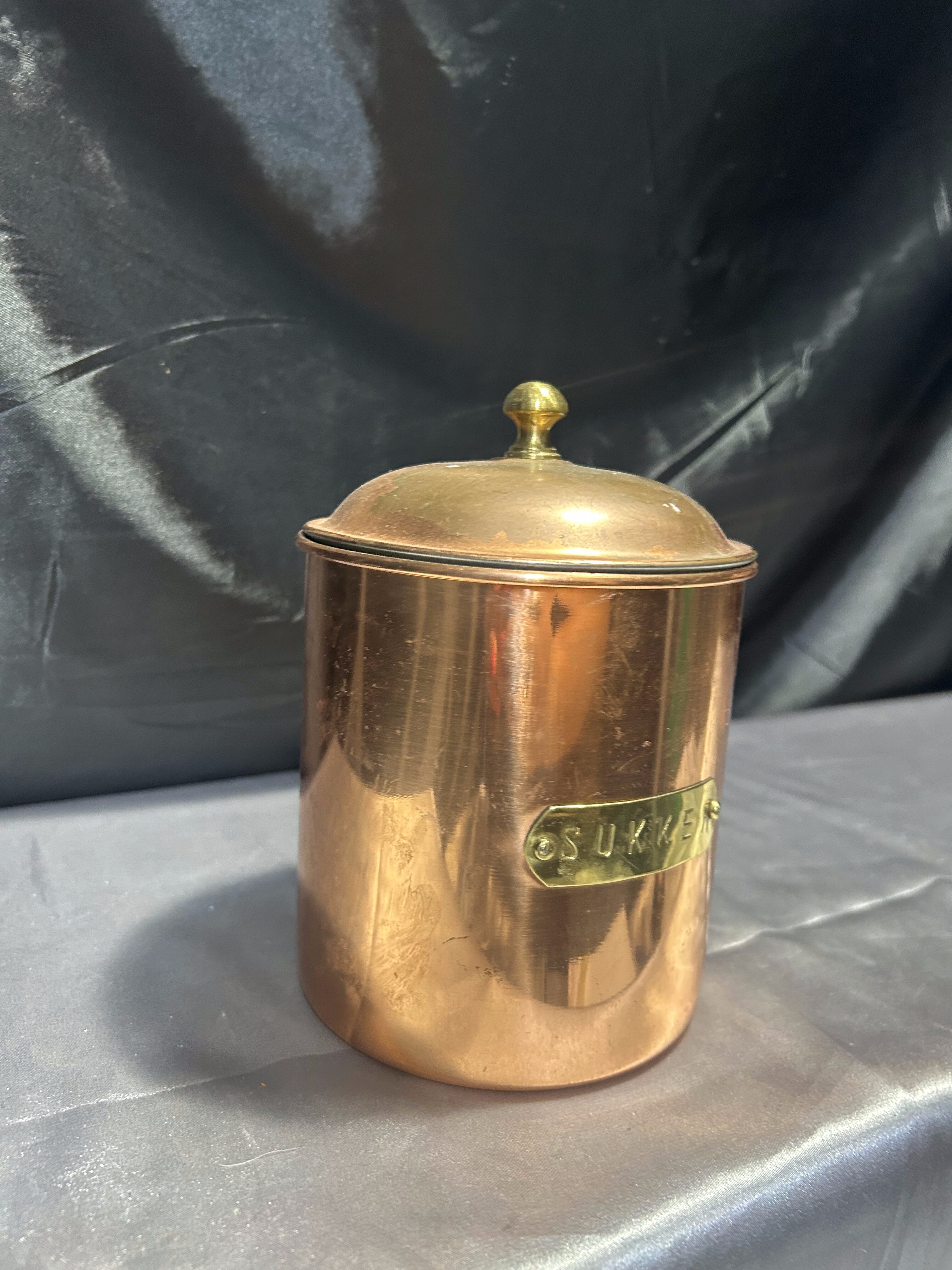 Pojemnik kuchenny miedziany – Z napisem SUKKER – Skandynawski styl vintage