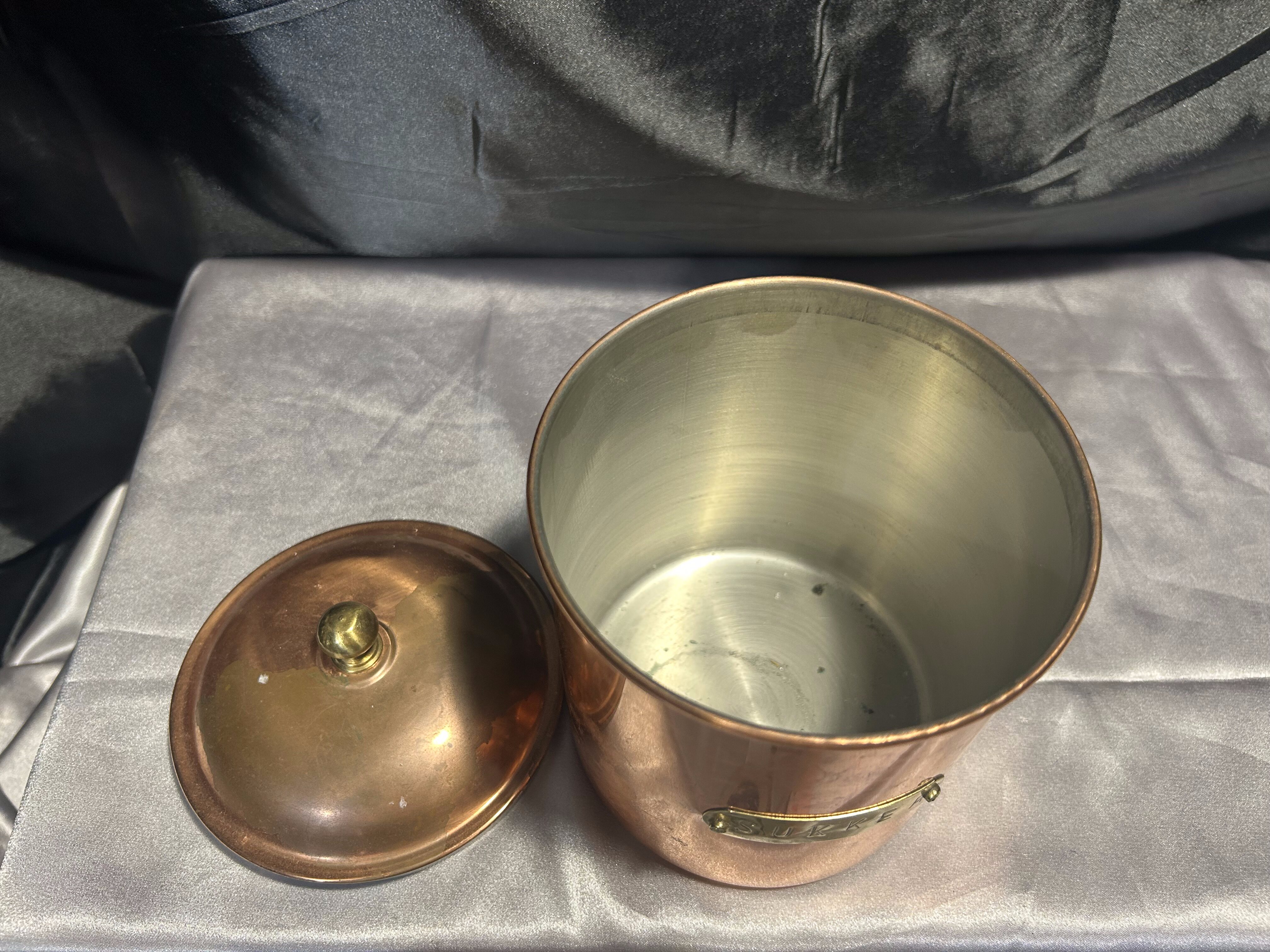 Zestaw 2 pojemników – Miedziane z mosiężnymi okuciami – Z pokrywkami