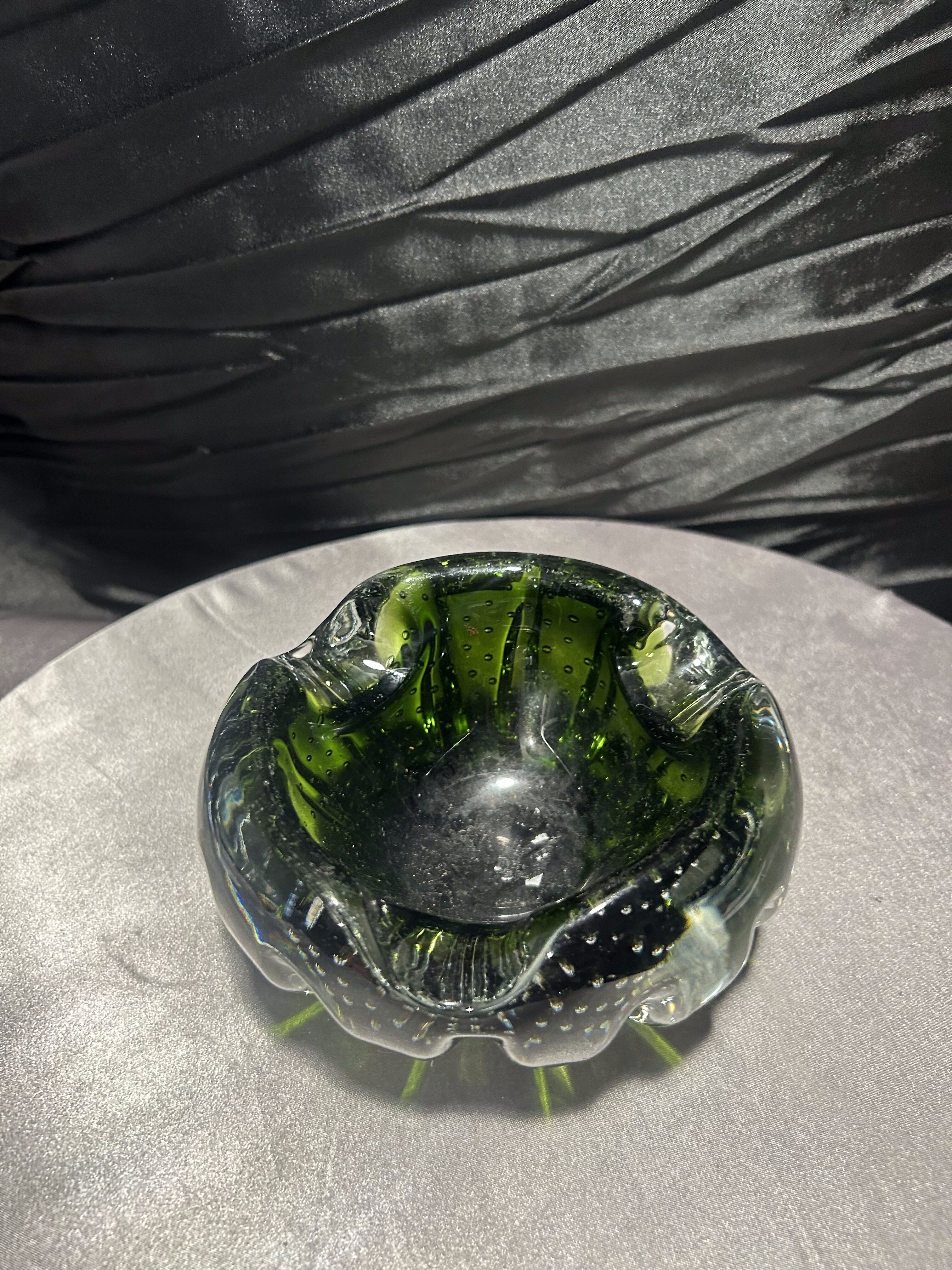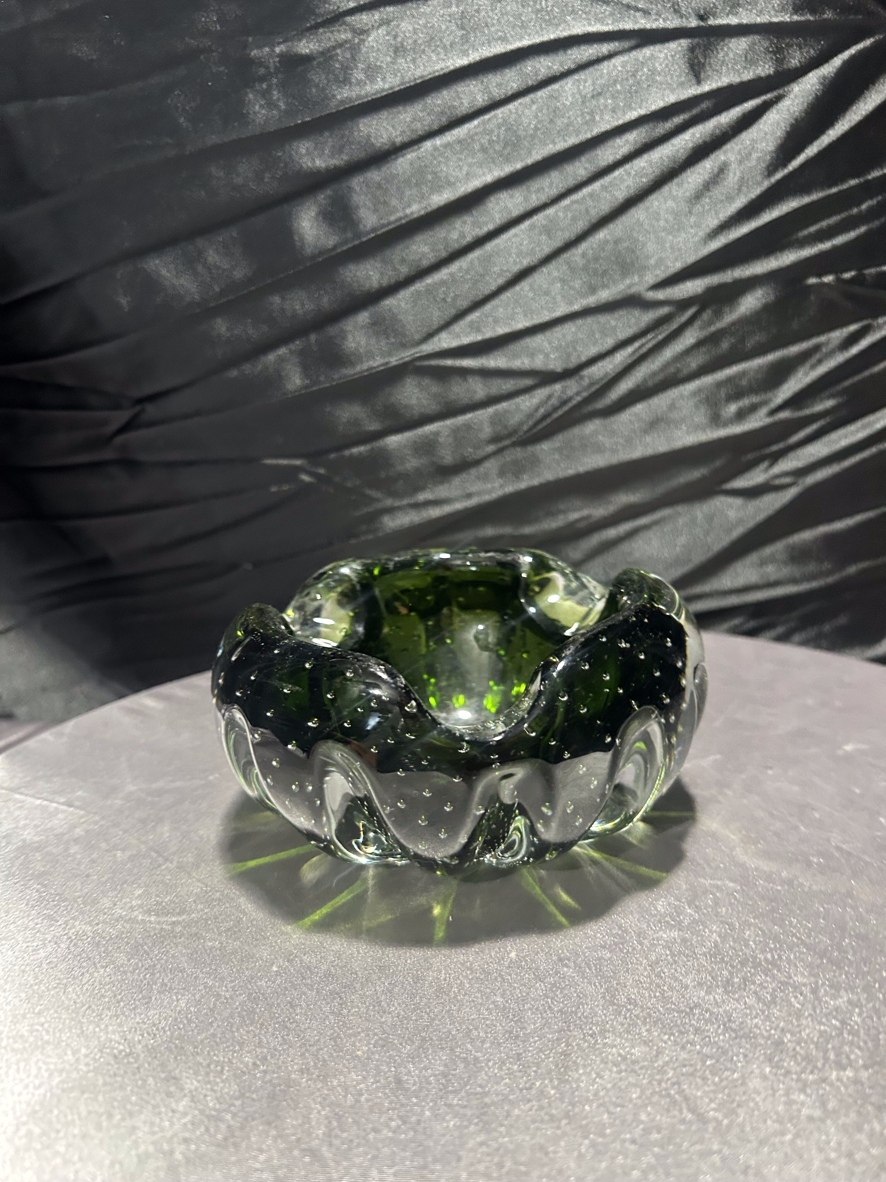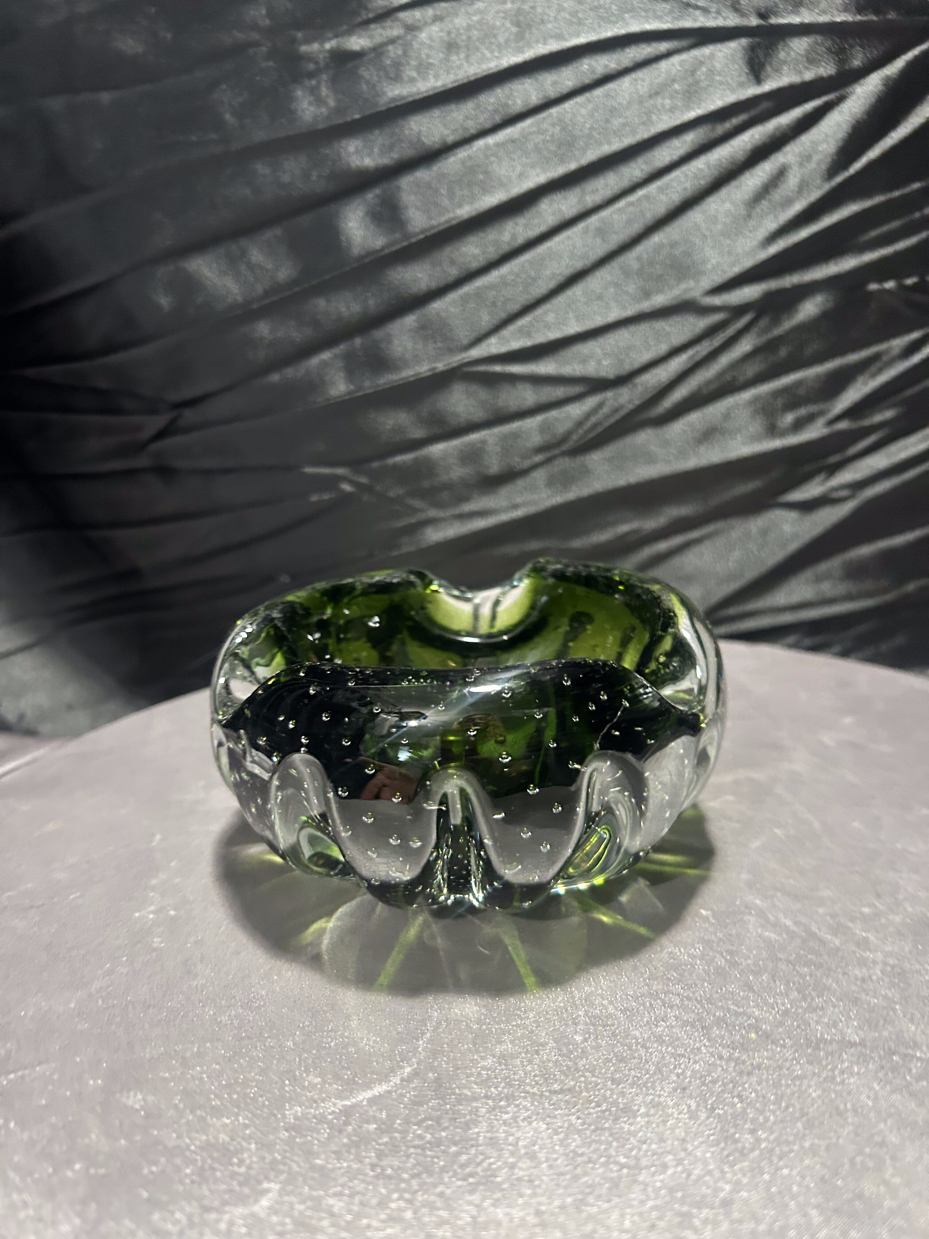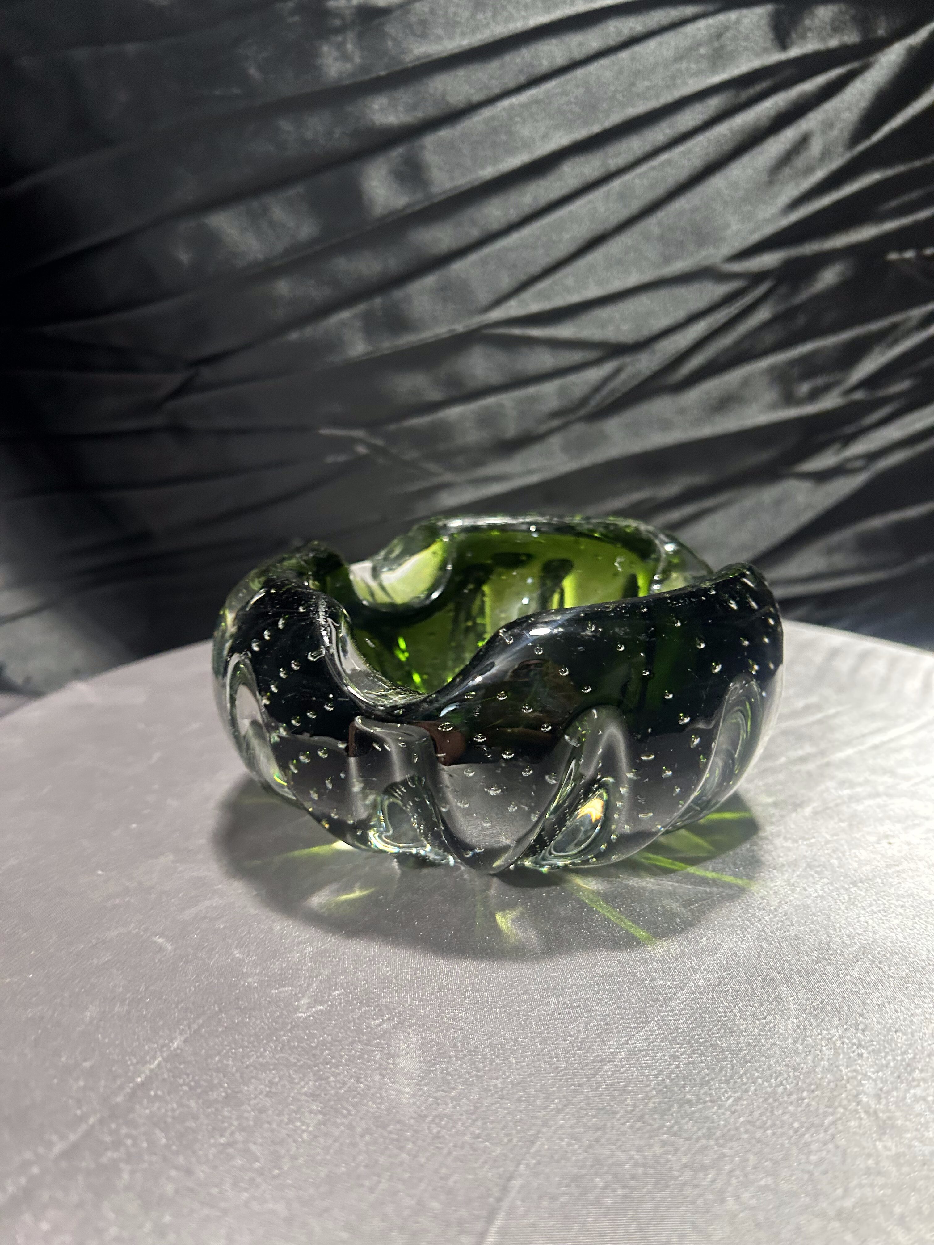 Popielniczka Murano – szkło artystyczne bullicante – zielone szkło