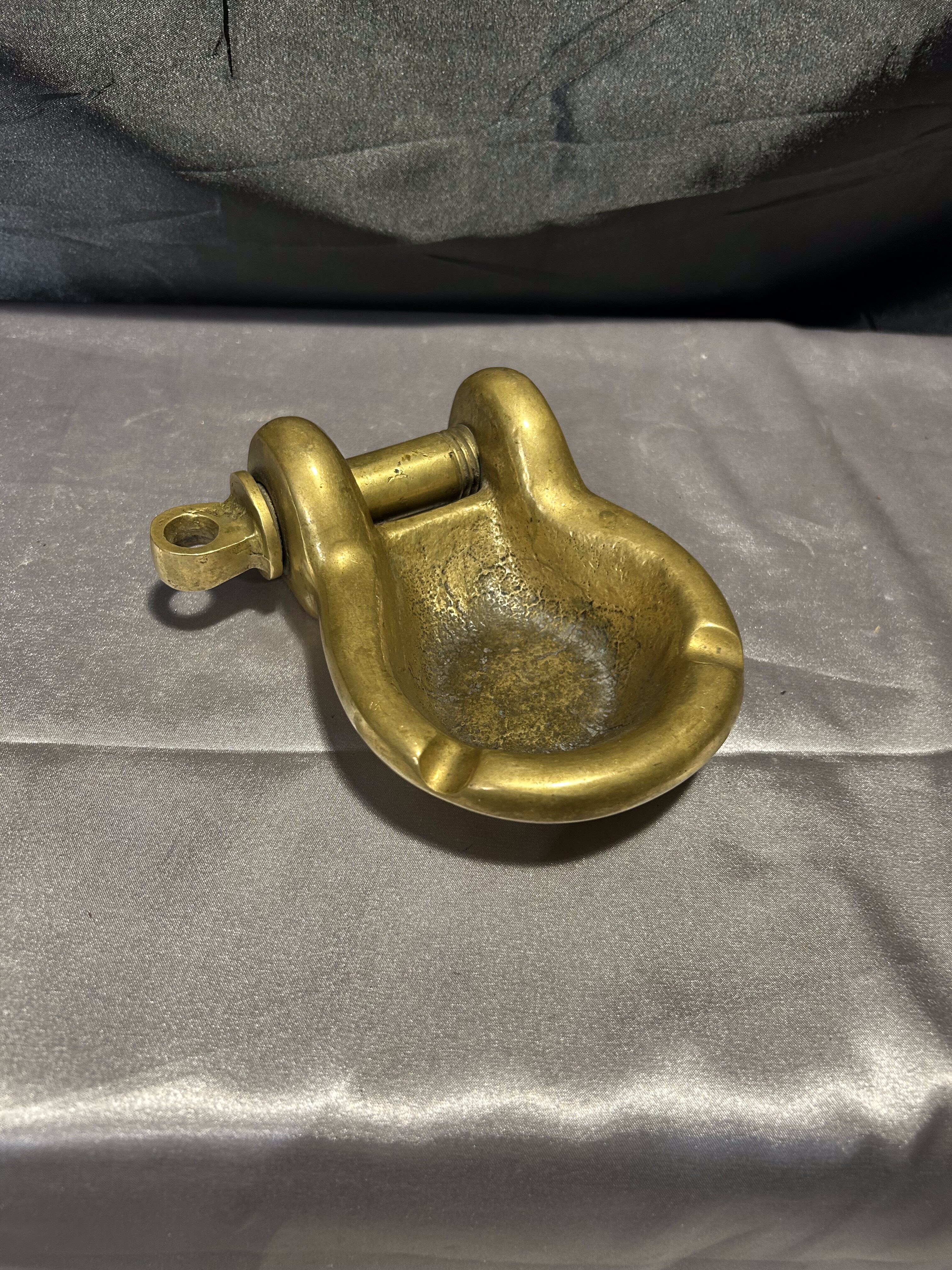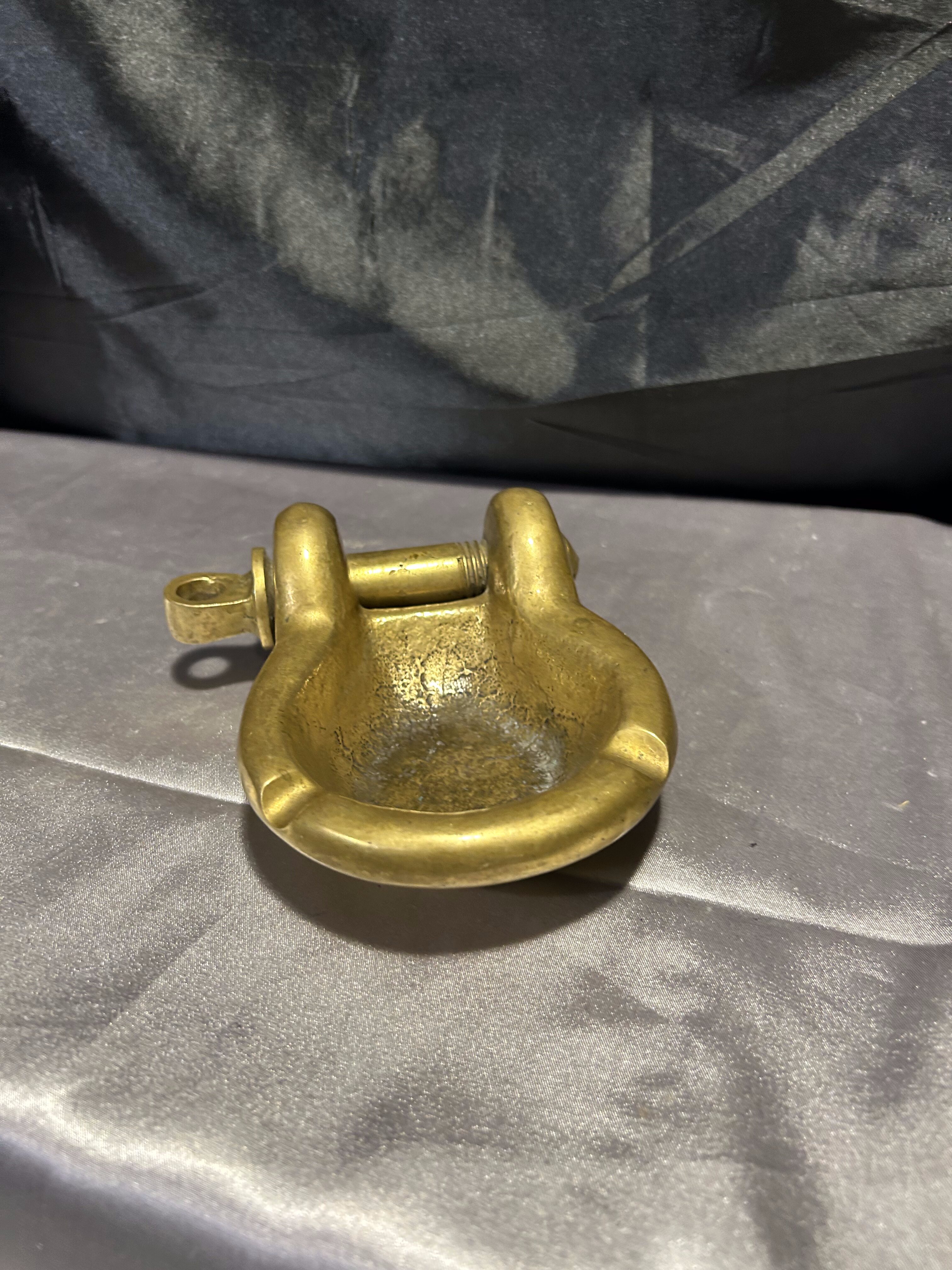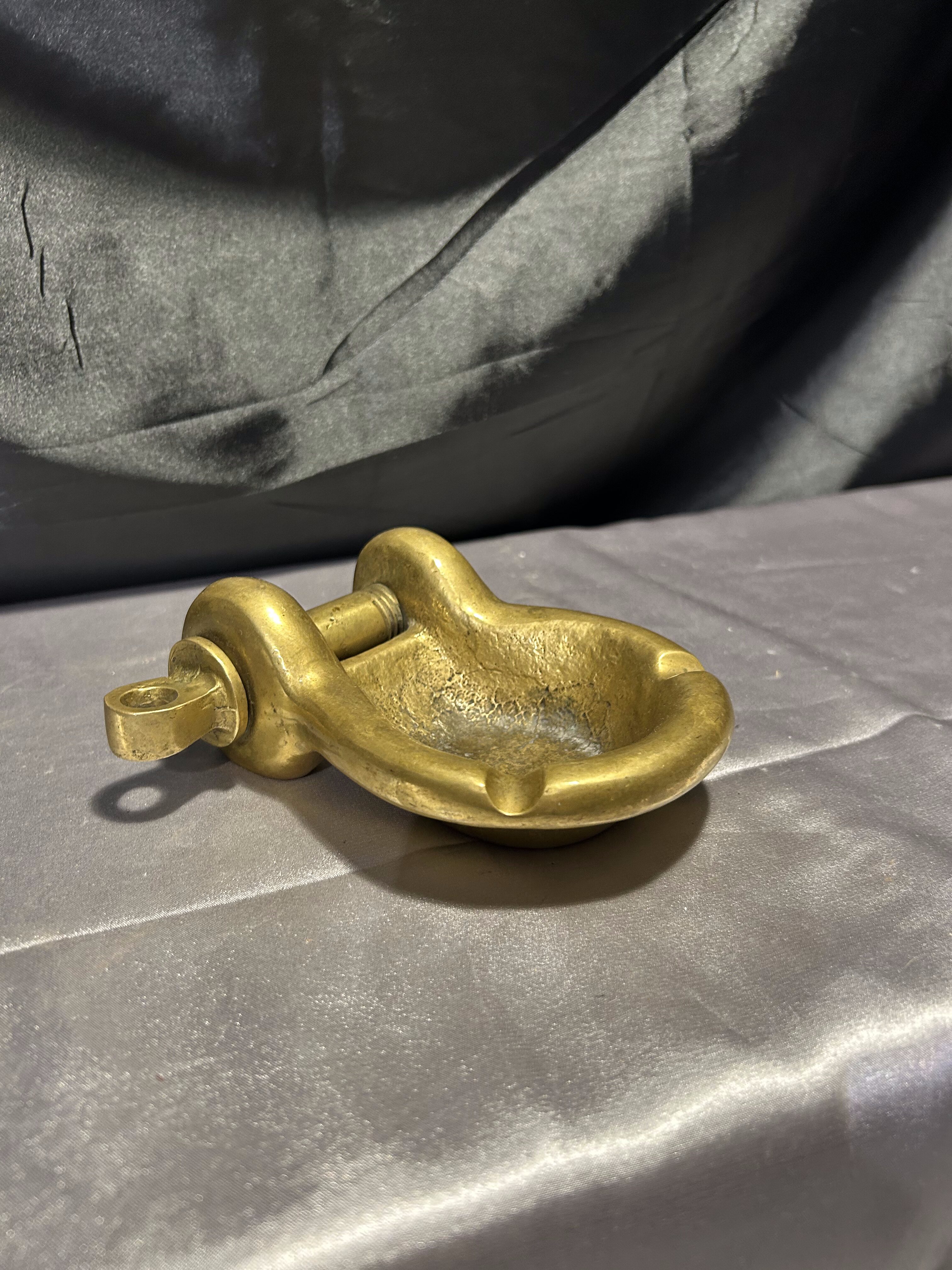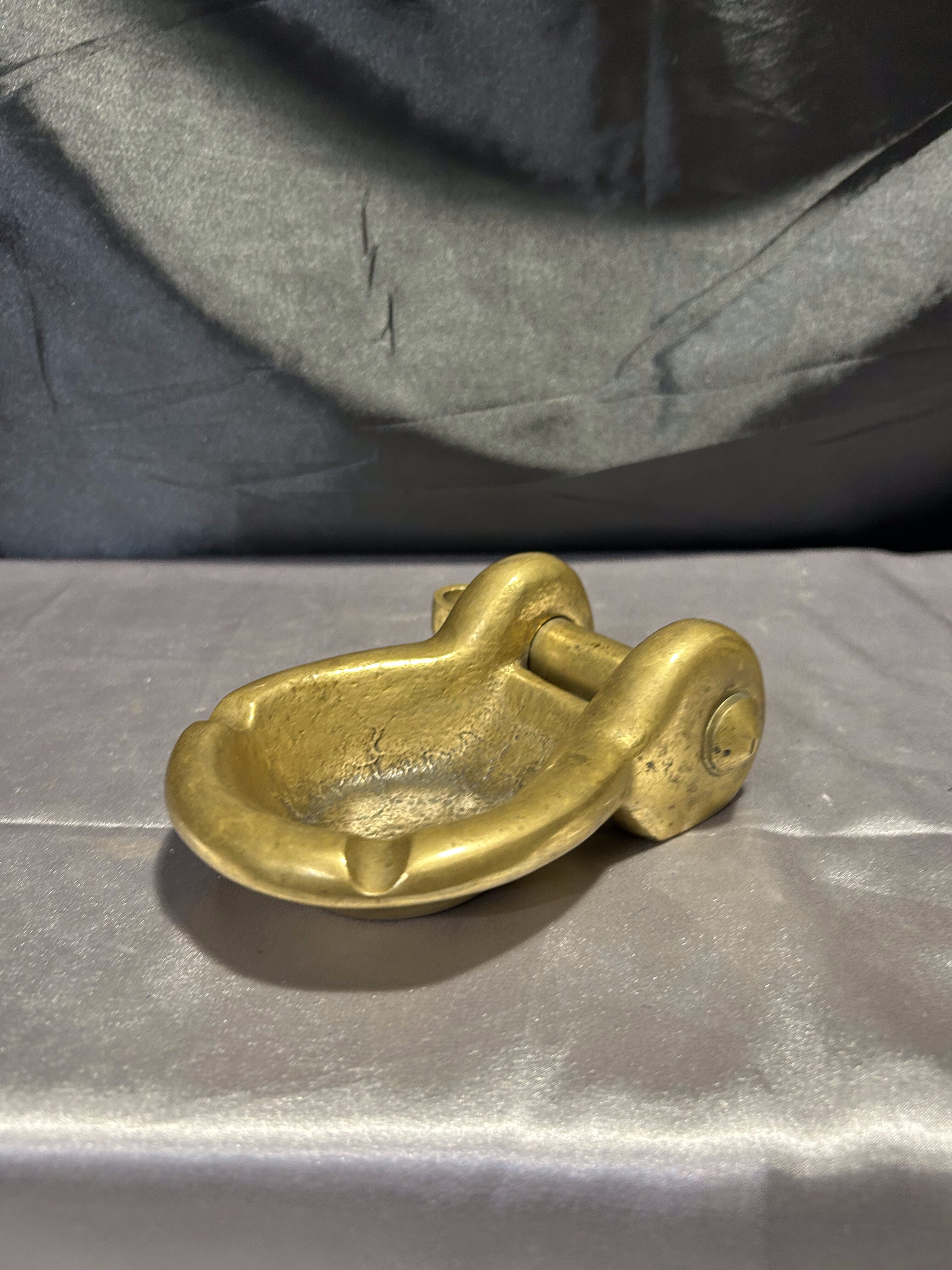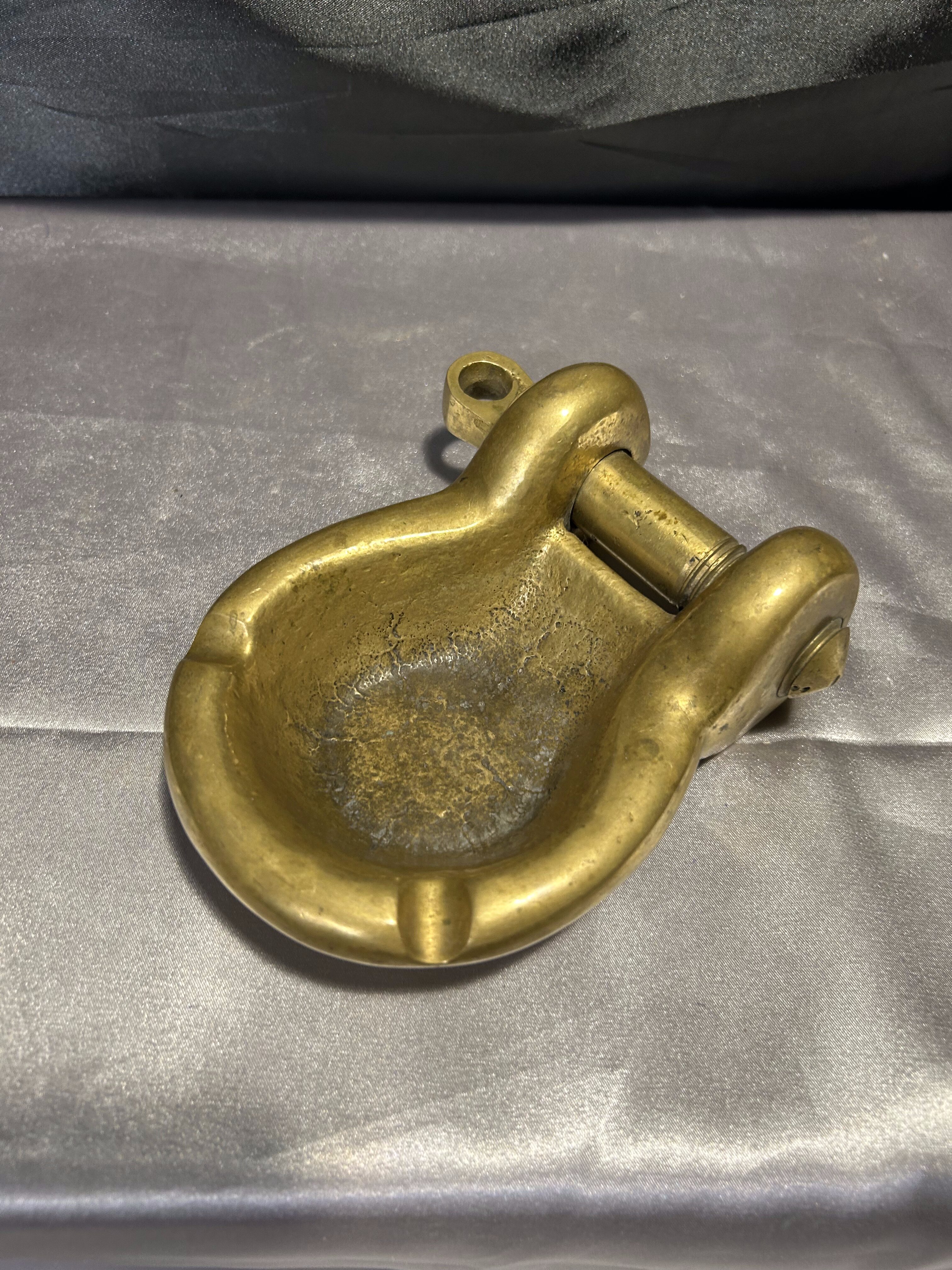 Unikatowa popielniczka w kształcie szekli wykonana z litego mosiądzu, wyróżniająca się rzadko spotykaną ruchomą śrubą. Ten detal sprawia, że przedmiot zyskuje wyjątkowy charakter – to nie tylko funkcjonalny dodatek, ale i kolekcjonerska perełka o wyraźnym marynistycznym rodowodzie. Solidna, ciężka i niezwykle dekoracyjna – doskonale sprawdzi się jako element wystroju w stylu morskim, retro lub industrialnym.