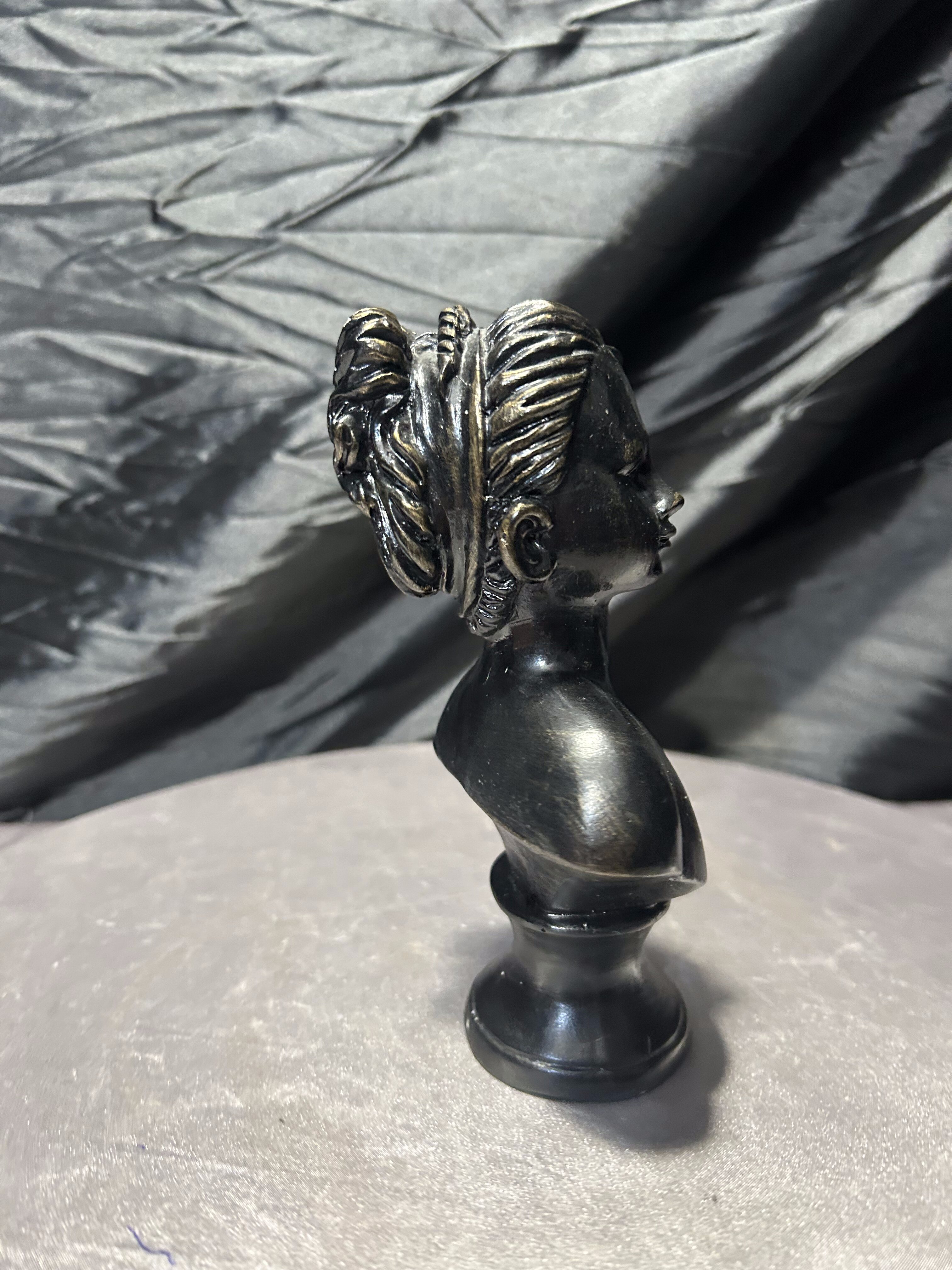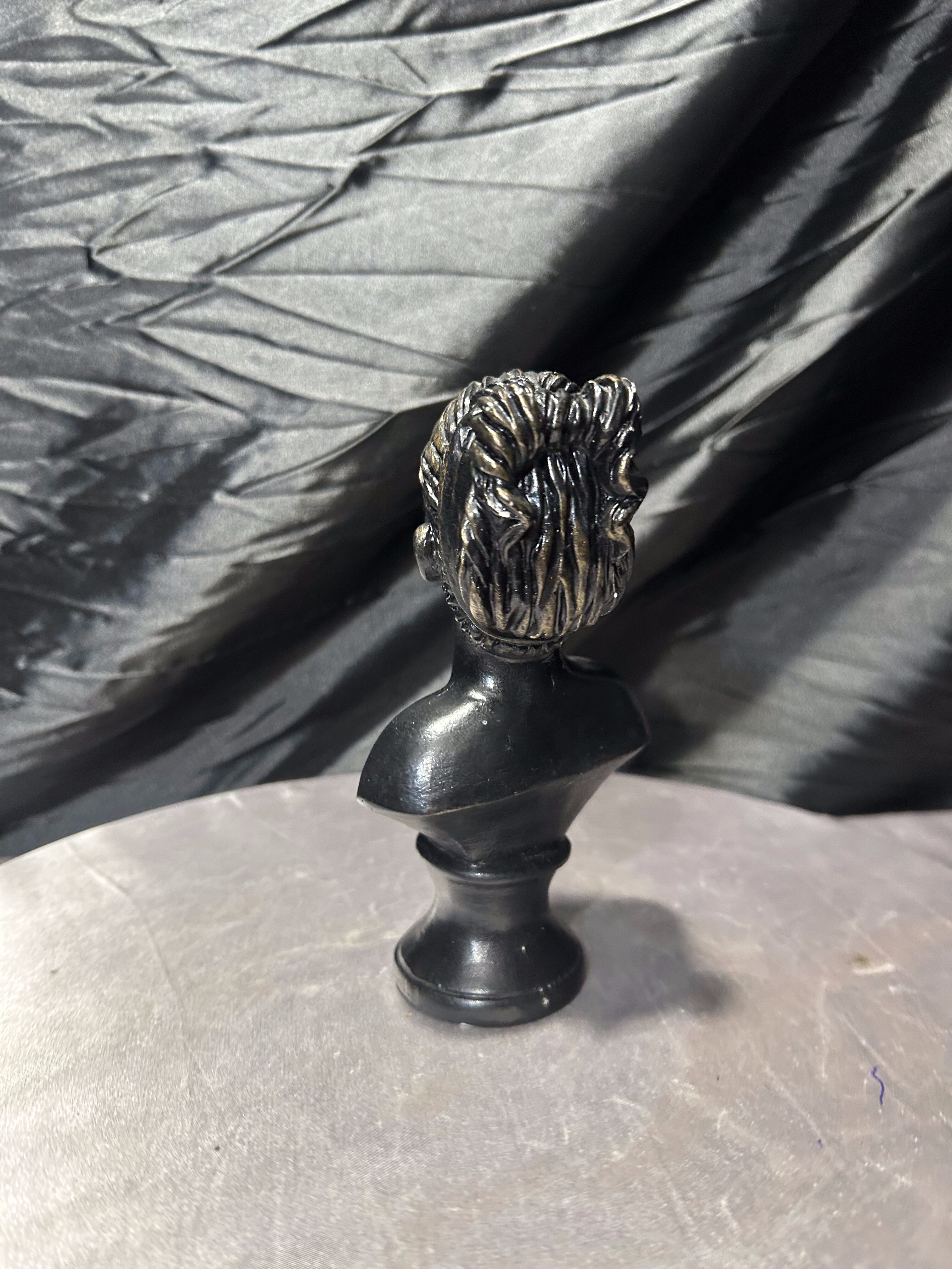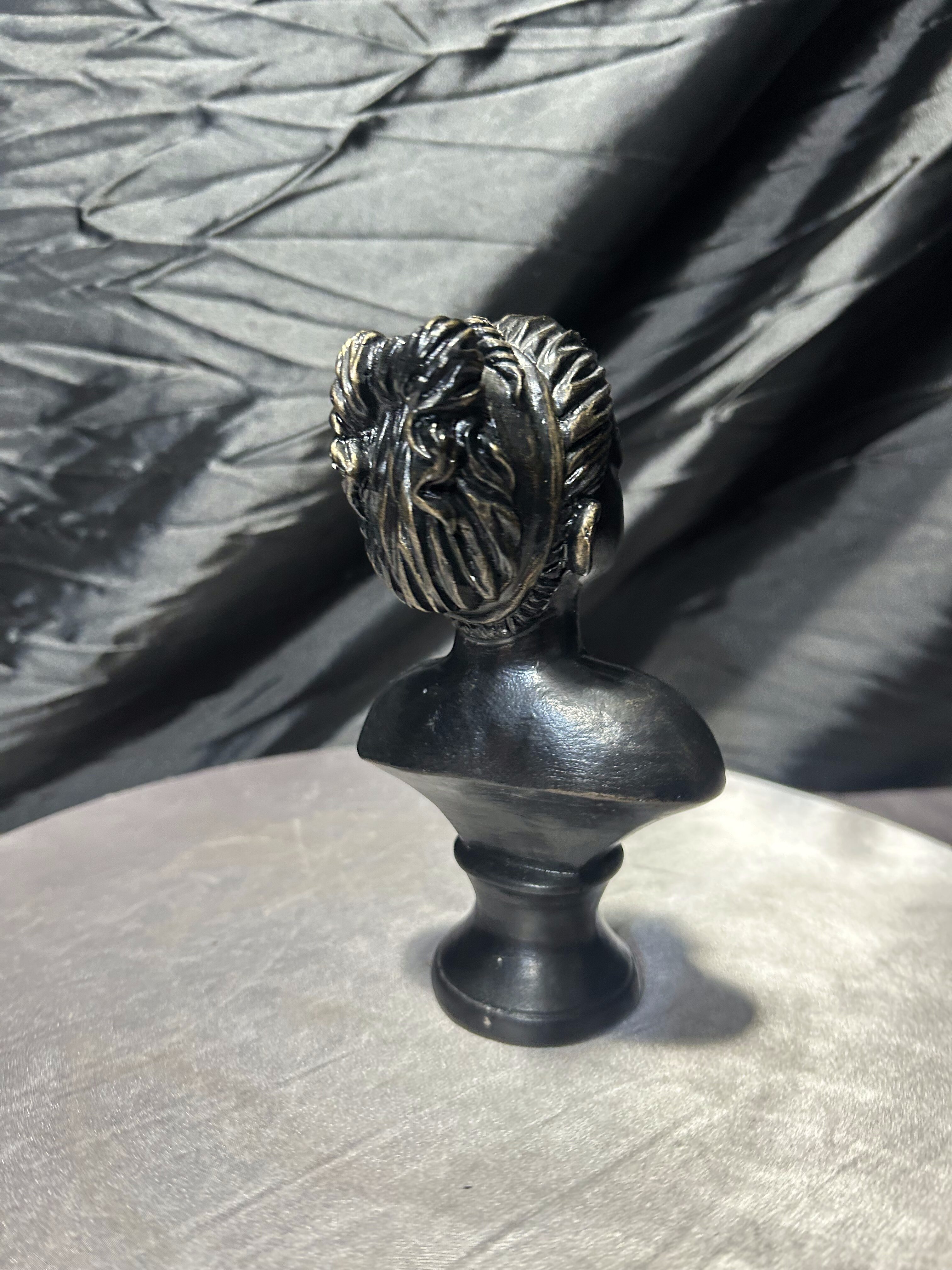Popiersie osadzone jest na niewielkiej, stabilnej podstawie, dzięki czemu doskonale sprawdzi się jako element dekoracyjny na półce, komodzie lub w biblioteczce. To przedmiot inspirowany estetyką rzeźby akademickiej, dobrze wpisujący się zarówno w klasyczne, jak i eklektyczne wnętrza.