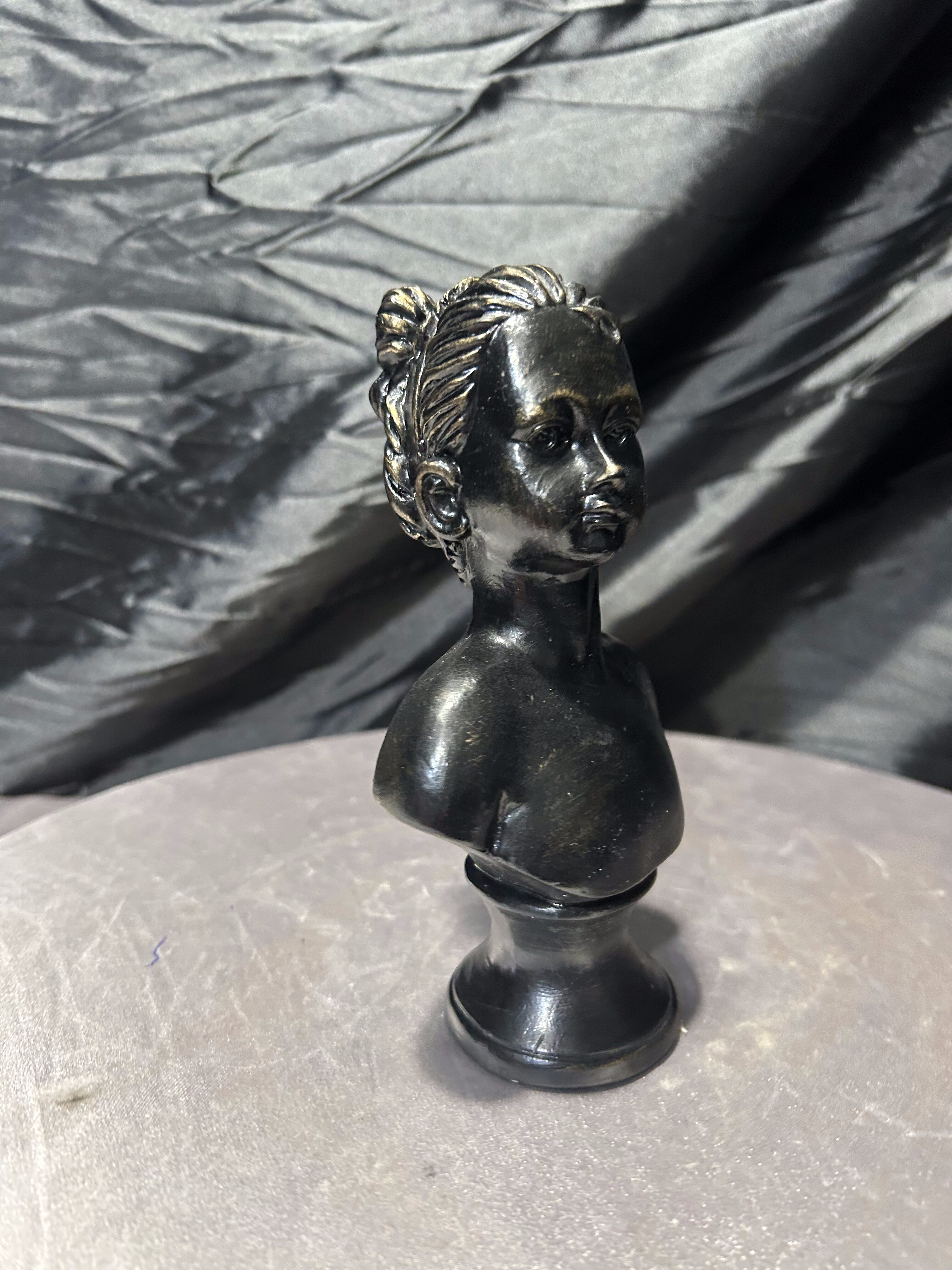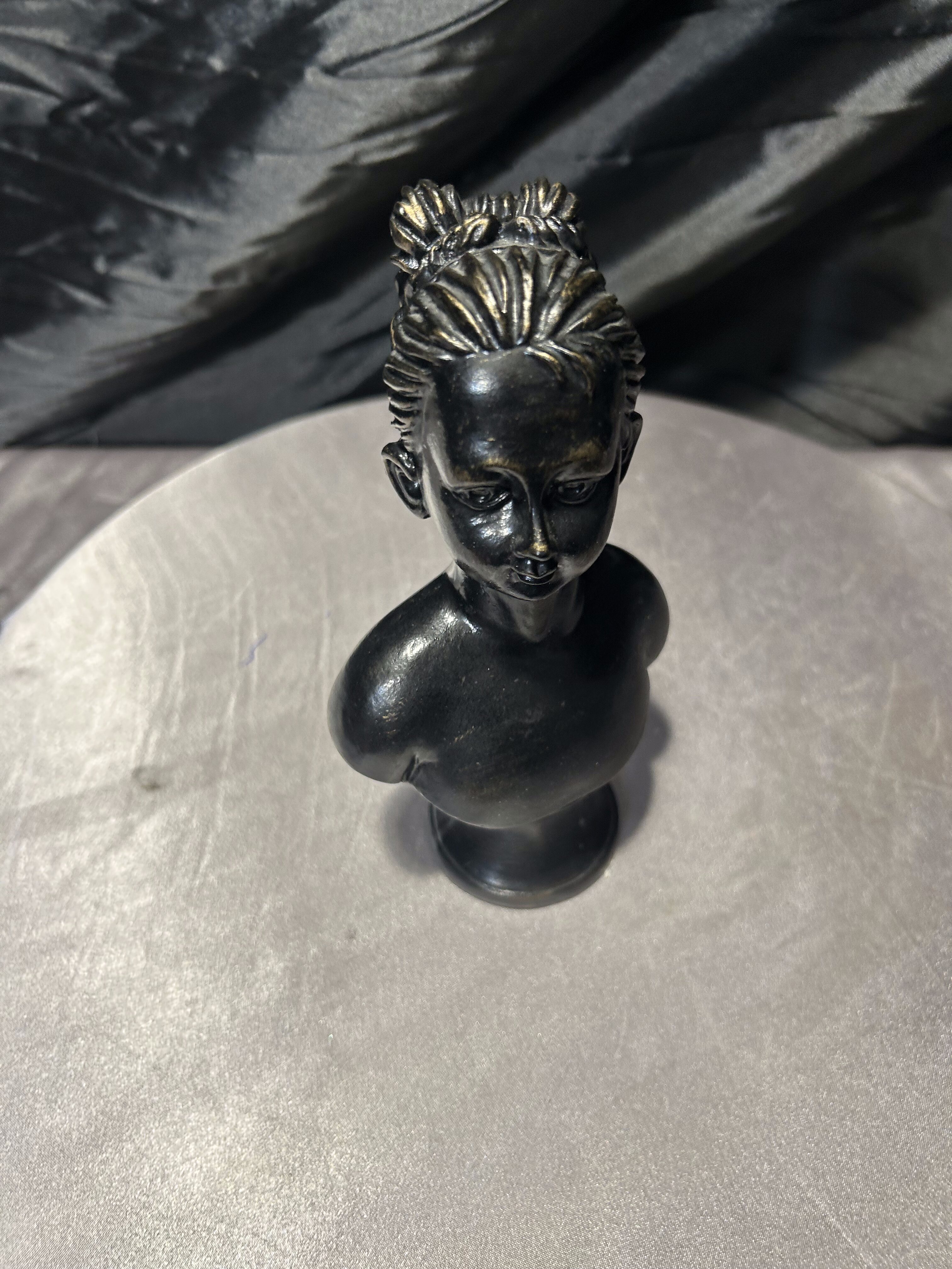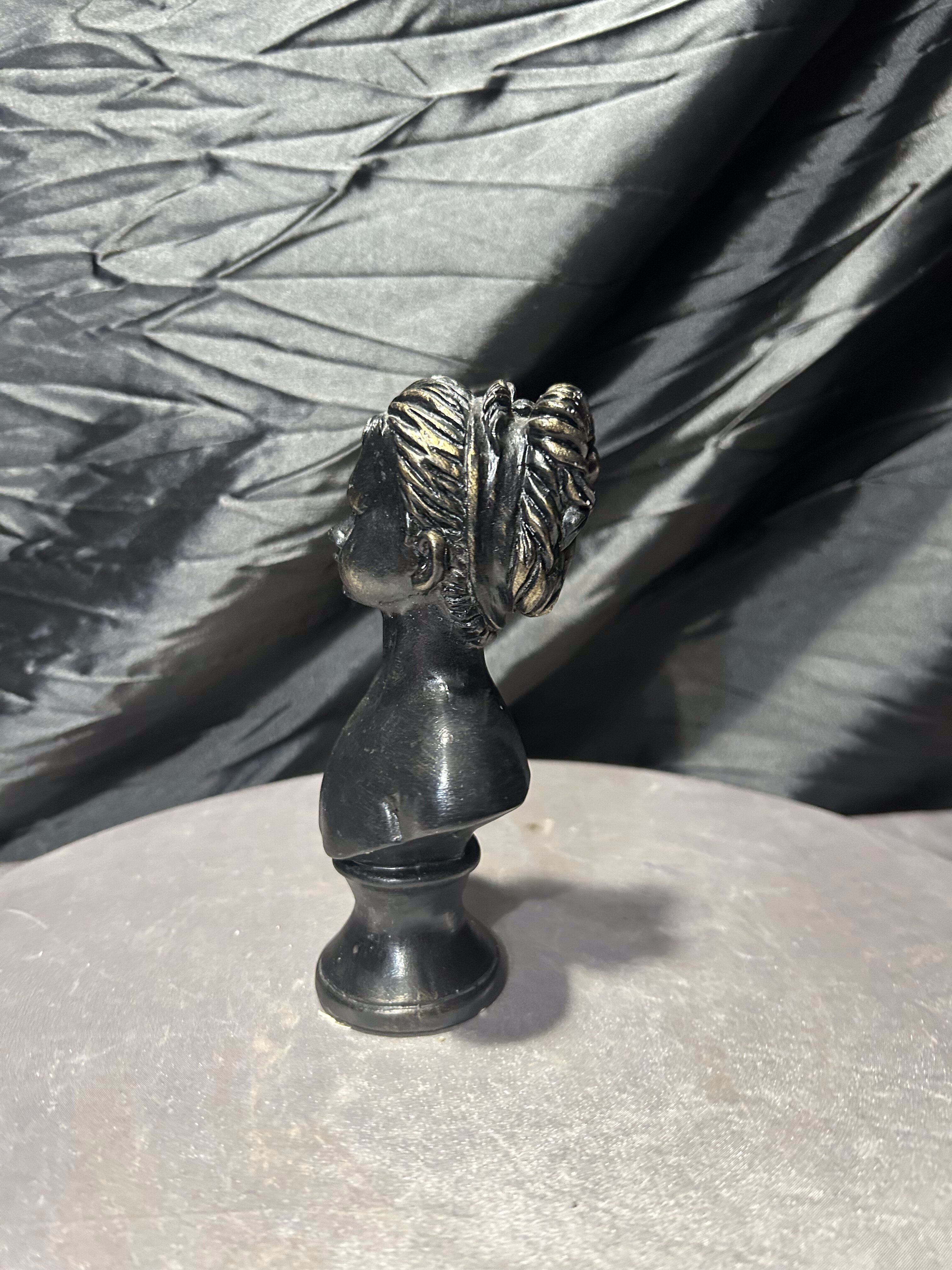 Popiersie osadzone jest na niewielkiej, stabilnej podstawie, dzięki czemu doskonale sprawdzi się jako element dekoracyjny na półce, komodzie lub w biblioteczce. To przedmiot inspirowany estetyką rzeźby akademickiej, dobrze wpisujący się zarówno w klasyczne, jak i eklektyczne wnętrza.