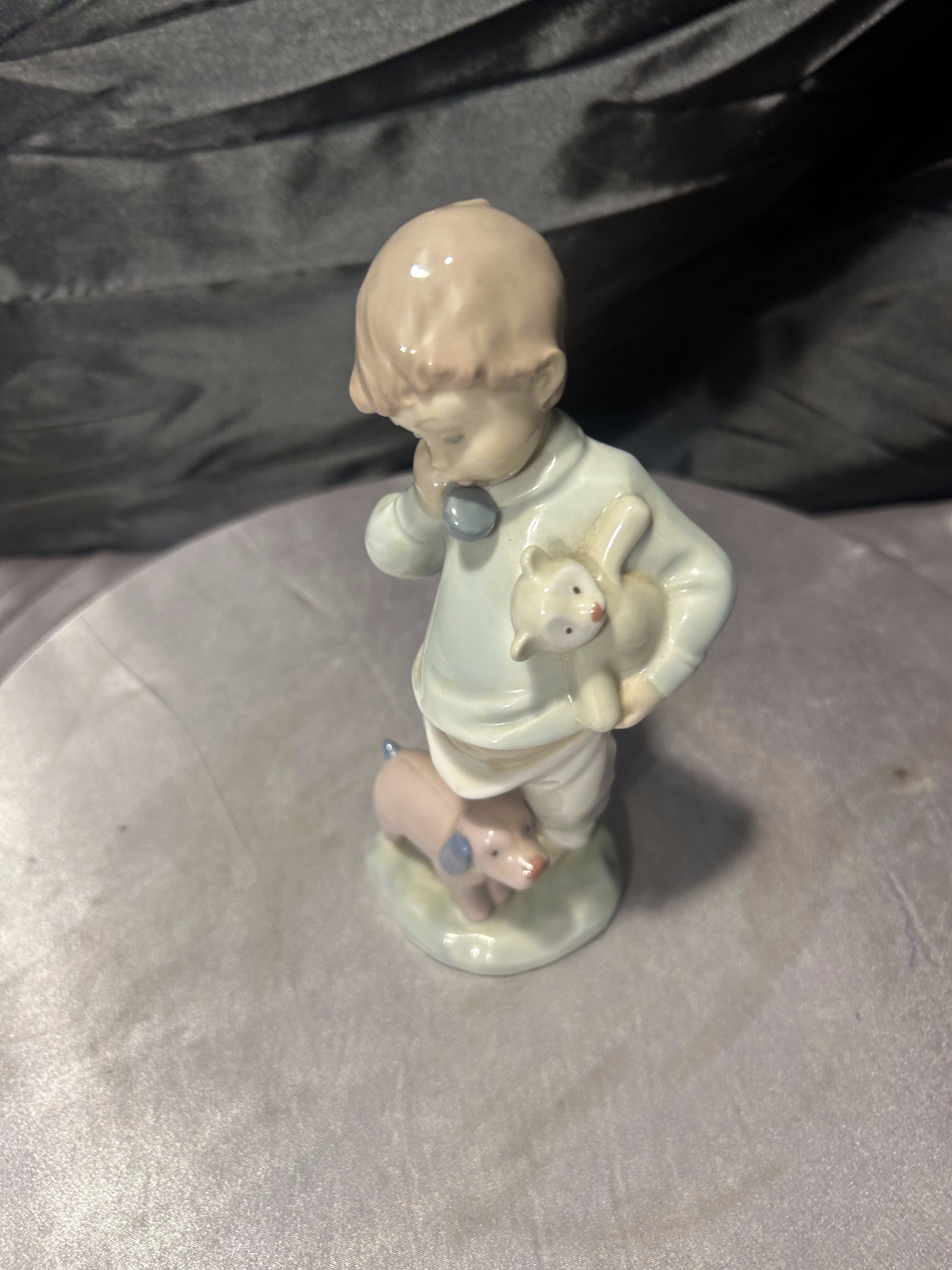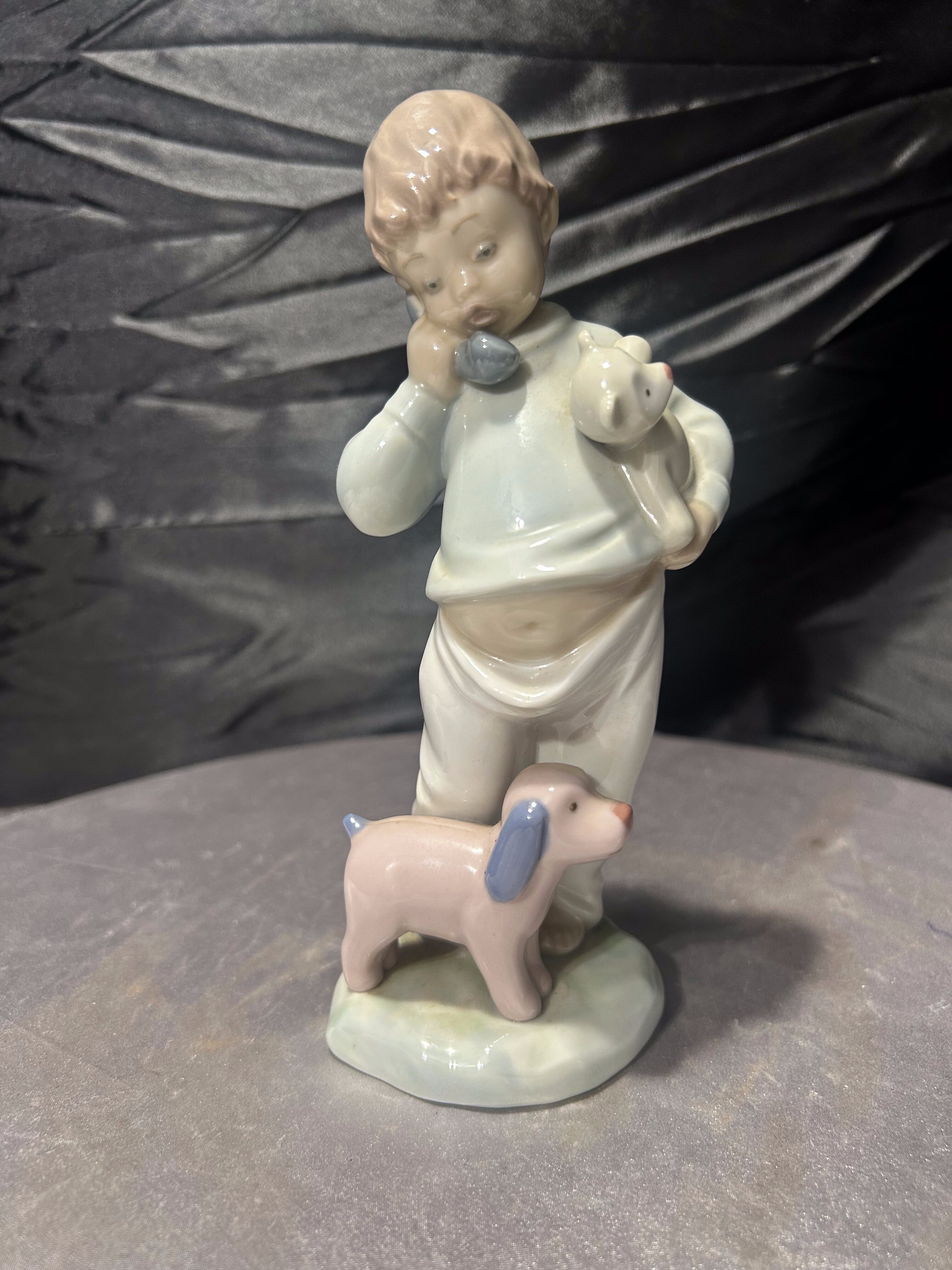 Porcelanowa figurka chłopczyk z pieskiem NAO by Lladró sygnowana 1987