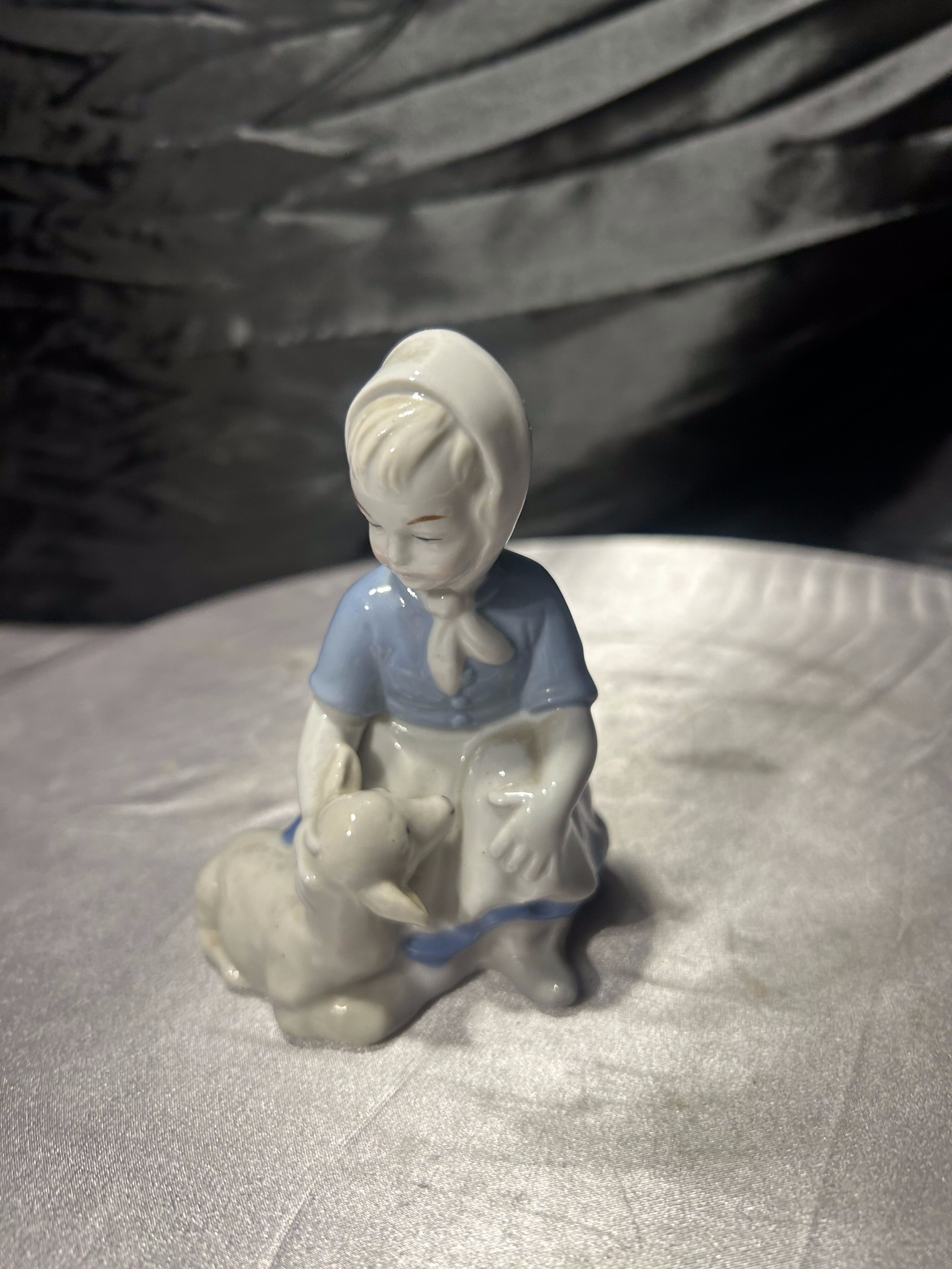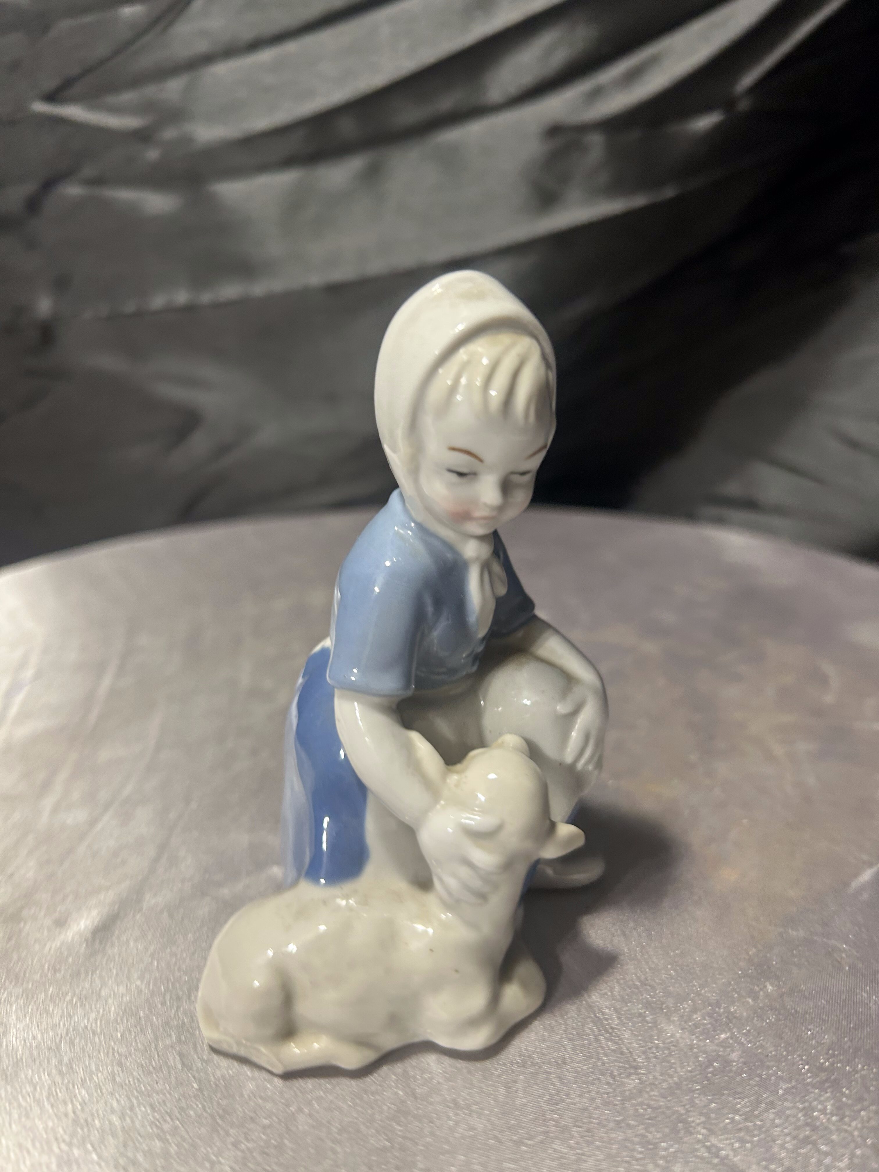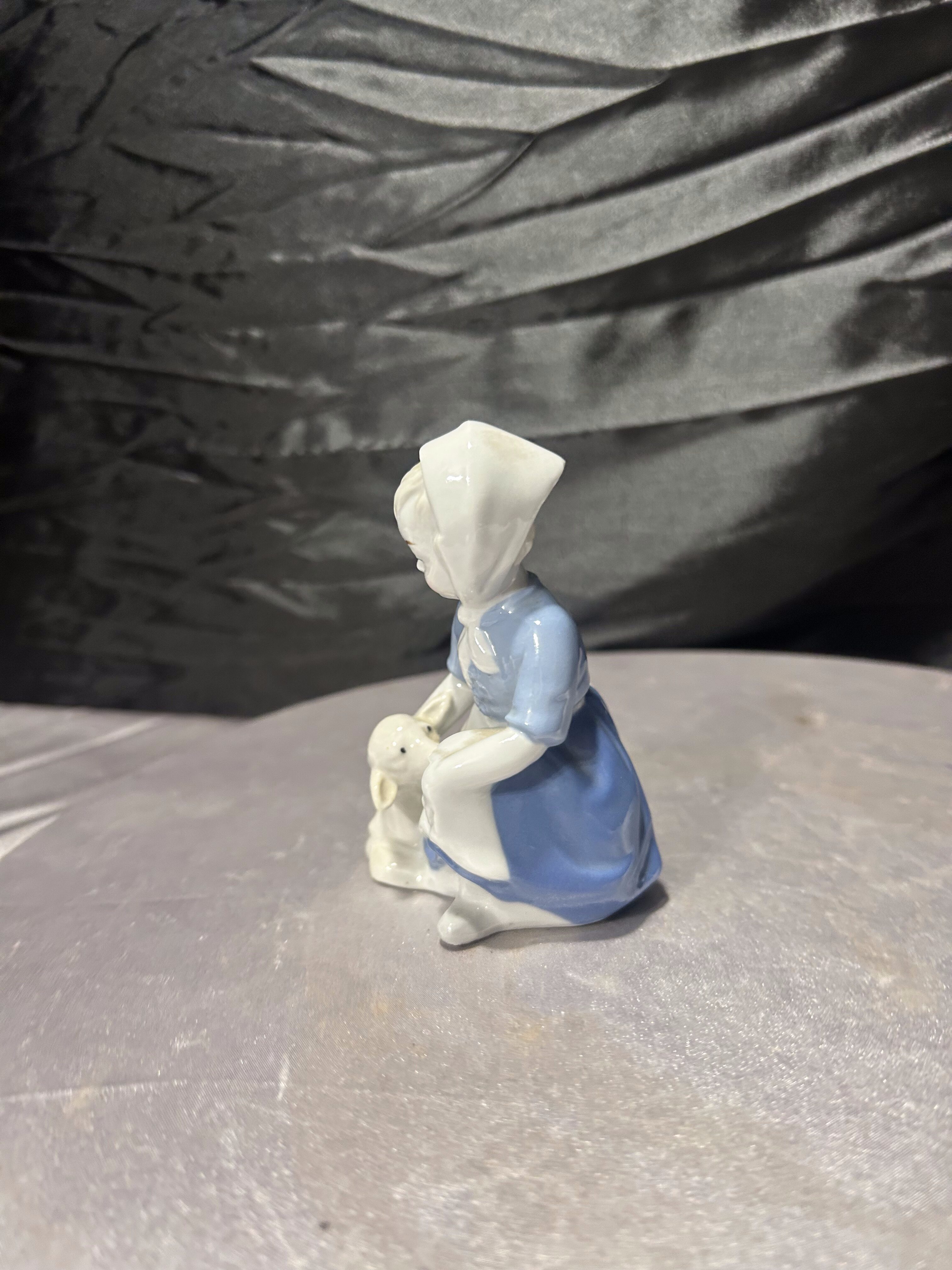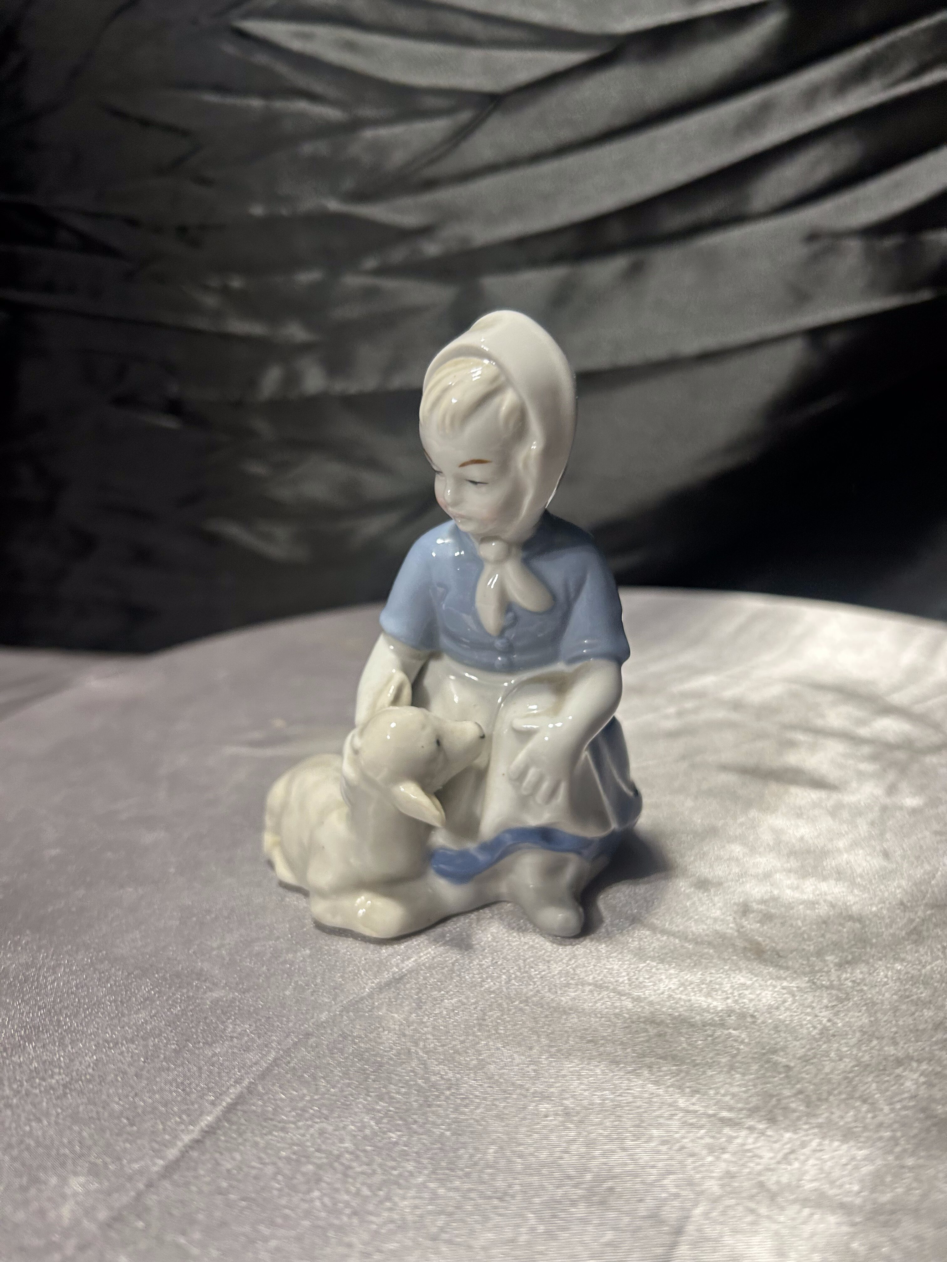 Porcelanowa figurka – dziewczynka z owieczką – GDR – porcelana niemiecka – styl klasyczny