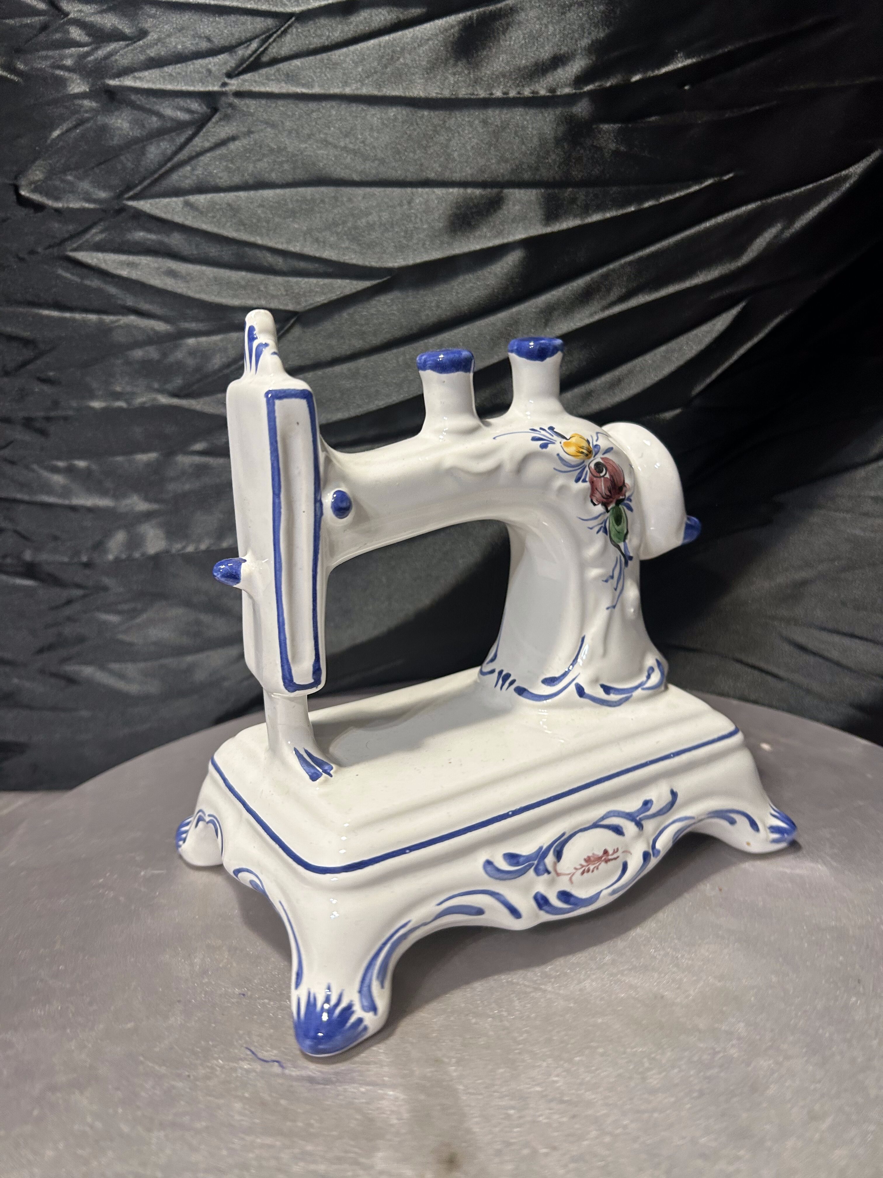 Porcelanowa figurka maszyny do szycia – dekoracja w stylu retro