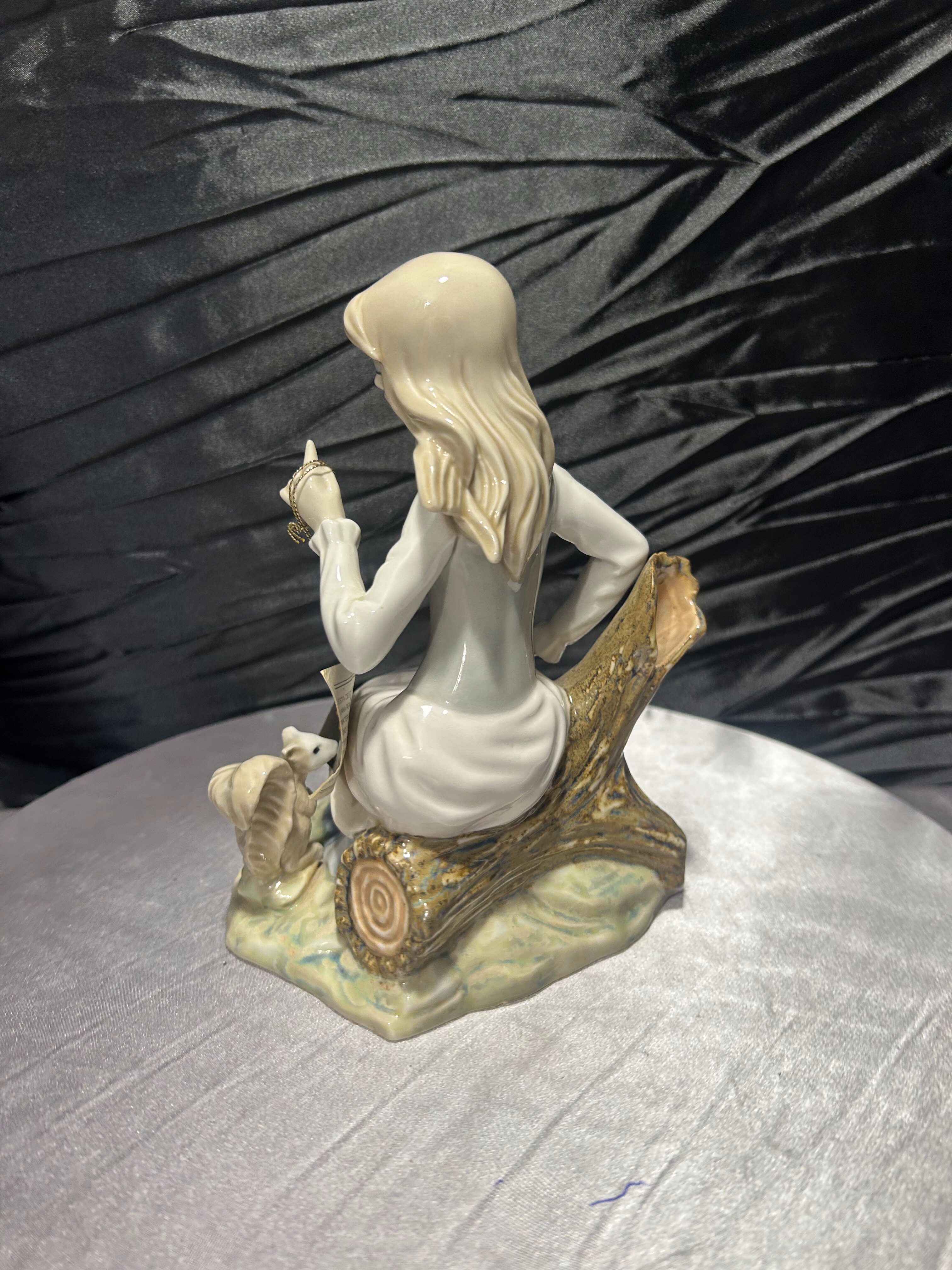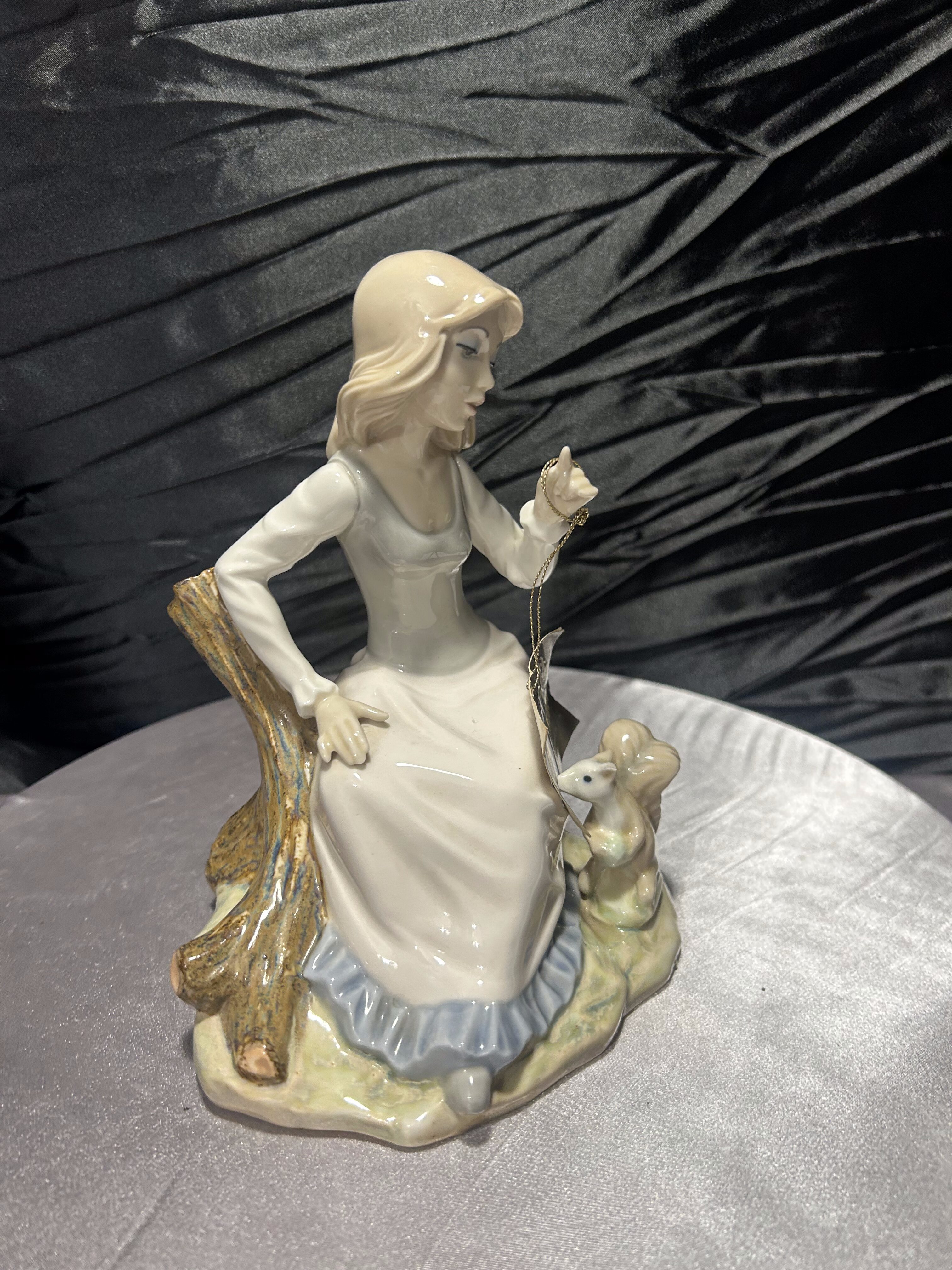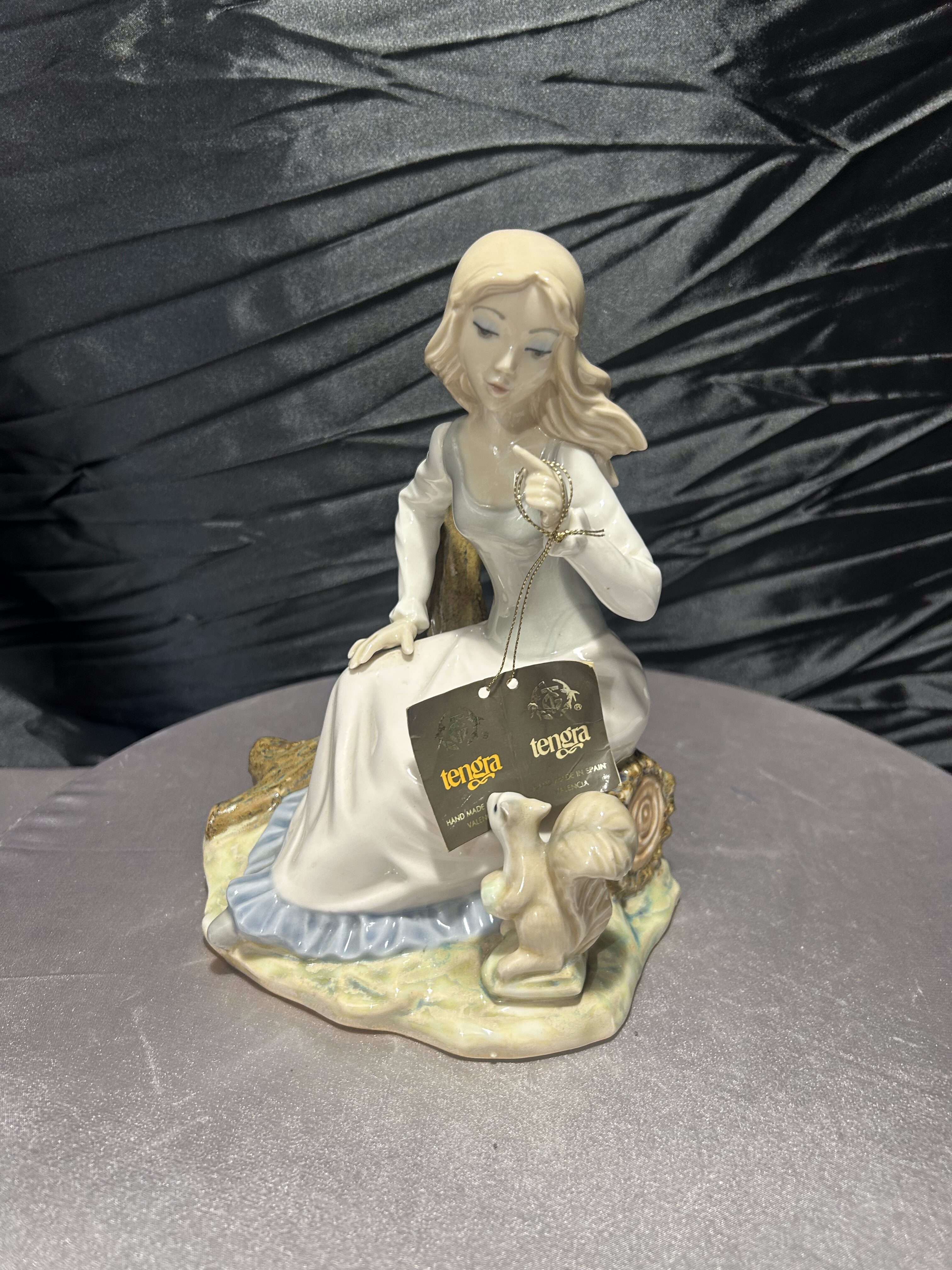 Porcelanowa figurka Tengra – dziewczyna z wiewiórką – ręczne wykonanie, Hiszpania