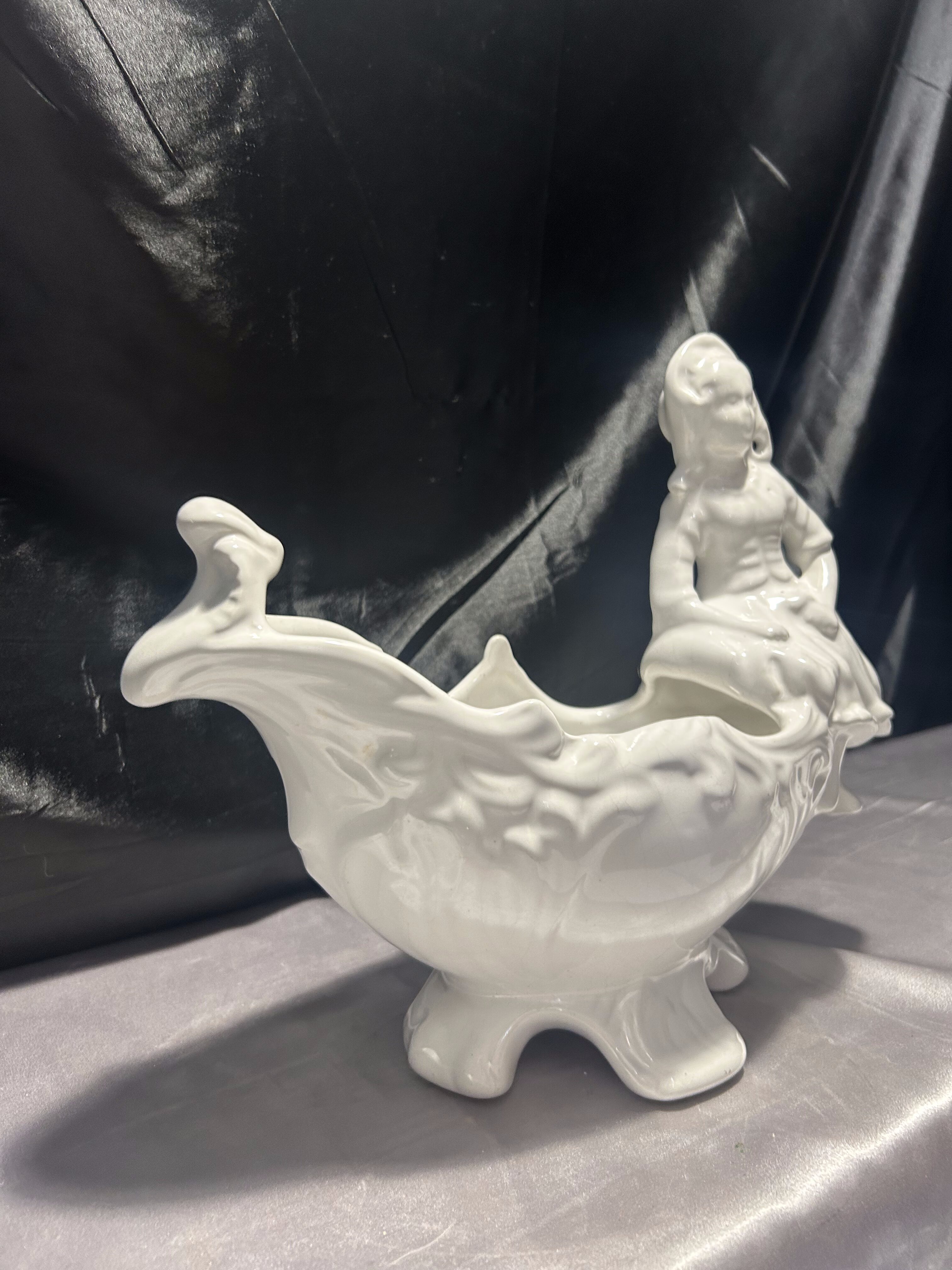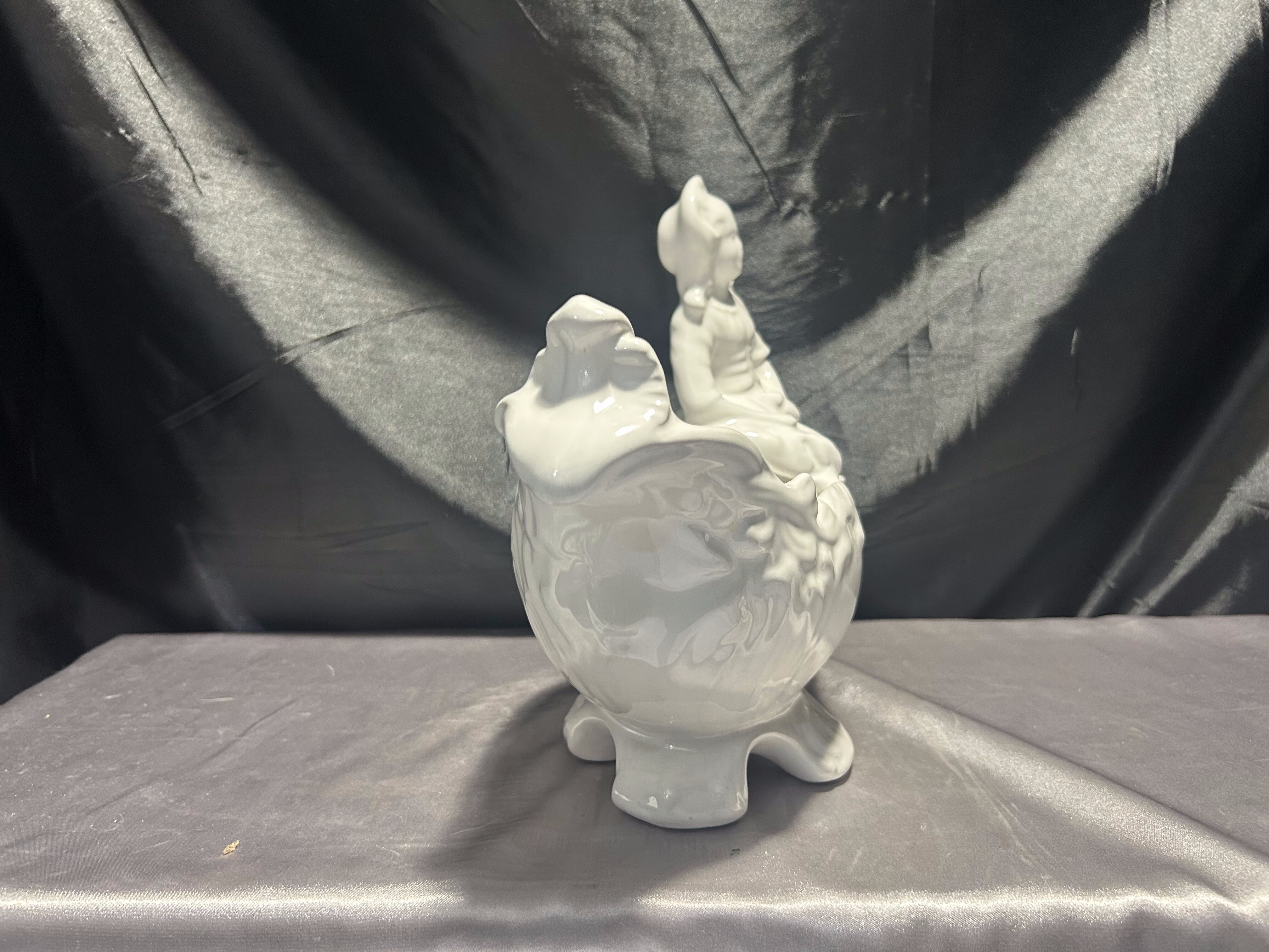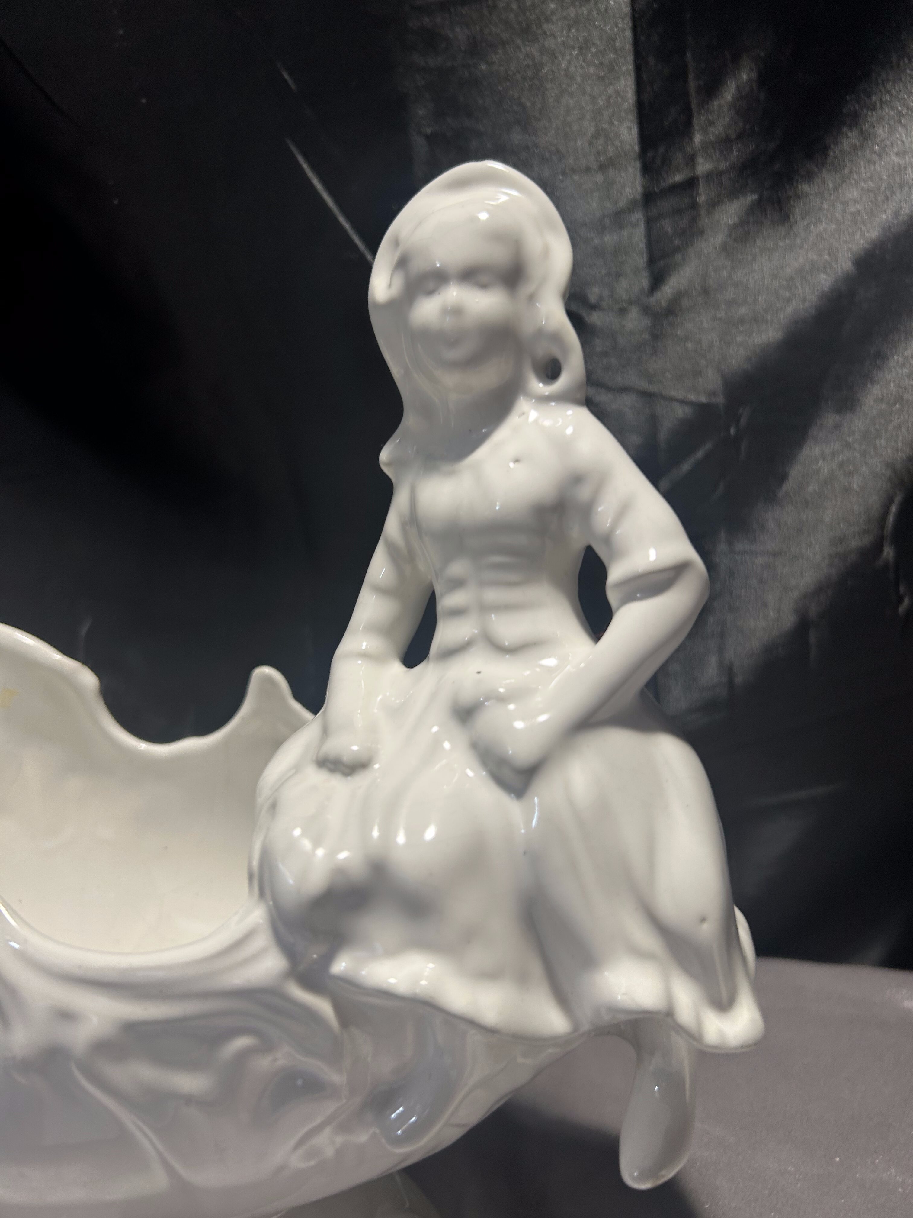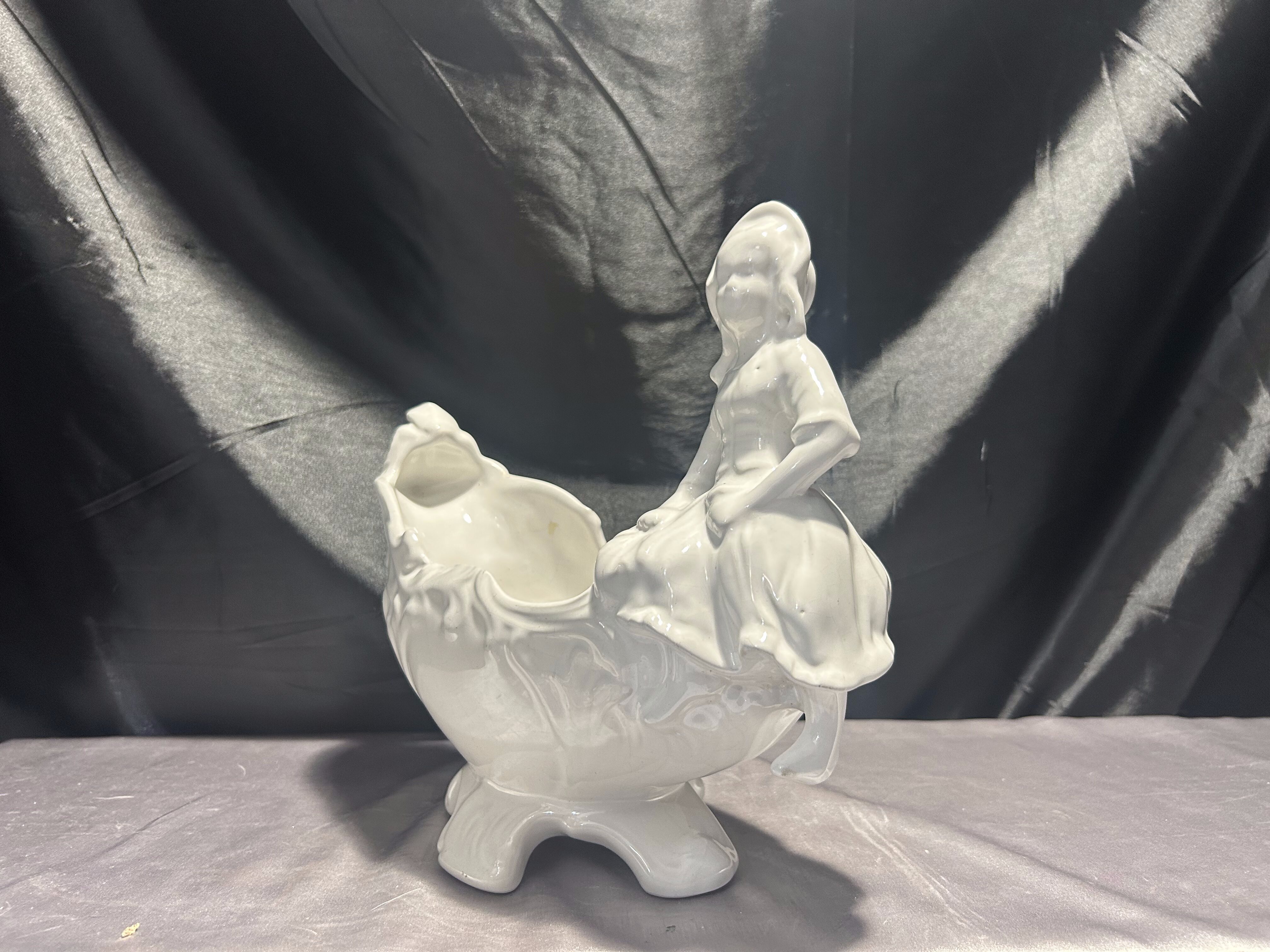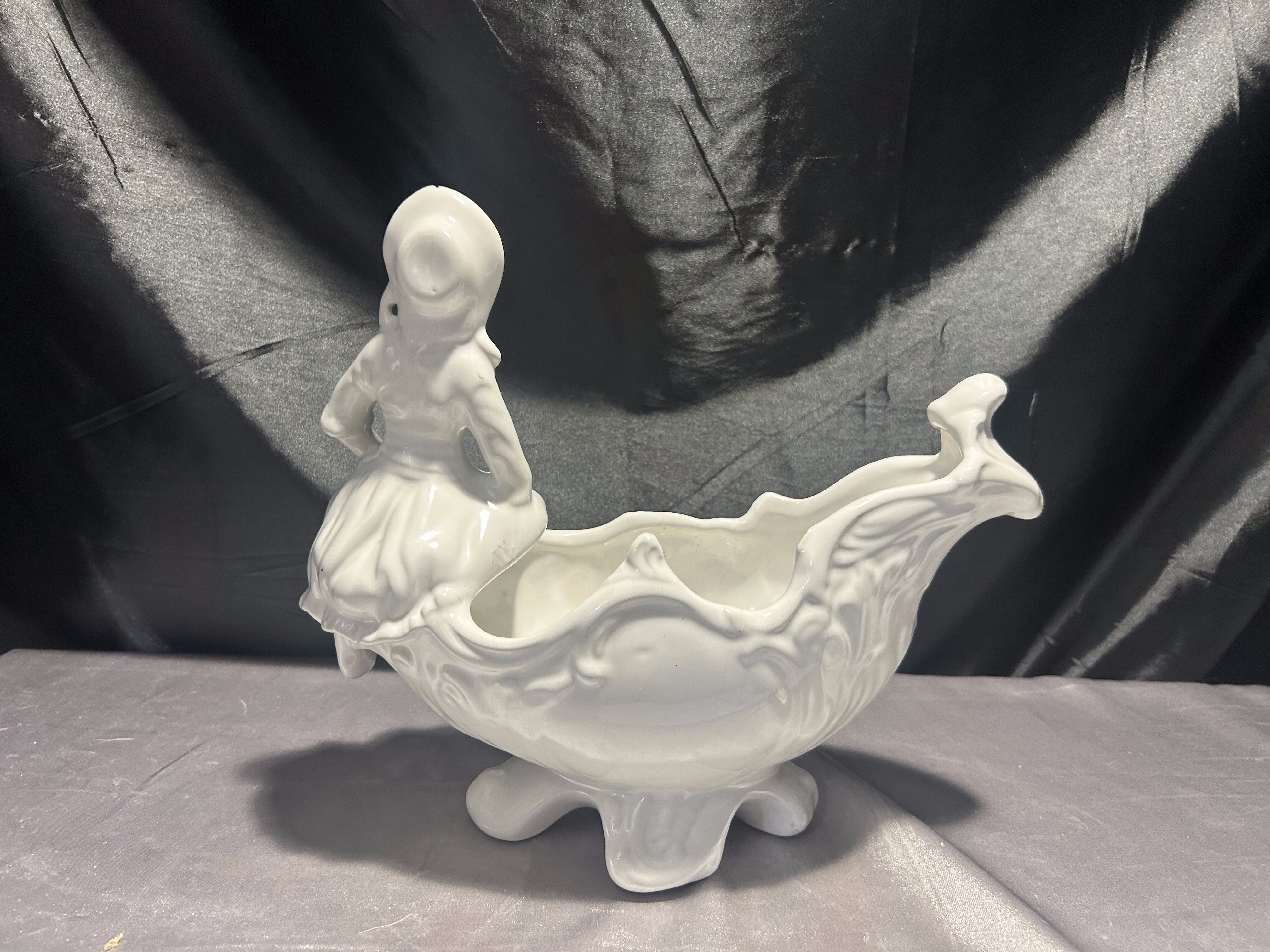 Porcelanowy kwietnik figuralny – z postacią siedzącej dziewczynki – biały