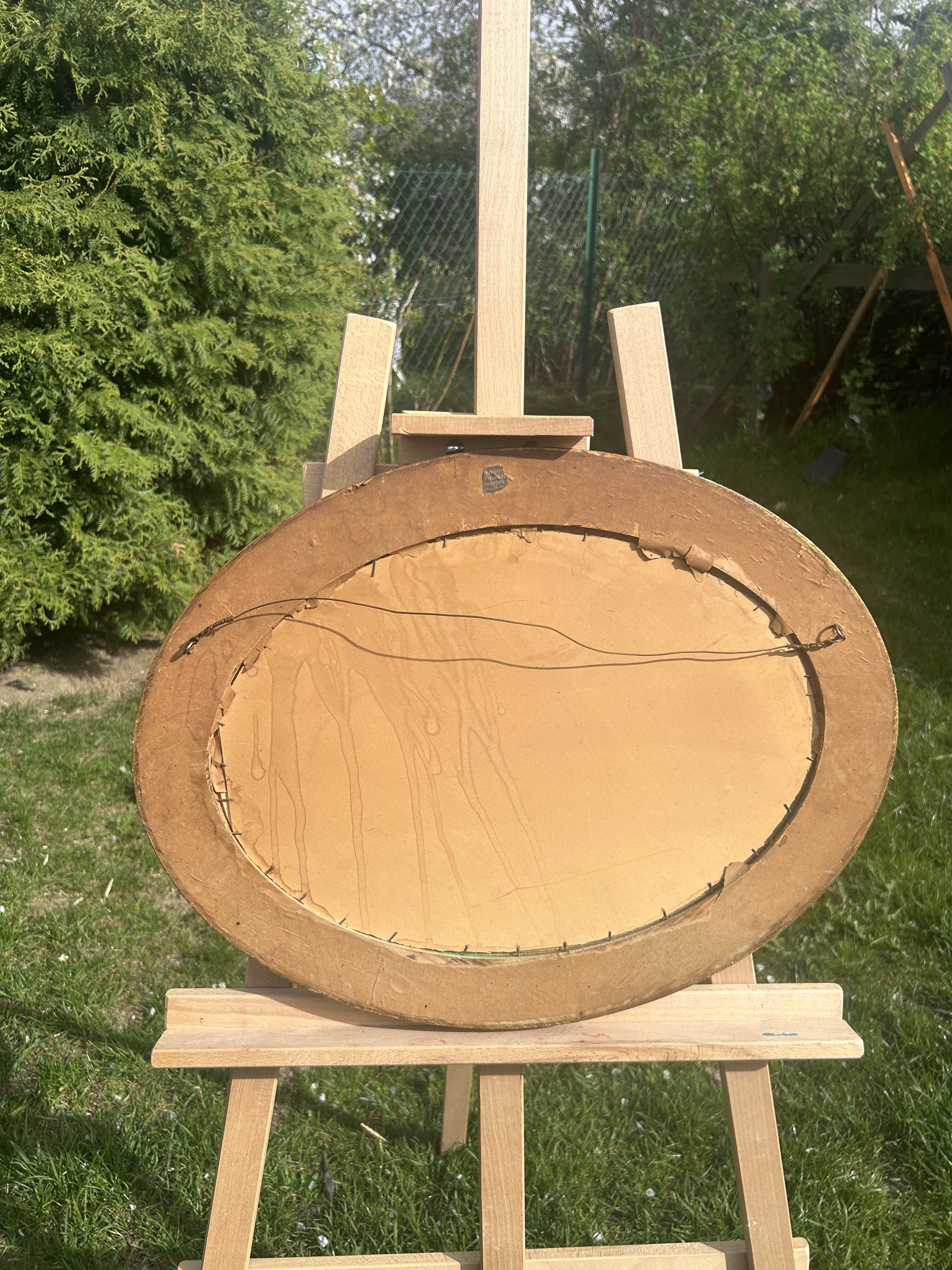 Portret w owalnej ramie to wyjątkowy artefakt z przeszłości, który może stanowić fascynujący element dekoracyjny lub kolekcjonerski. Zachowana patyna, oryginalne szkło i wyrafinowane rzeźbienia sprawiają, że jest to przedmiot o wyjątkowej estetyce i emocjonalnej wartości.