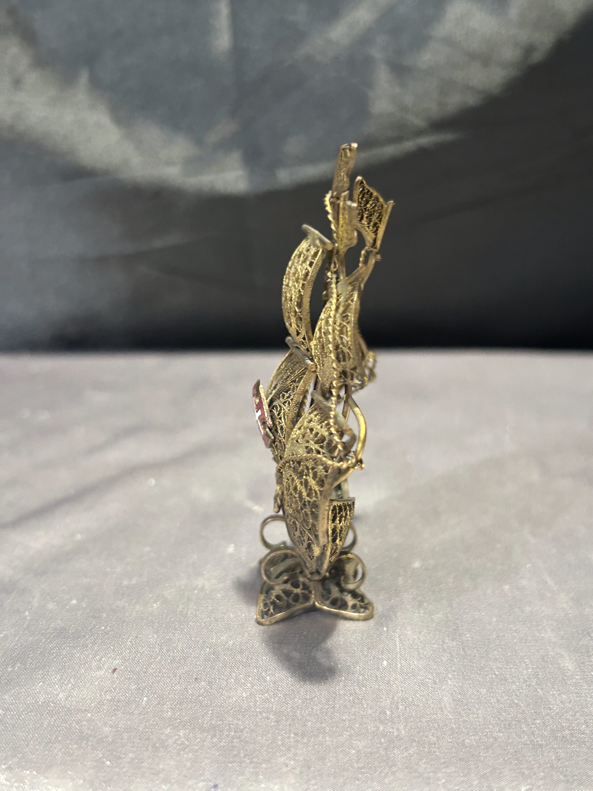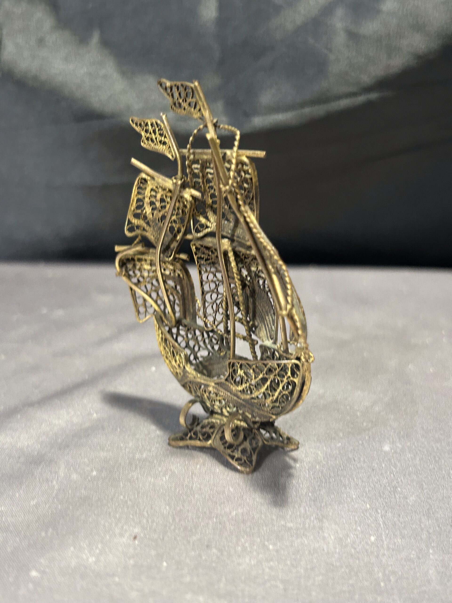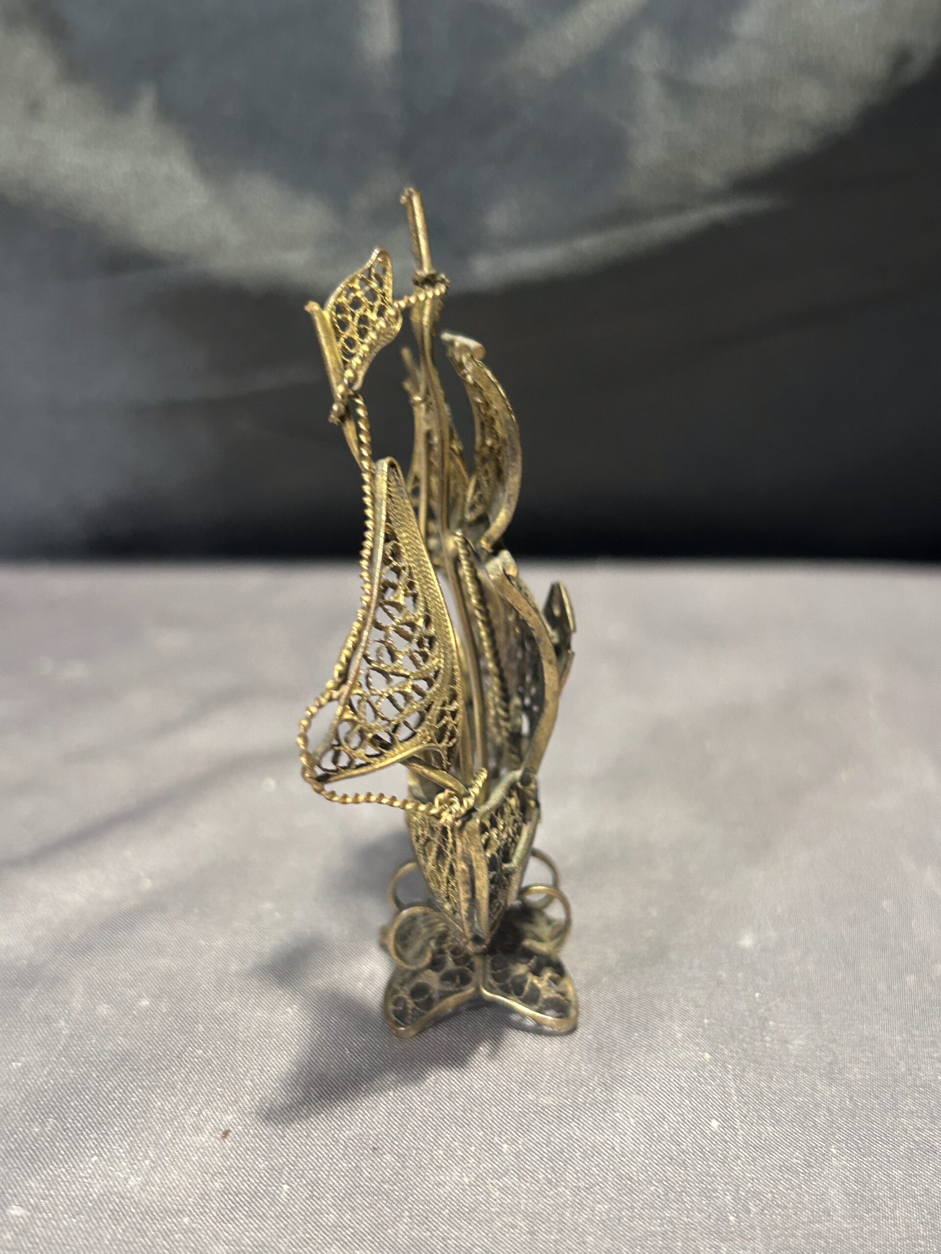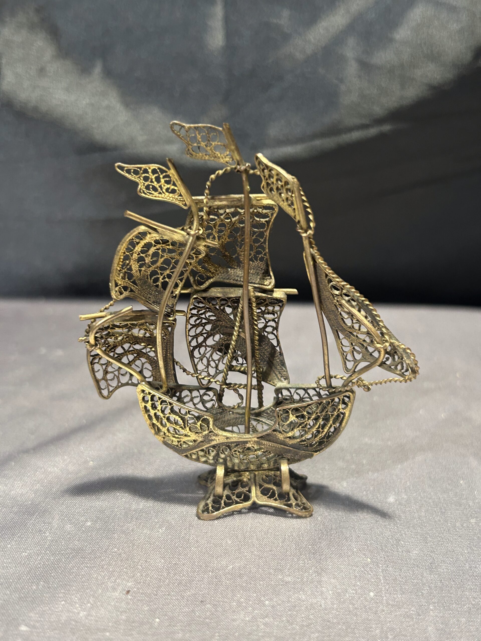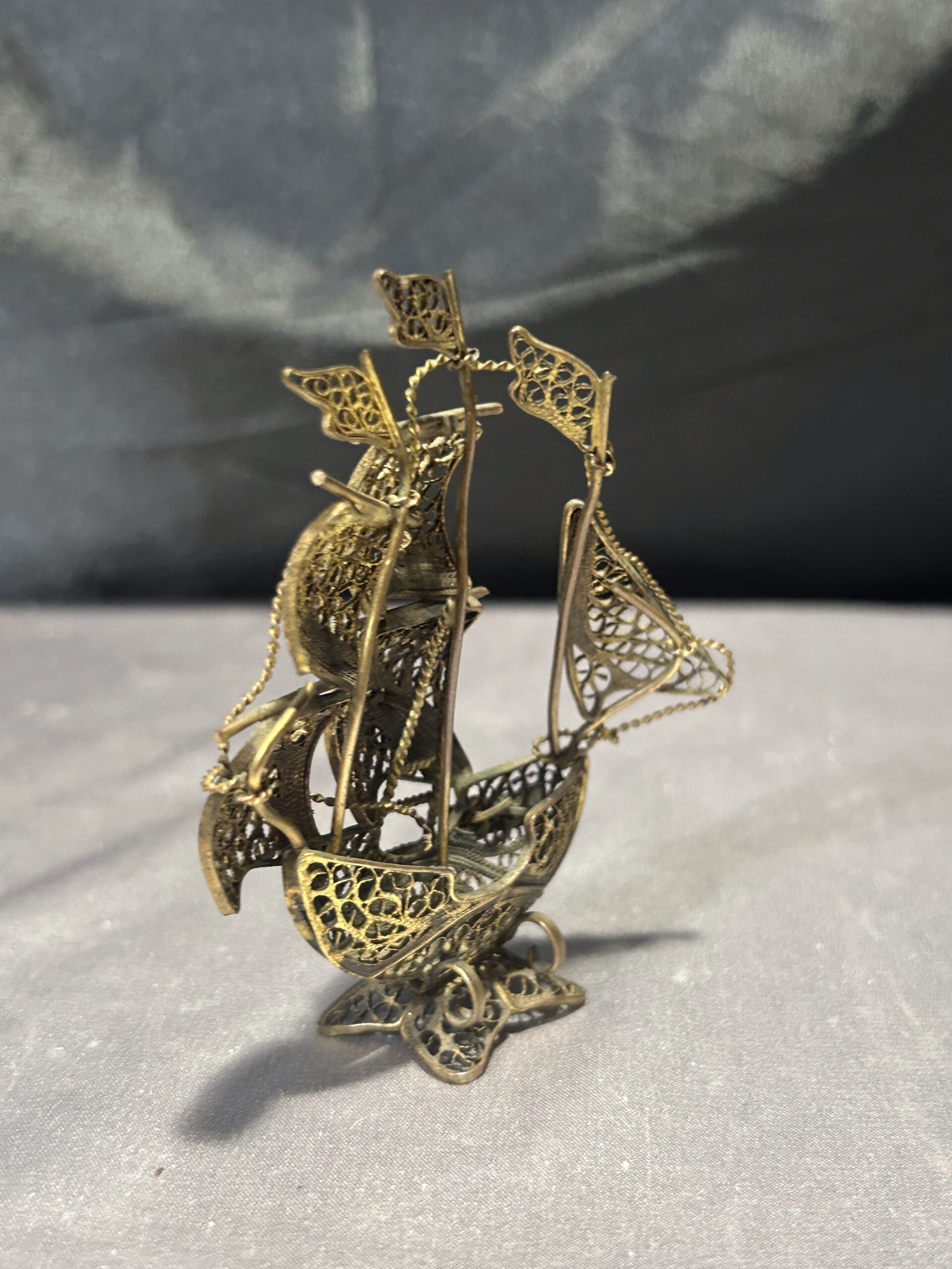 Typ: portugalski żaglowiec, statek z mosiądzu, ażurowa figurka