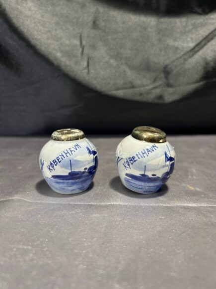 Solniczka i pieprzniczka – Ceramika holenderska – Niebieski wzór z wiatrakami