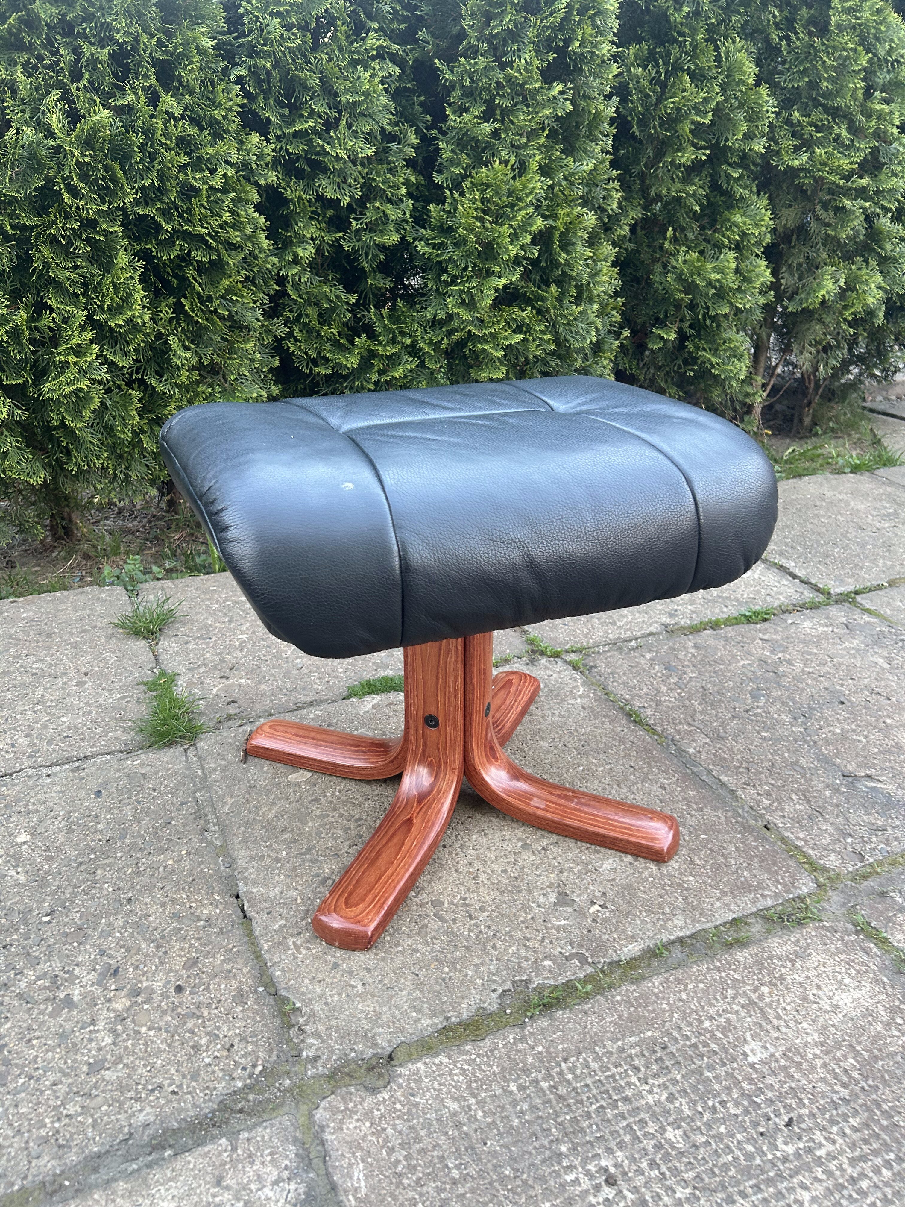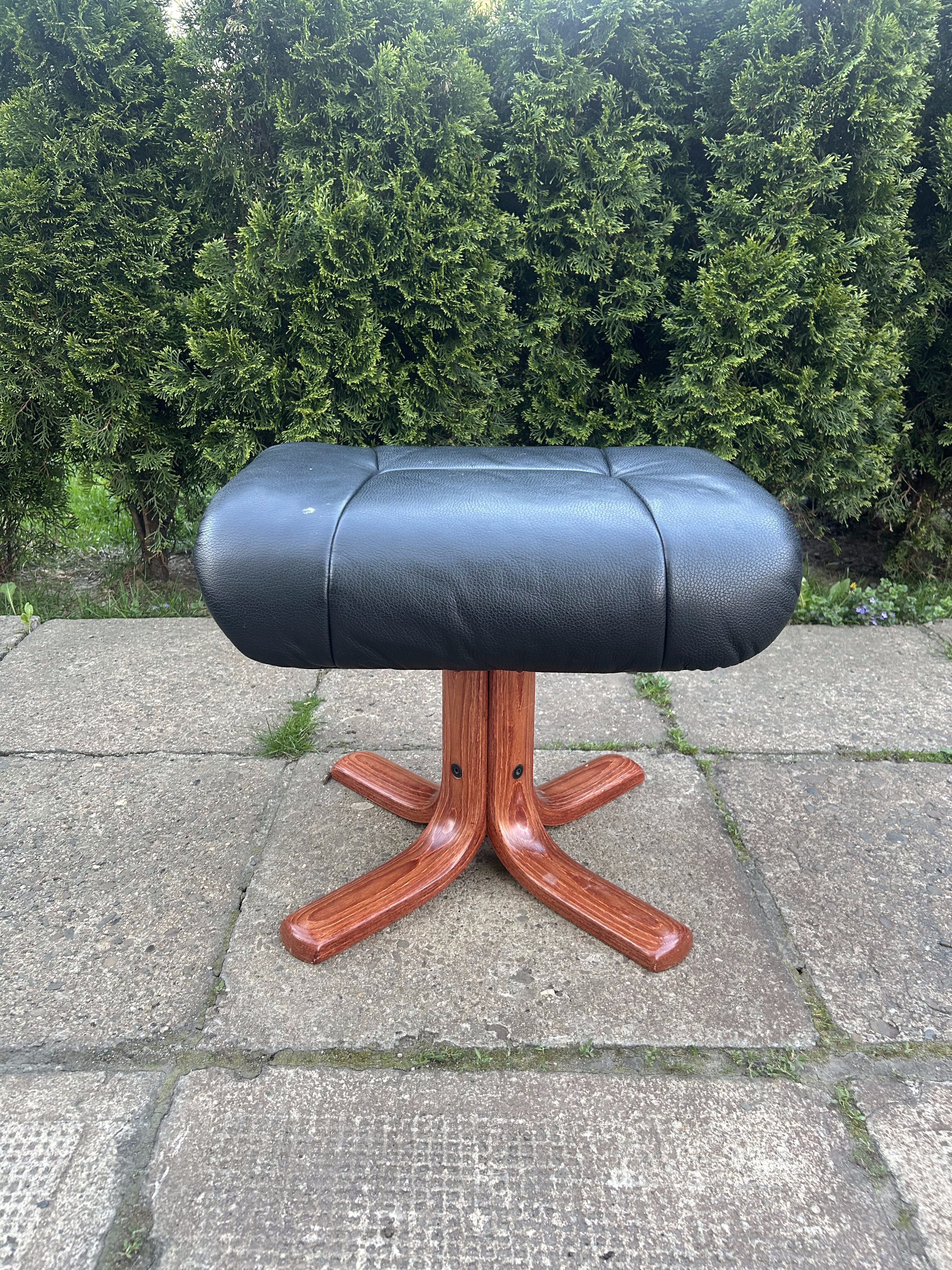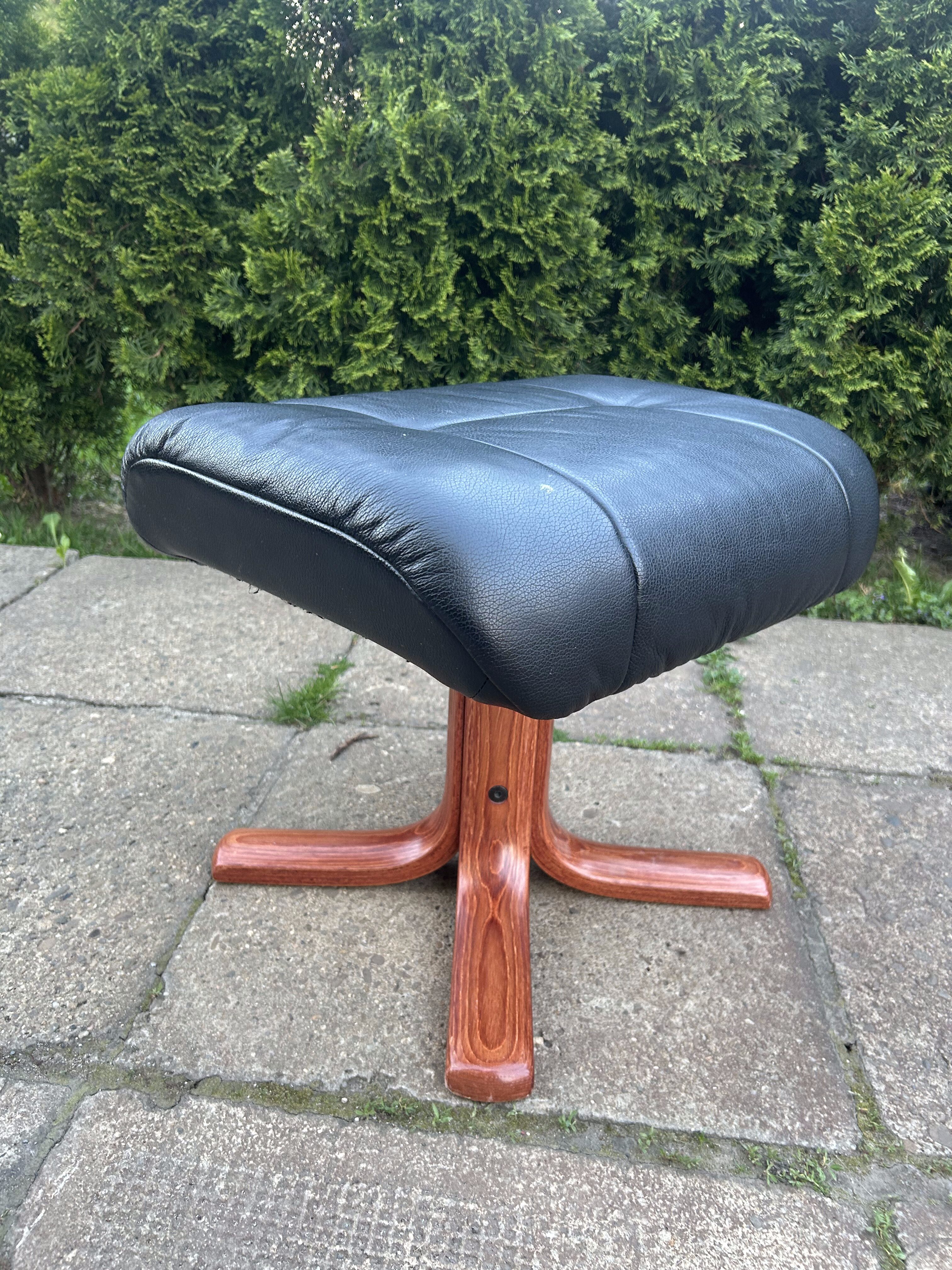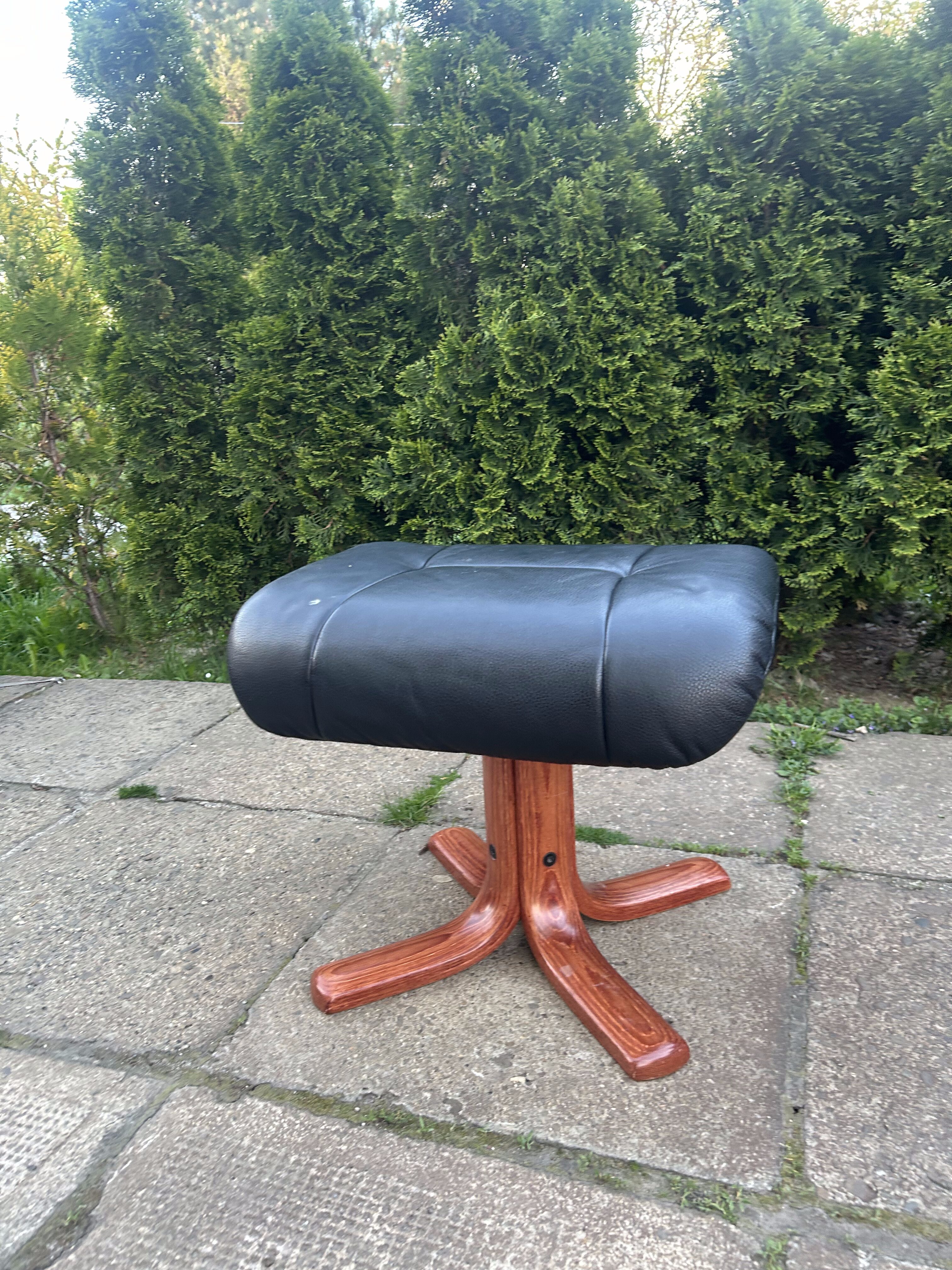 Pufa / Podnóżek – Skórzany – Stabilna drewniana podstawa