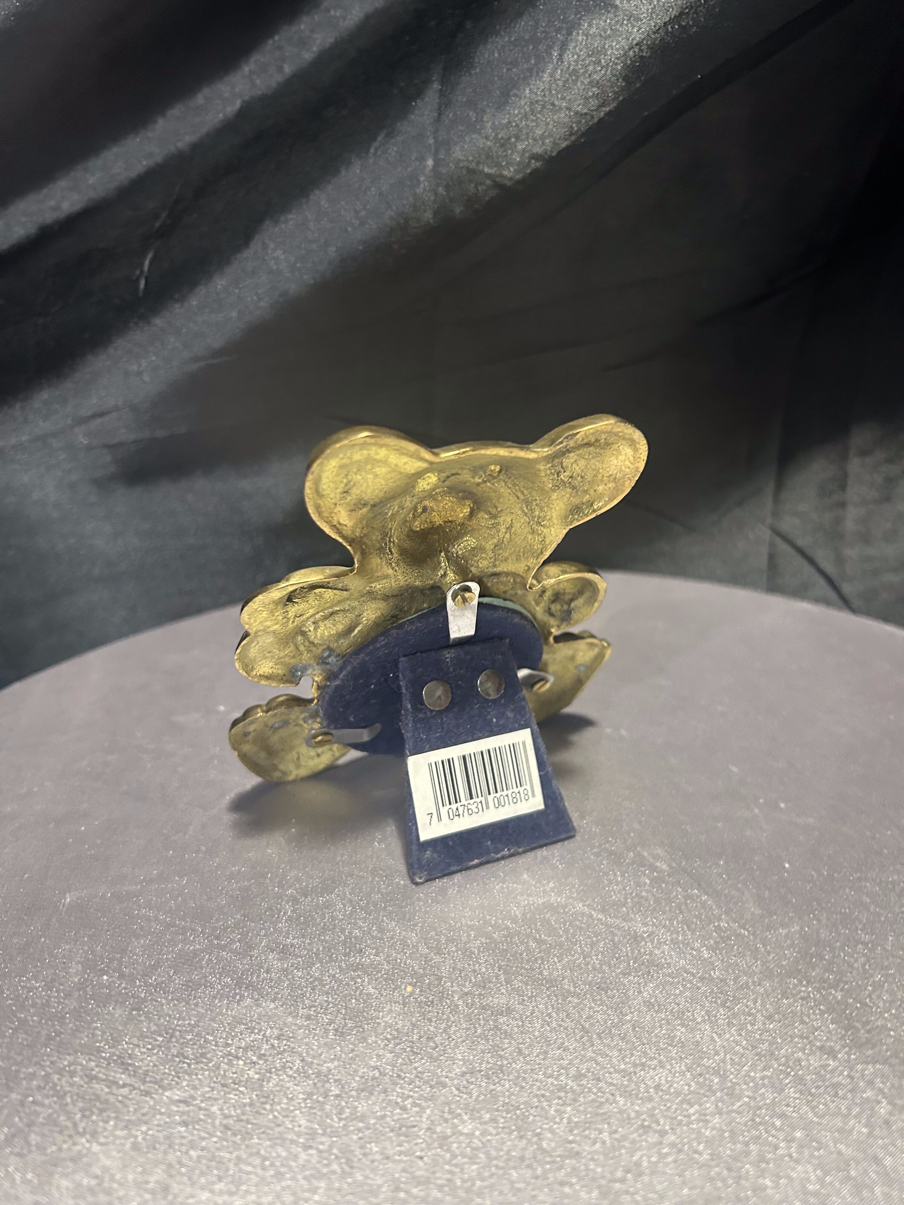 Urocza ramka na zdjęcie w kształcie misia, wykonana z solidnego mosiądzu. Jej wyjątkowa forma i subtelny połysk sprawiają, że doskonale nadaje się na prezent lub jako sentymentalna ozdoba dziecięcego pokoju. Klasyczny design w stylu retro przywołuje wspomnienia dawnych lat, a ciężka forma dodaje jej stabilności i elegancji.