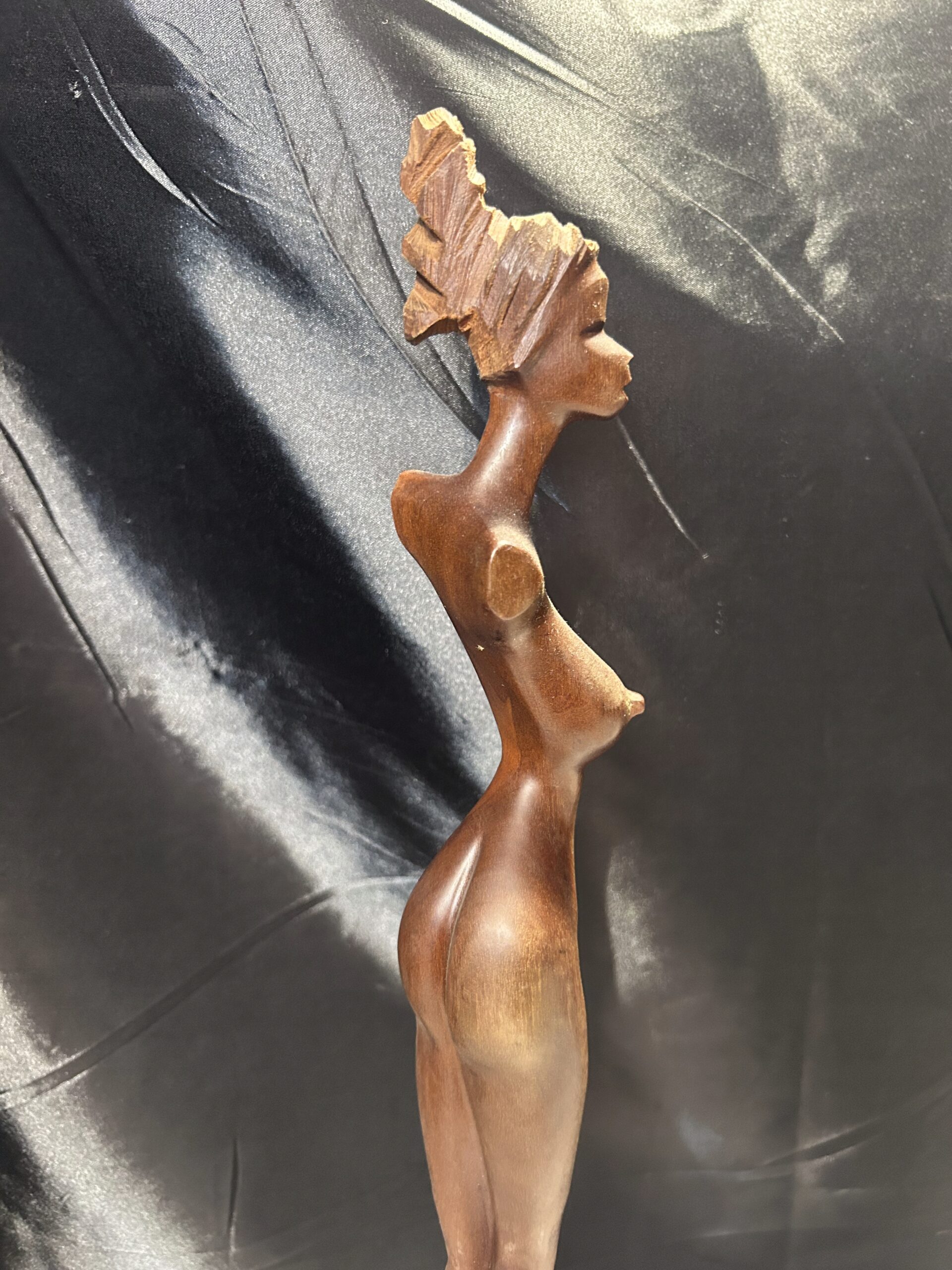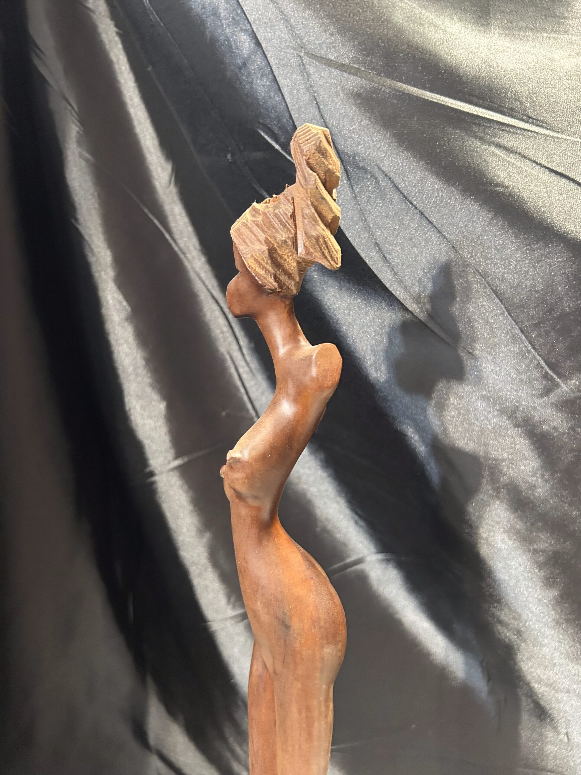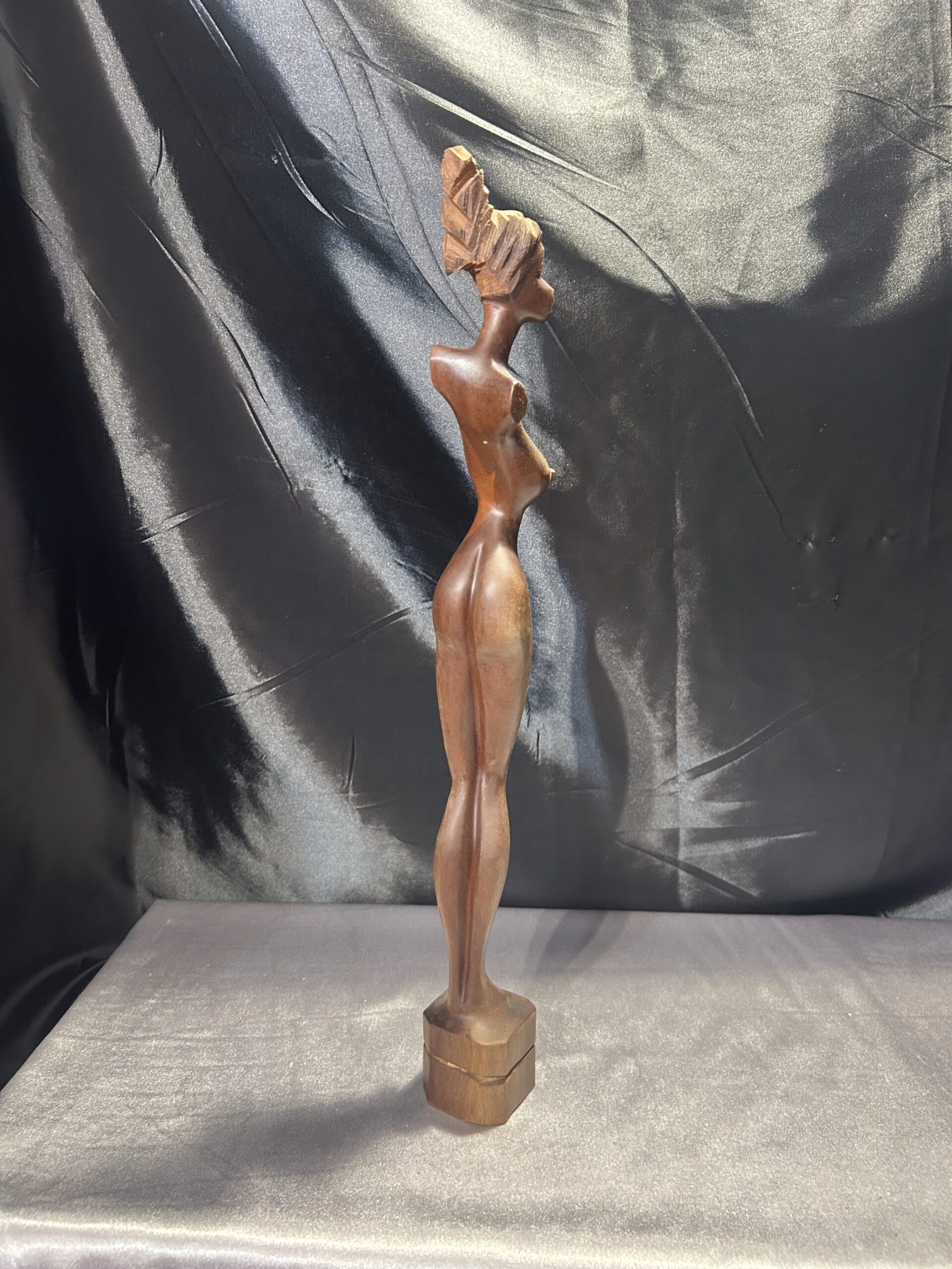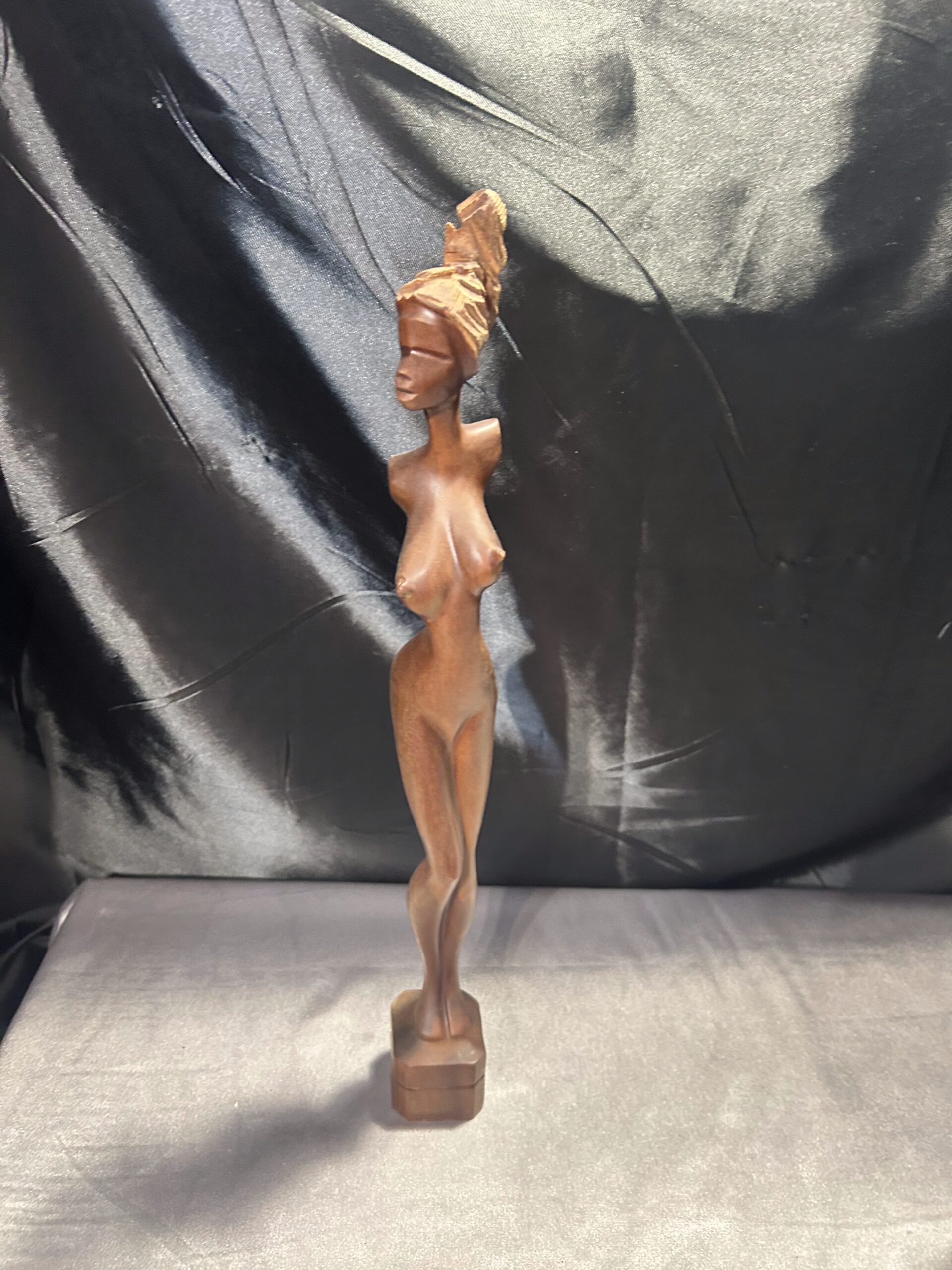 Oferujemy unikalną rzeźbę afrykańską przedstawiającą smukły akt kobiety wykonaną z egzotycznego drewna. Subtelnie wyrzeźbione detale i naturalna faktura drewna nadają jej wyjątkowy charakter. Figurka stanowi doskonałe połączenie tradycyjnej sztuki i elegancji.