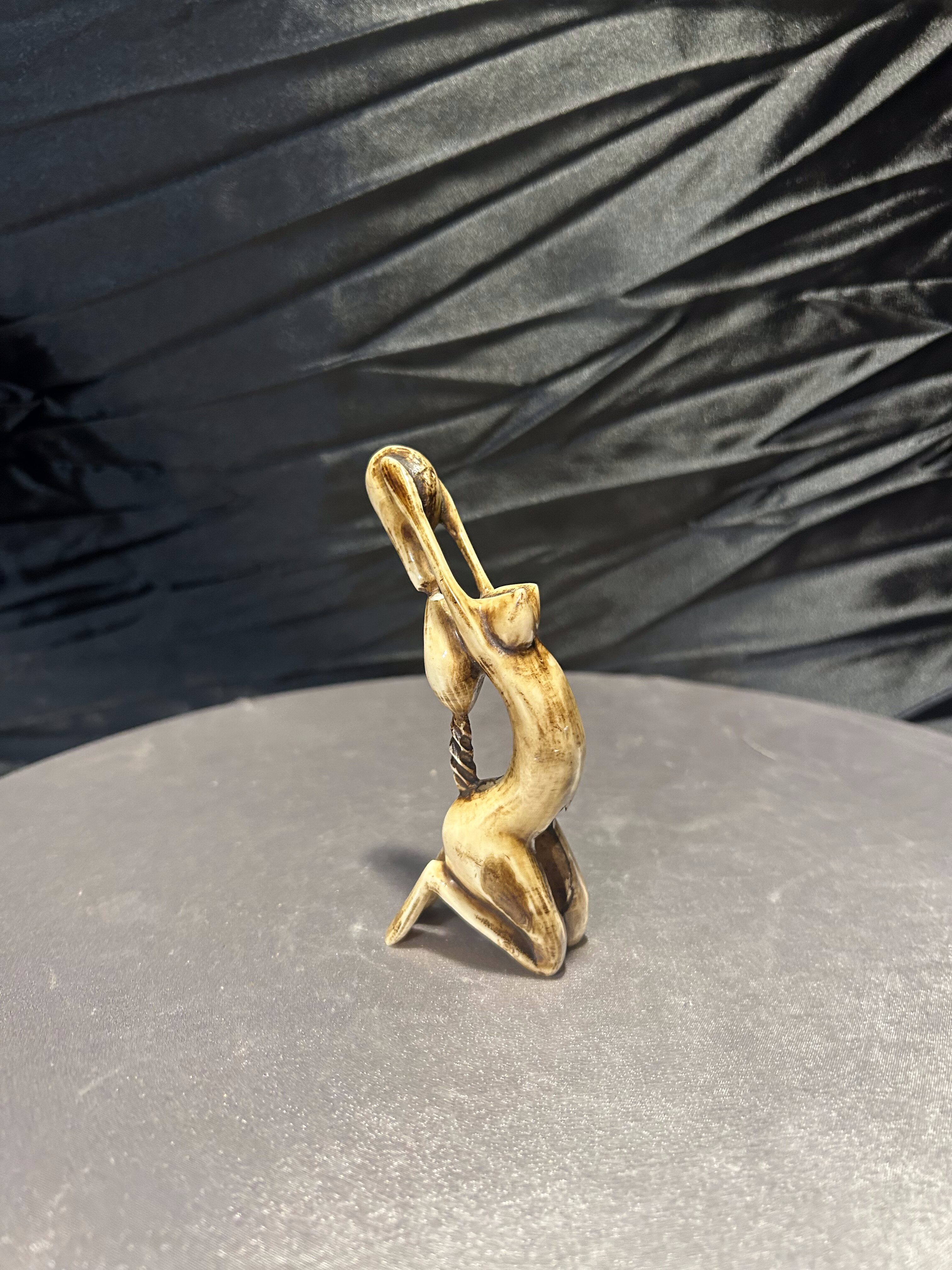 Wyjątkowa rzeźba przedstawiająca klęczącą kobietę unoszącą dzban do ust. Dynamiczna sylwetka, pełna ekspresji i symboliki, nadaje figurze artystycznego charakteru. To niezwykle ciekawy przedmiot, który przyciąga wzrok i pobudza wyobraźnię, idealny zarówno do nowoczesnych, jak i klasycznych wnętrz.