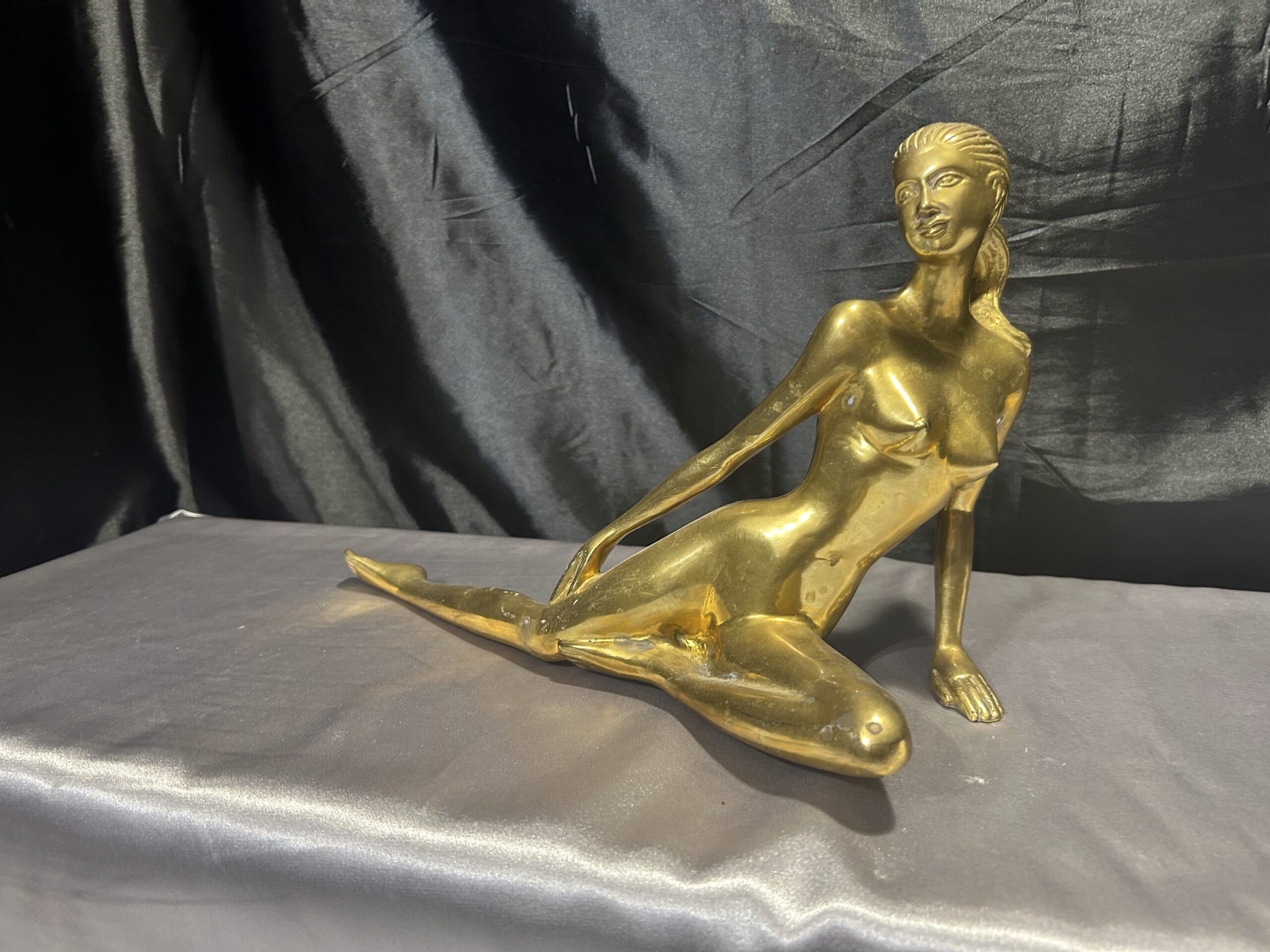 Elegancka rzeźba z mosiądzu przedstawiająca subtelny akt kobiety w zmysłowej pozie. Figura urzeka delikatnością formy oraz harmonijnymi liniami, które podkreślają piękno kobiecego ciała. Starannie wykonane detale twarzy i sylwetki oddają grację, wdzięk i naturalność, a złocista powierzchnia dodaje rzeźbie luksusowego charakteru.