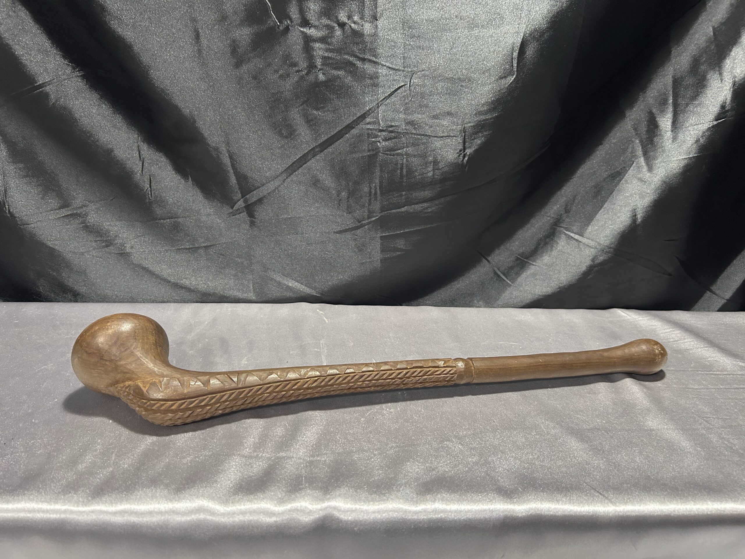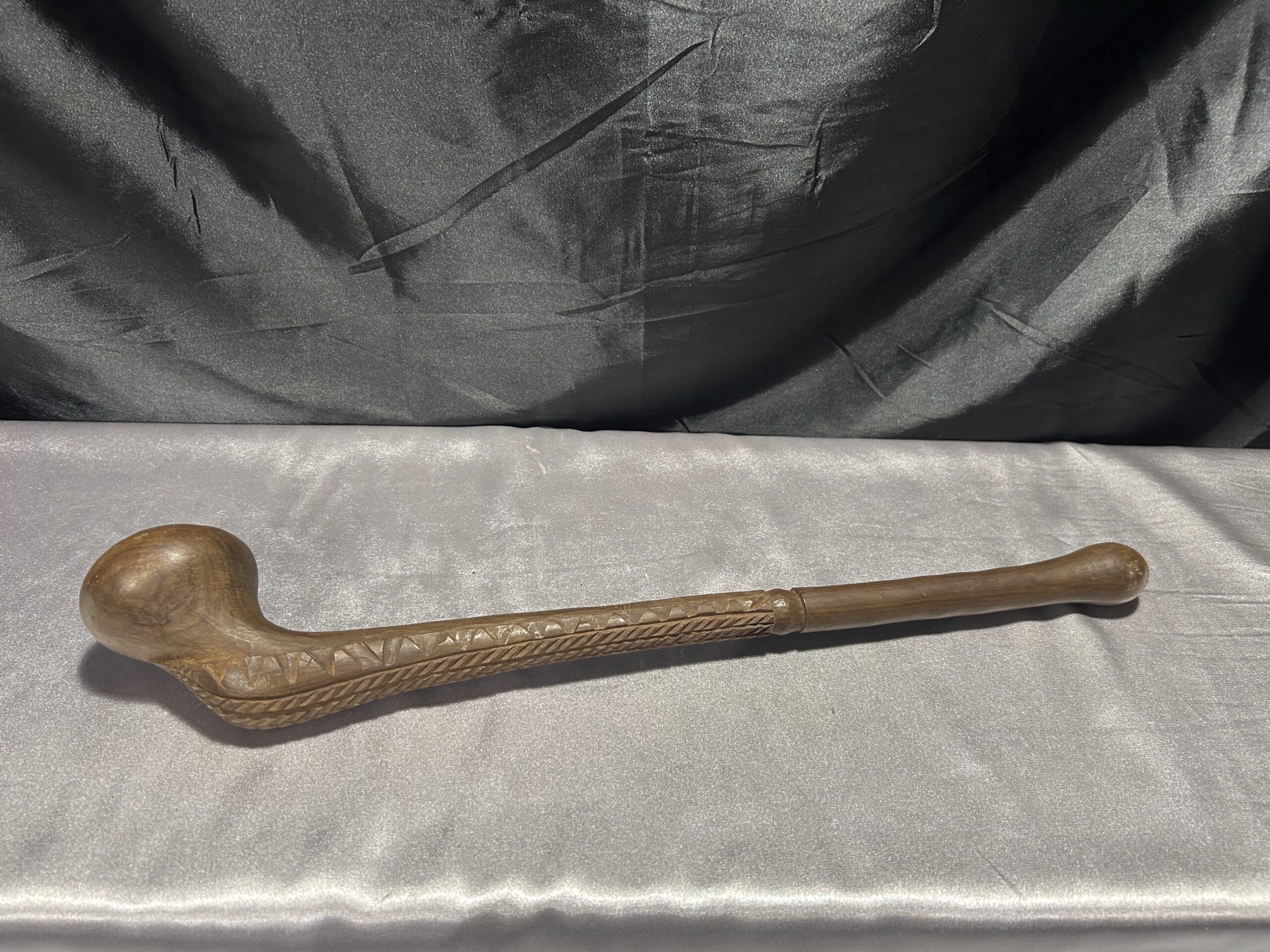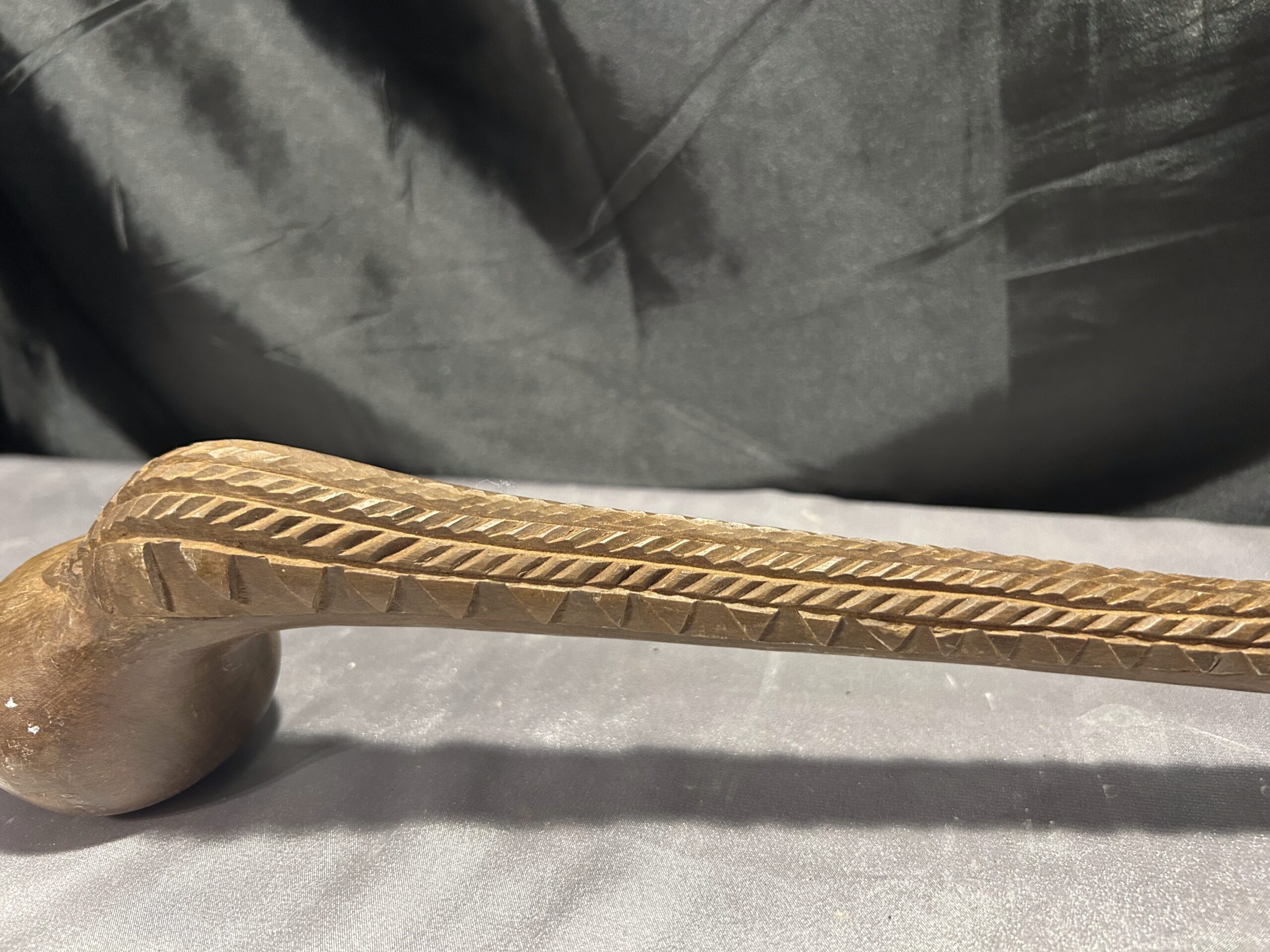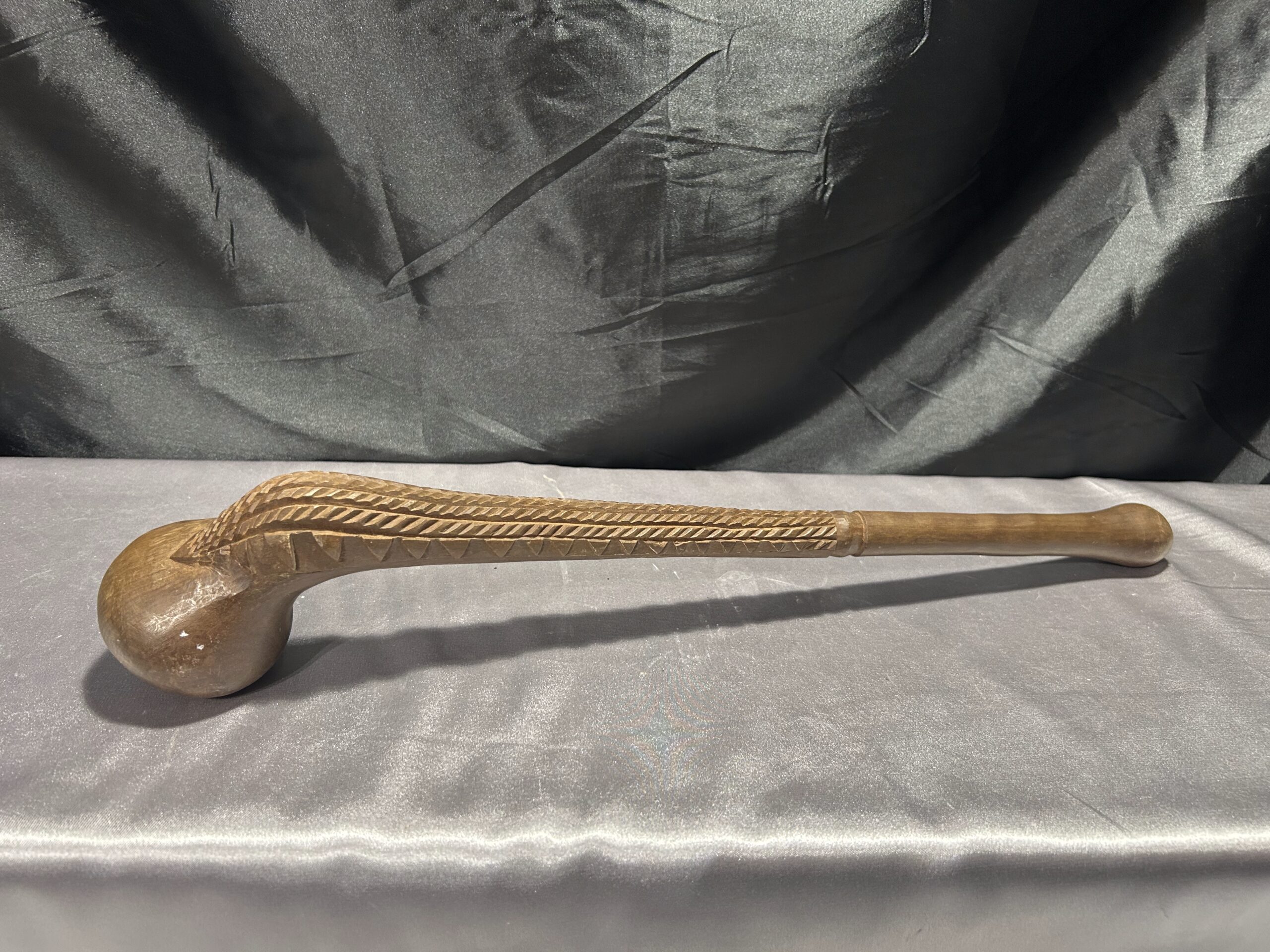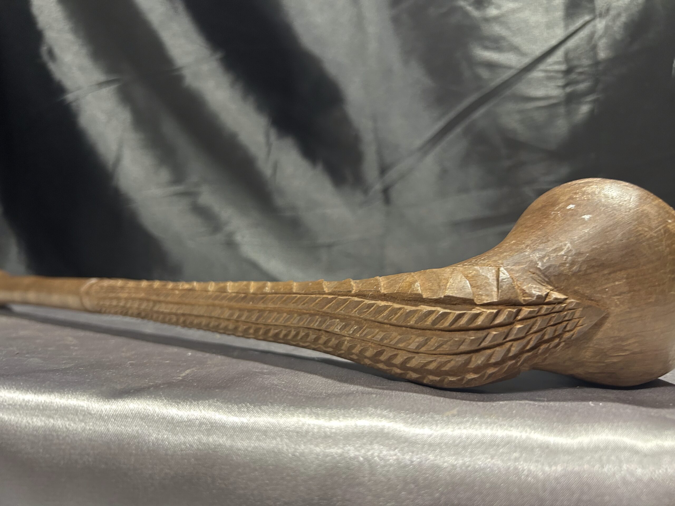 Przedstawiamy wyjątkowy egzemplarz rękodzieła afrykańskiego – rzeźbioną drewnianą pałkę, która zachwyca swoją precyzją wykonania i oryginalnym designem. Ten przedmiot to nie tylko piękny element dekoracyjny, ale także symbol tradycji i kultury.