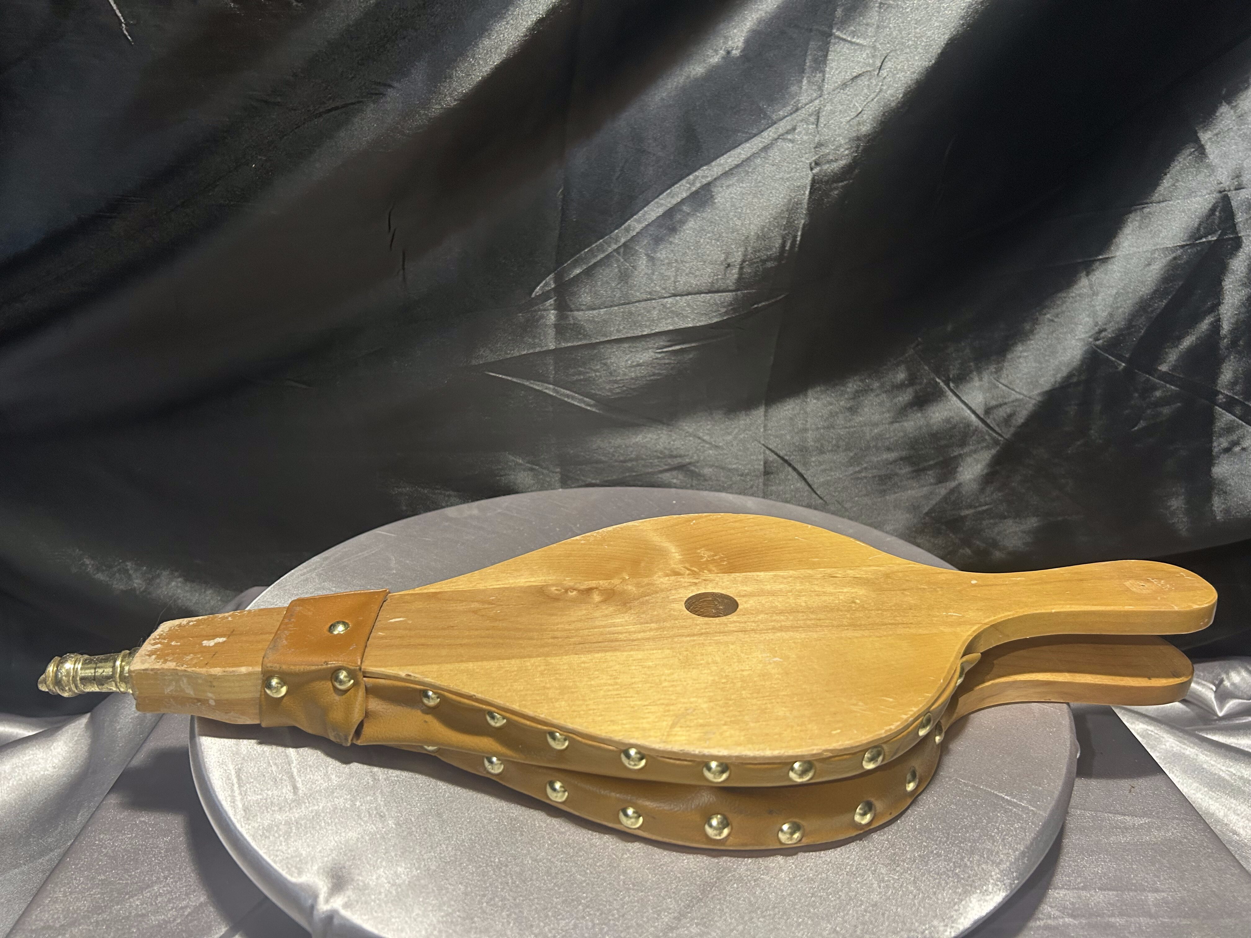 Drewniany miech kominkowy – jasne drewno ze złotymi ćwiekami – 48 cm