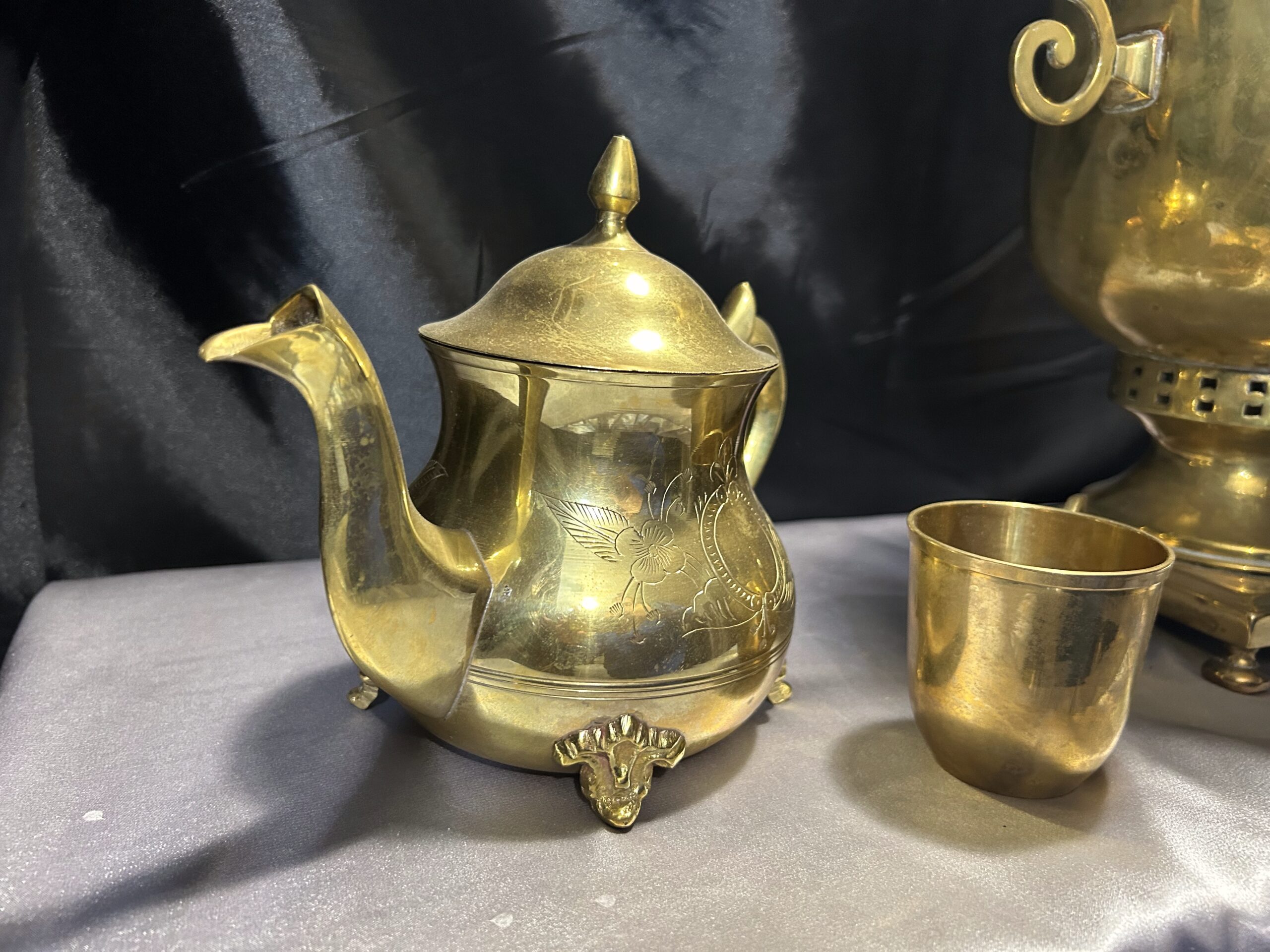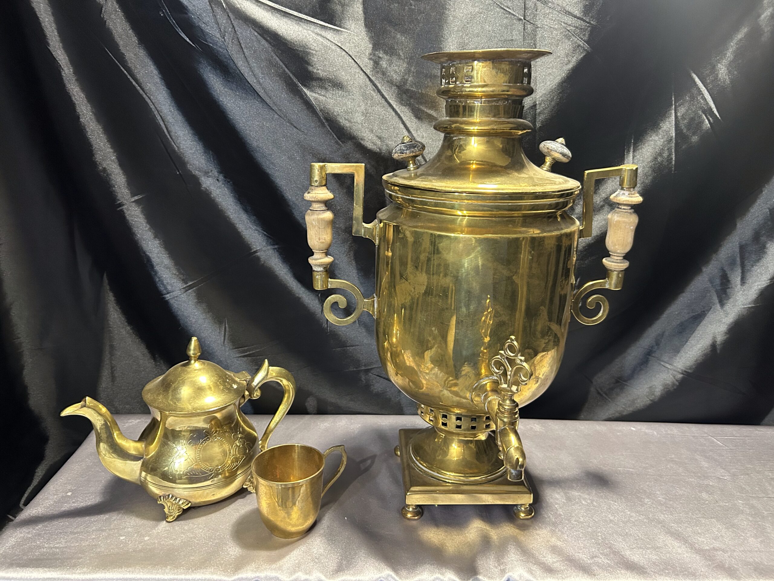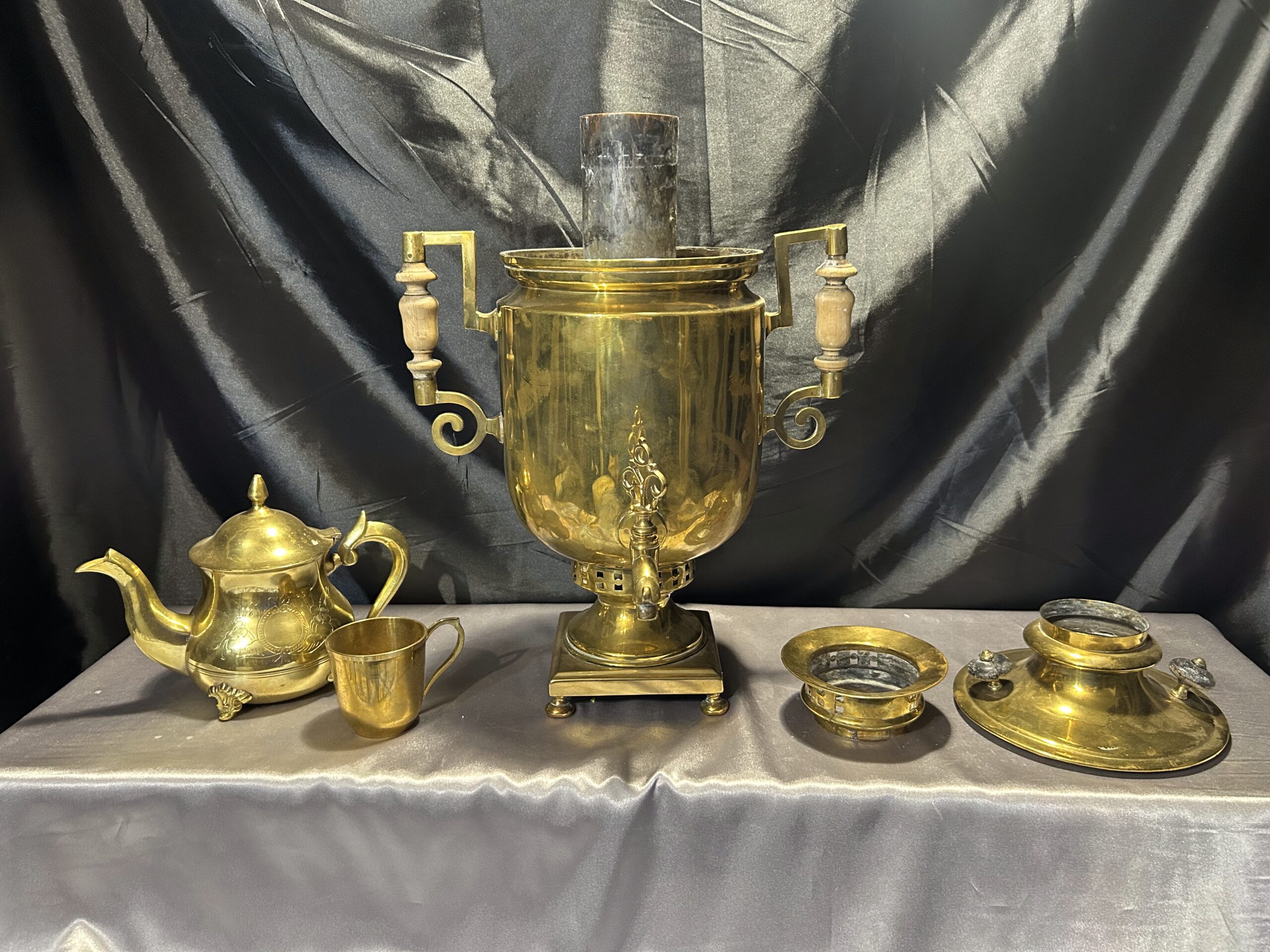 Samowar Tradycyjny Węglowy z Zdobionym Czajniczkiem i Kubeczkiem