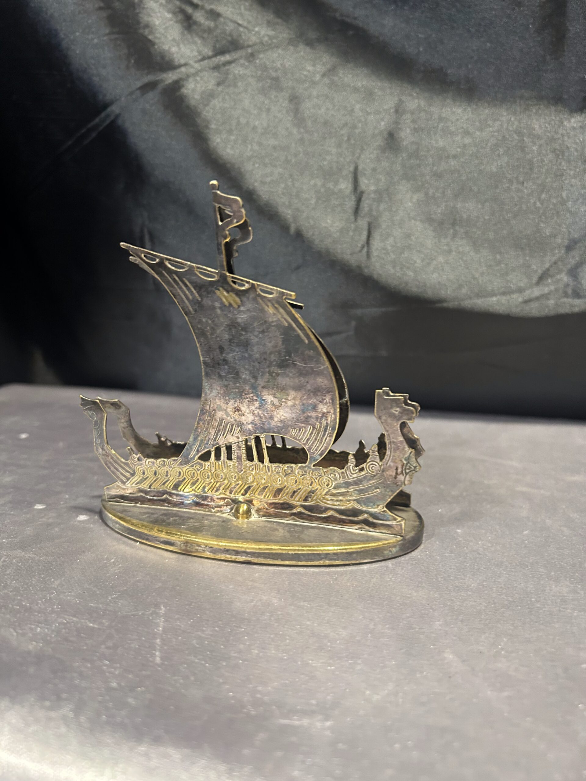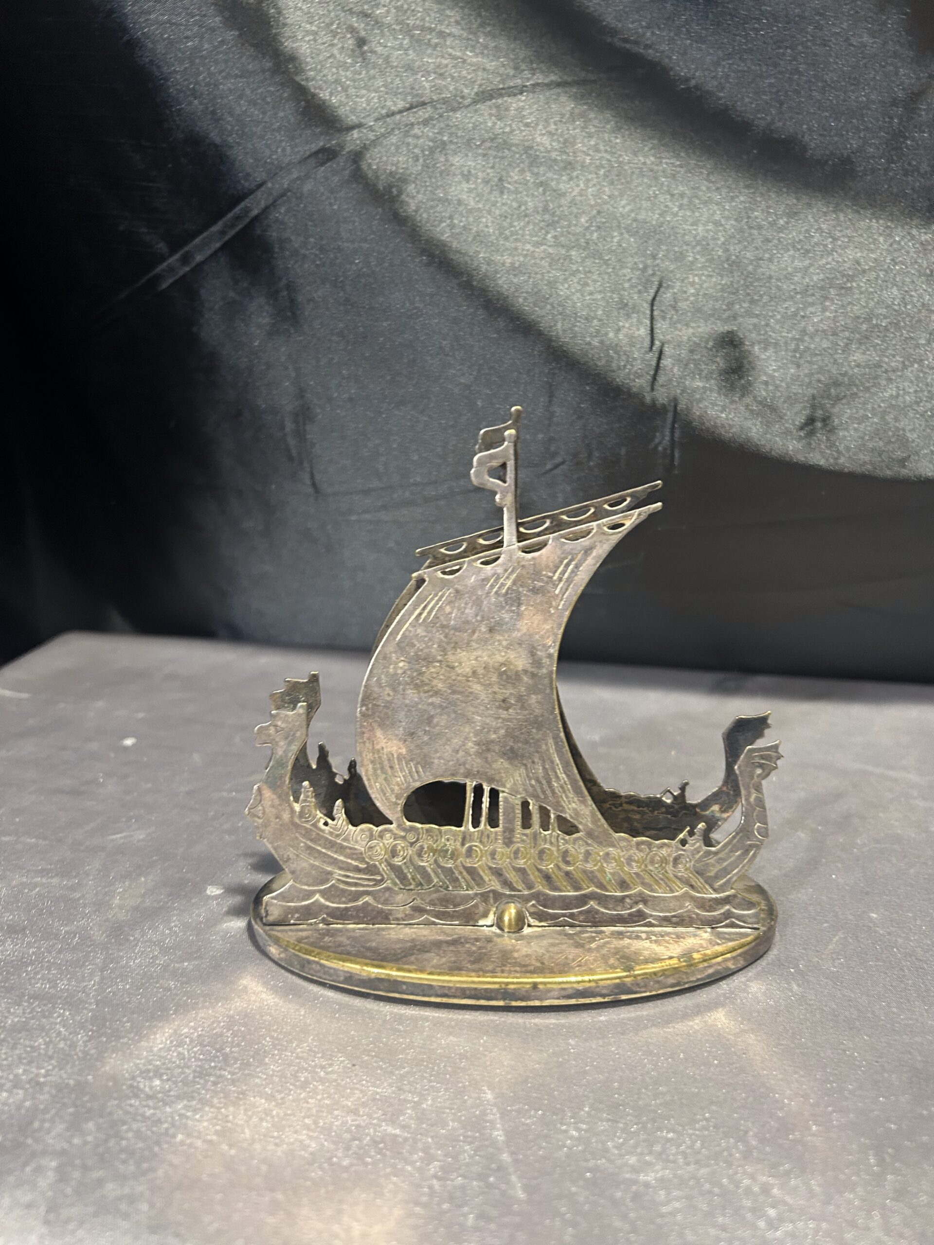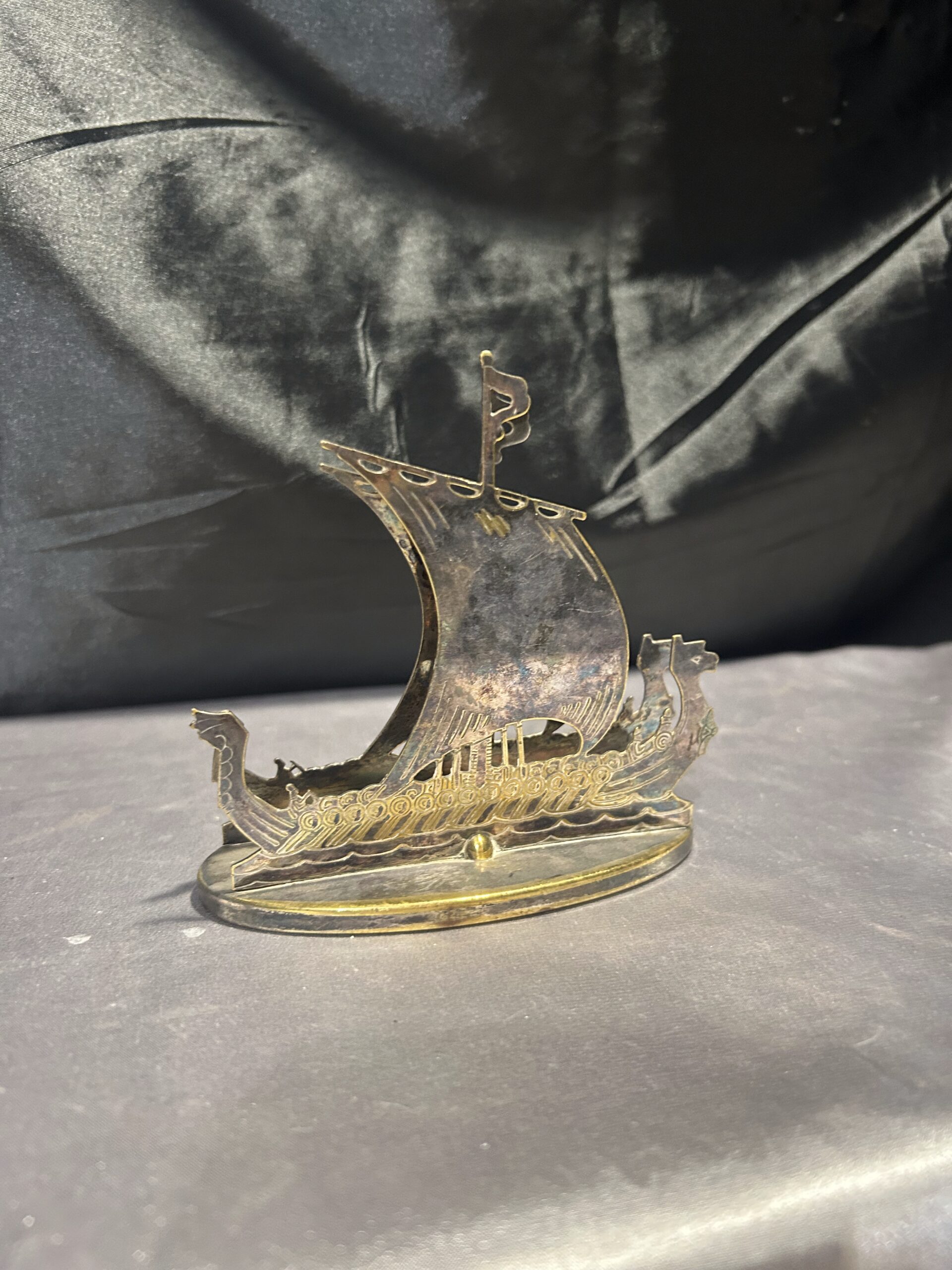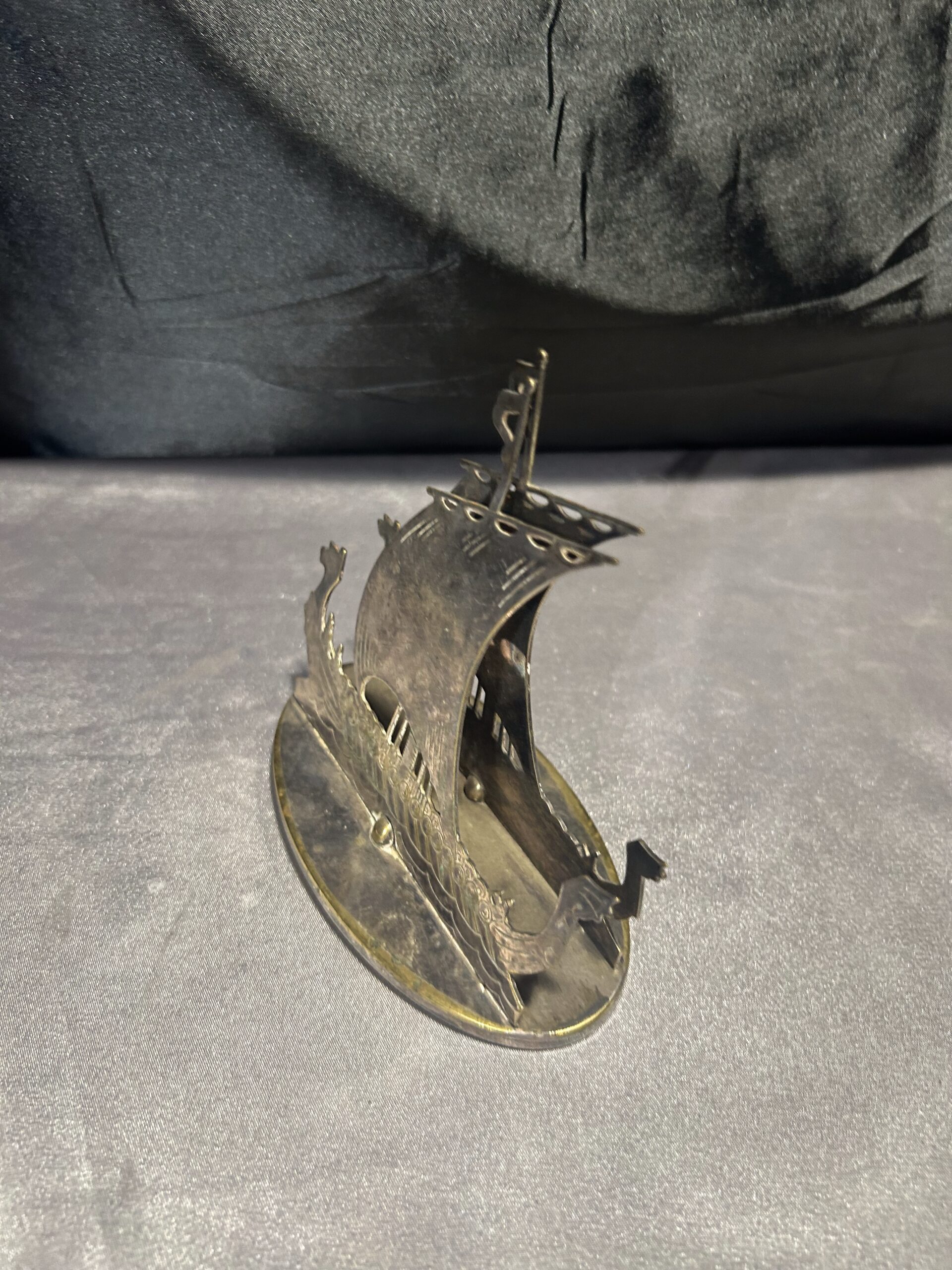 Serwetnik w kształcie statku wikinga – posrebrzany mosiądz