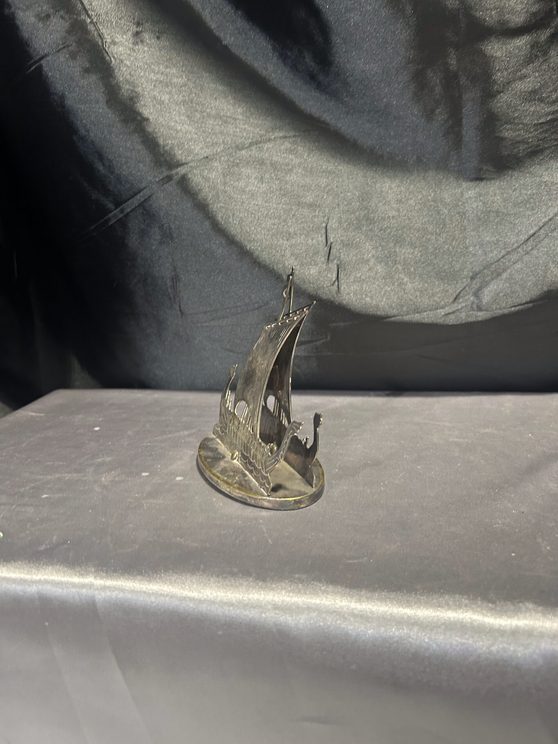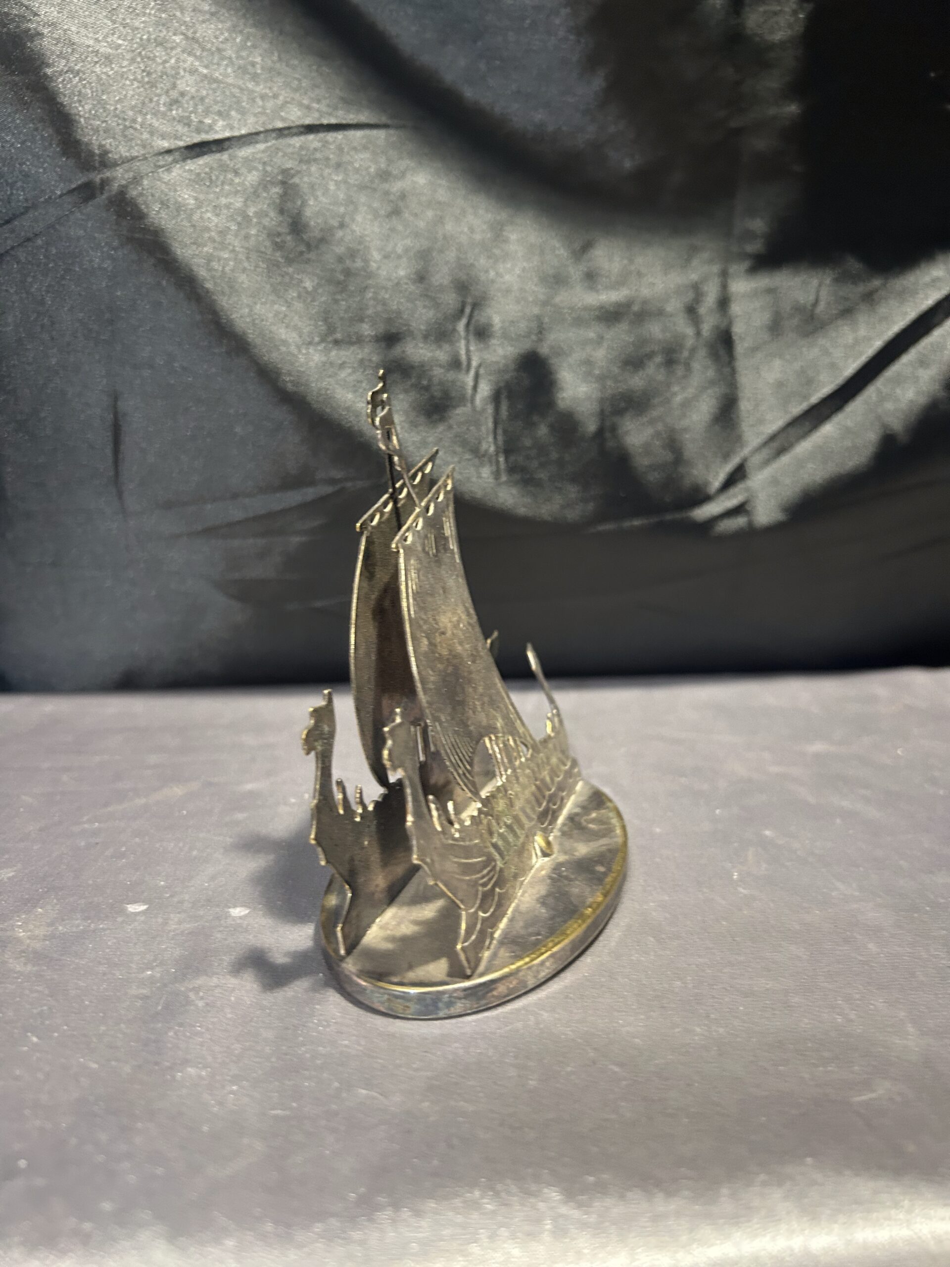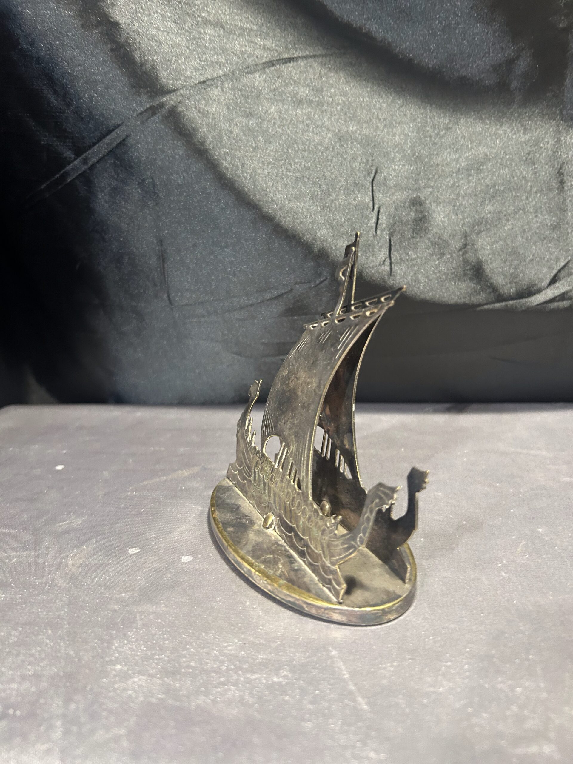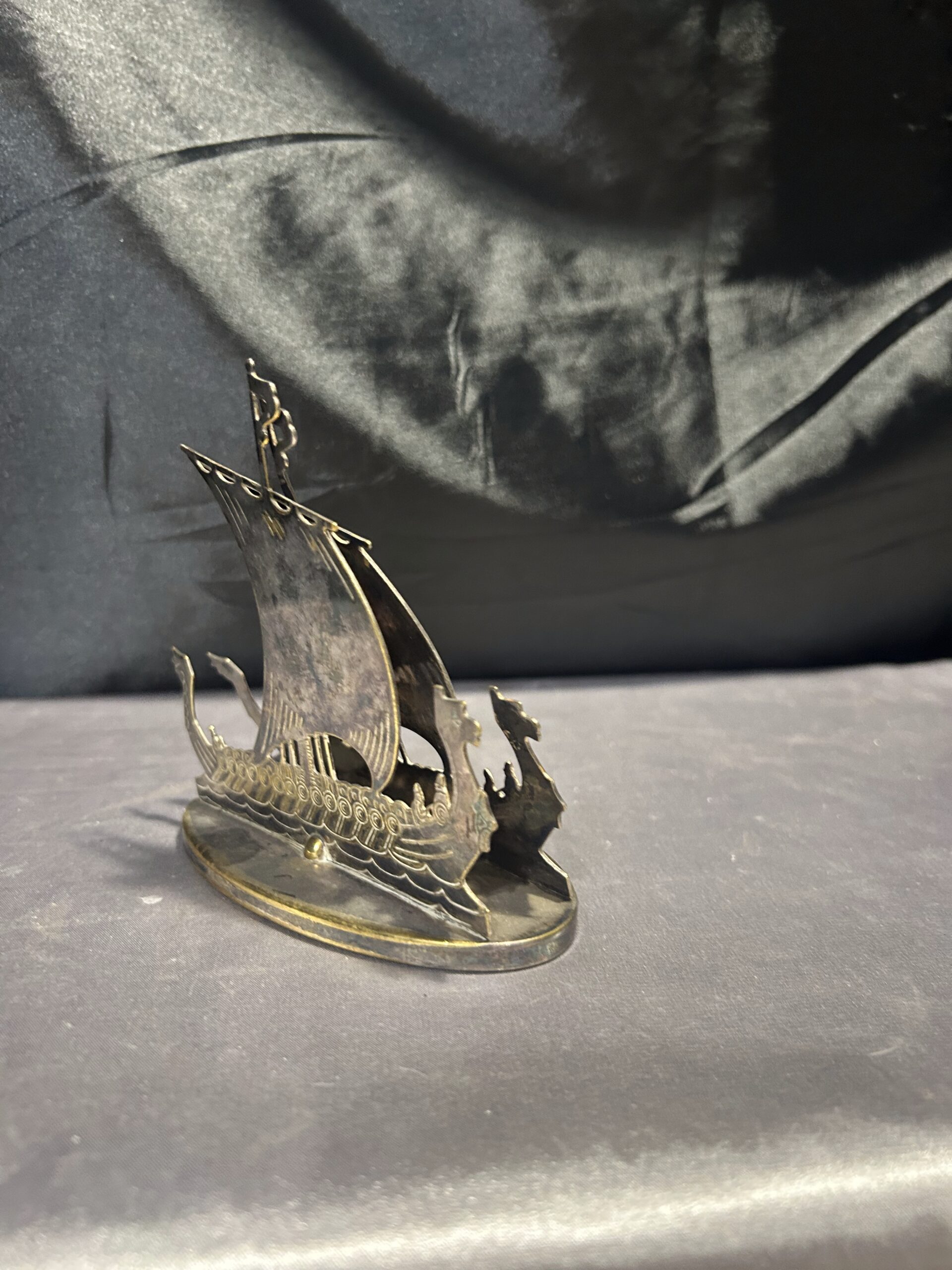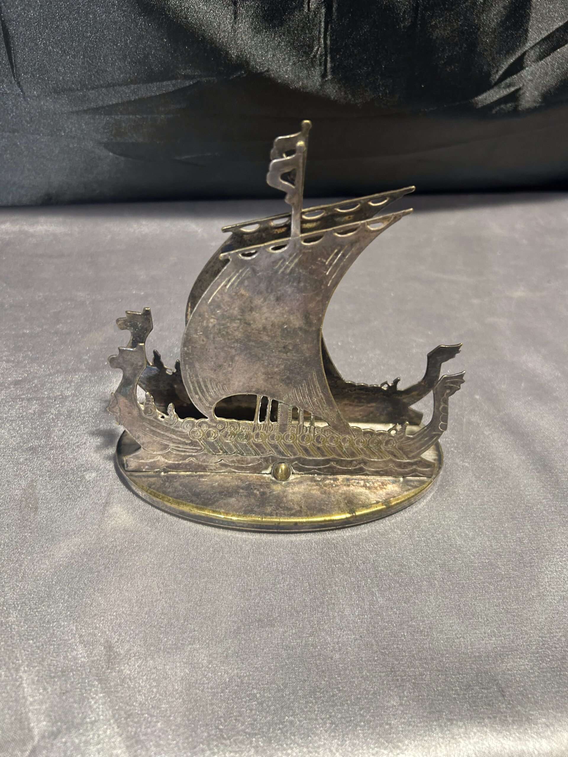 Serwetnik w kształcie statku wikinga – posrebrzany mosiądz
