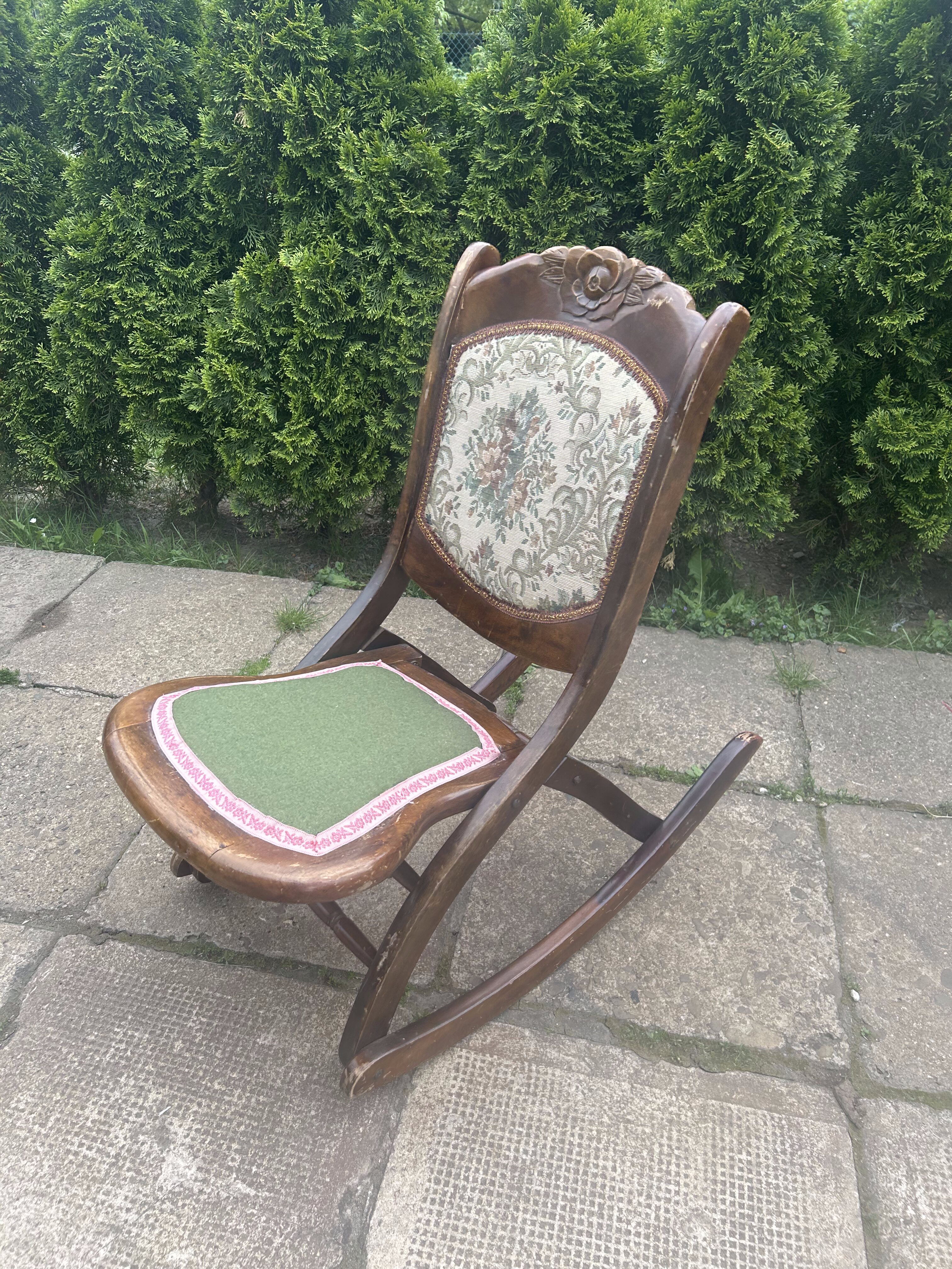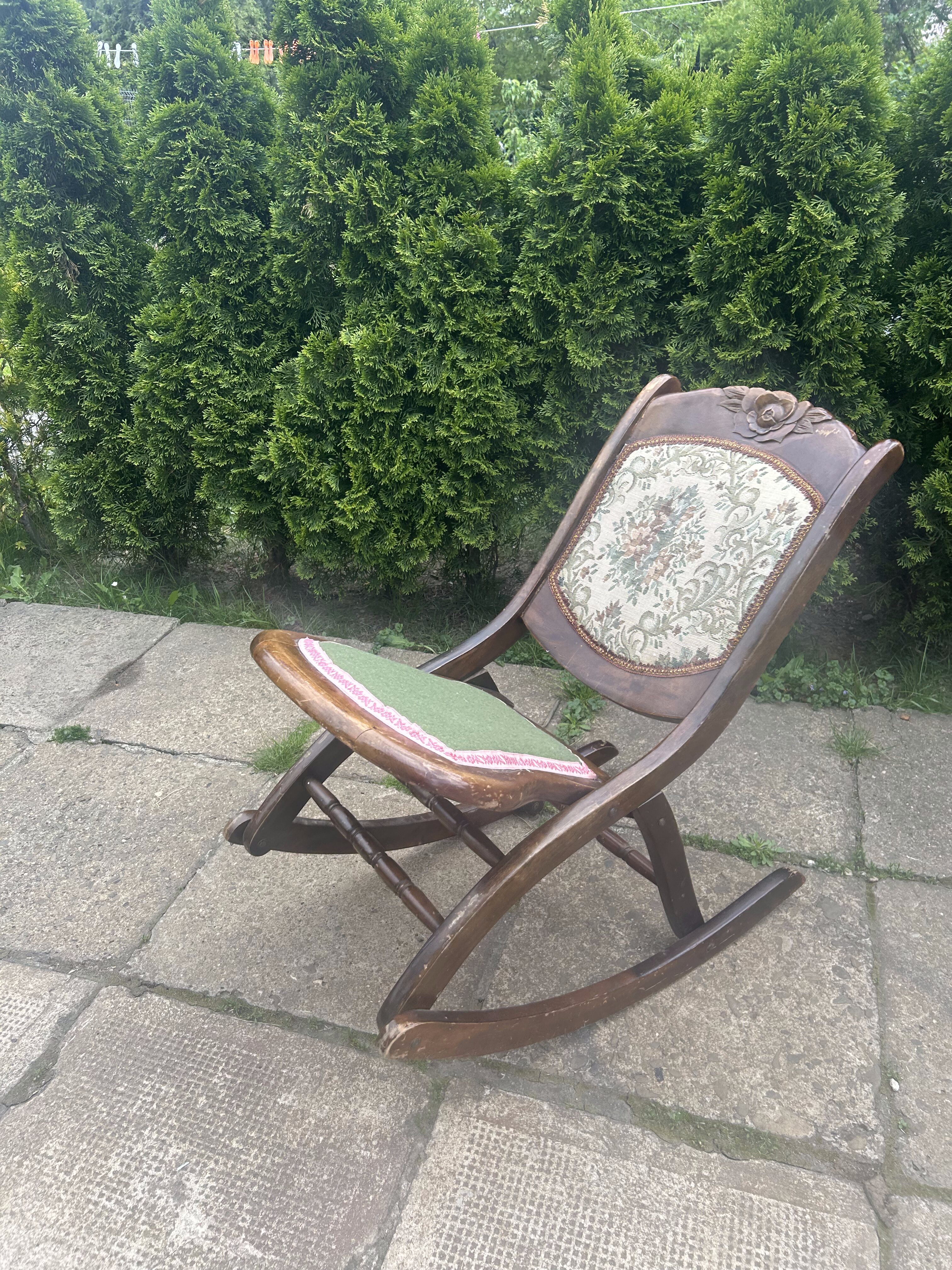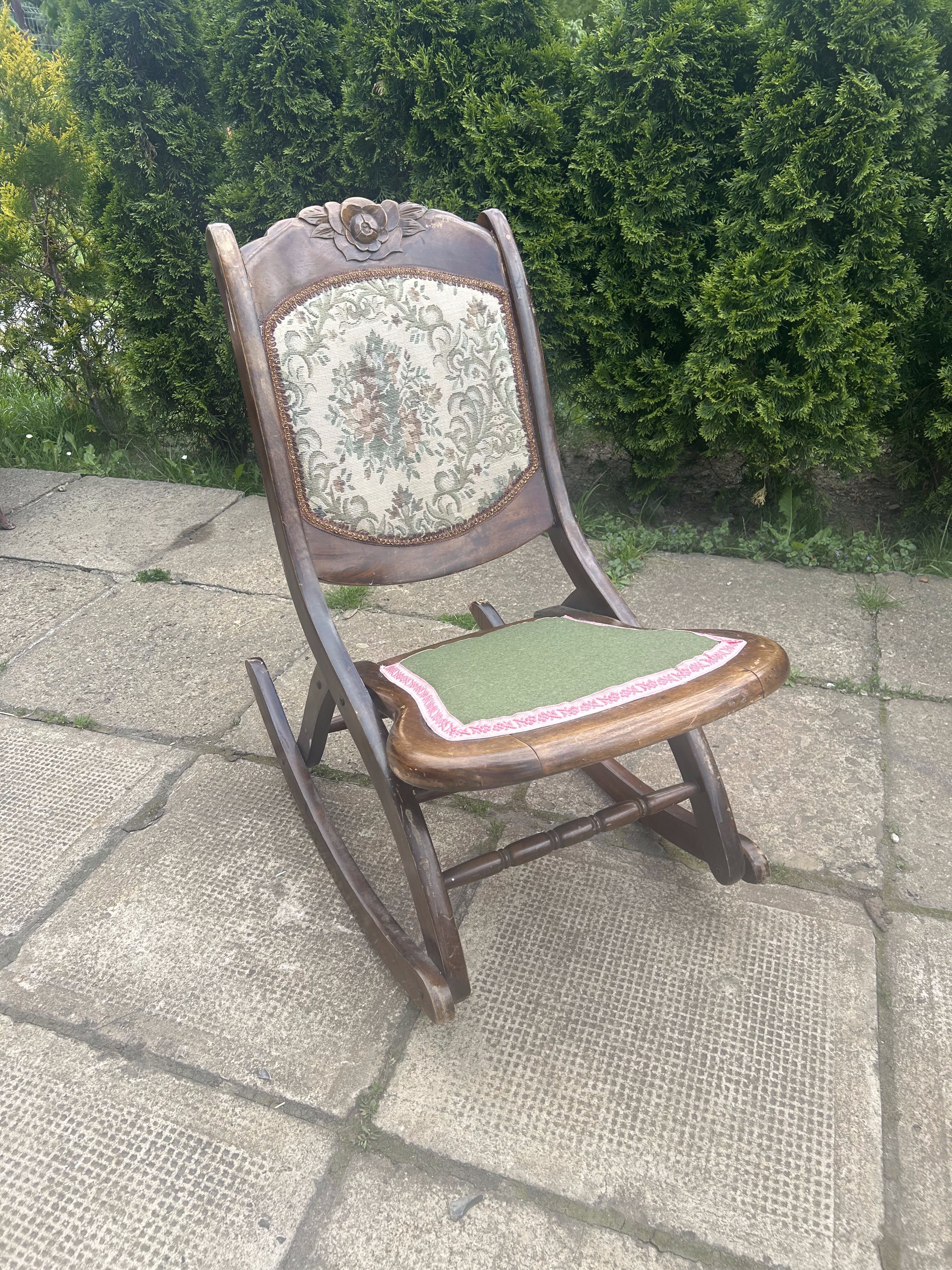 Składany fotel bujany – styl vintage – rzeźbione drewno