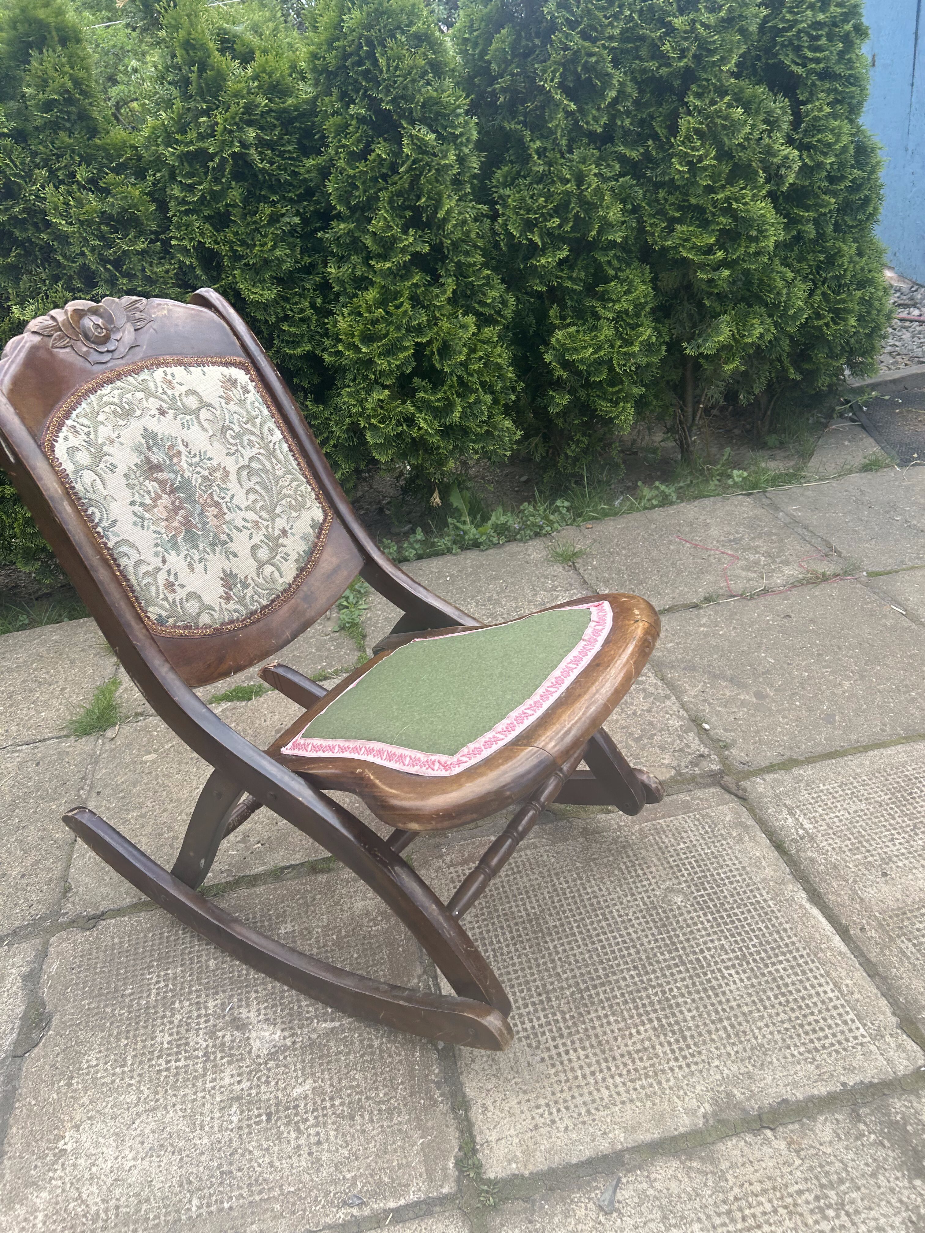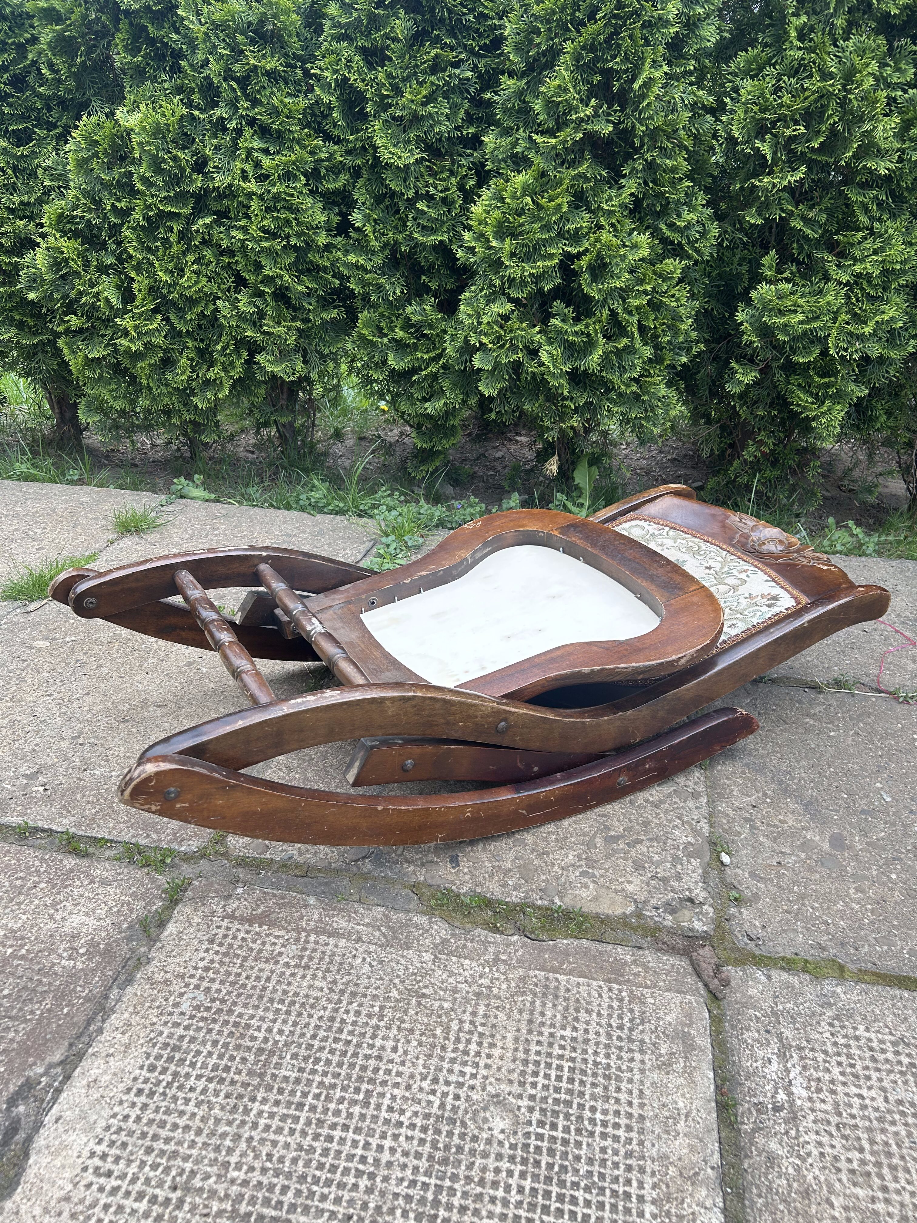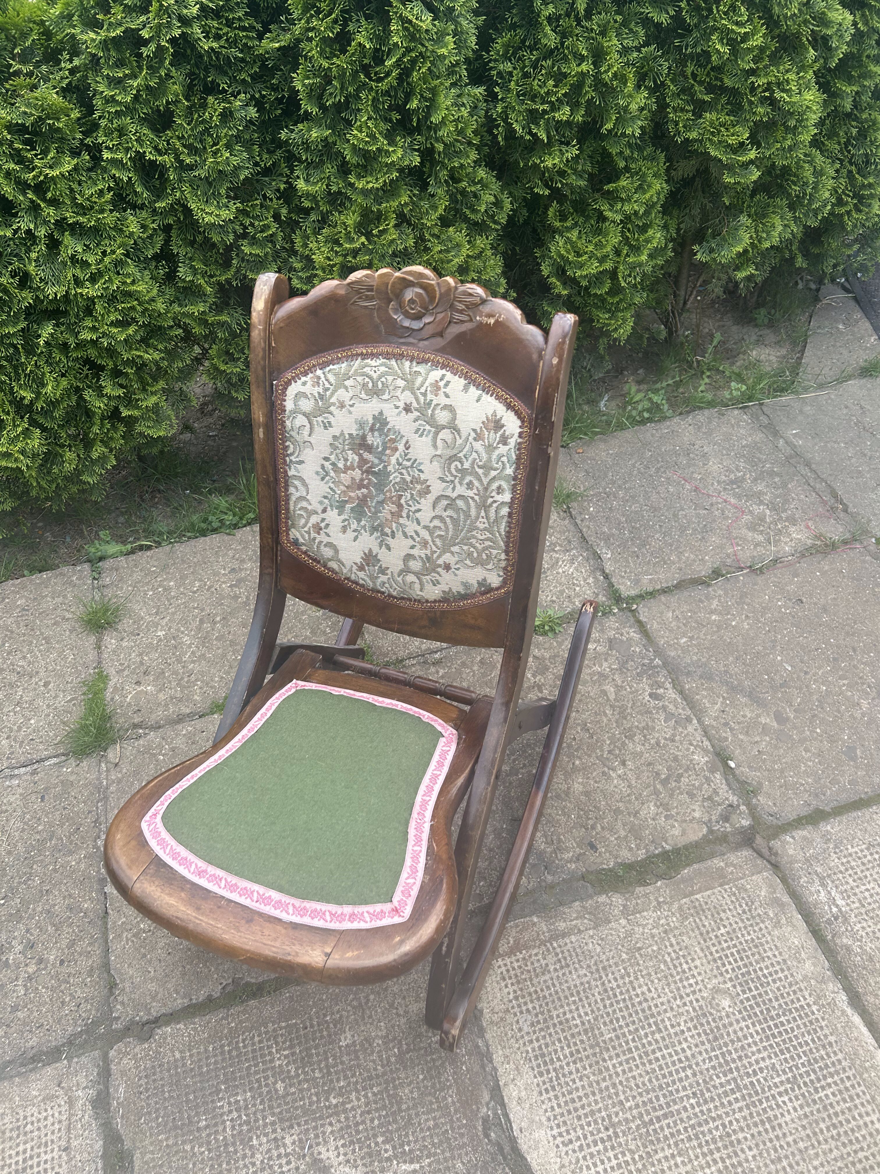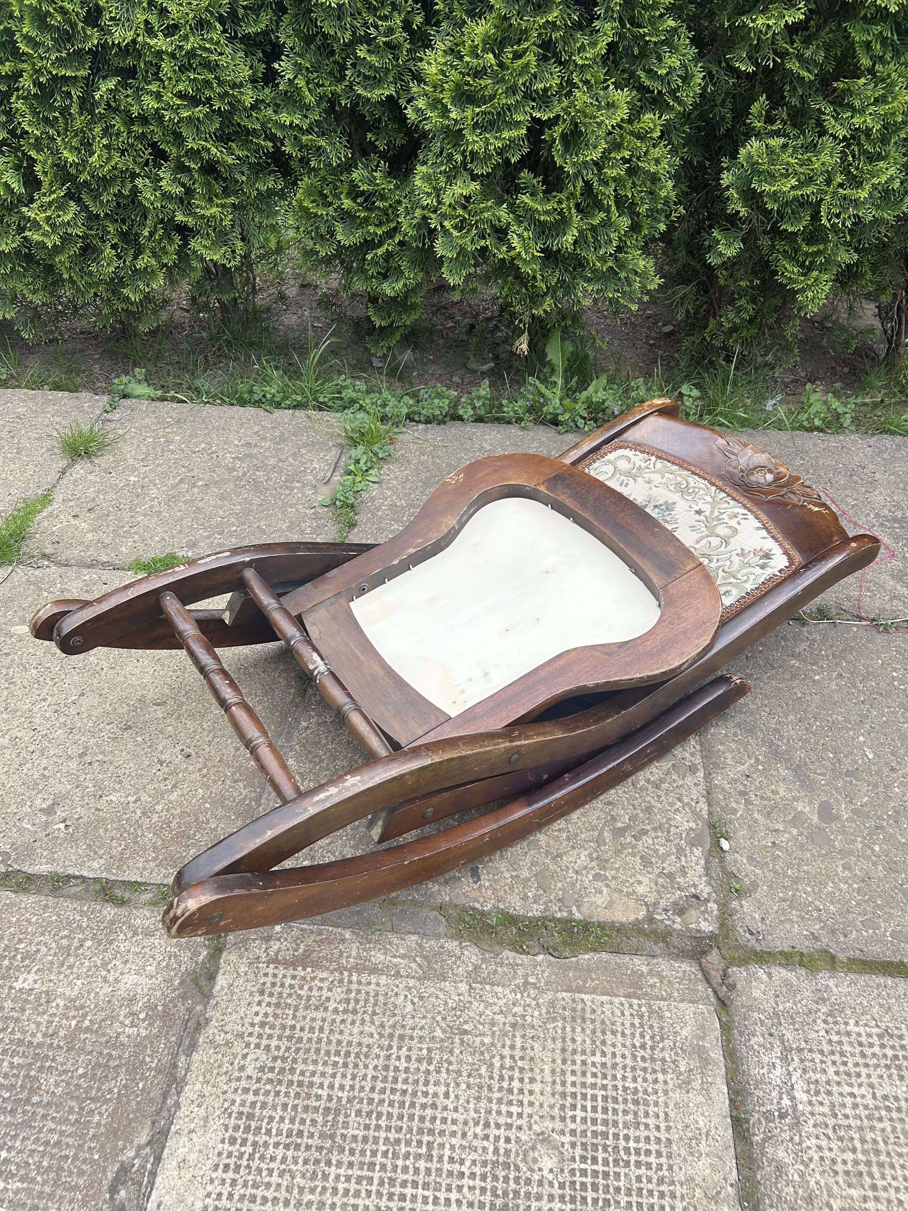 Składany fotel bujany – styl vintage – rzeźbione drewno