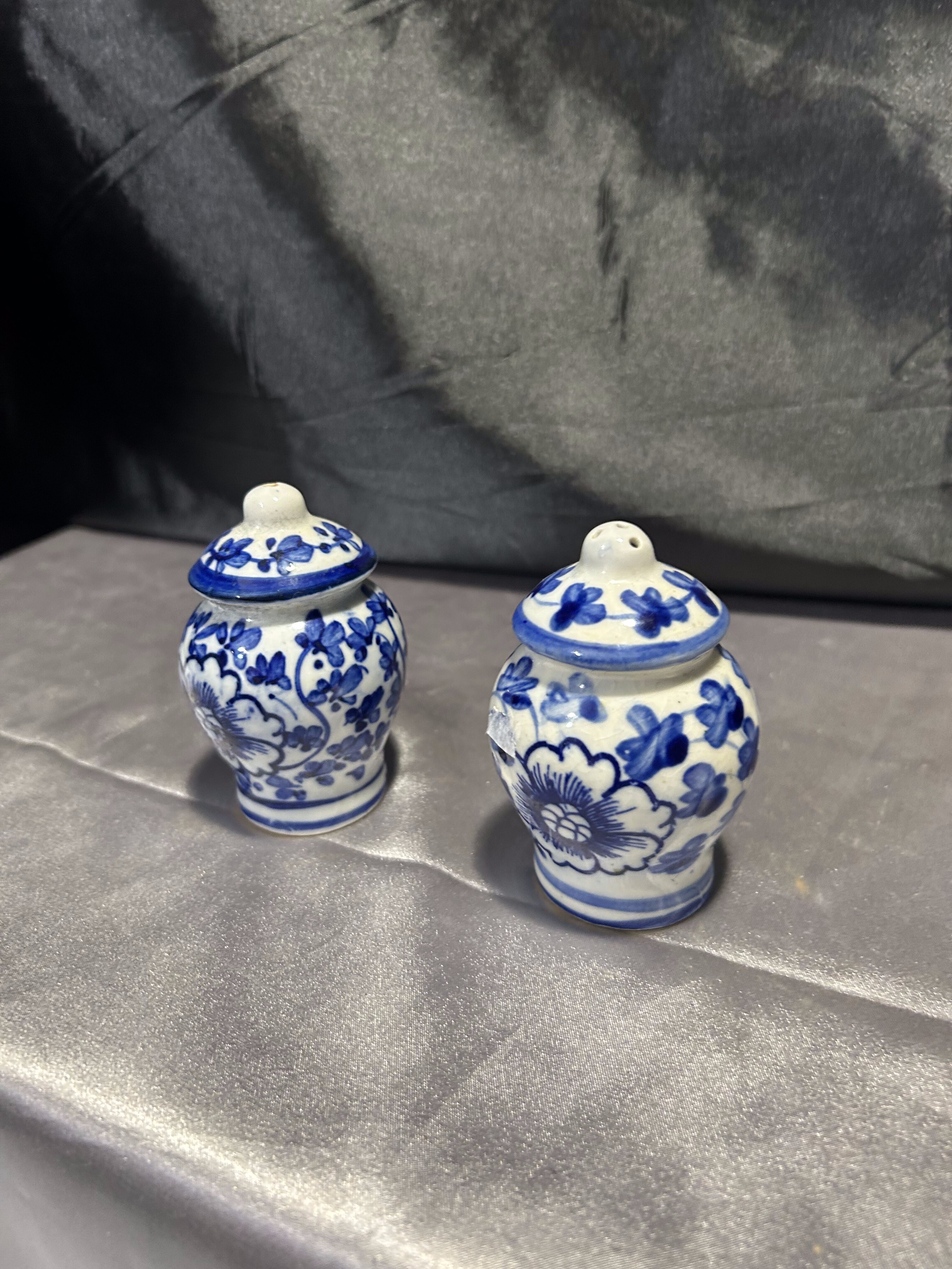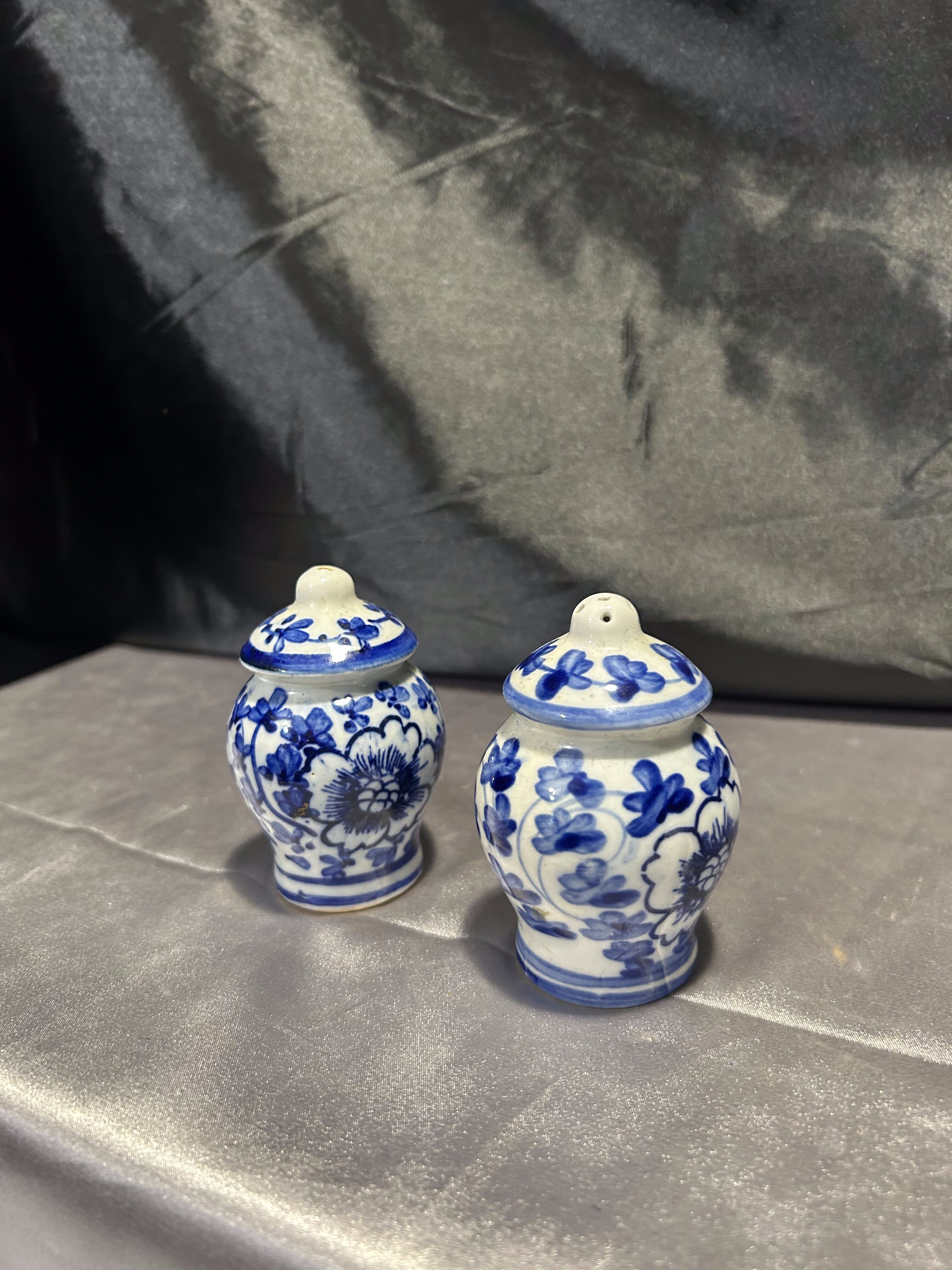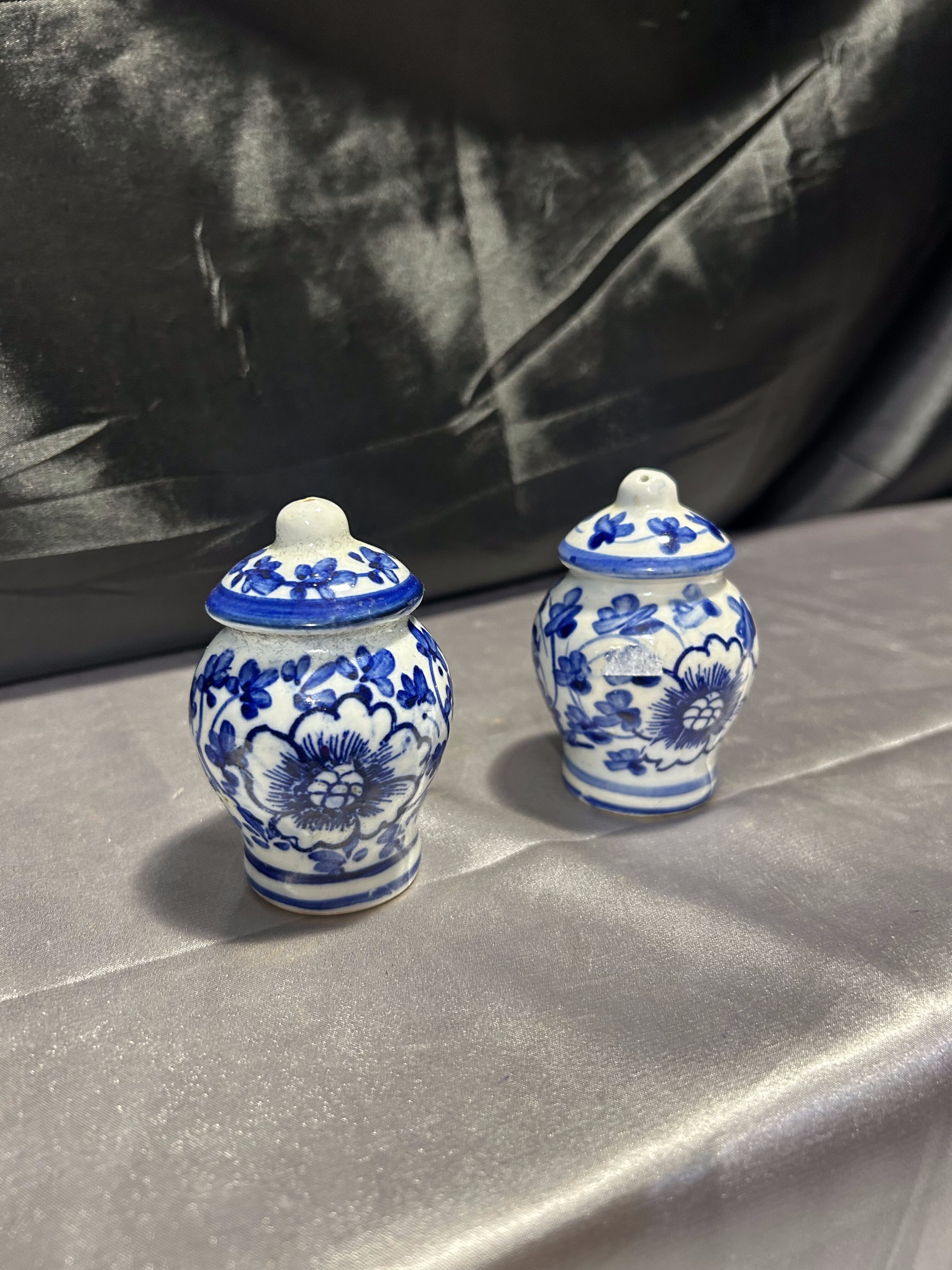 Solniczka i pieprzniczka – Biało-niebieska ceramika w kwiaty – Styl prowansalski