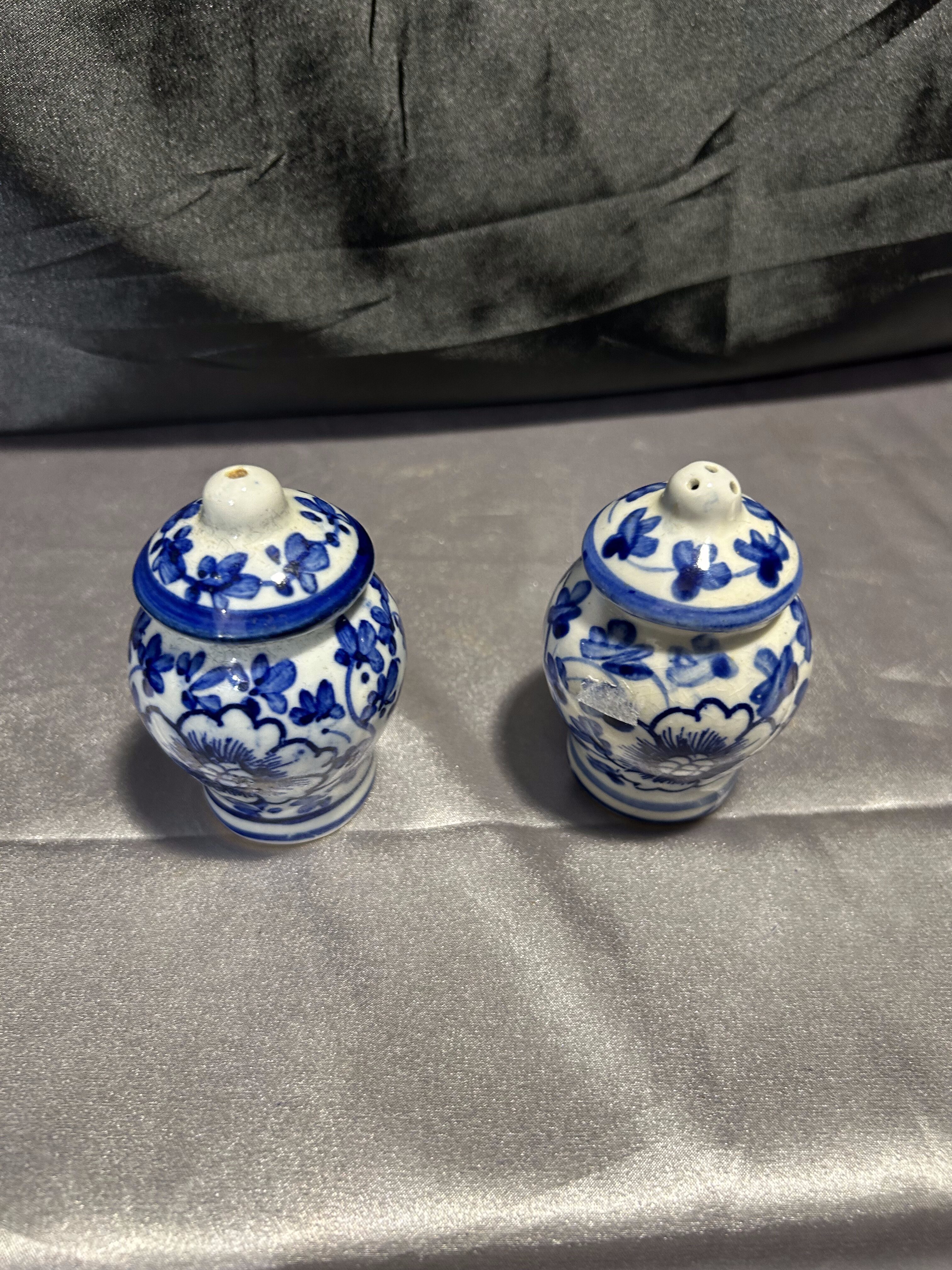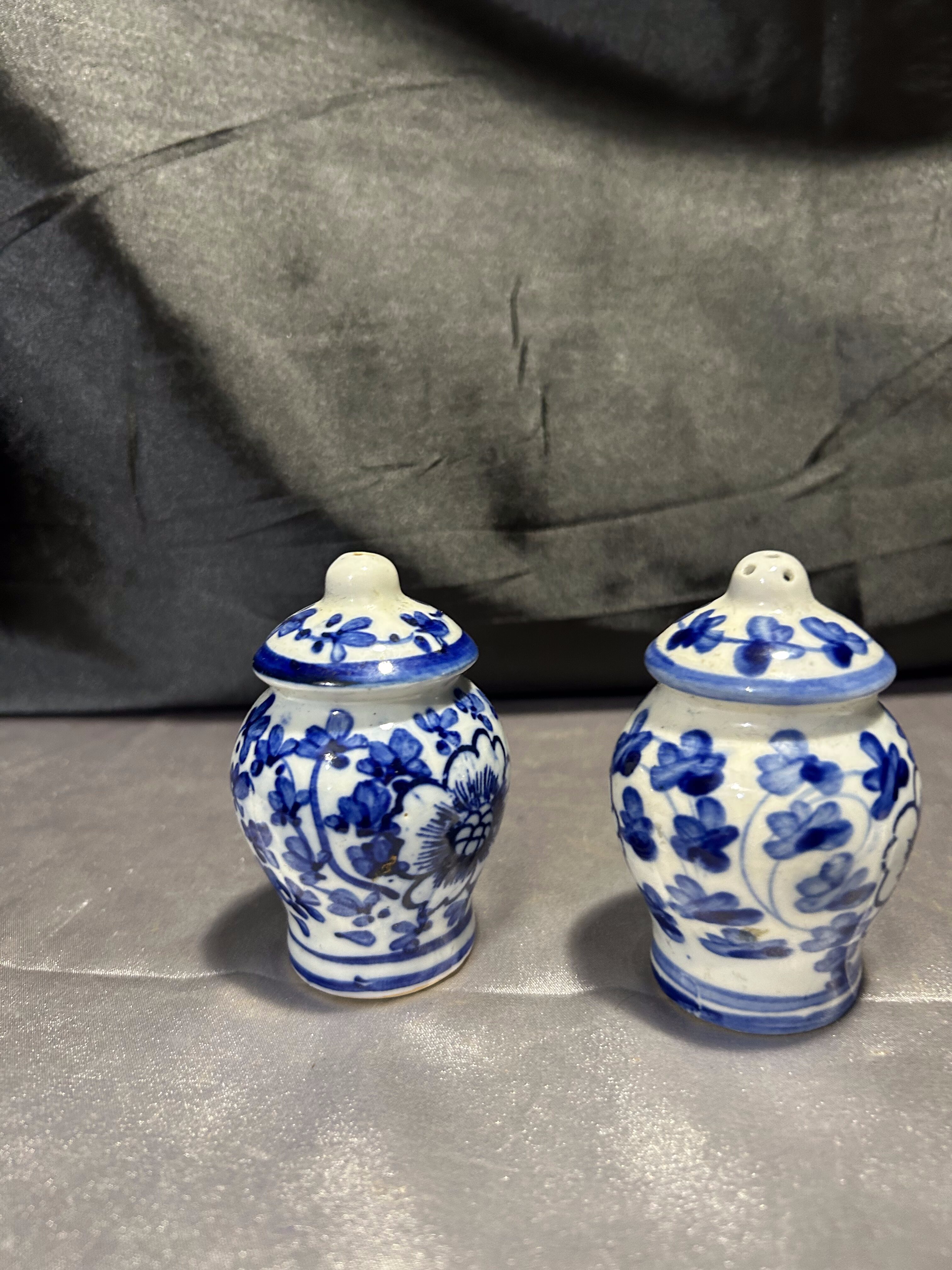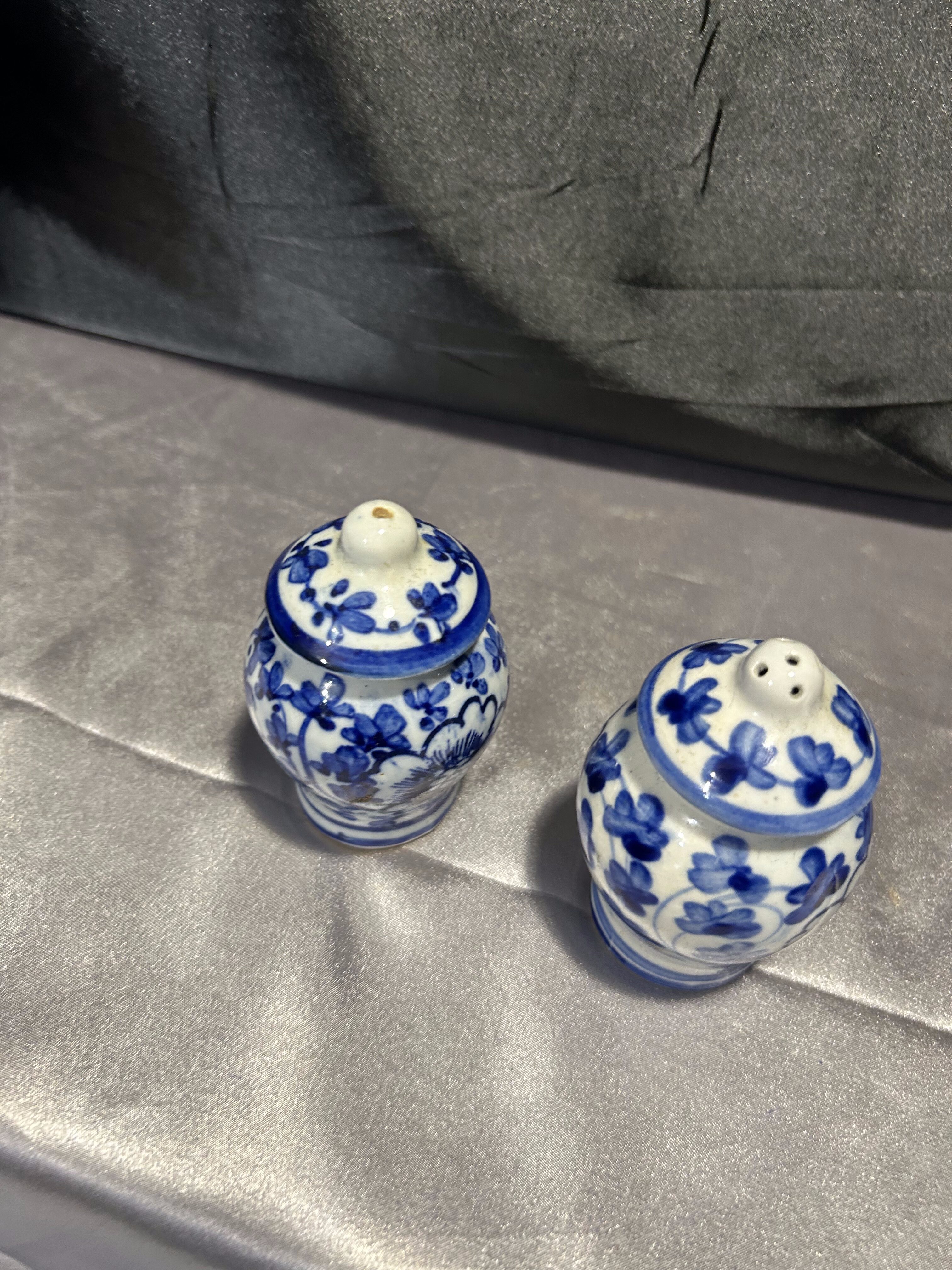 Solniczka i pieprzniczka – Biało-niebieska ceramika w kwiaty – Styl prowansalski