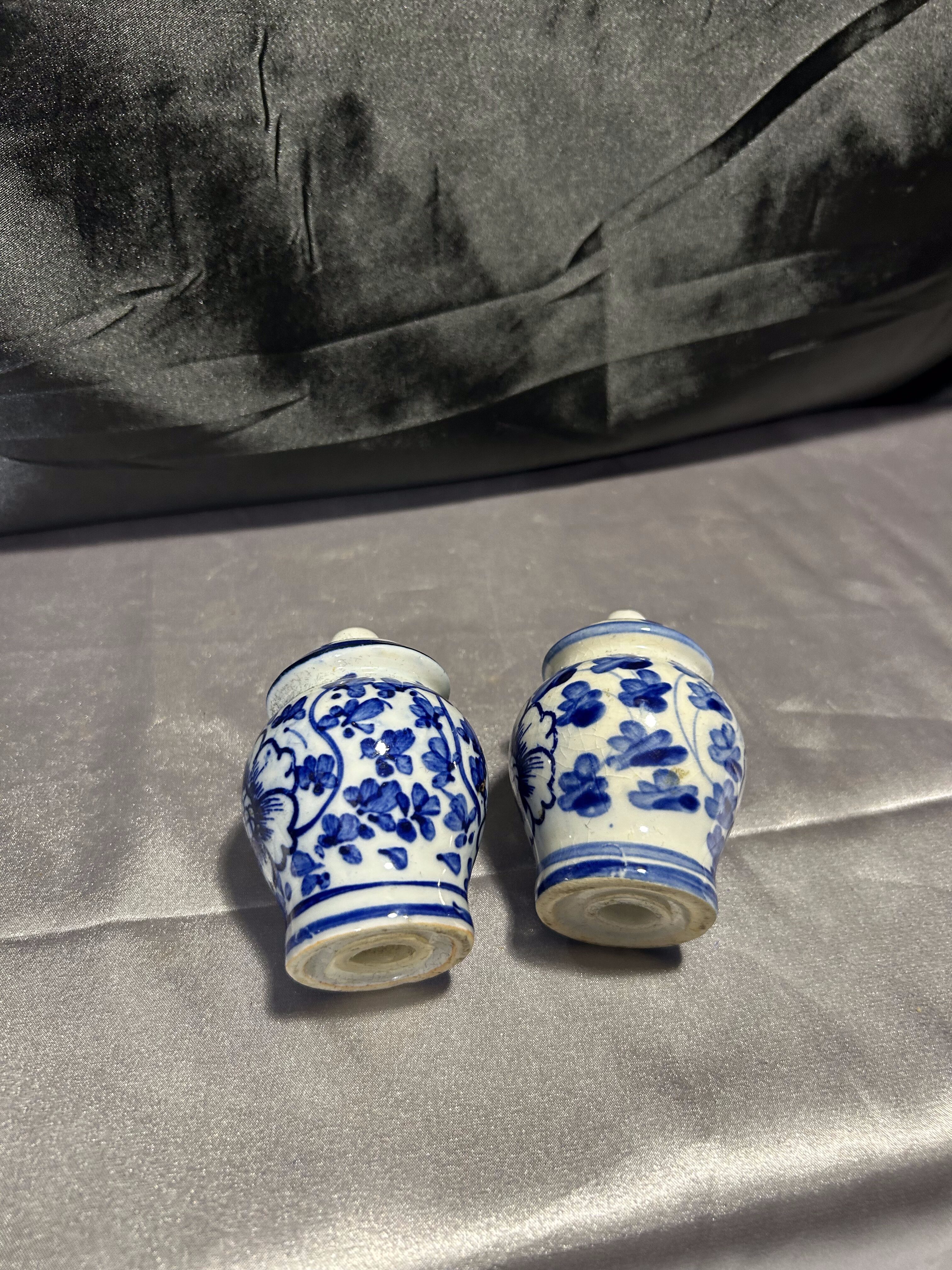 - Solniczka i pieprzniczka – Biało-niebieska ceramika w kwiaty – Styl prowansalski