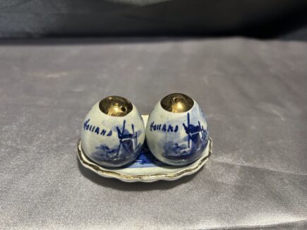 - Solniczka i pieprzniczka – Ceramiczne z malowidłami – Złote obwódki, styl retro