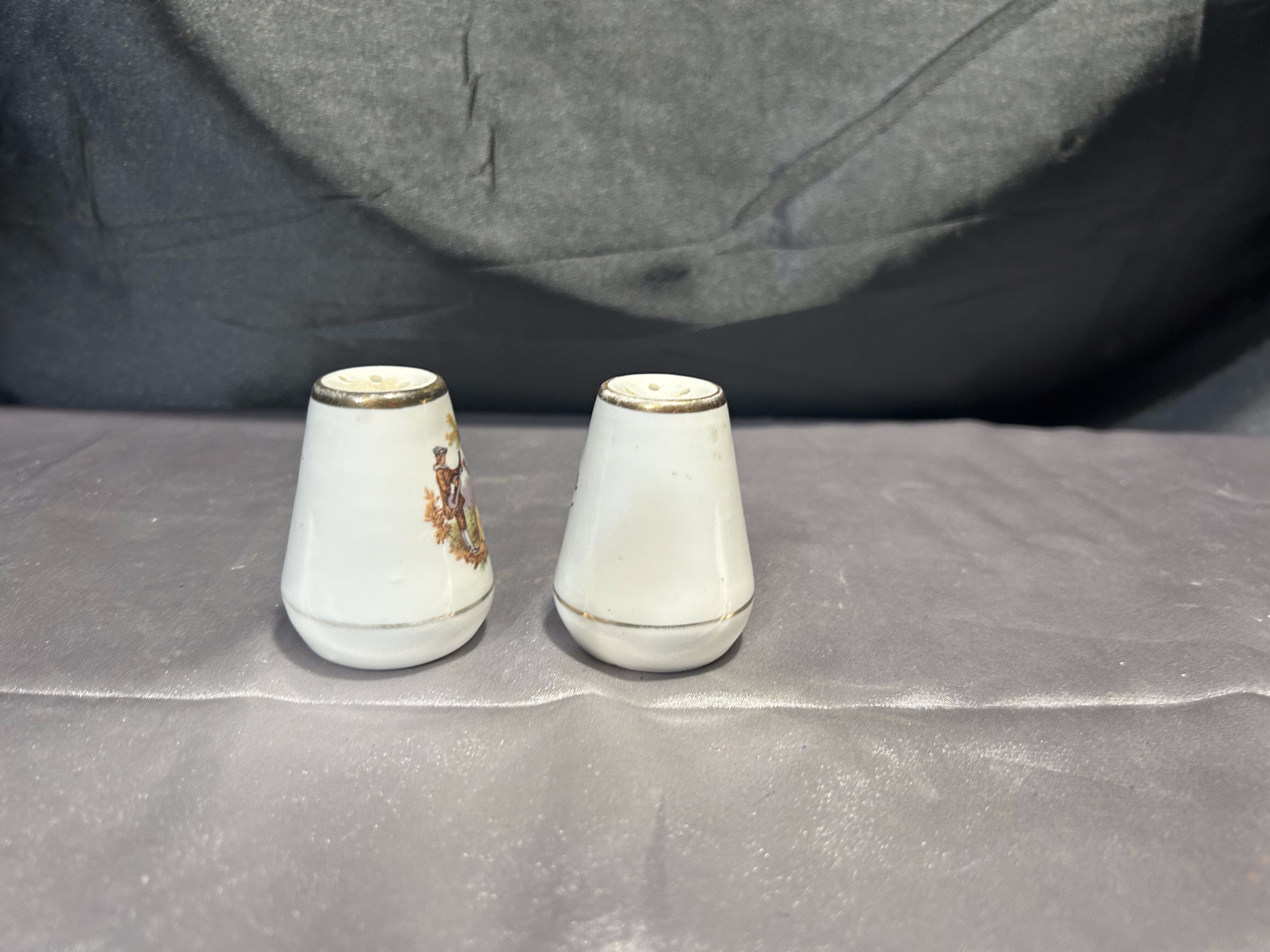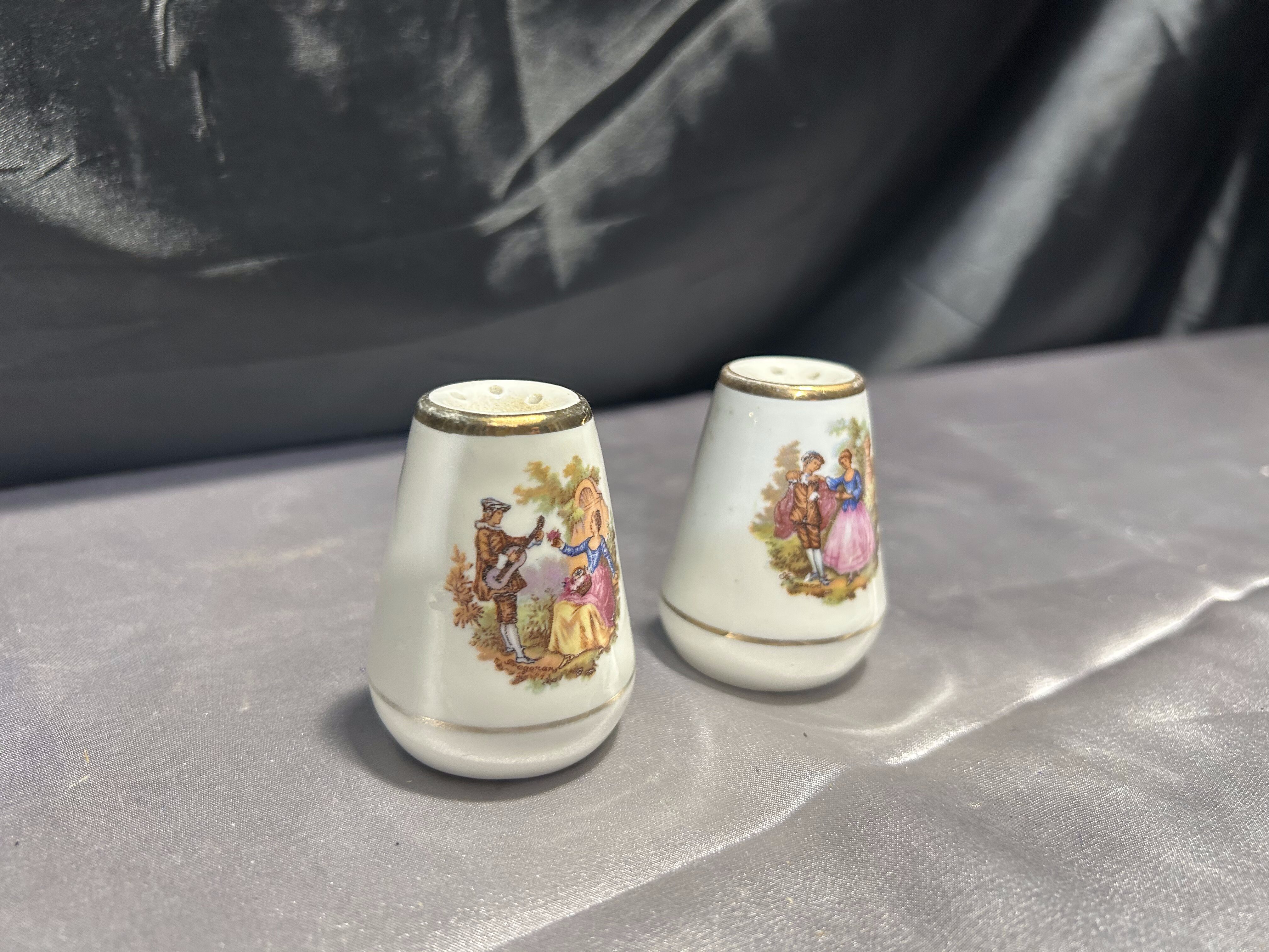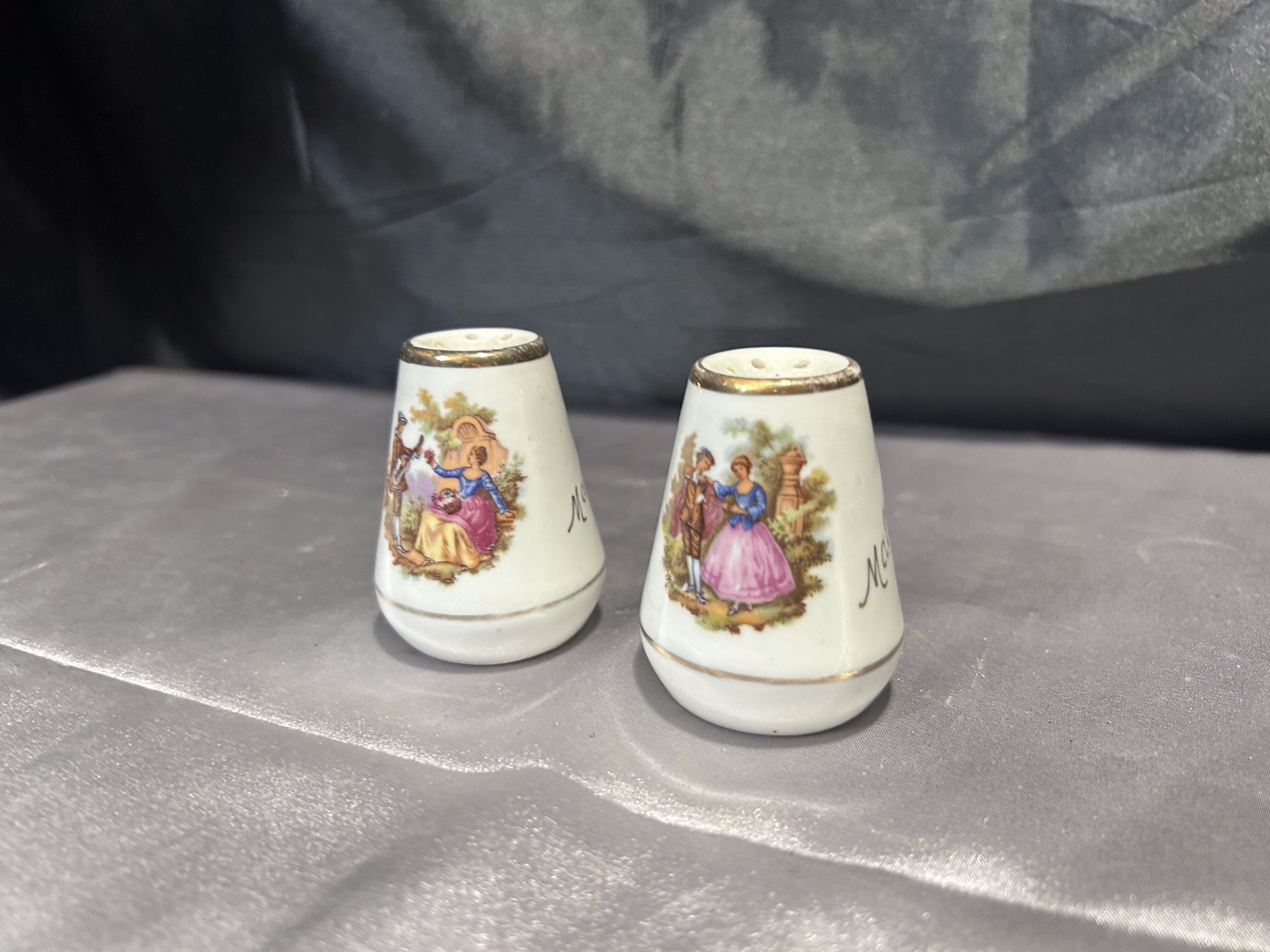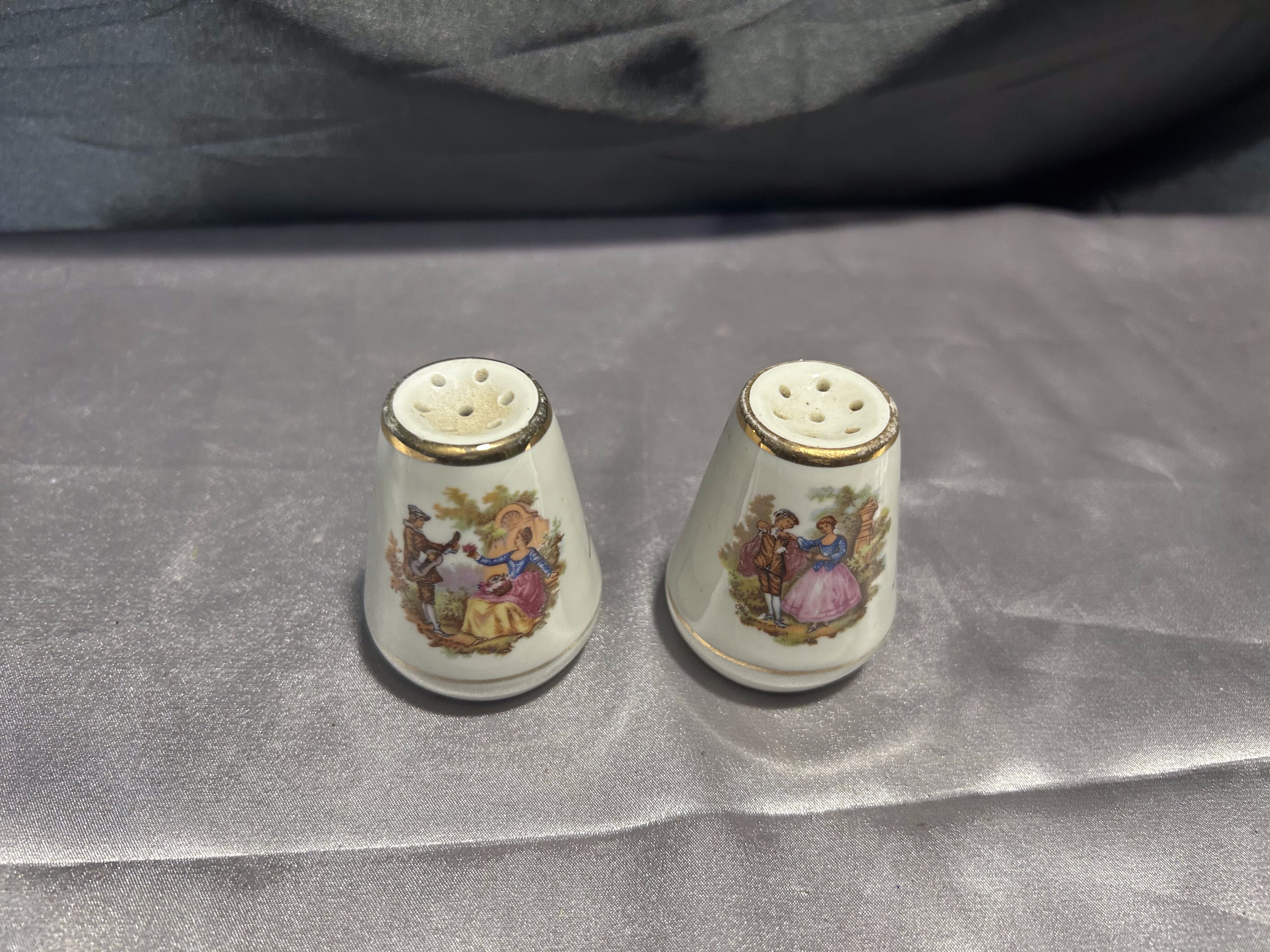 Solniczka i pieprzniczka – Ceramiczne z malowidłami – Złote obwódki, styl retro