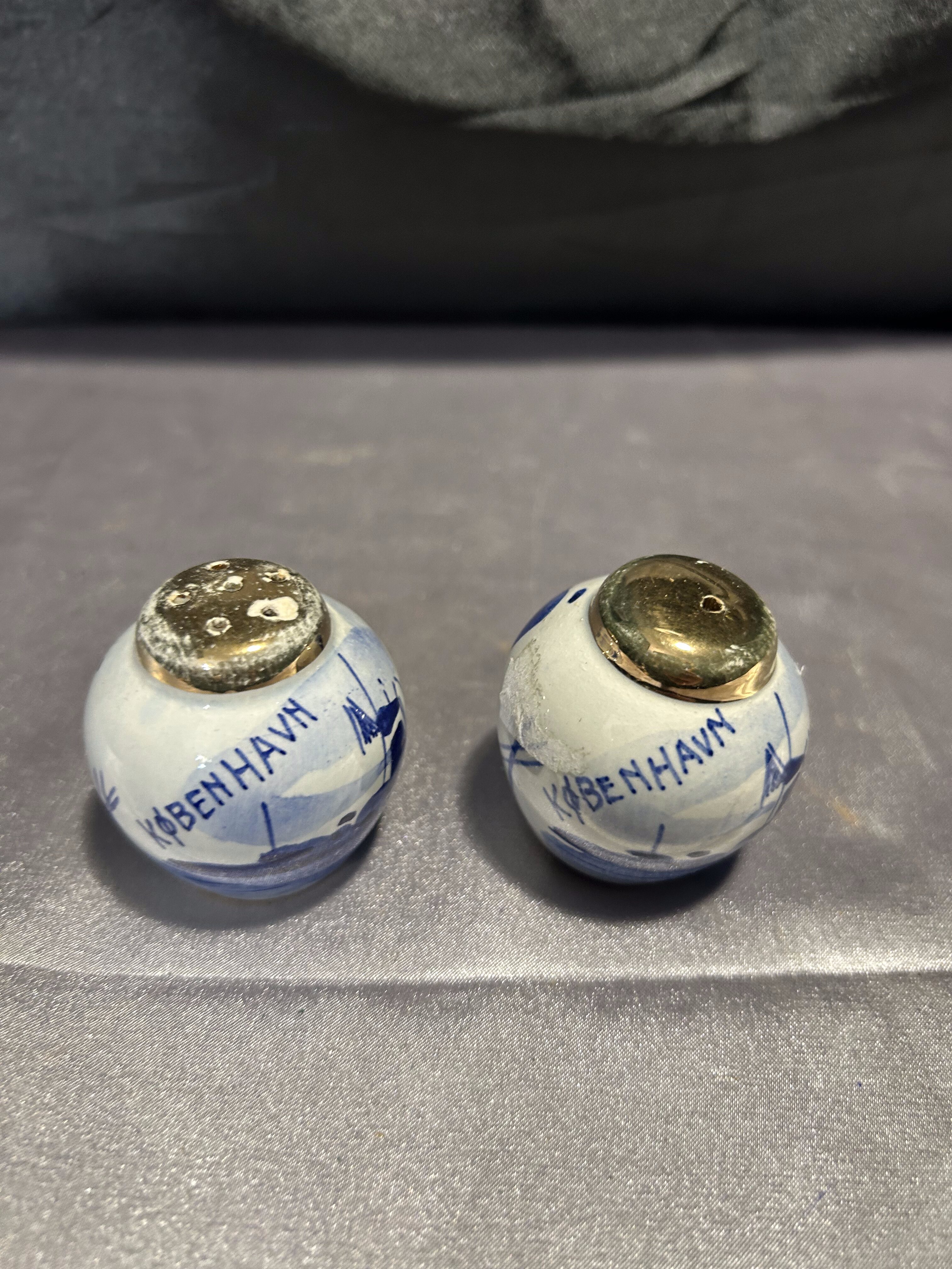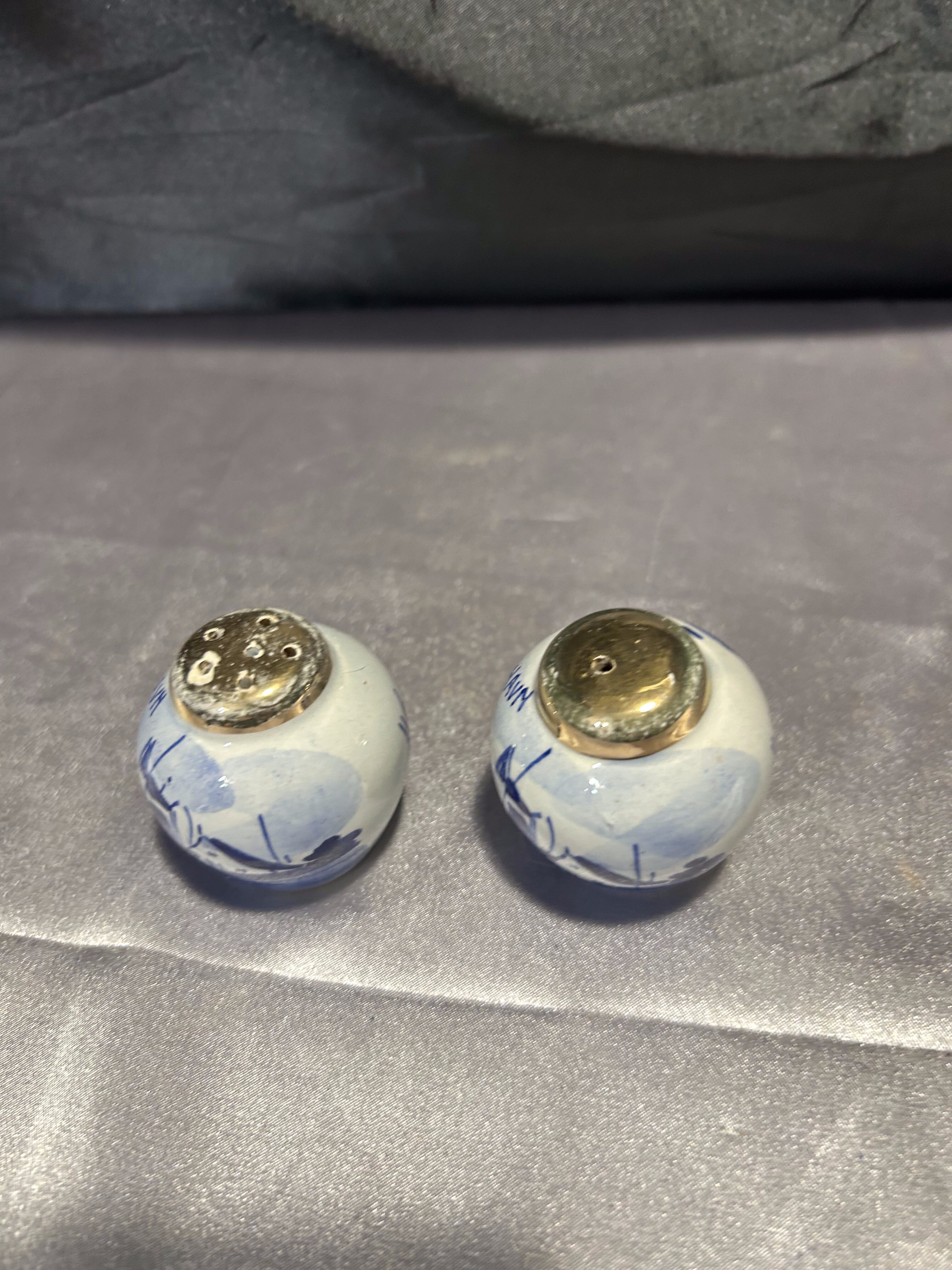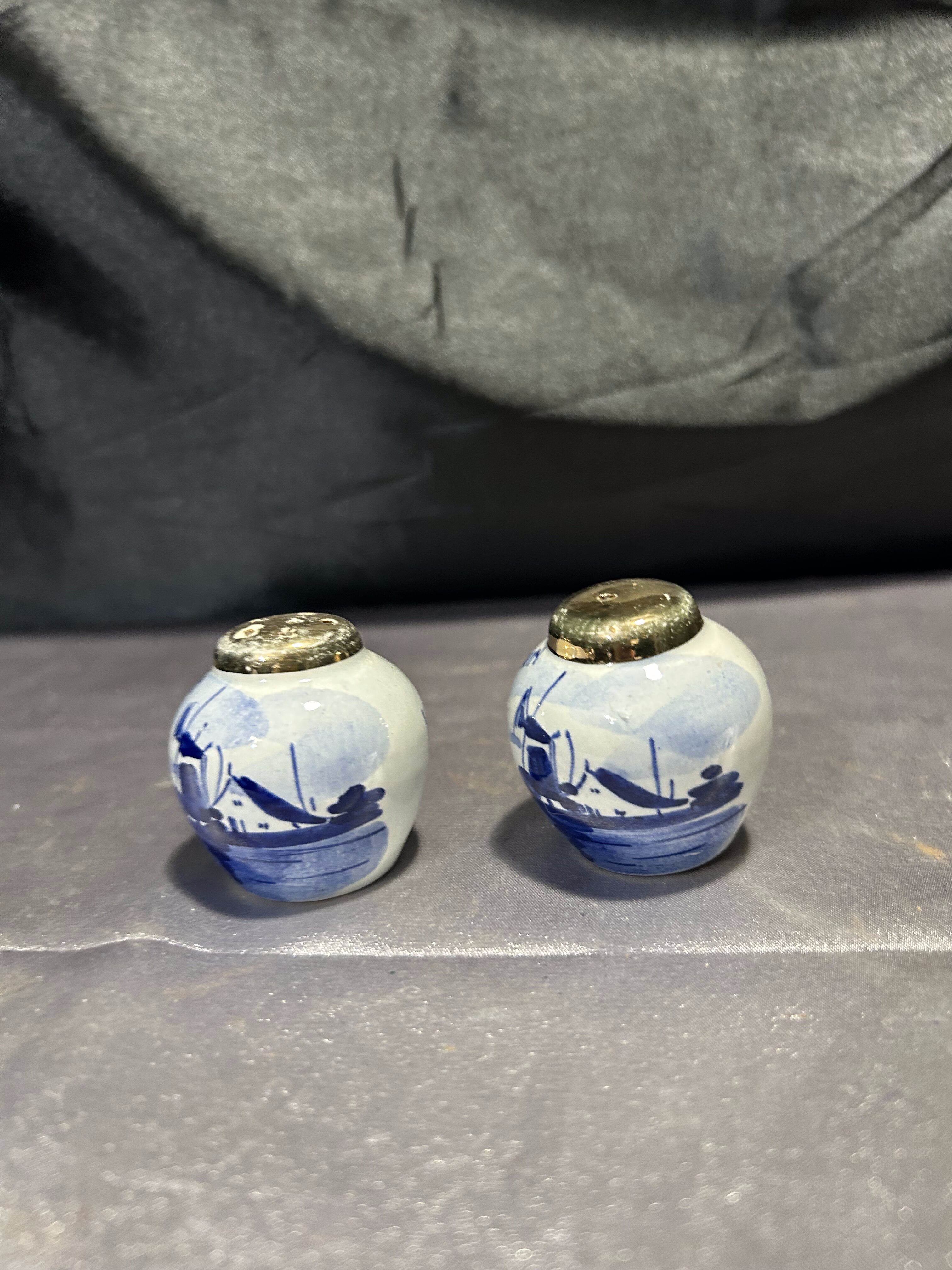 Solniczka i pieprzniczka – Ceramika holenderska – Niebieski wzór z wiatrakami