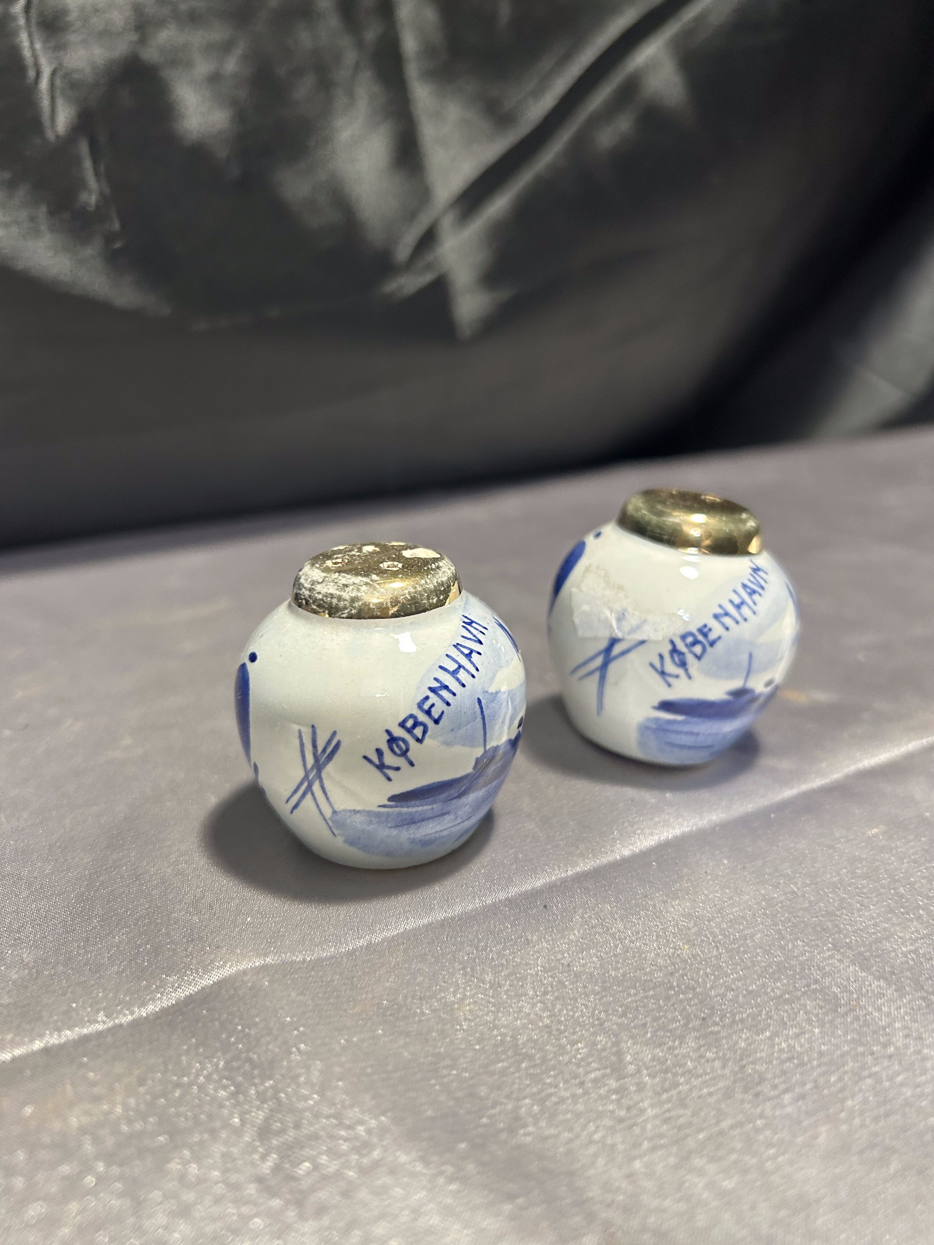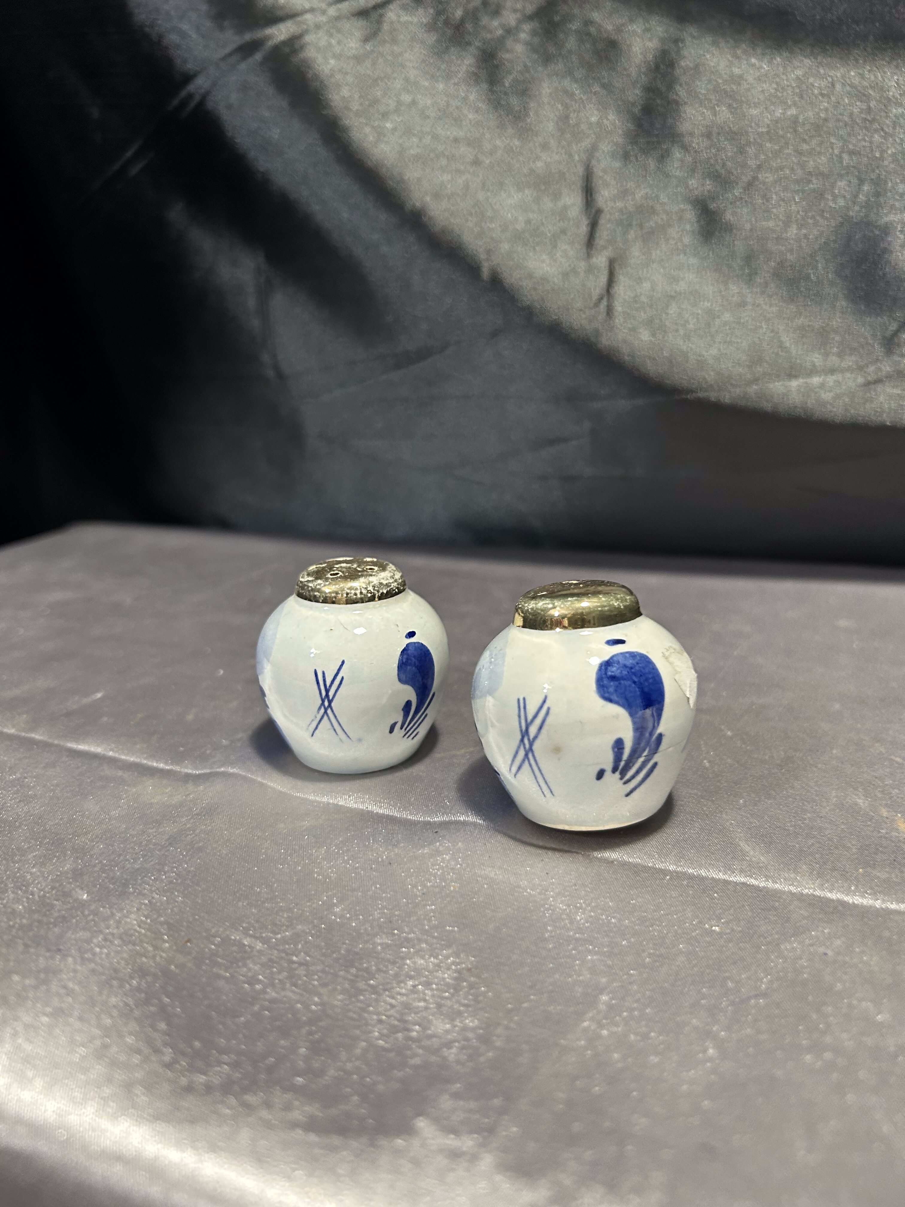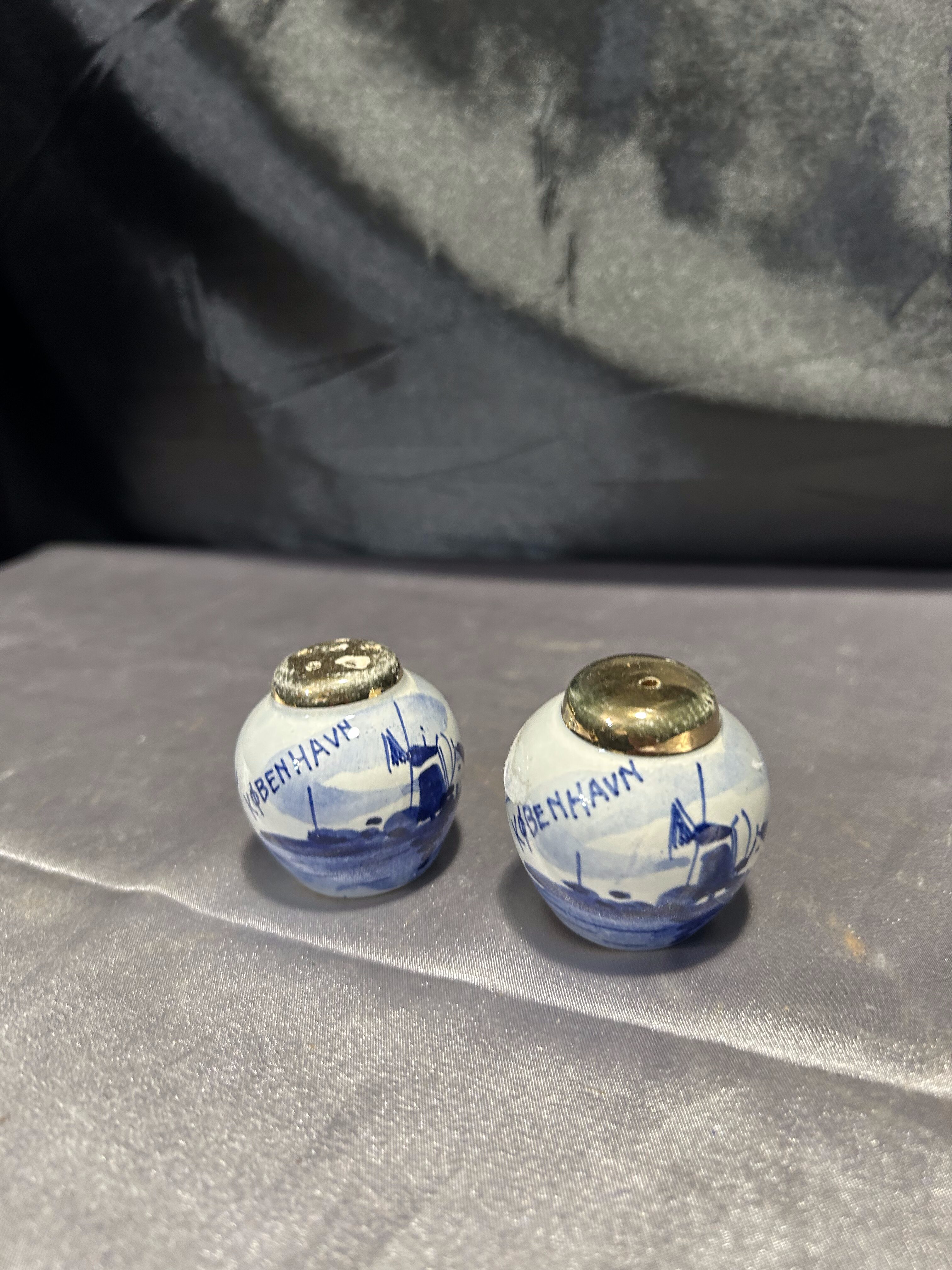 Solniczka i pieprzniczka – Ceramika holenderska – Niebieski wzór z wiatrakami