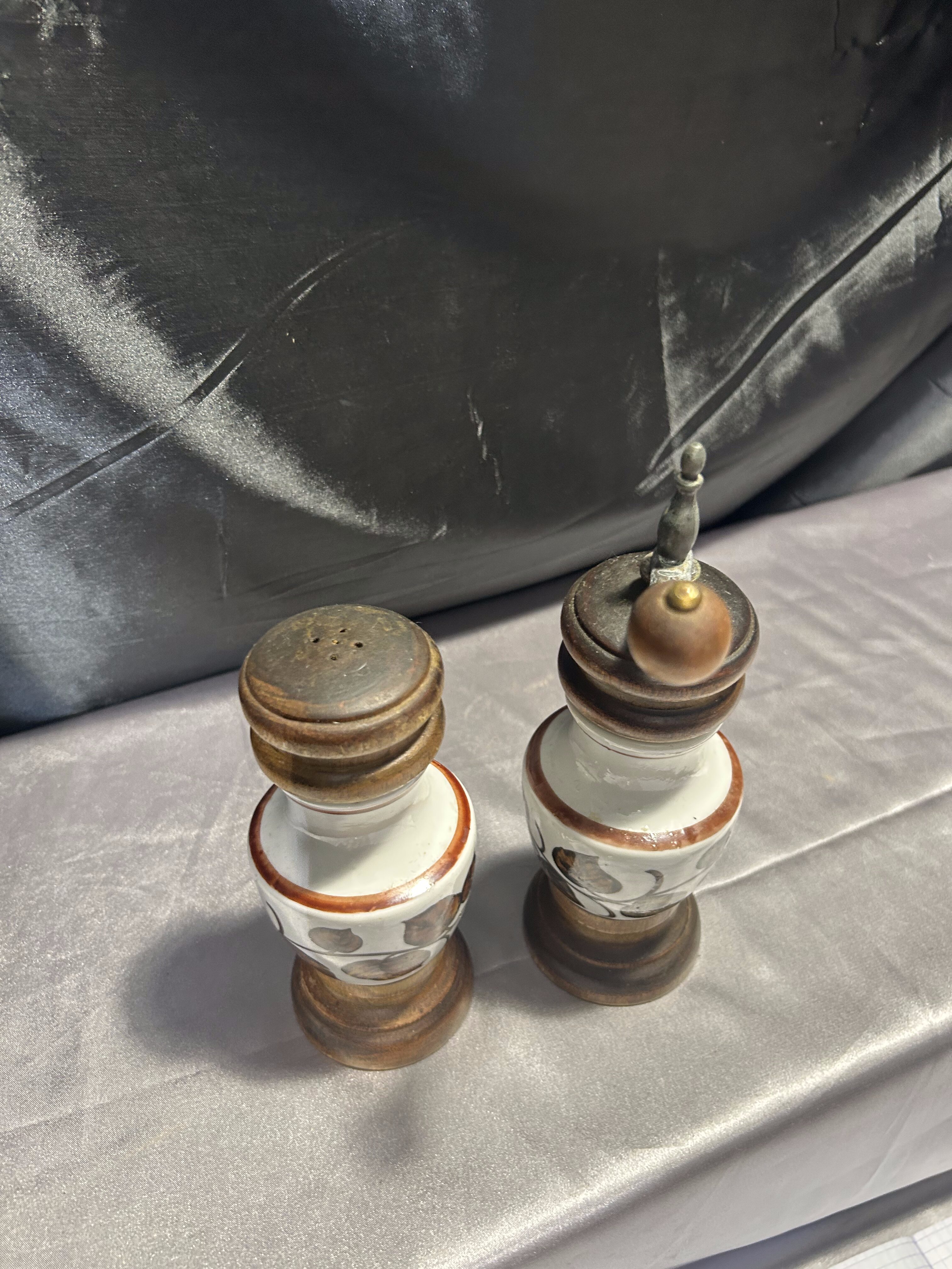 Solniczka i pieprzniczka – Ceramiczne z malowidłami – Złote obwódki, styl retro