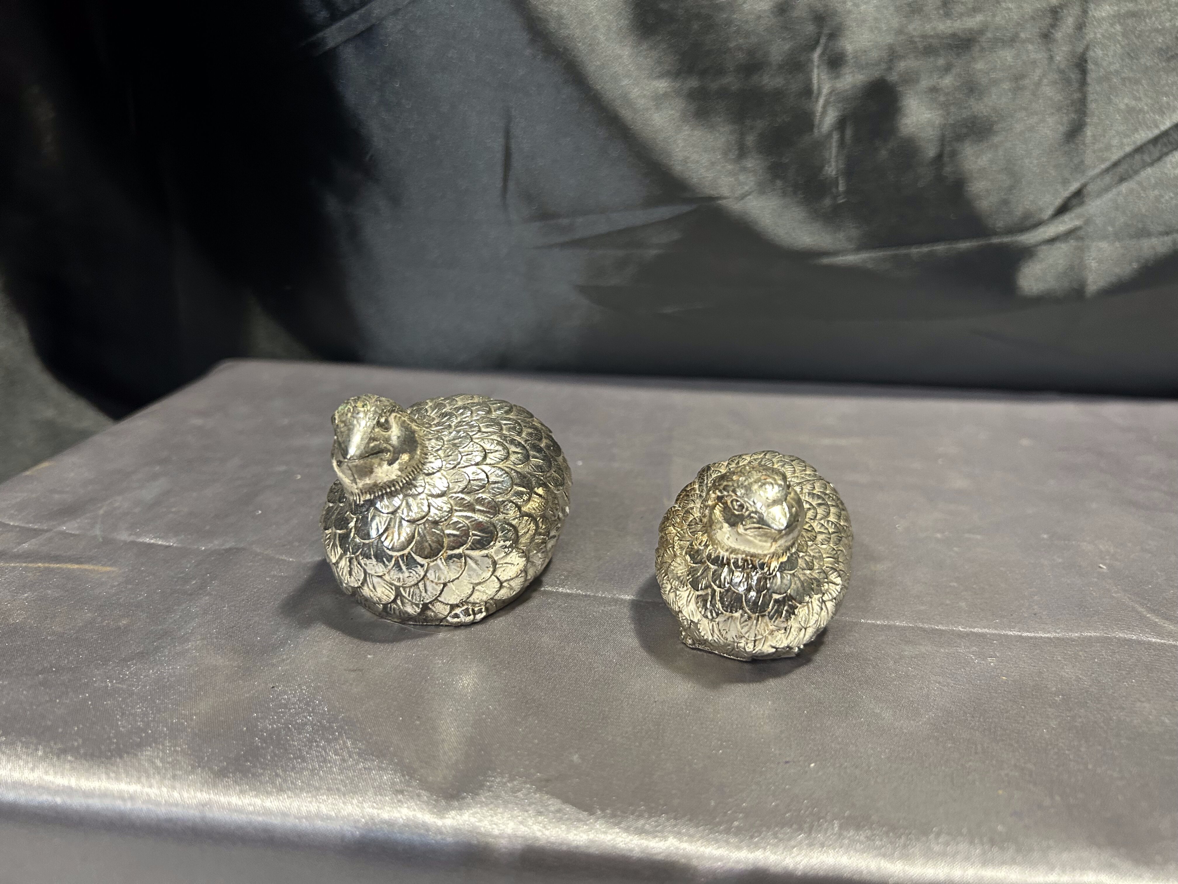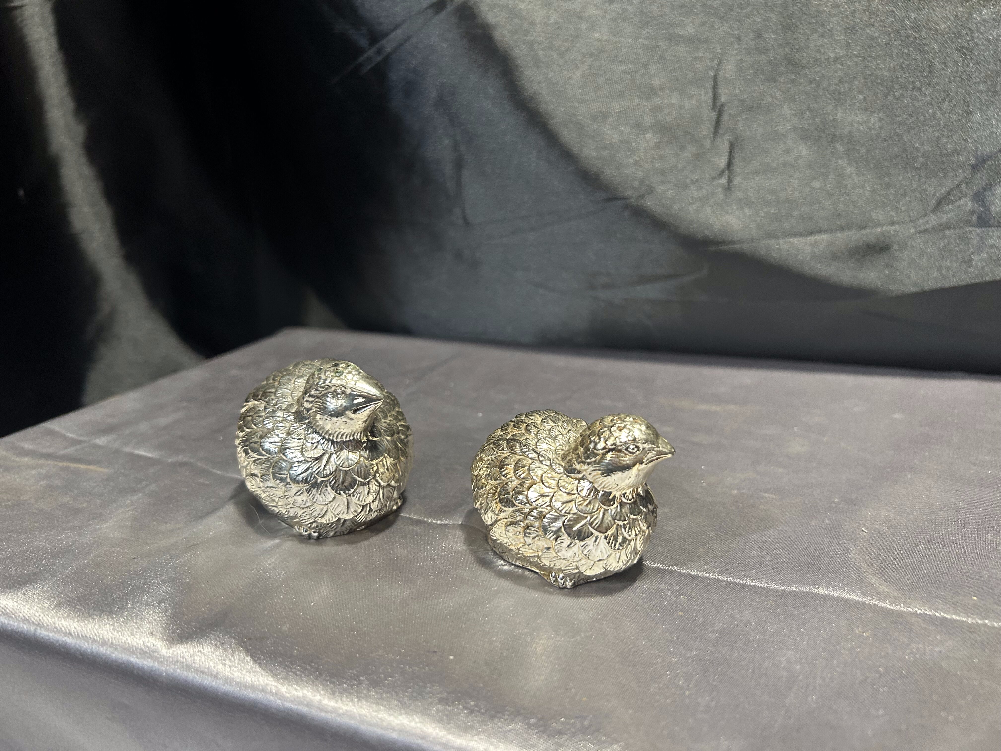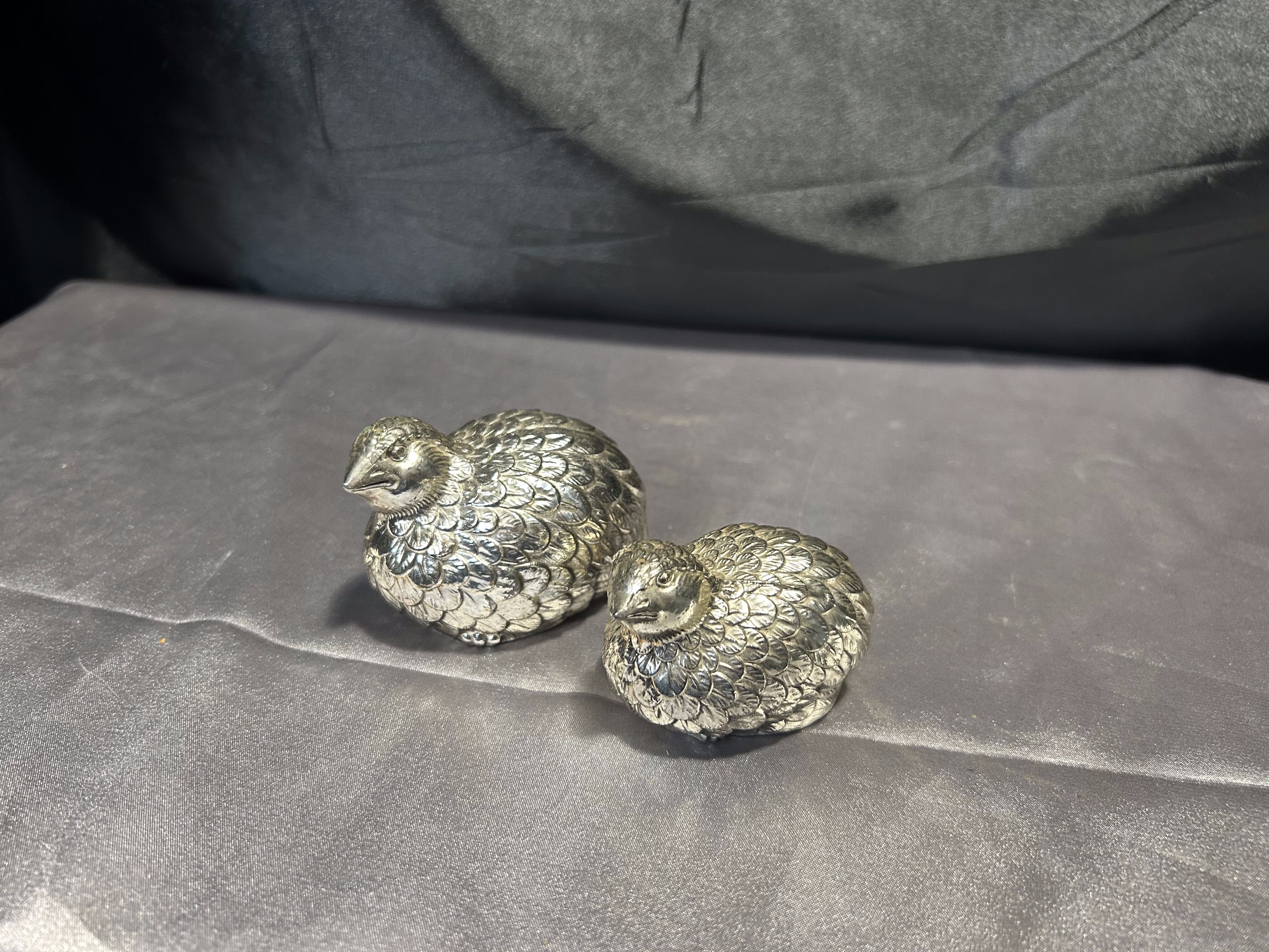 - Solniczka i pieprzniczka – Kurki w srebrnym kolorze – Realistyczne figurki
