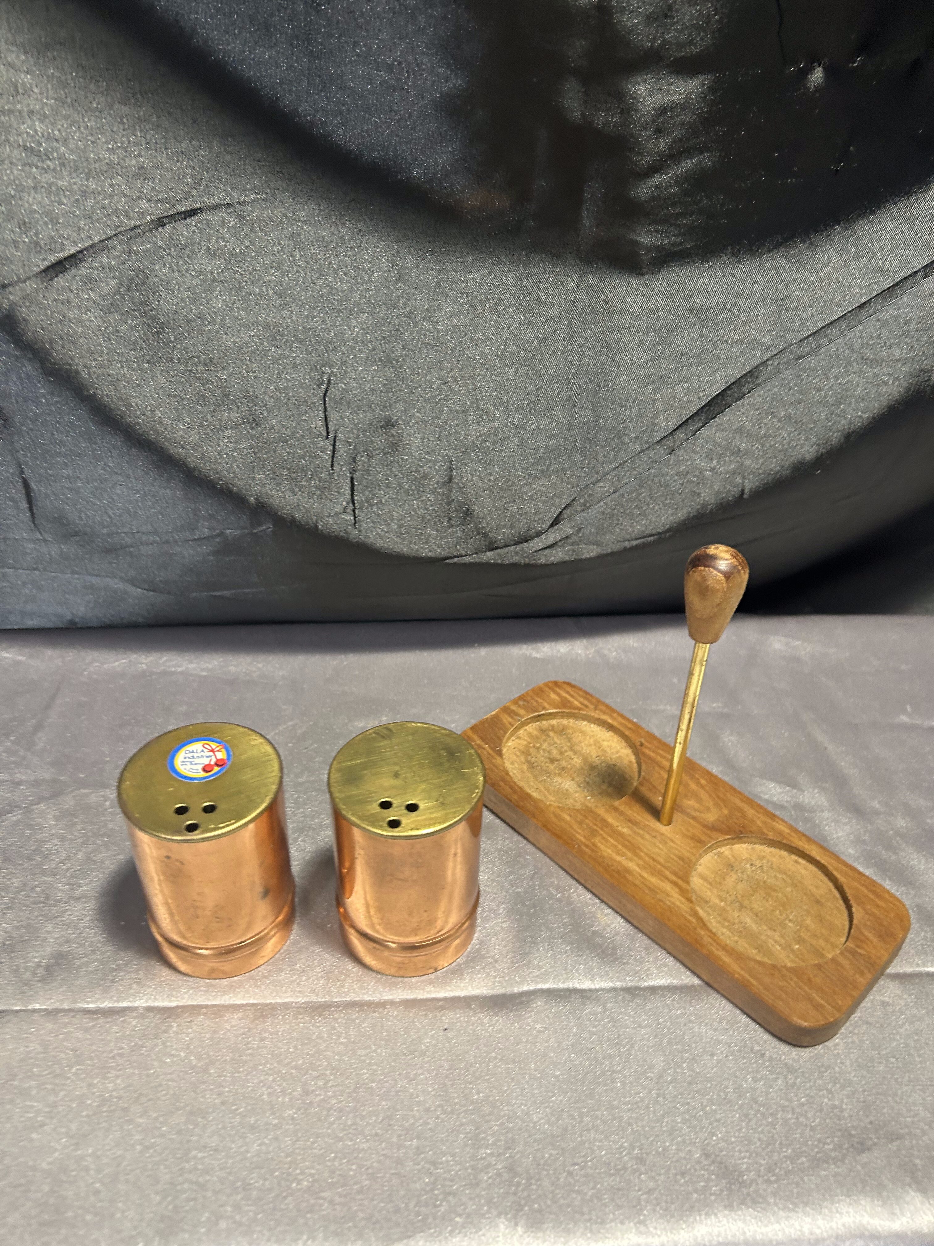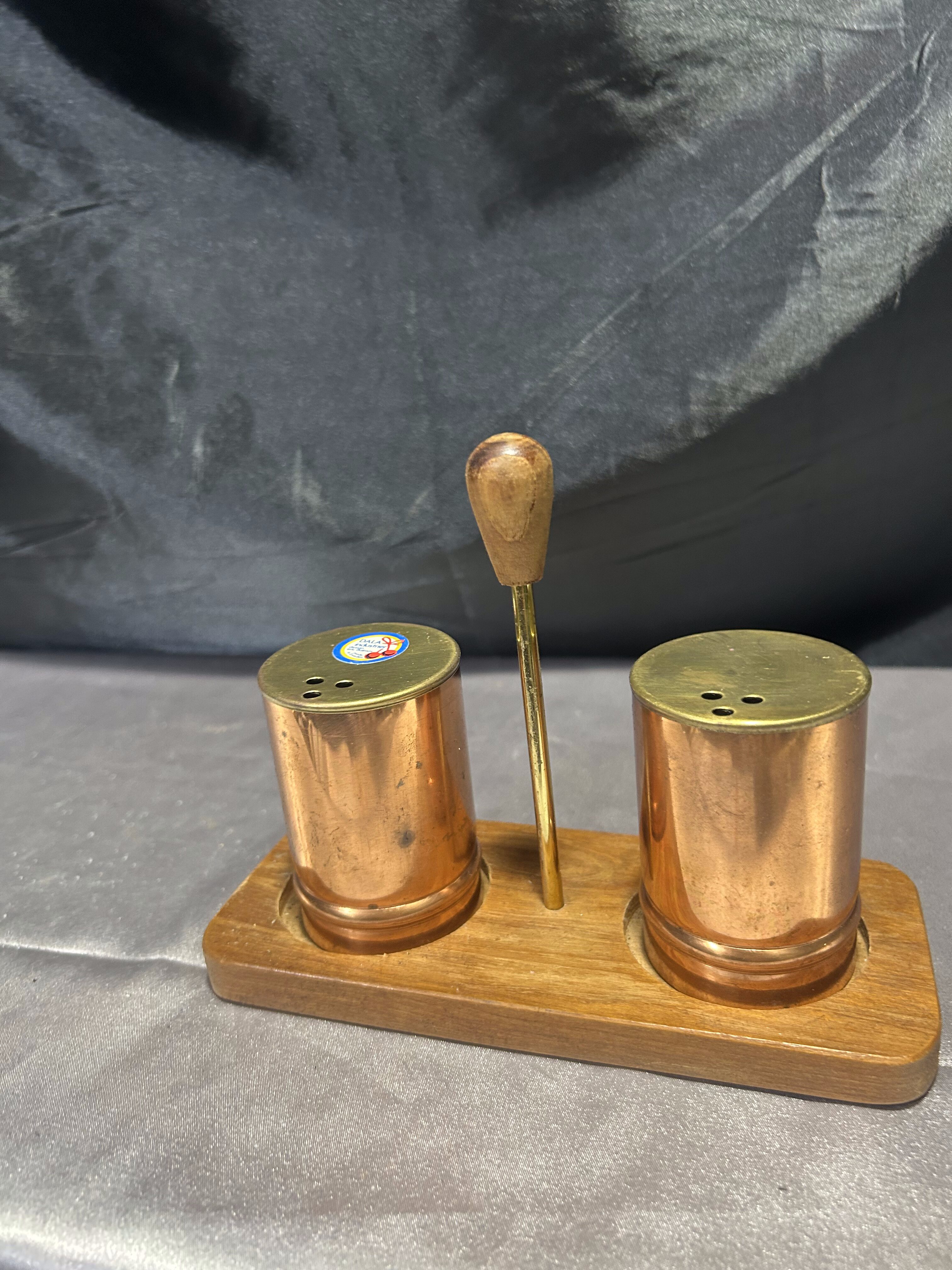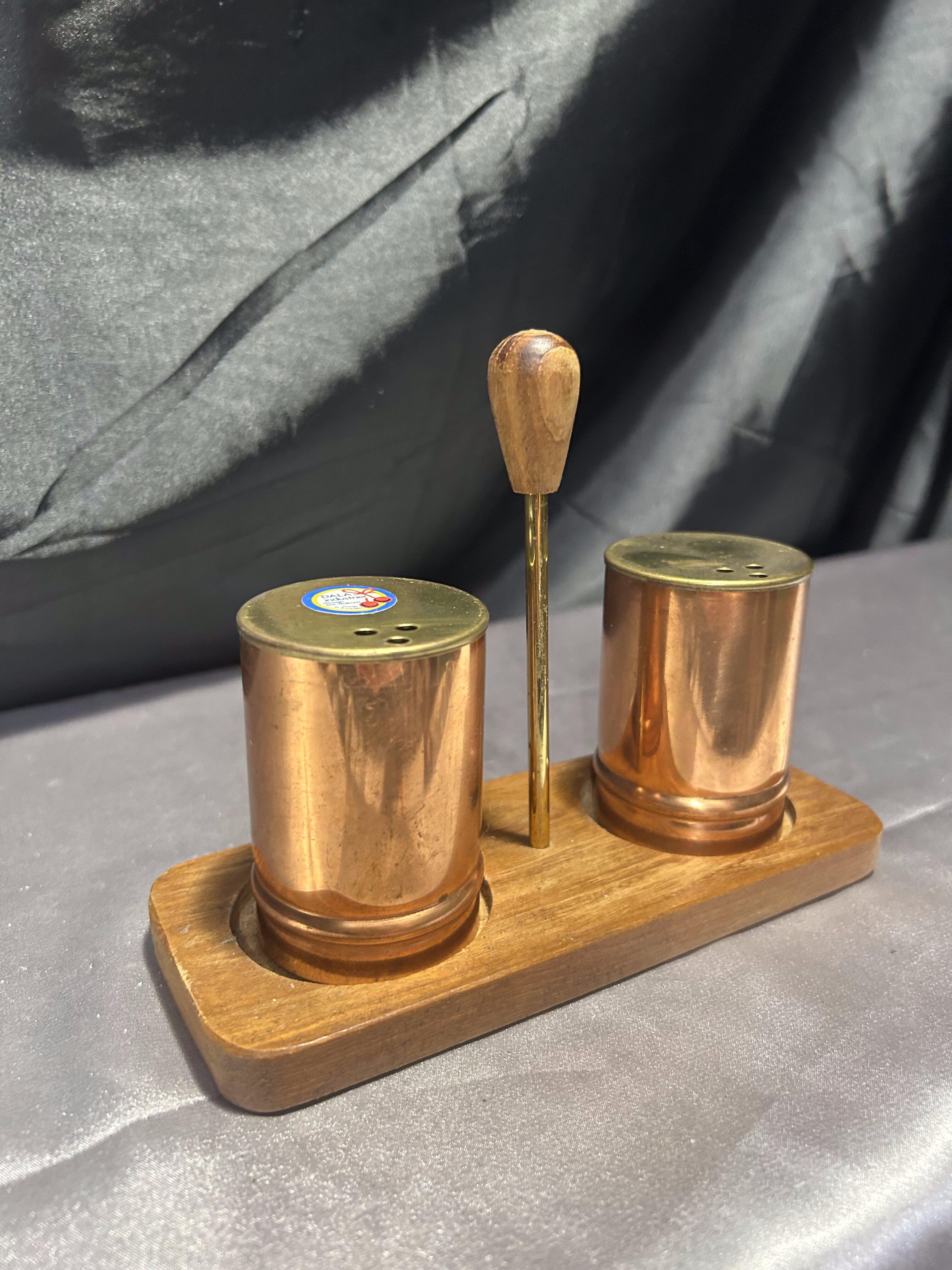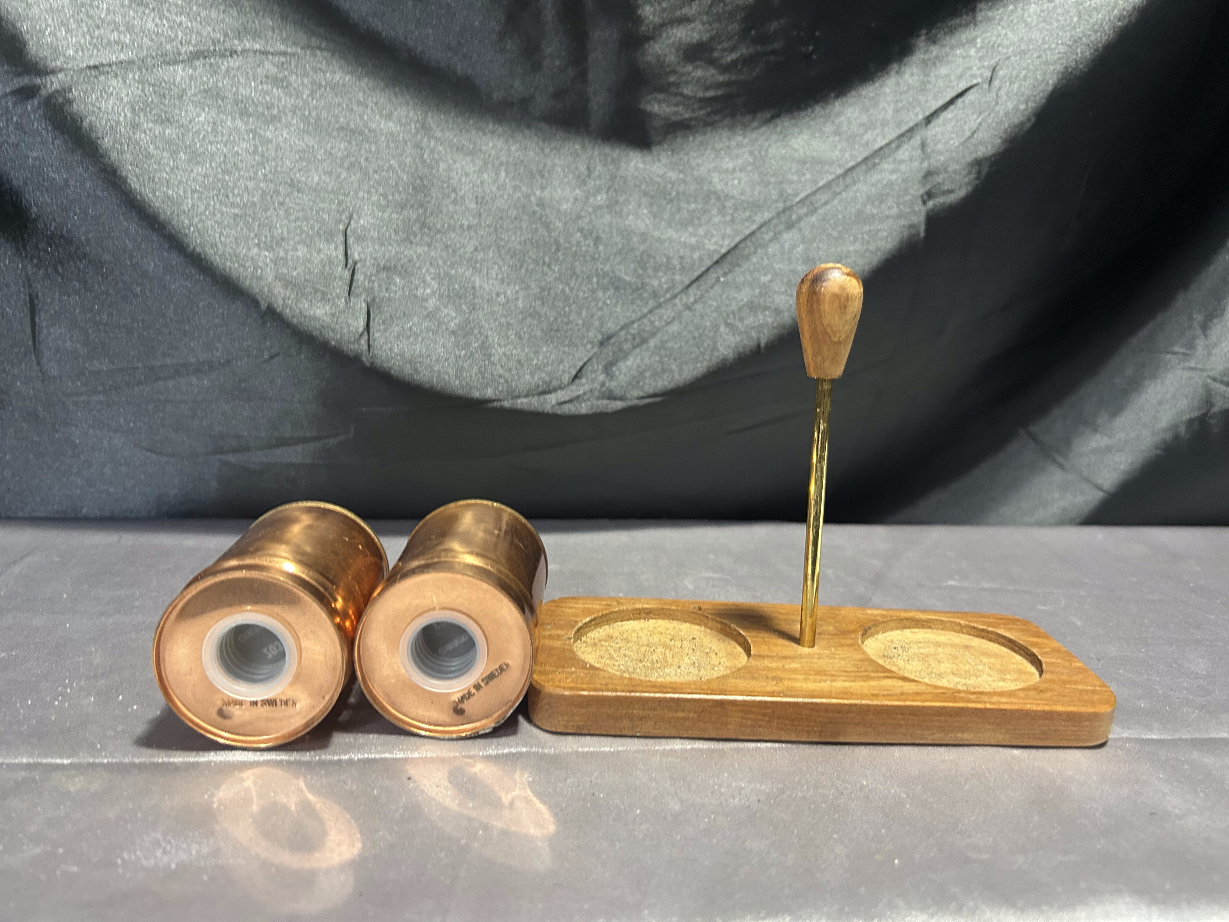 Solniczka i pieprzniczka – Miedziane na drewnianej podstawie – Made in Sweden