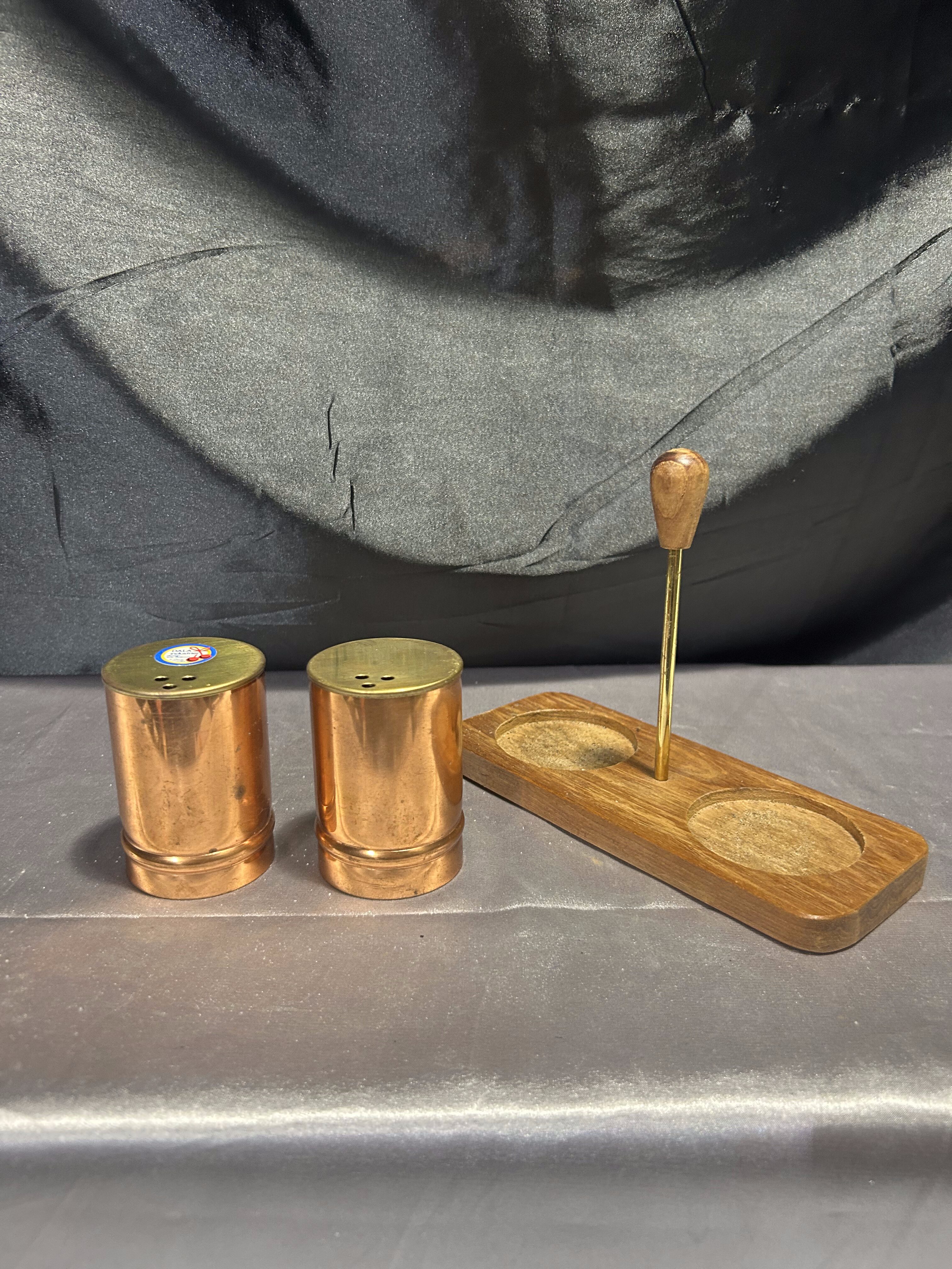 Materiał: miedź (przyprawniki), drewno (podstawa)