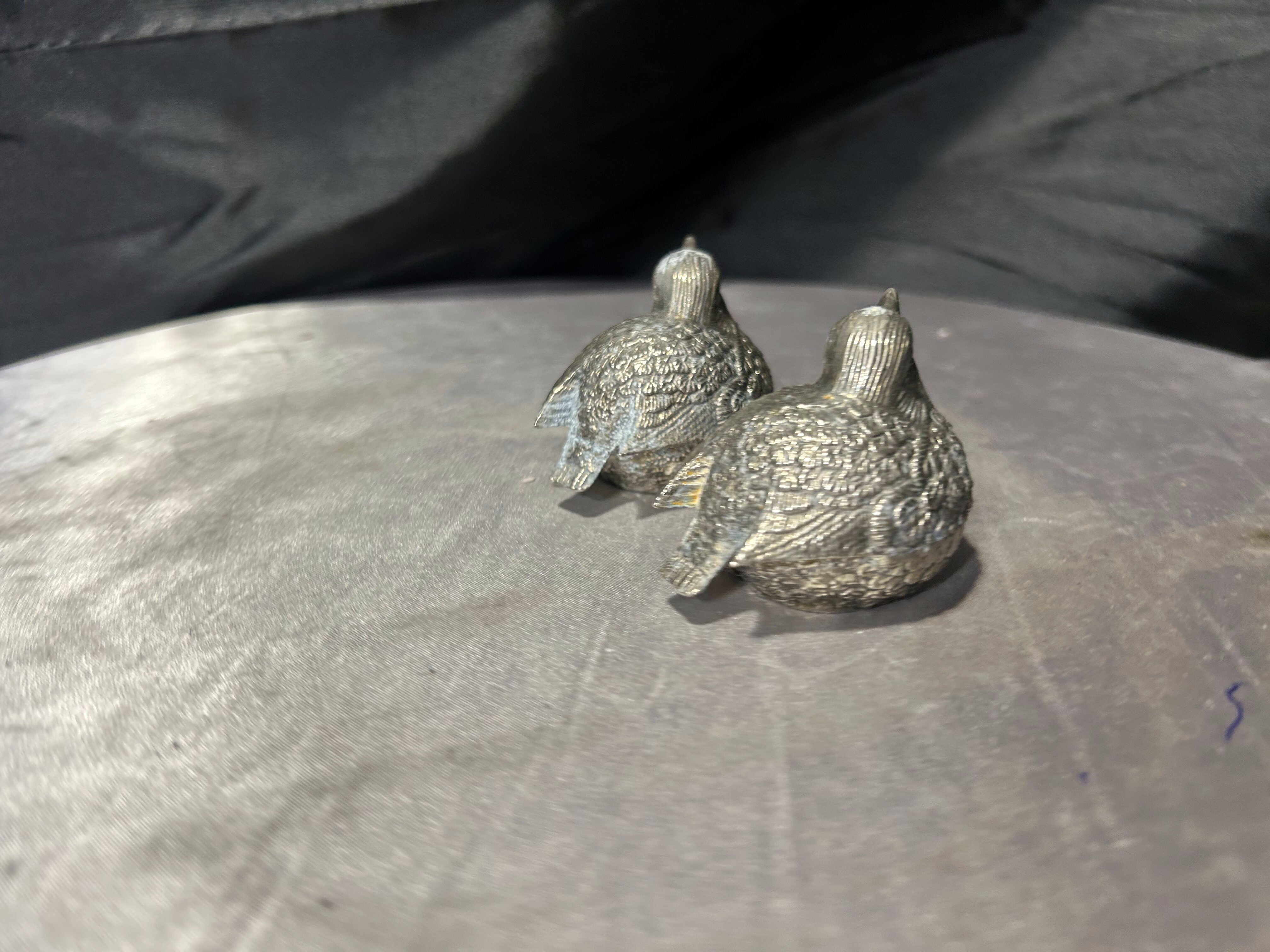 Solniczka i pieprzniczka – Kurki w srebrnym kolorze – Realistyczne figurki