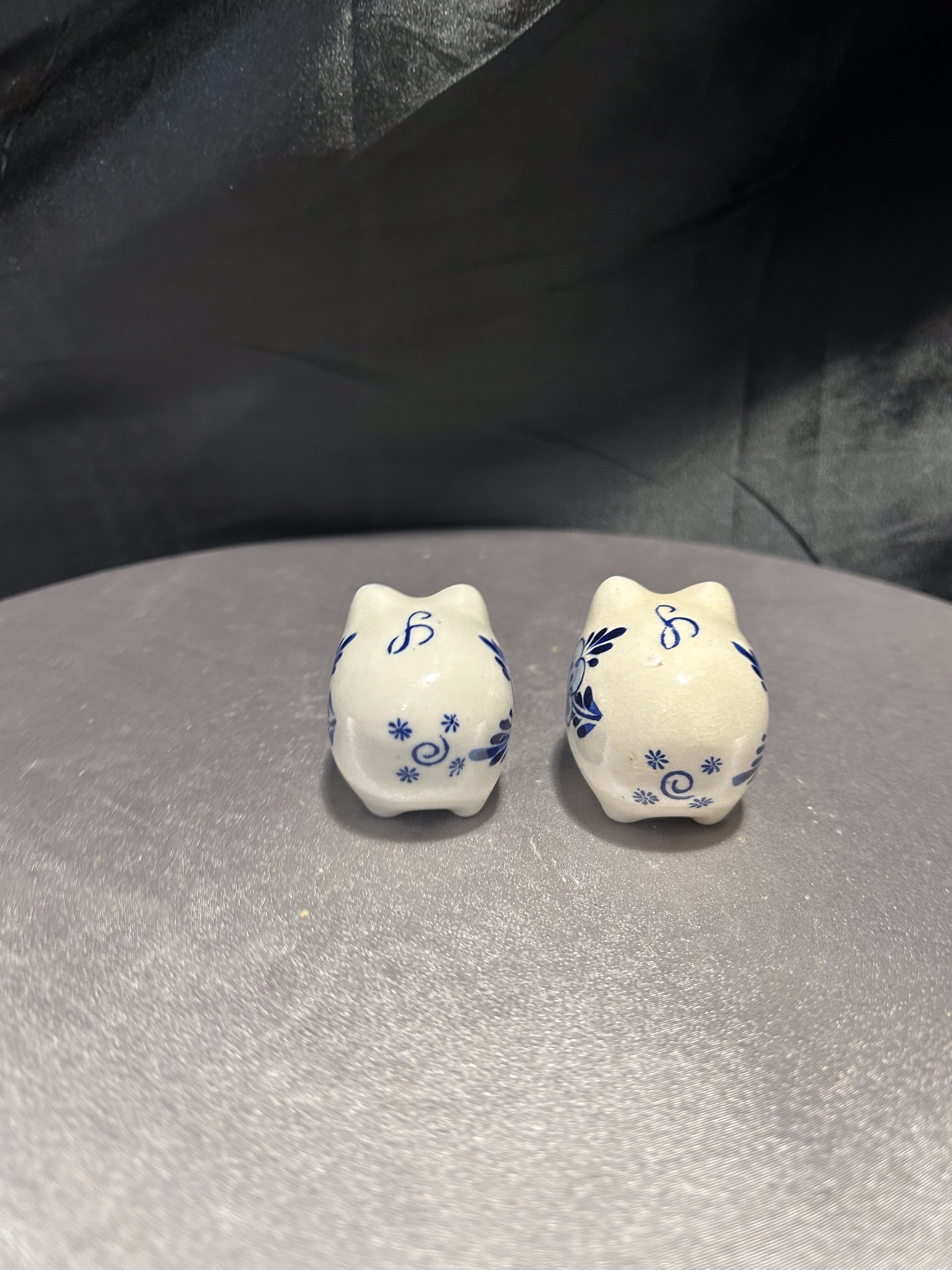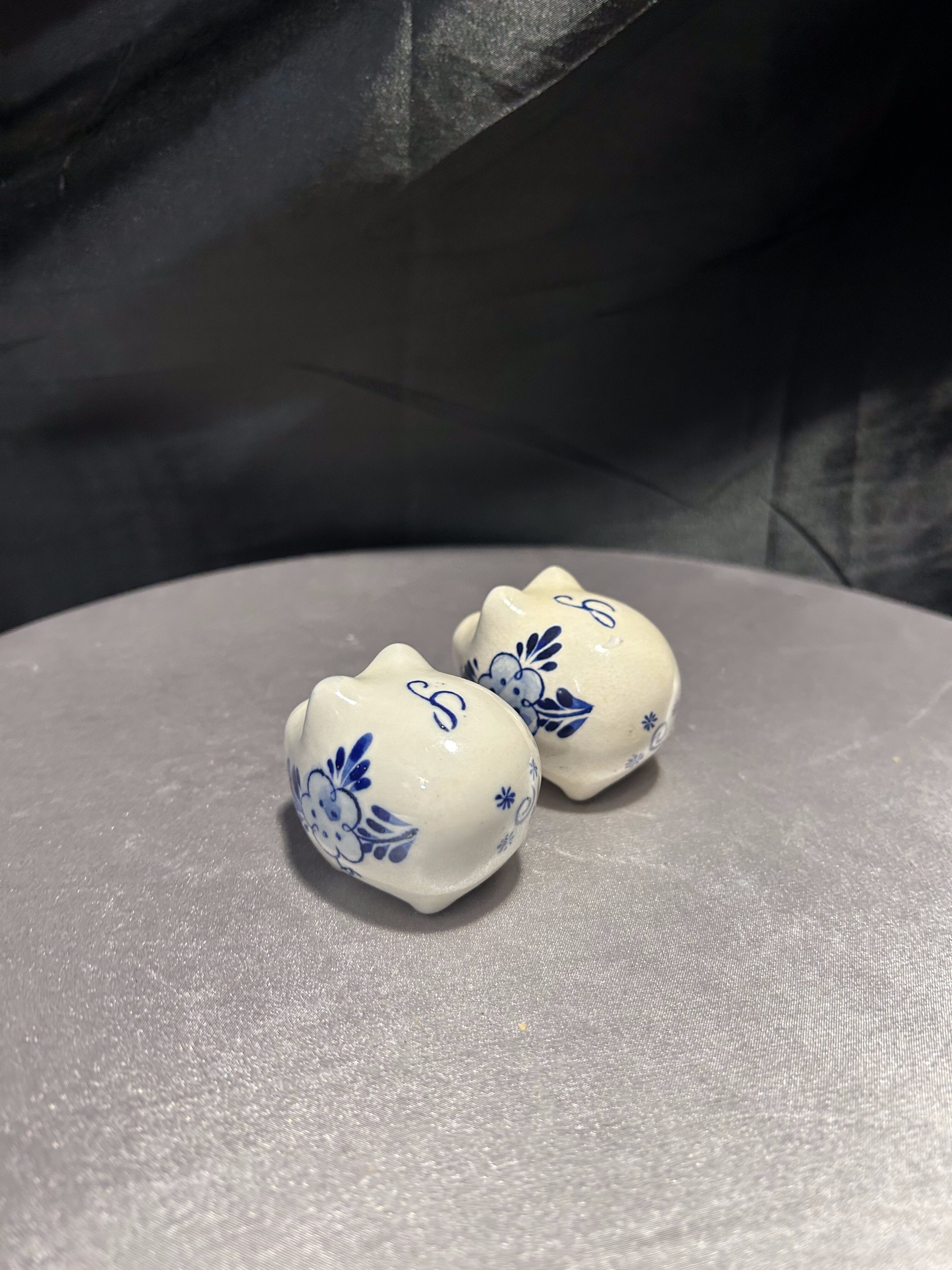 Przepiękny zestaw ceramicznych pojemniczków na sól i pieprz w formie dwóch rozkosznych świnek. Ręcznie malowane w klasyczny niebieski wzór kwiatowy na białym tle – od razu przywodzą na myśl sielskie klimaty wiejskiej kuchni. Świnki mają wyraziste spojrzenia, subtelnie zaznaczone ryjki i nieco figlarny wyraz pyska, który wywołuje uśmiech na twarzy. Idealne zarówno jako praktyczne pojemniki do przypraw, jak i dekoracyjny akcent w kuchni lub jadalni. Świetny pomysł na prezent dla miłośników ceramiki i detali z charakterem.