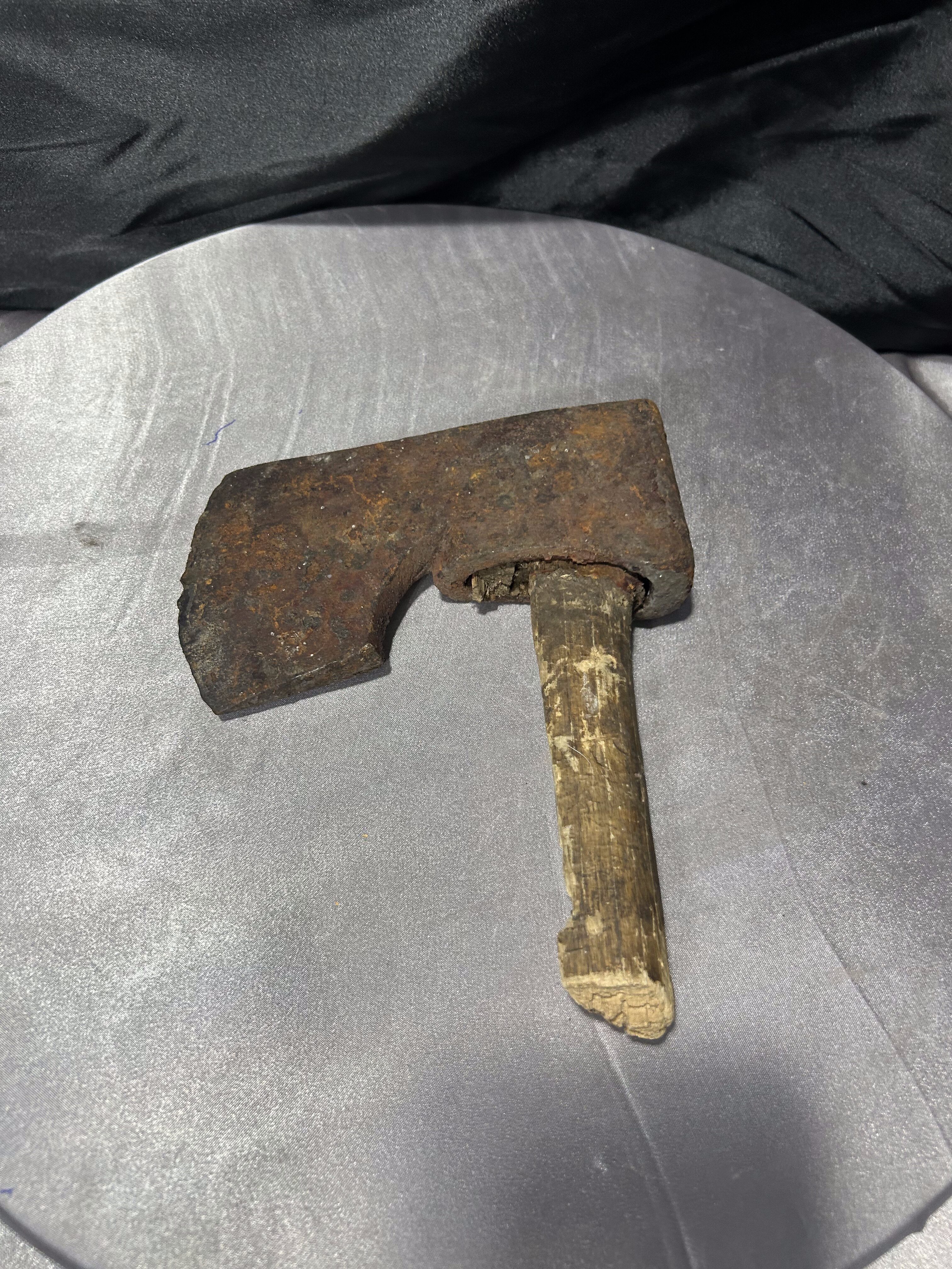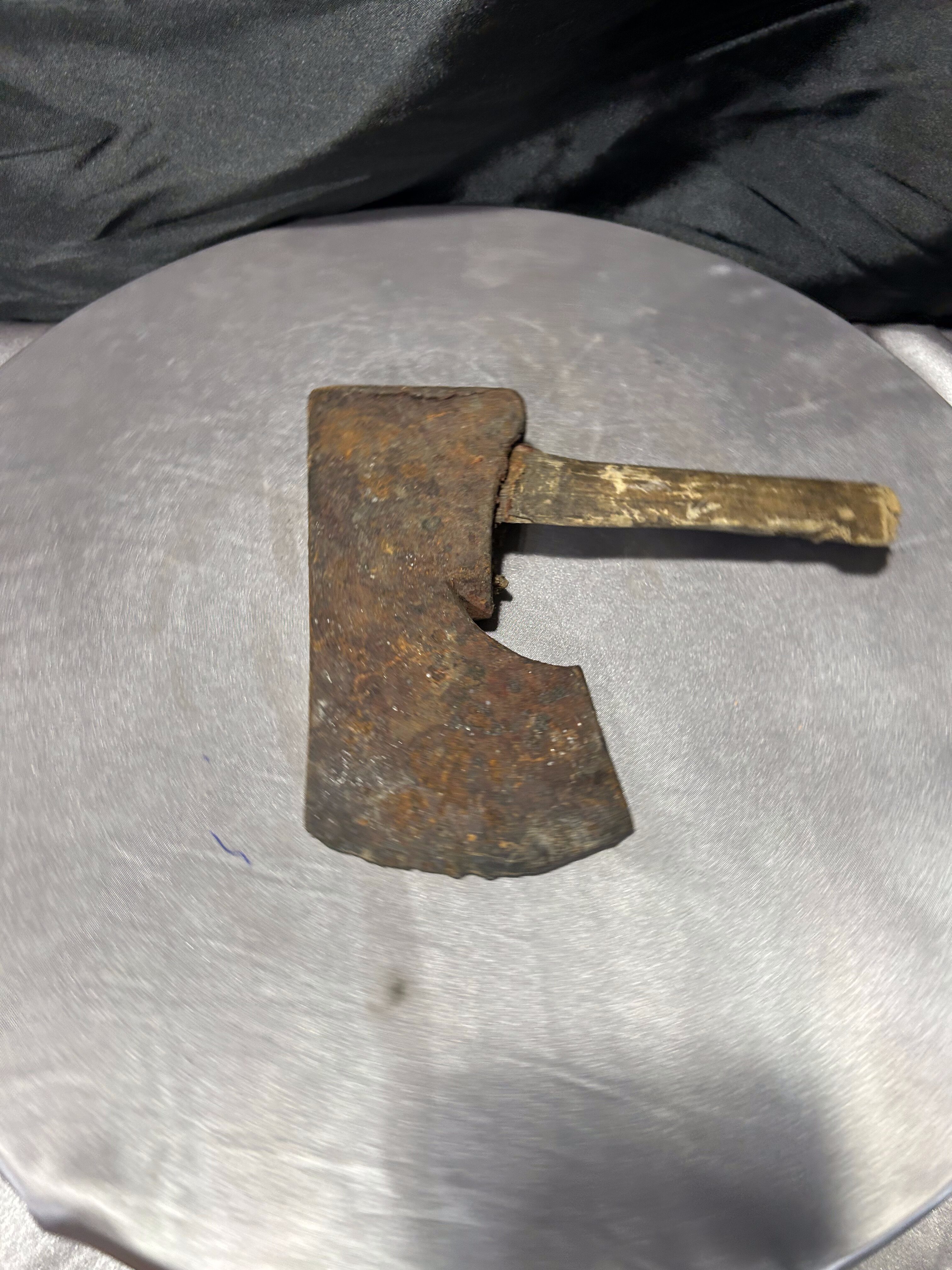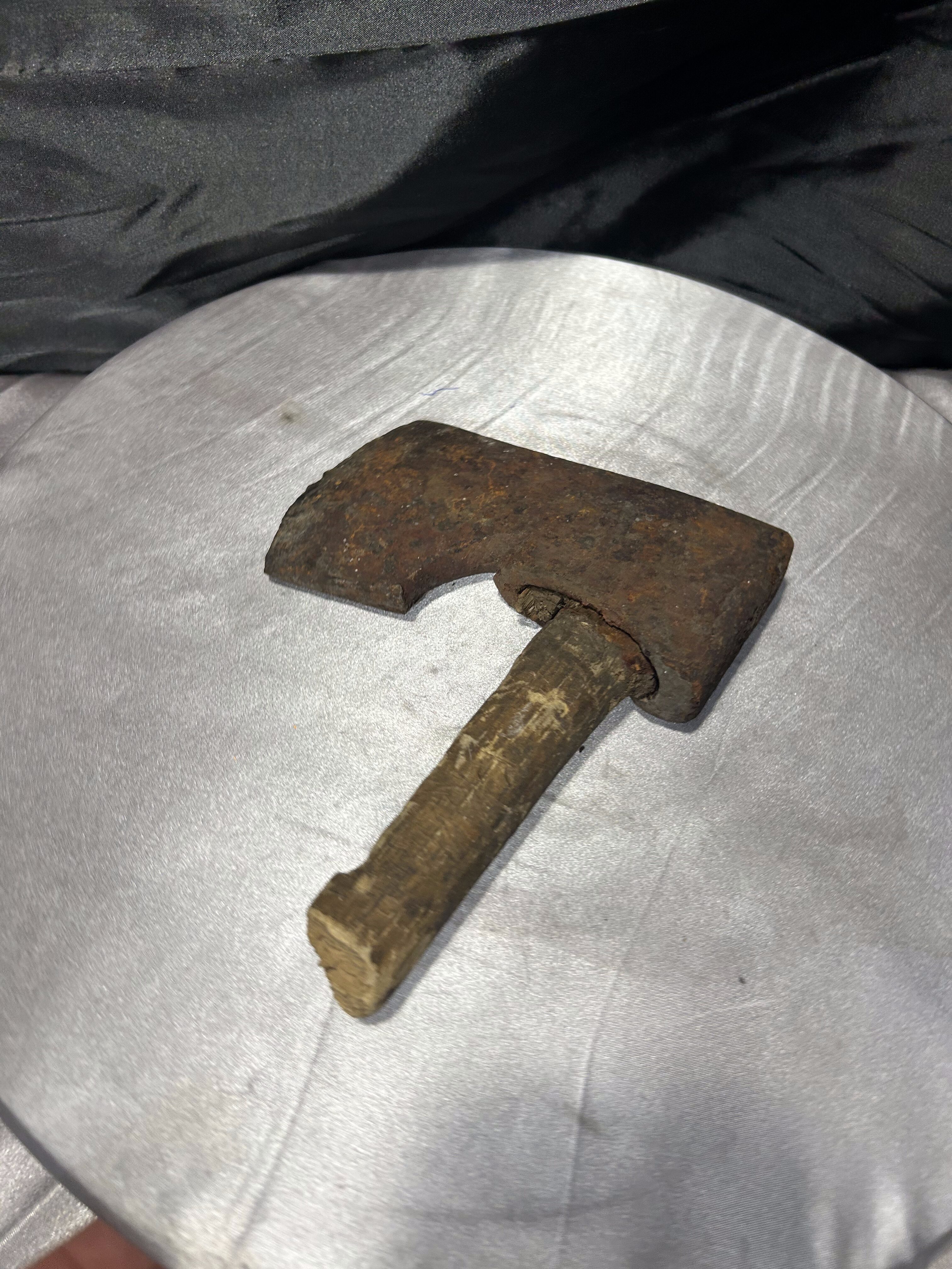 Przedmiotem oferty jest autentyczna, stara głownia siekiery z pozostałością oryginalnego trzonka, przywieziona z Norwegii. Jest to klasyczny przykład siekiery ciesielskiej, charakteryzującej się specyficznym kształtem ostrza z wyraźnym podcięciem (brodą), co pozwalało rzemieślnikowi na chwycenie narzędzia tuż przy głowicy w celu wykonywania precyzyjnych prac w drewnie. Przedmiot posiada naturalną, głęboką patynę czasu oraz ślady wieloletniego użytkowania, co nadaje mu niezwykłej autentyczności. Jest to doskonały egzemplarz dla kolekcjonerów dawnych narzędzi kowalskich lub jako surowy, industrialny element dekoracyjny do wnętrz w stylu loft lub rustykalnym.