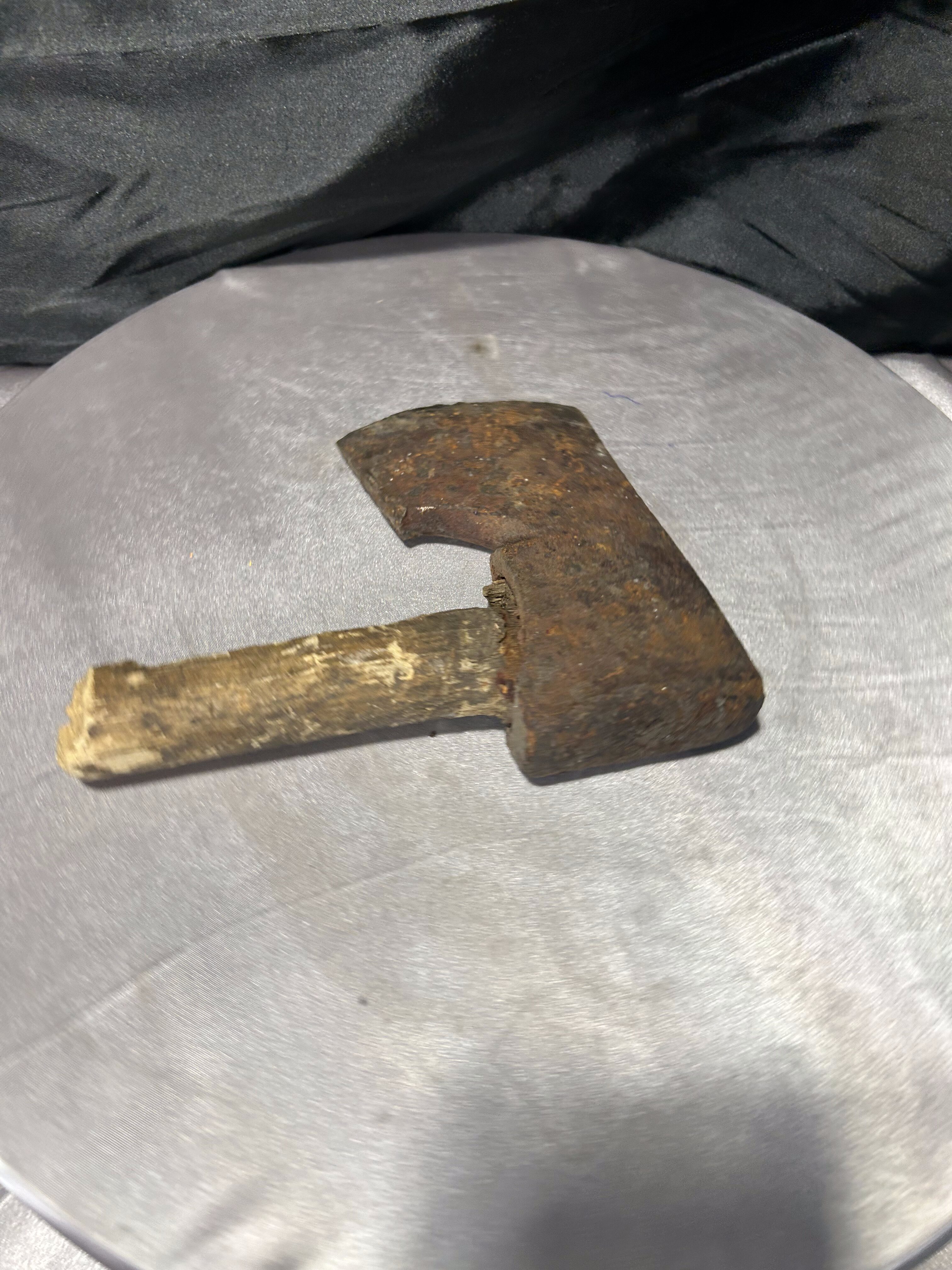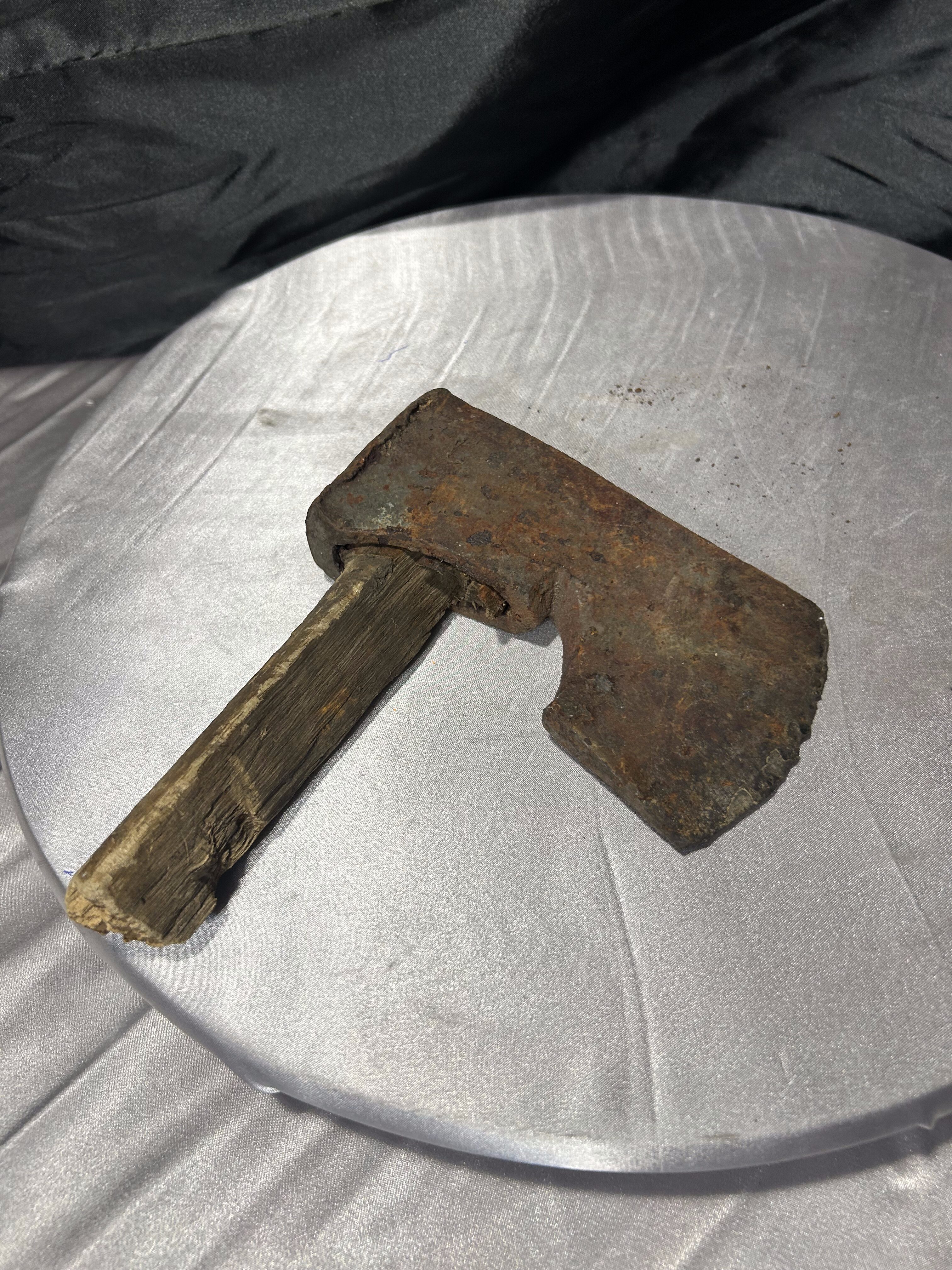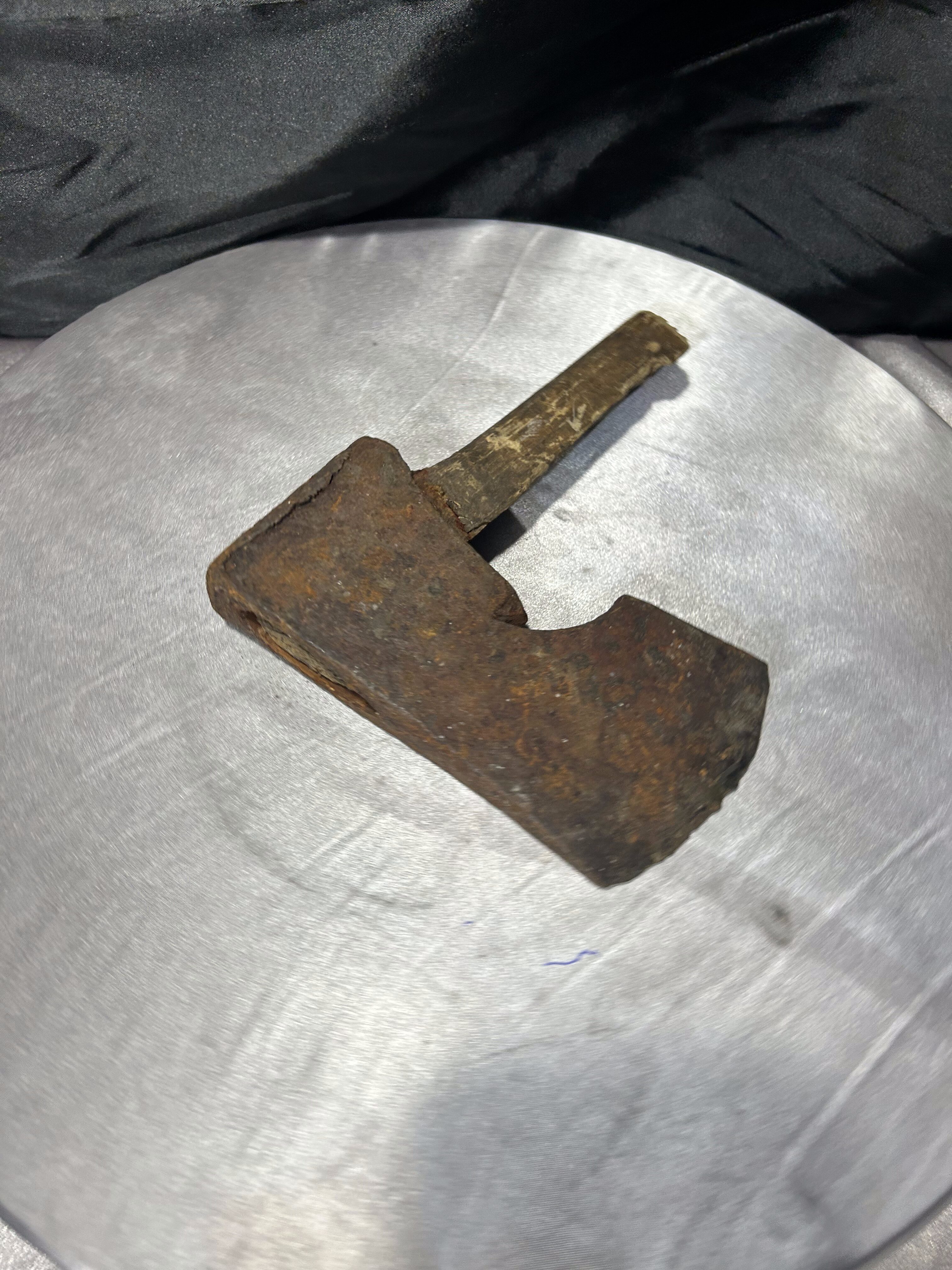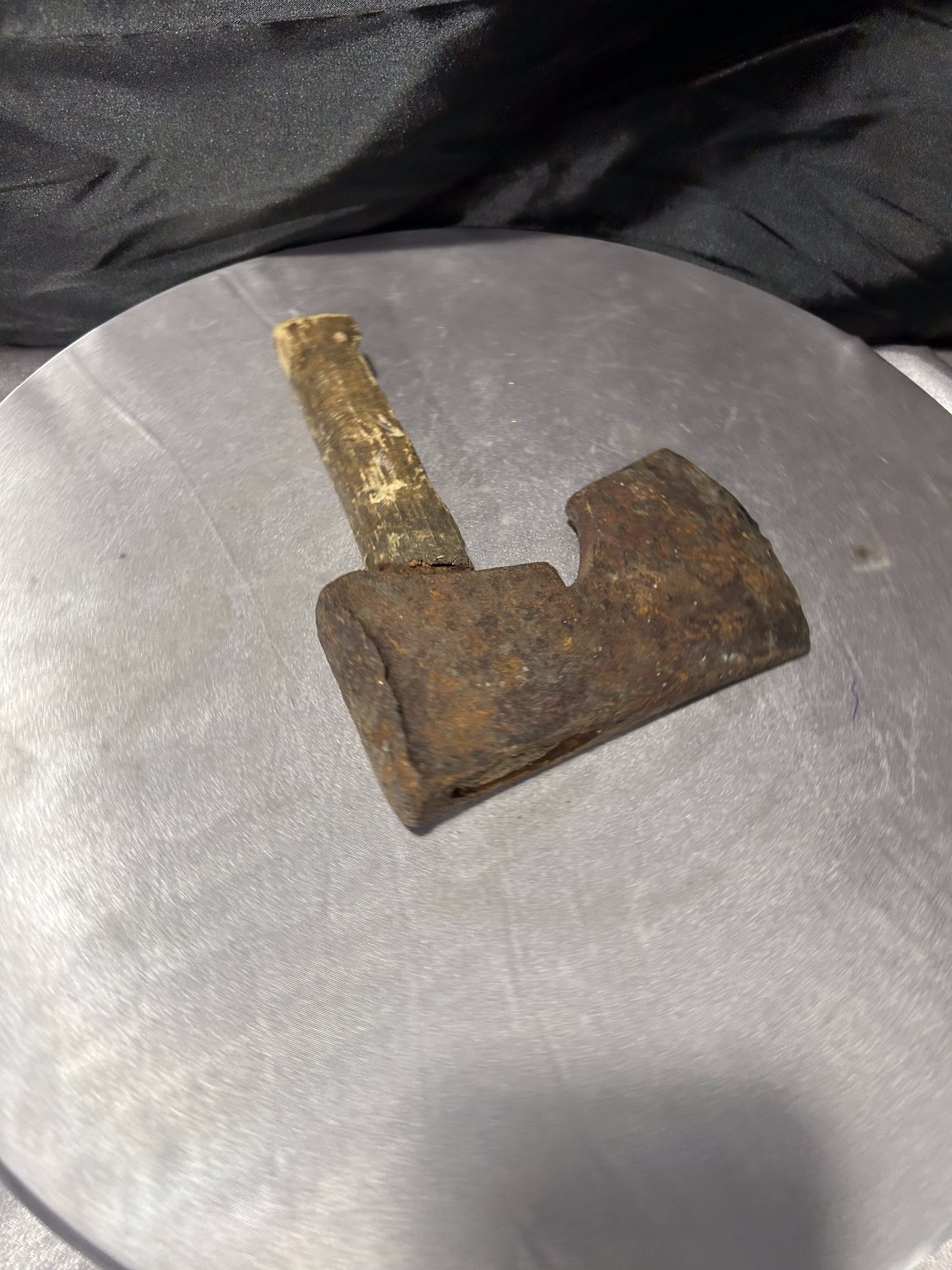Przedmiotem oferty jest autentyczna, stara głownia siekiery z pozostałością oryginalnego trzonka, przywieziona z Norwegii. Jest to klasyczny przykład siekiery ciesielskiej, charakteryzującej się specyficznym kształtem ostrza z wyraźnym podcięciem (brodą), co pozwalało rzemieślnikowi na chwycenie narzędzia tuż przy głowicy w celu wykonywania precyzyjnych prac w drewnie. Przedmiot posiada naturalną, głęboką patynę czasu oraz ślady wieloletniego użytkowania, co nadaje mu niezwykłej autentyczności. Jest to doskonały egzemplarz dla kolekcjonerów dawnych narzędzi kowalskich lub jako surowy, industrialny element dekoracyjny do wnętrz w stylu loft lub rustykalnym.