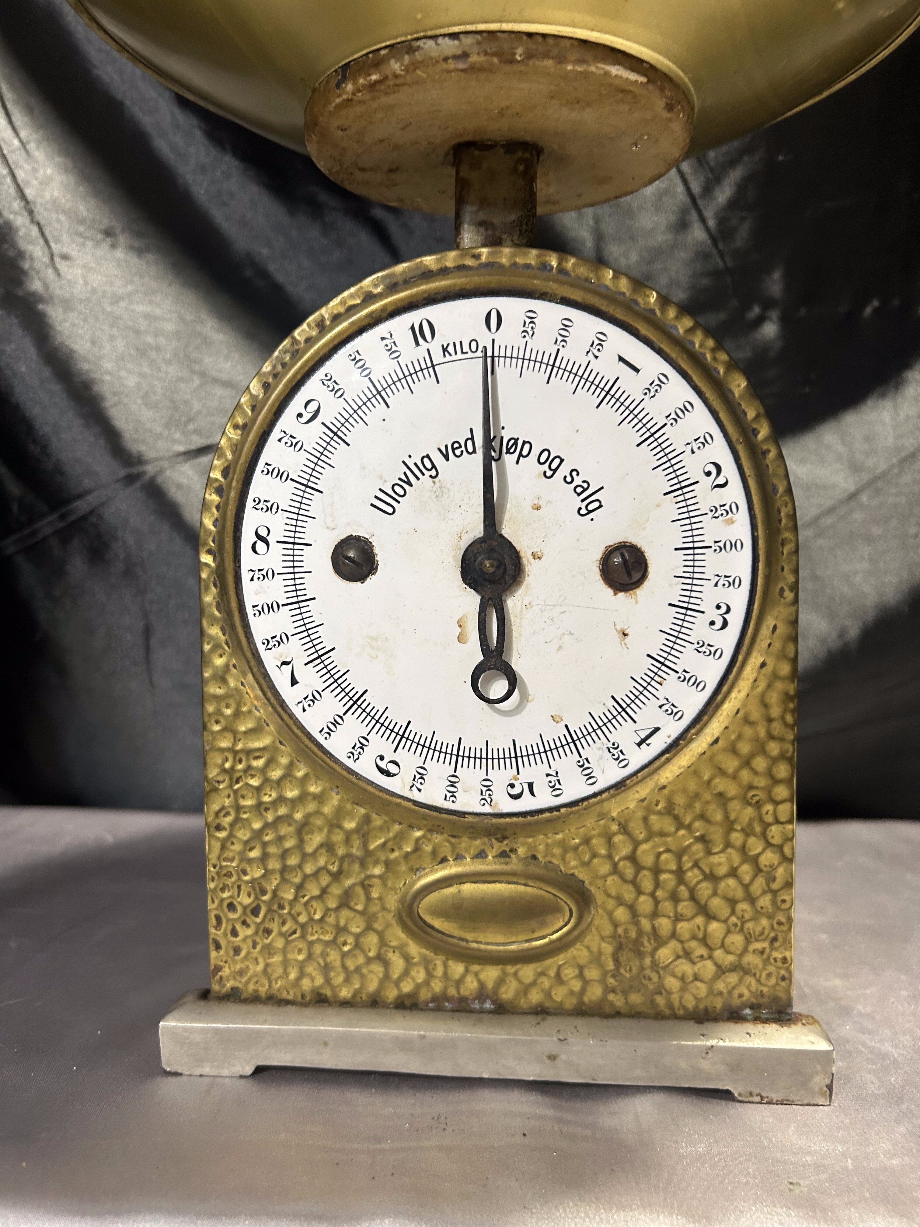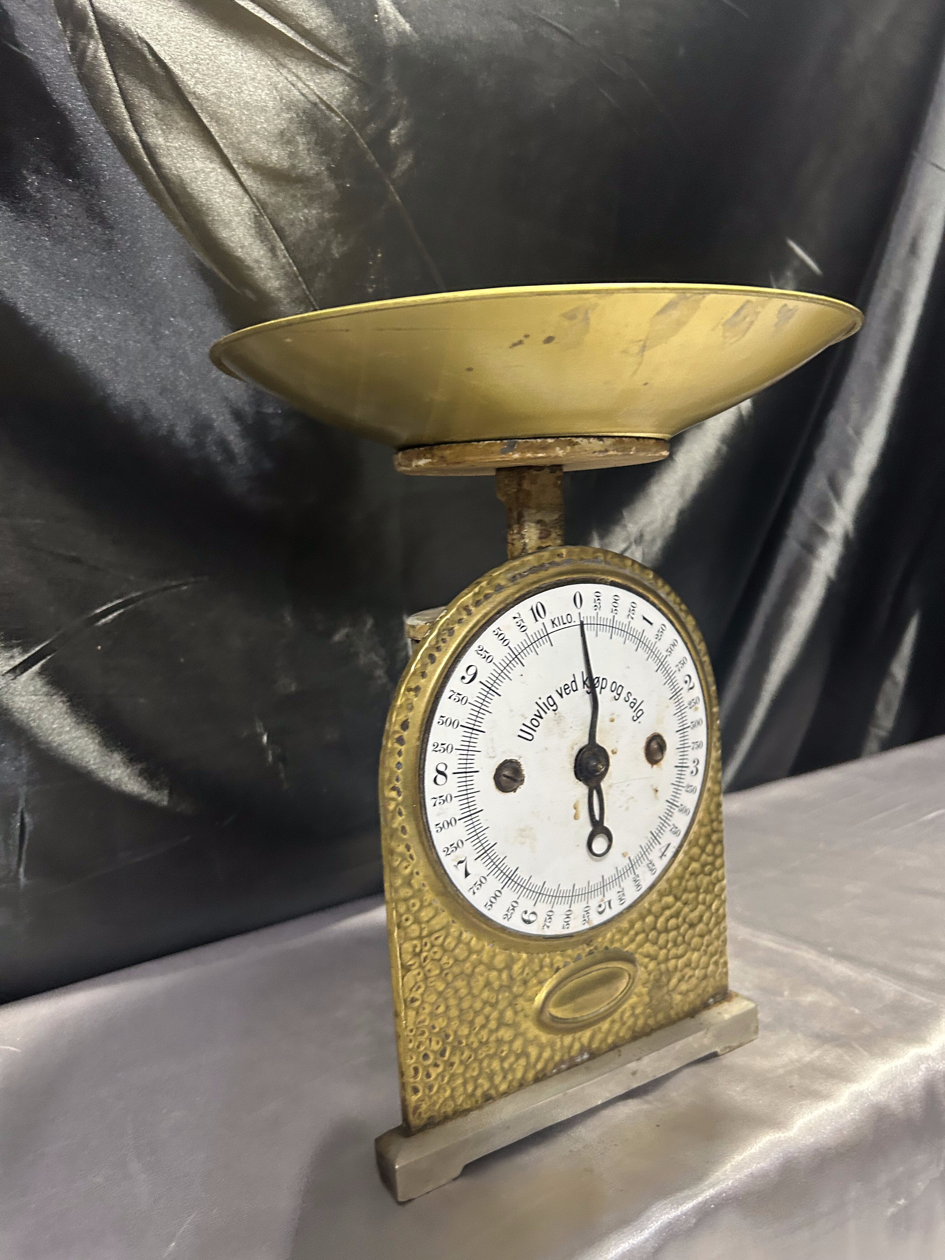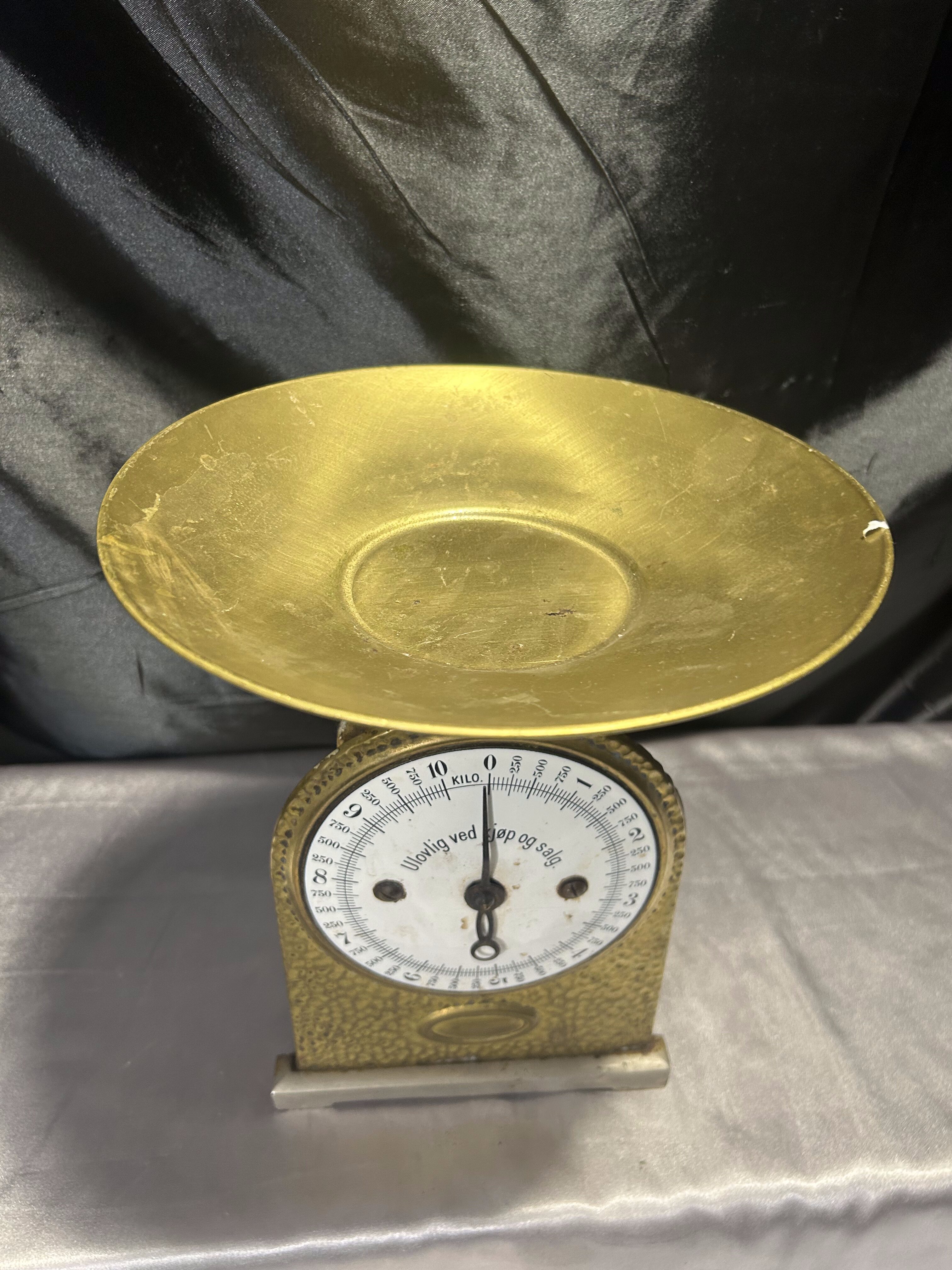 Stara waga mosiężna – z talerzykiem – skala do 10 kg – vintage