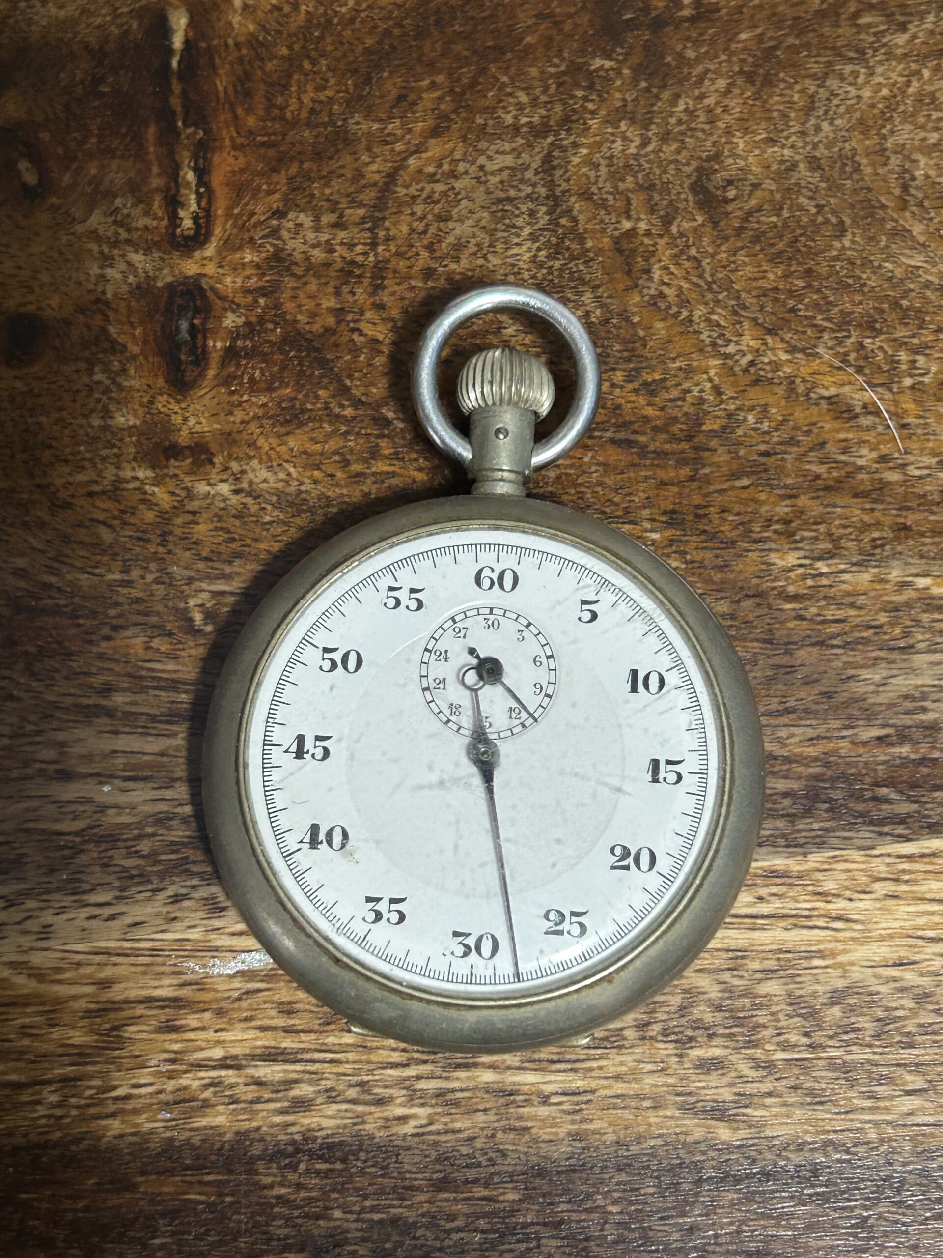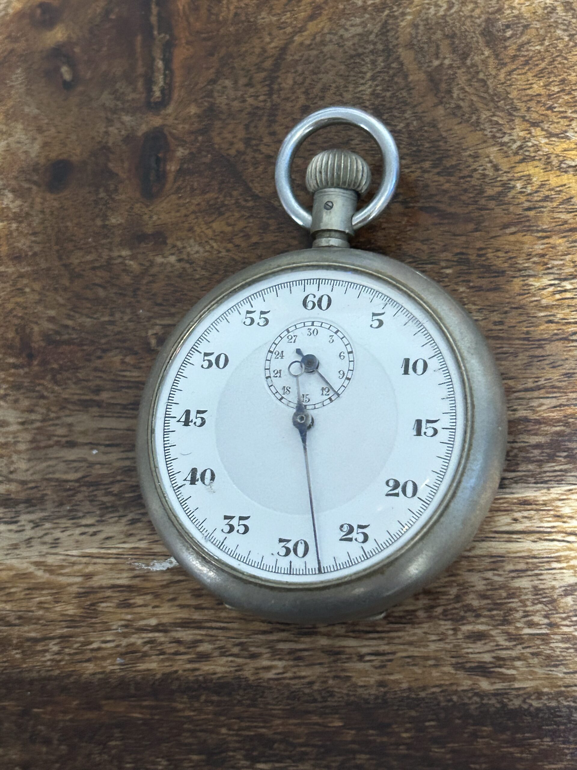 Wyjątkowy stoper o okrągłej, klasycznej konstrukcji, będący zarówno funkcjonalnym narzędziem, jak i estetycznym dodatkiem. Jego elegancki design i solidne wykonanie świadczą o zegarmistrzowskiej precyzji i kunszcie, który przetrwał próbę czasu.