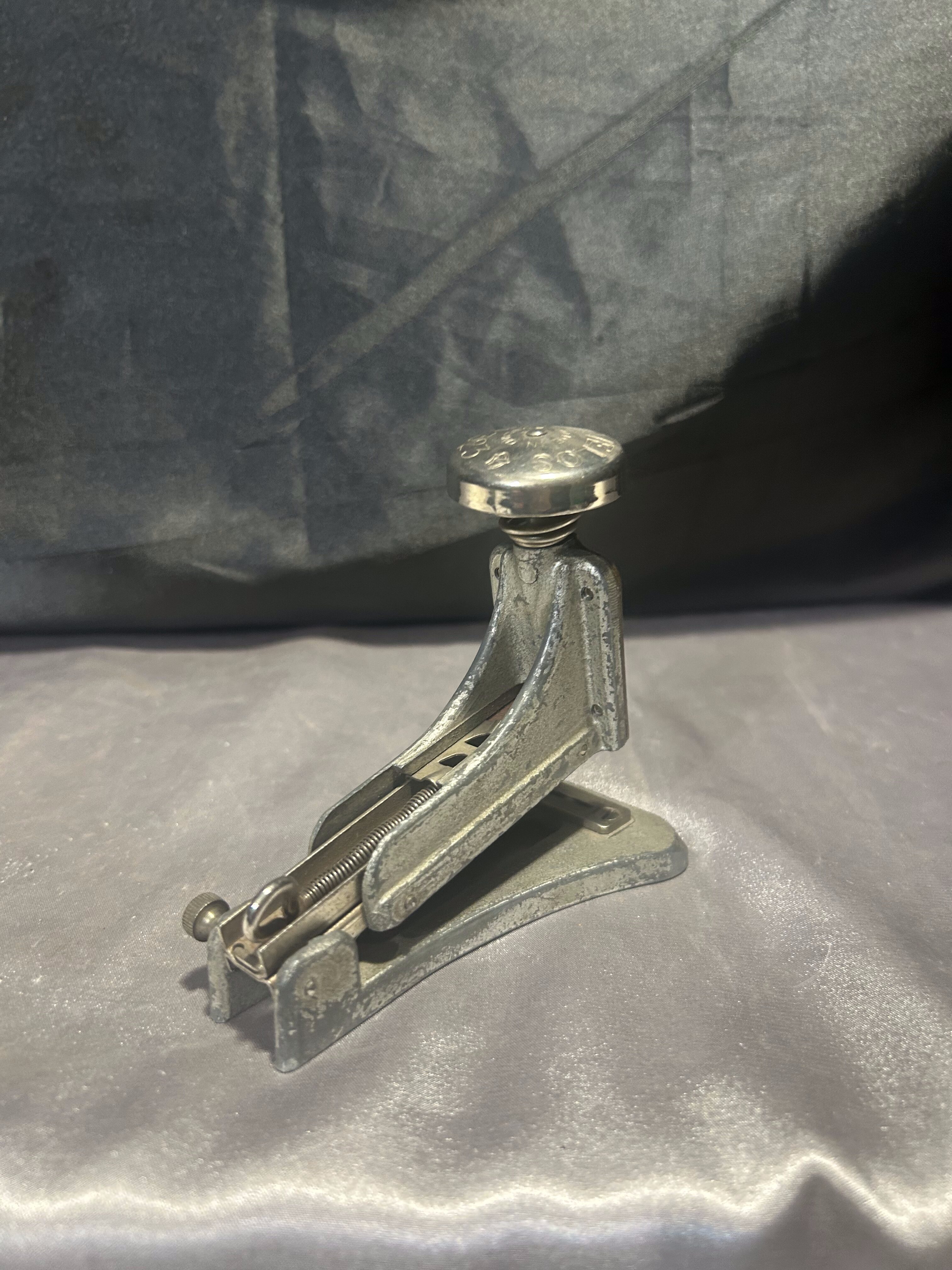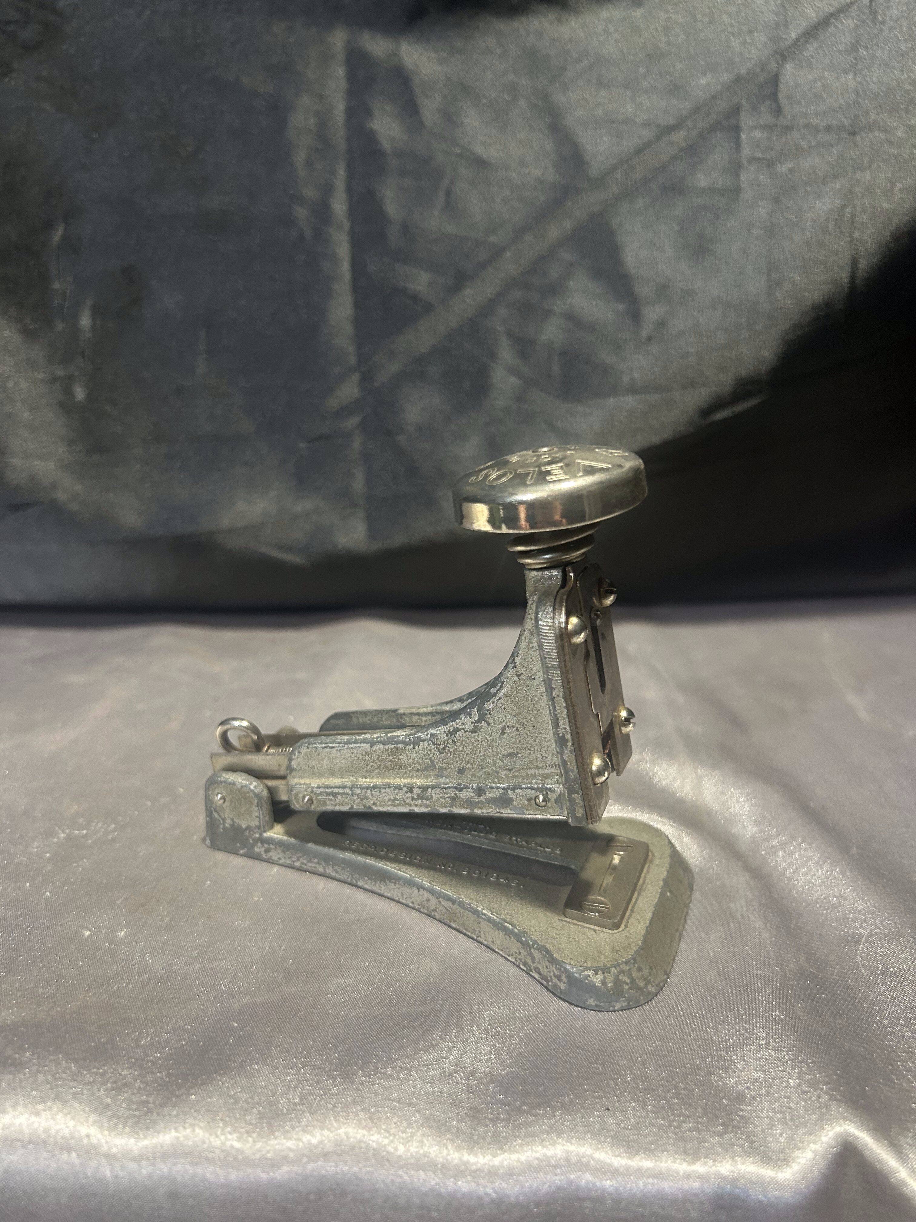 Na sprzedaż oryginalny, stary zszywacz biurowy marki VELOS No. 323, wyprodukowany w Anglii. Solidnie wykonany, masywny i stylowy, reprezentuje klasyczny design dawnych akcesoriów biurowych, które łączyły funkcjonalność z elegancją.