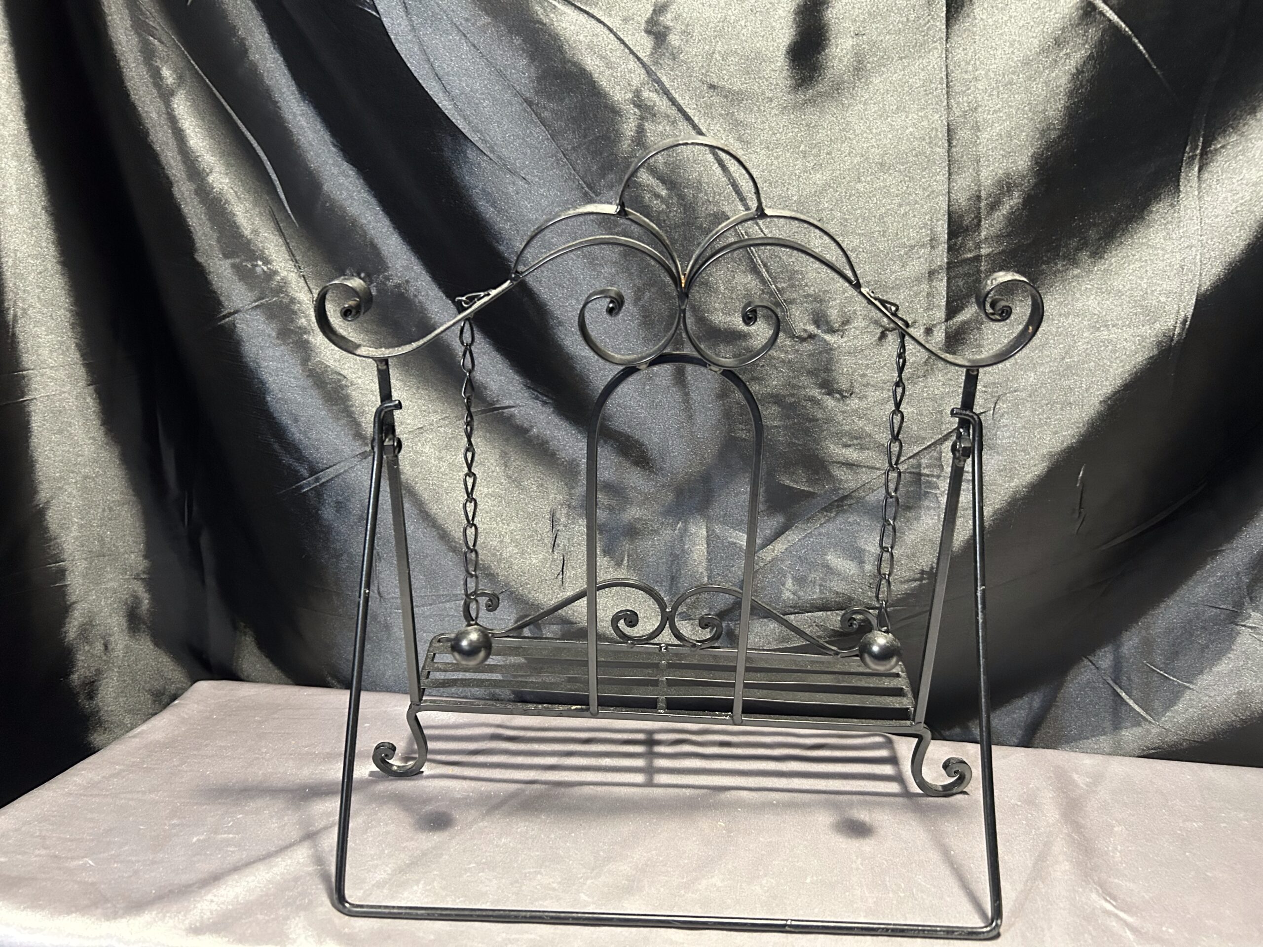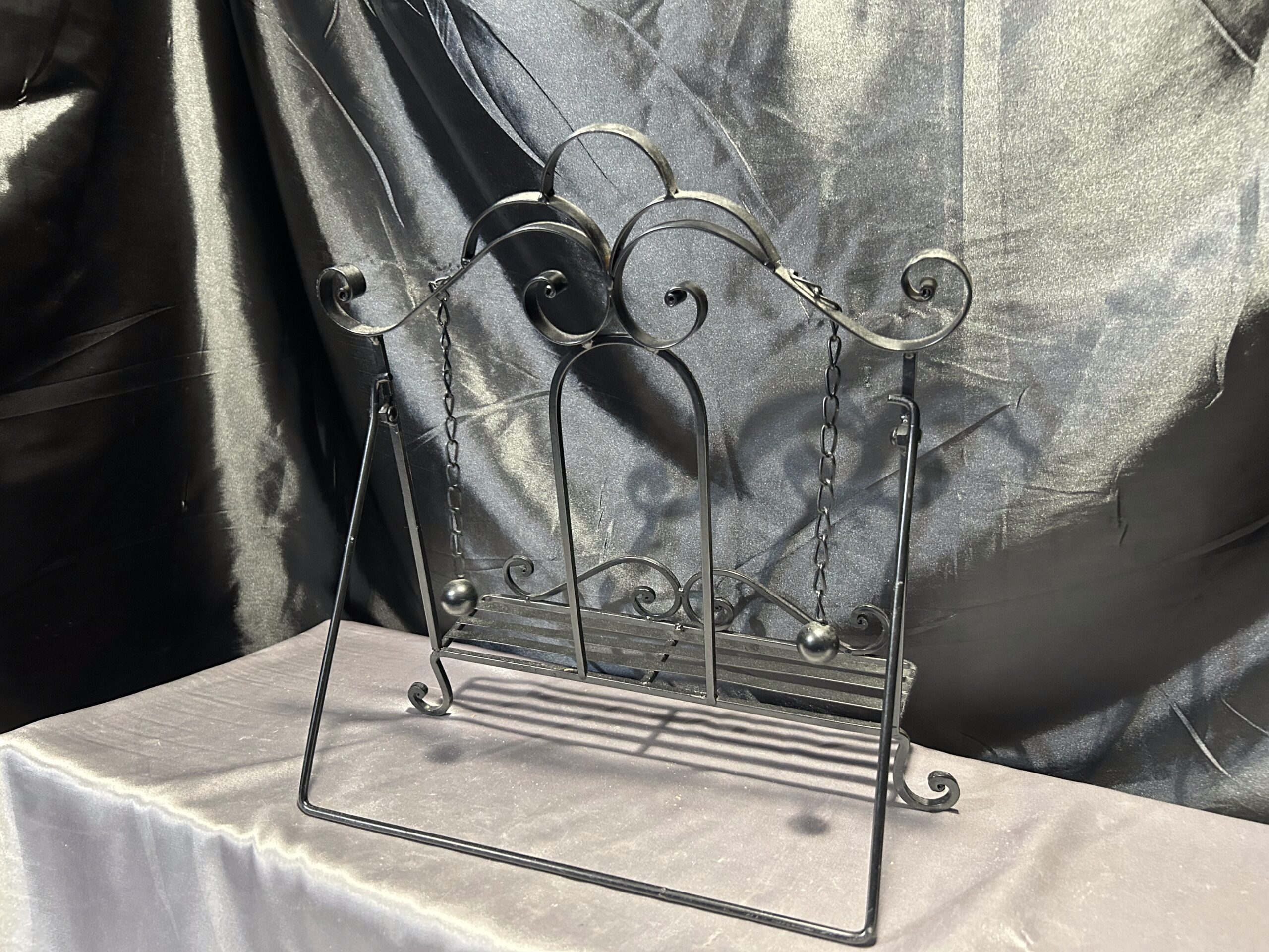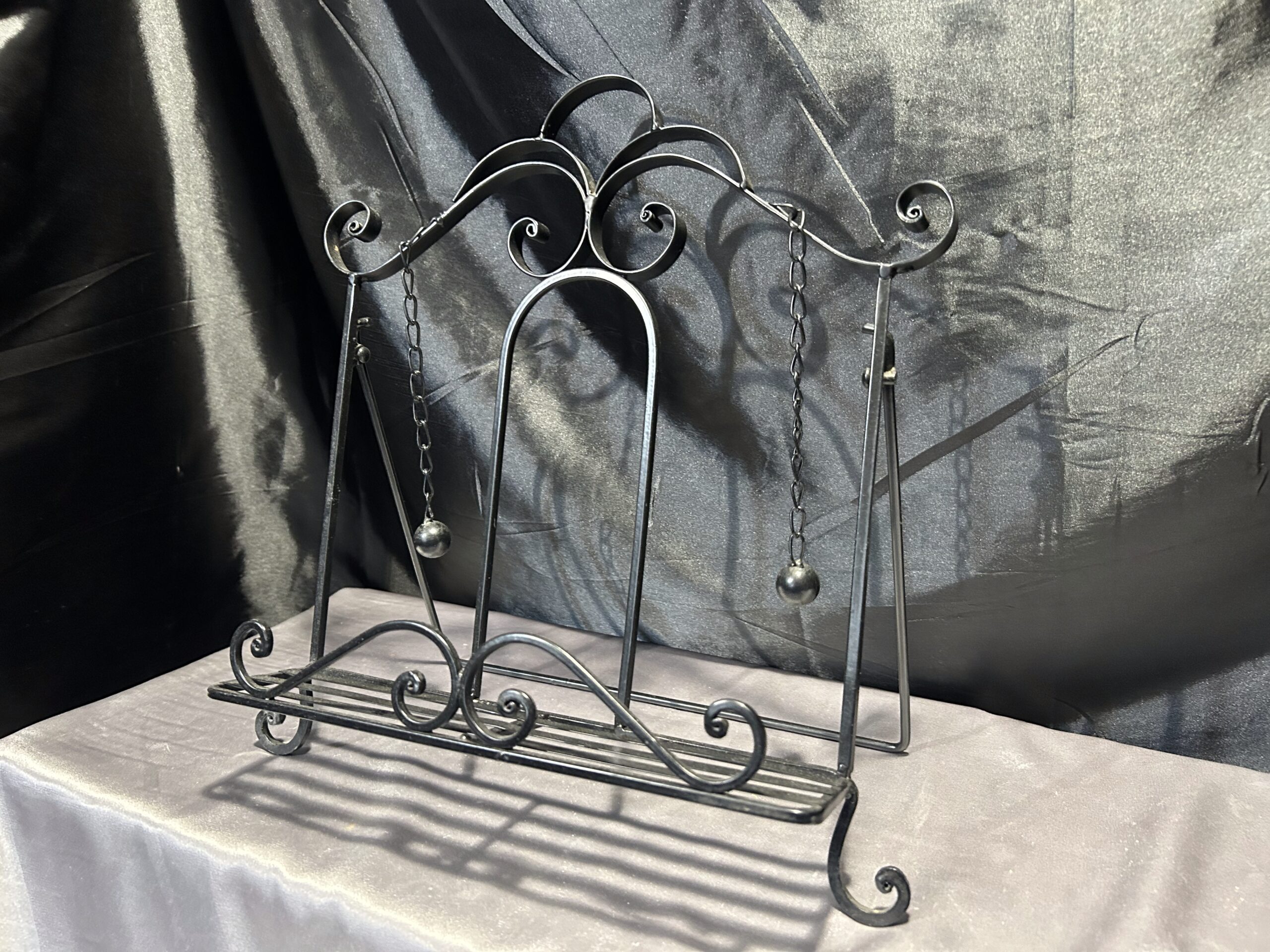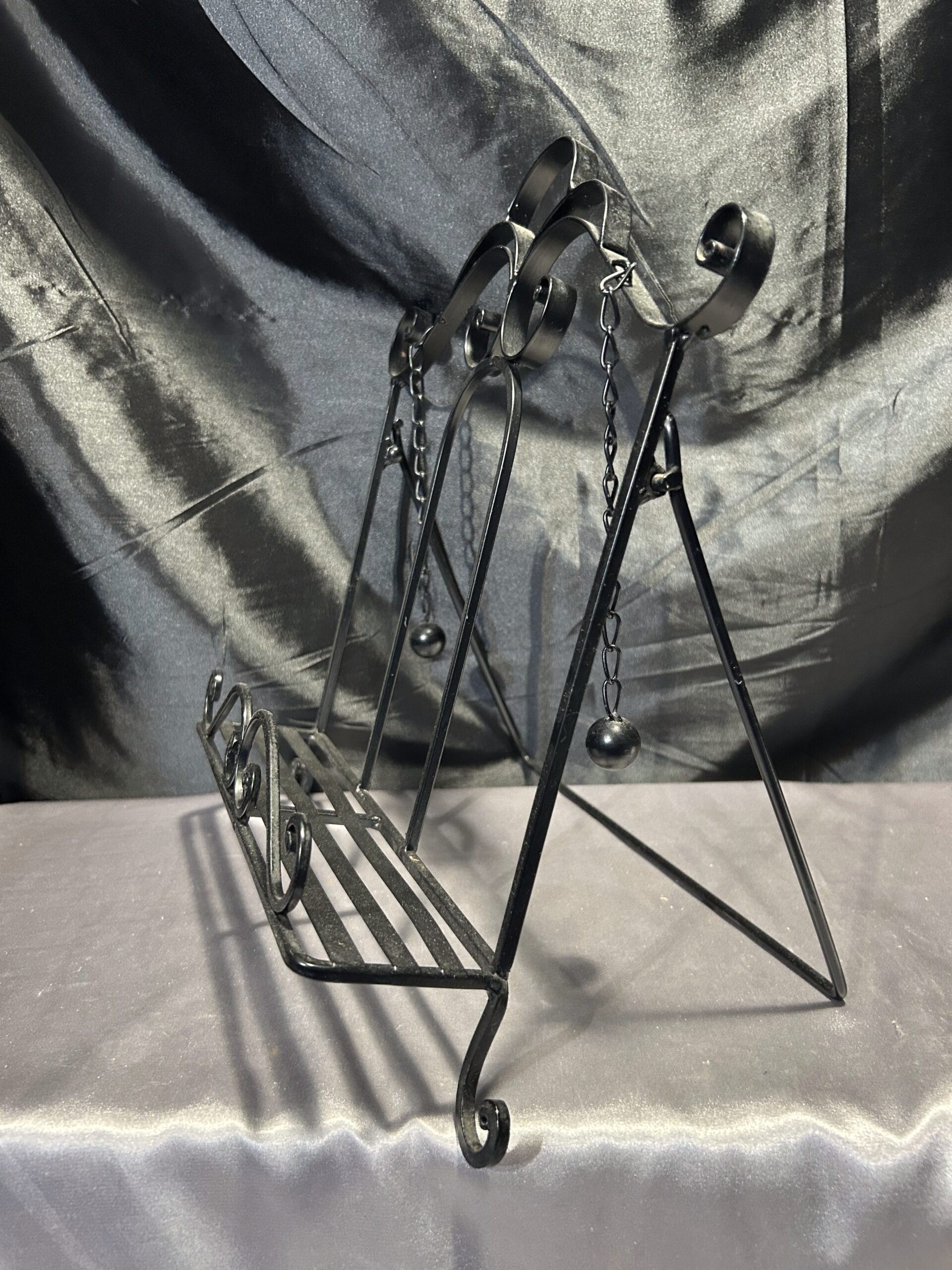 Stojak na Książkę – Czarny, Kuty, Rozkładany z Kulami na Łańcuszku