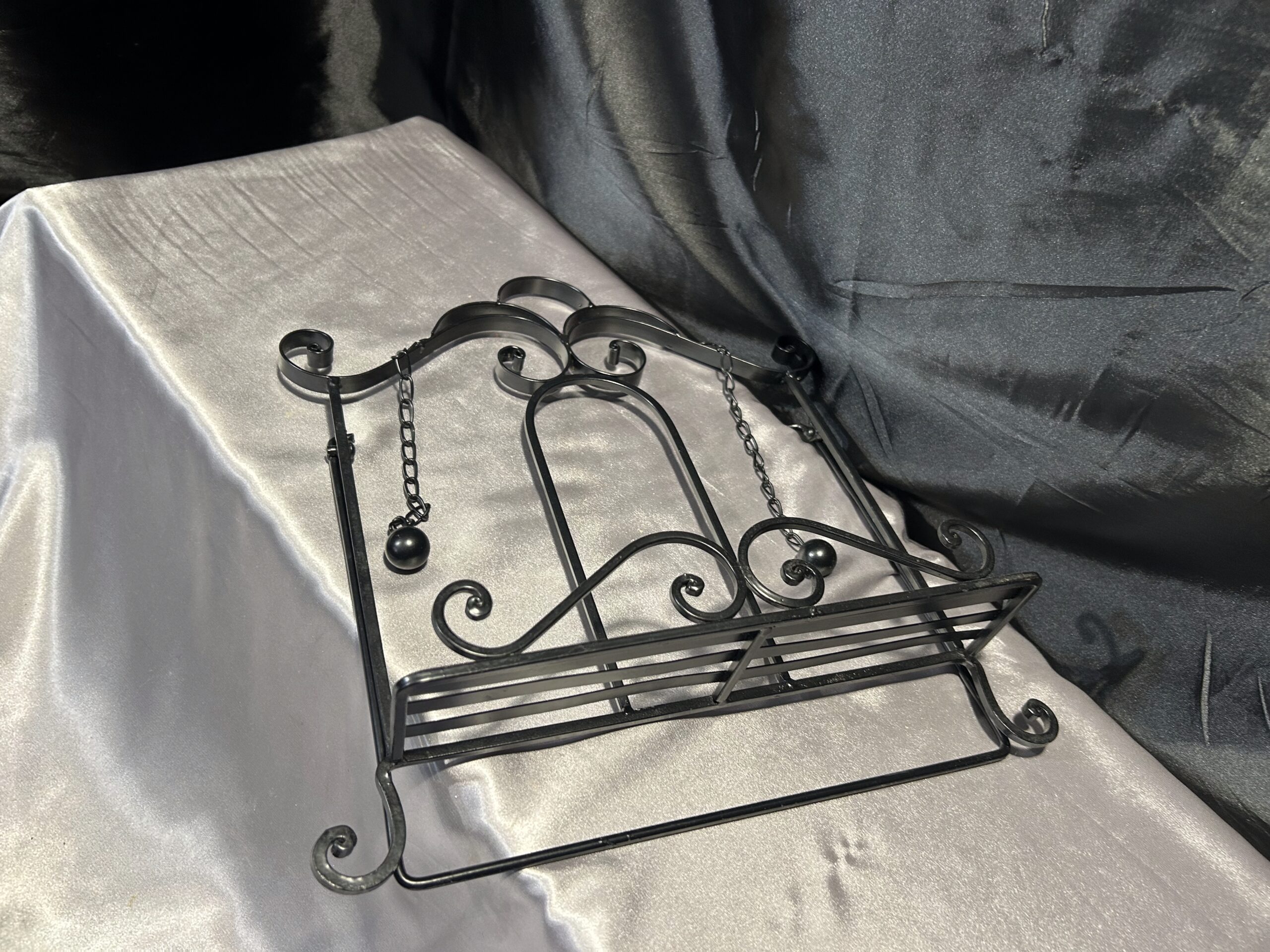 Wyjątkowy stojak na książkę wykonany z kutego metalu, utrzymany w eleganckim czarnym kolorze. Produkt jest rozkładany, co umożliwia dostosowanie jego ustawienia do indywidualnych potrzeb, a dwa ozdobne kule zawieszone na łańcuszku skutecznie zapobiegają przesuwaniu się kartek książki. Doskonały zarówno do domowej biblioteki, jak i do przestrzeni publicznych, gdzie elegancja spotyka funkcjonalność.